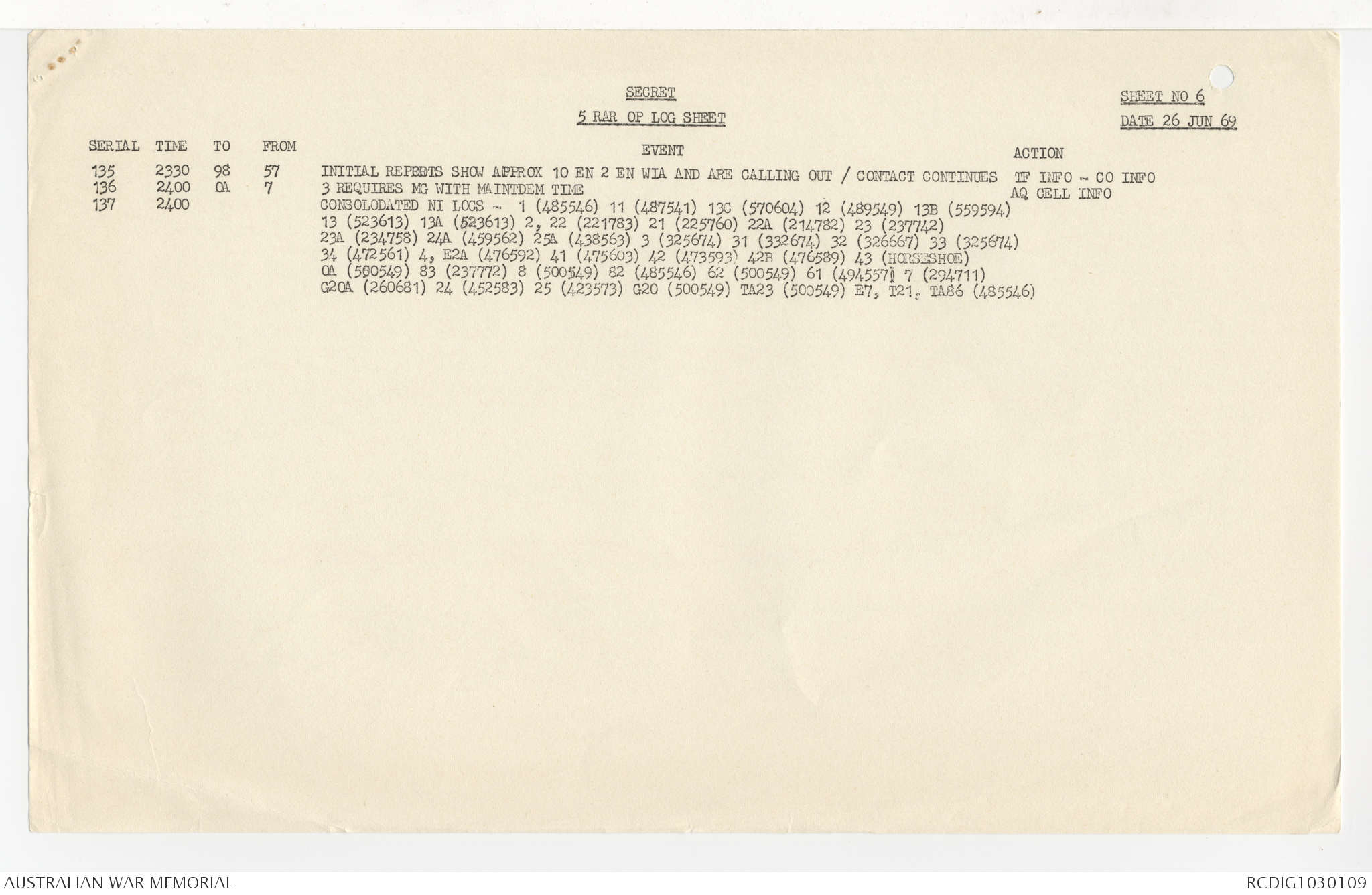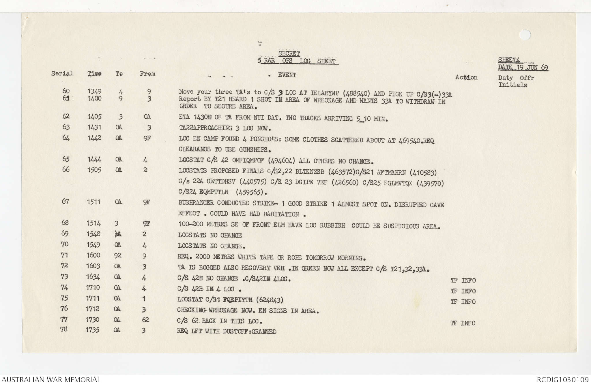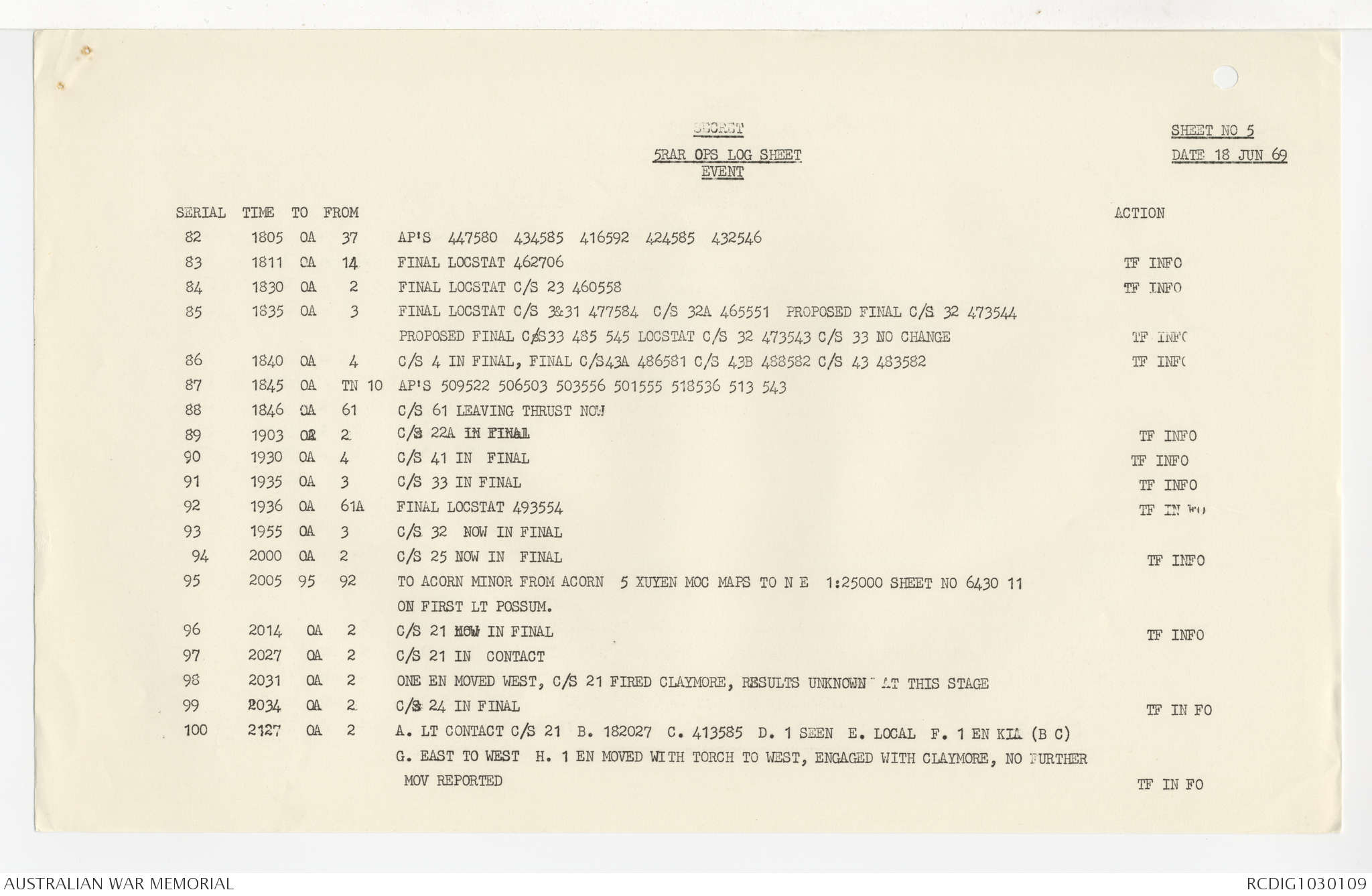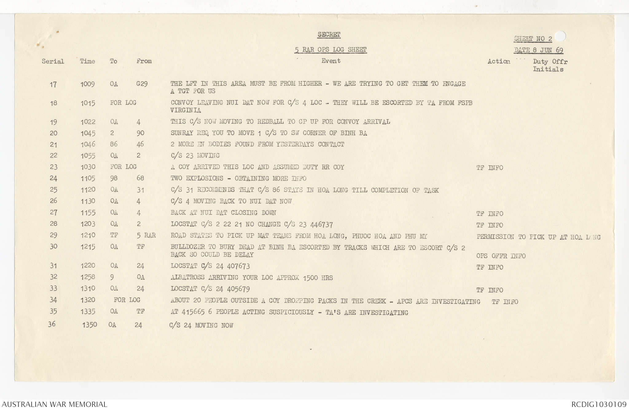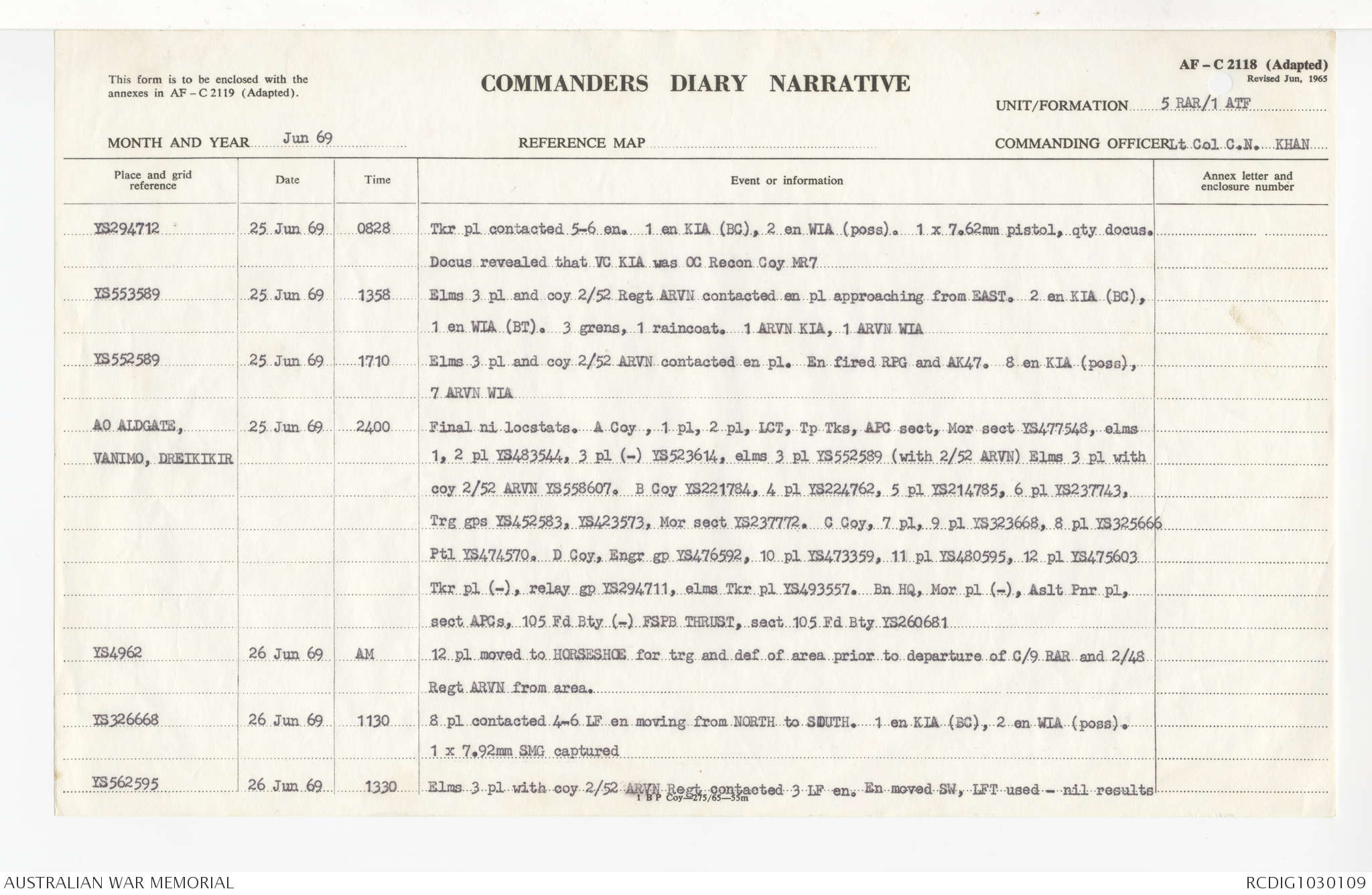 AWM95 7/5/25 - 1-30 June 1969, Narrative, Operations log, Annexes