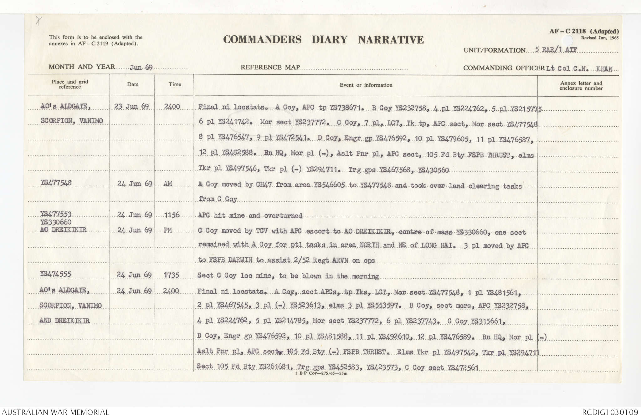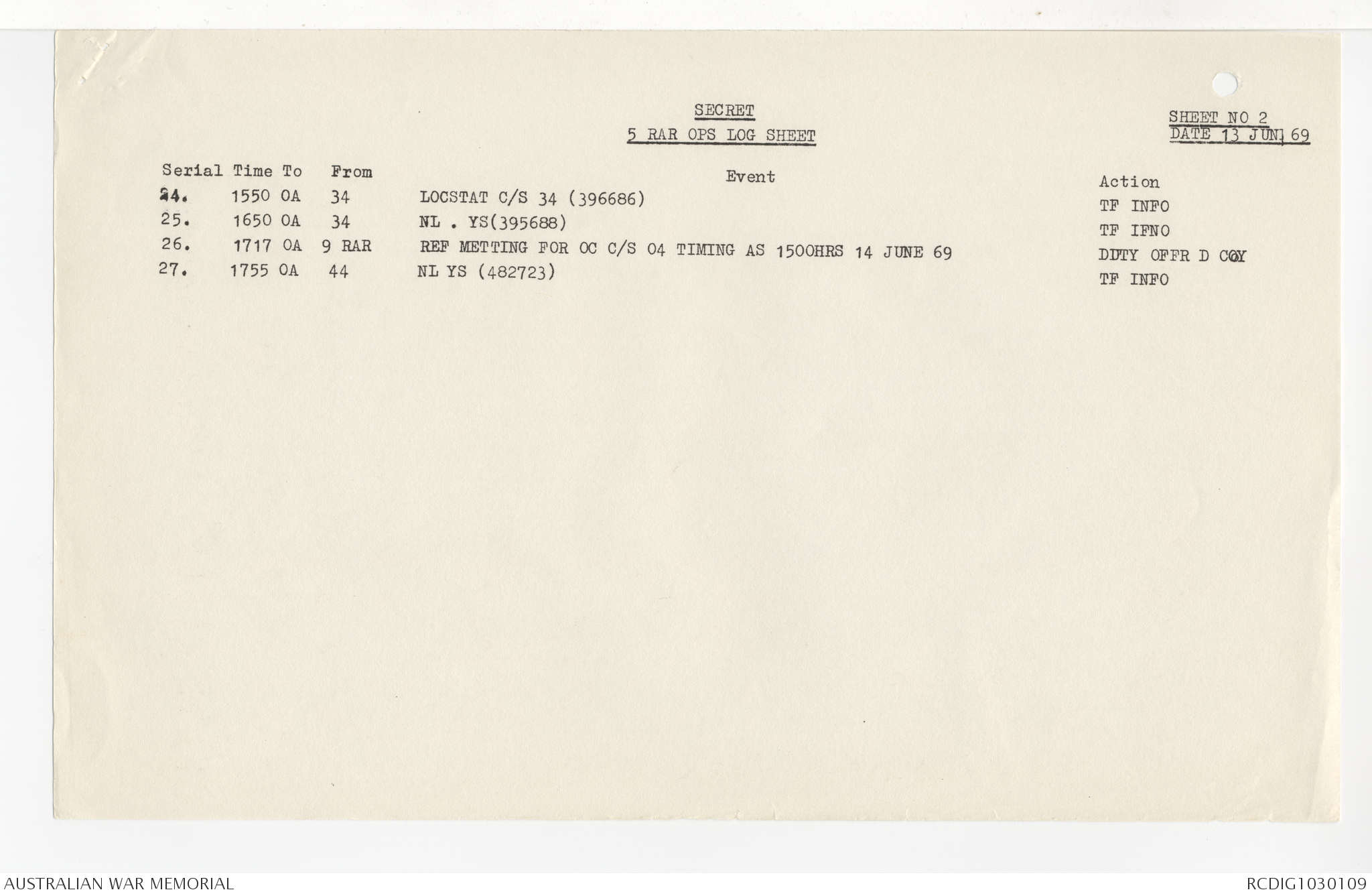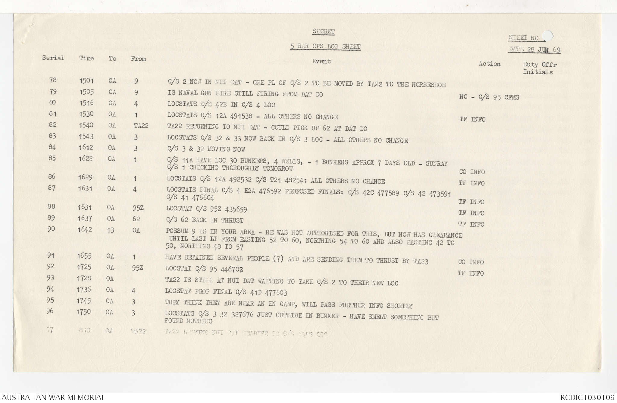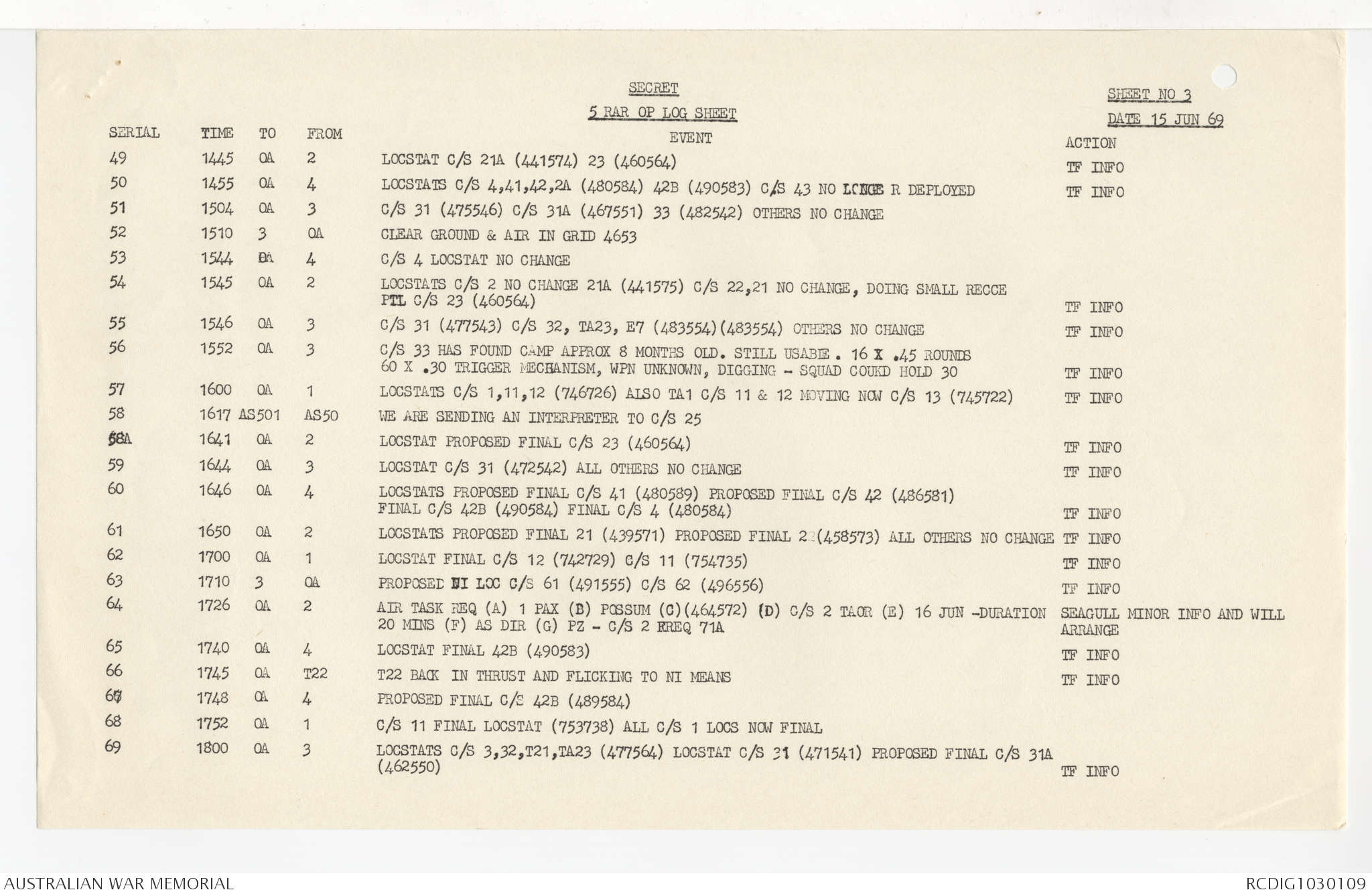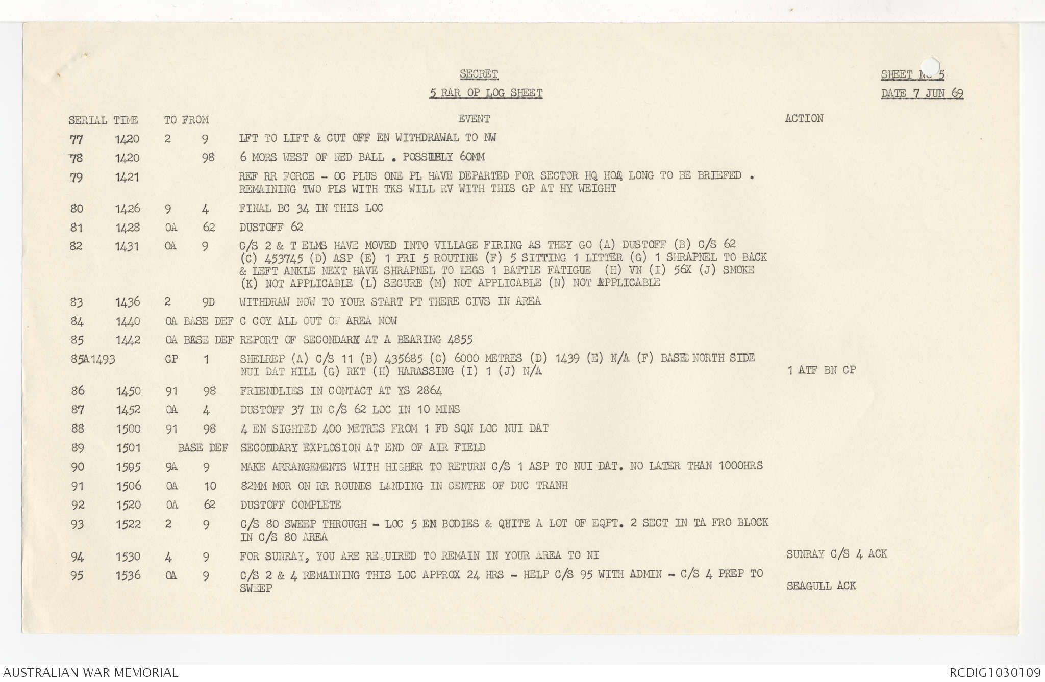 AWM95 7/5/25 - 1-30 June 1969, Narrative, Operations log, Annexes