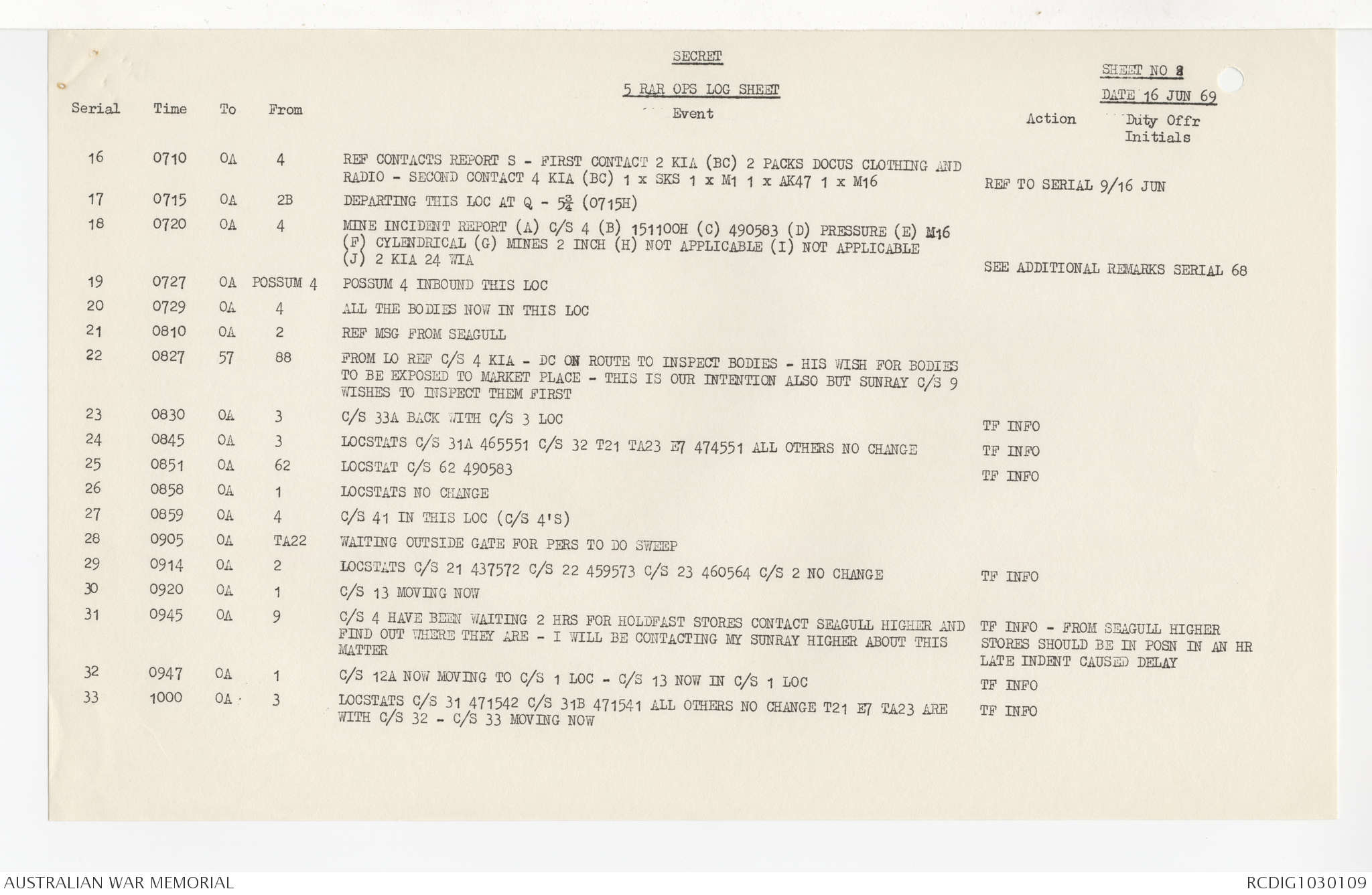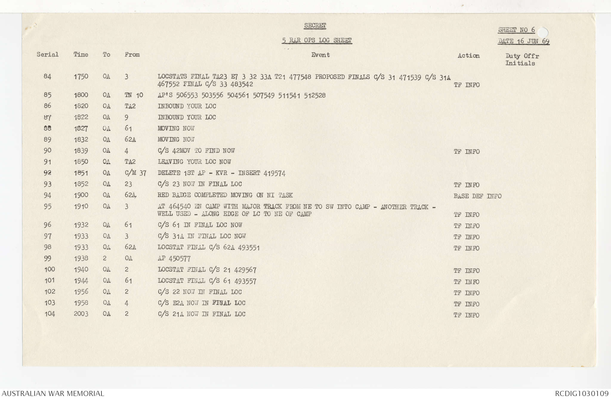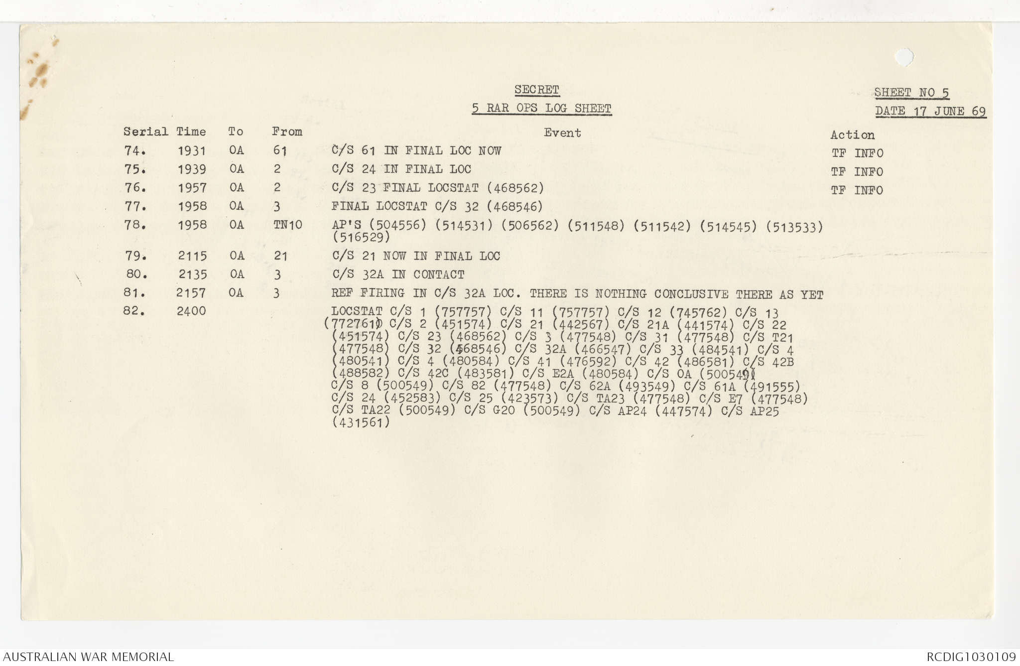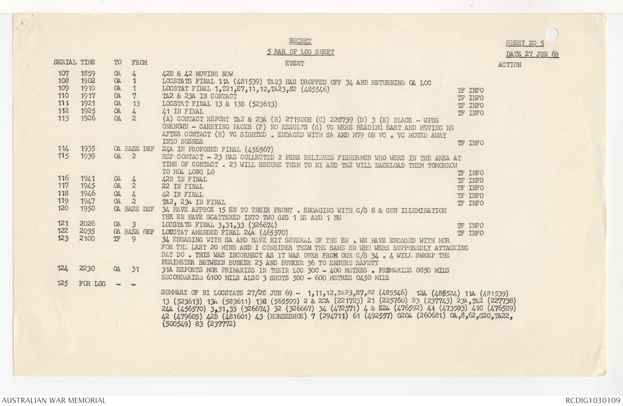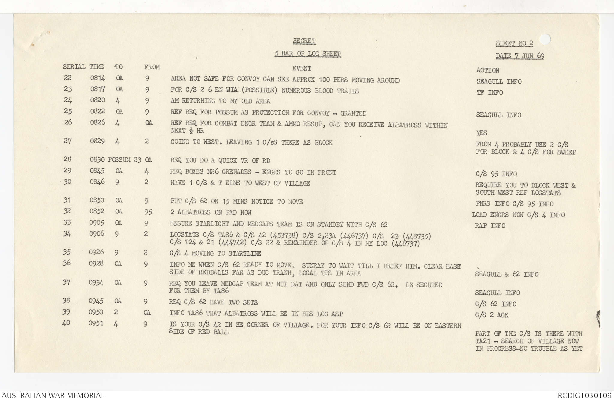 AWM95 7/5/25 - 1-30 June 1969, Narrative, Operations log, Annexes