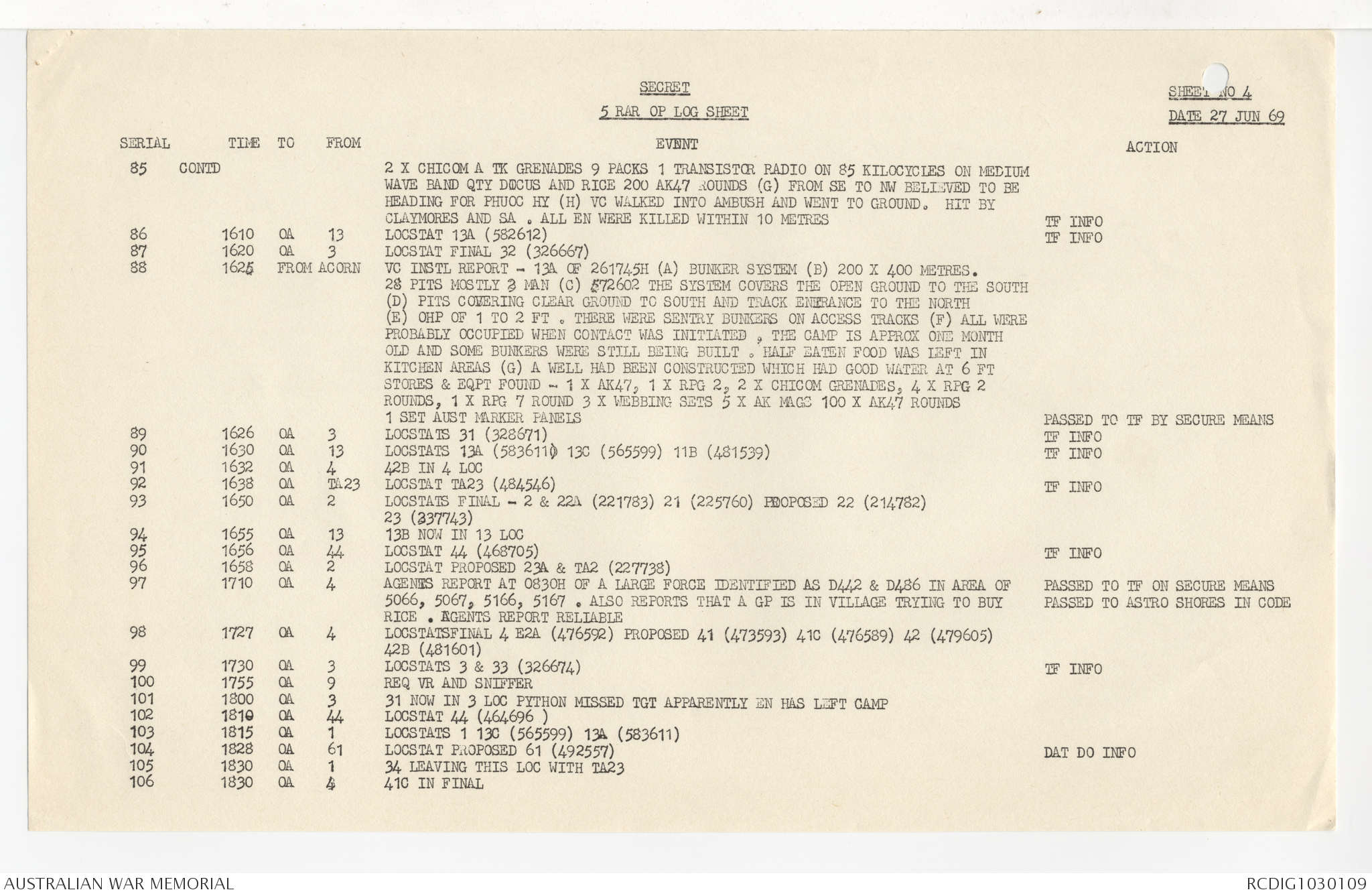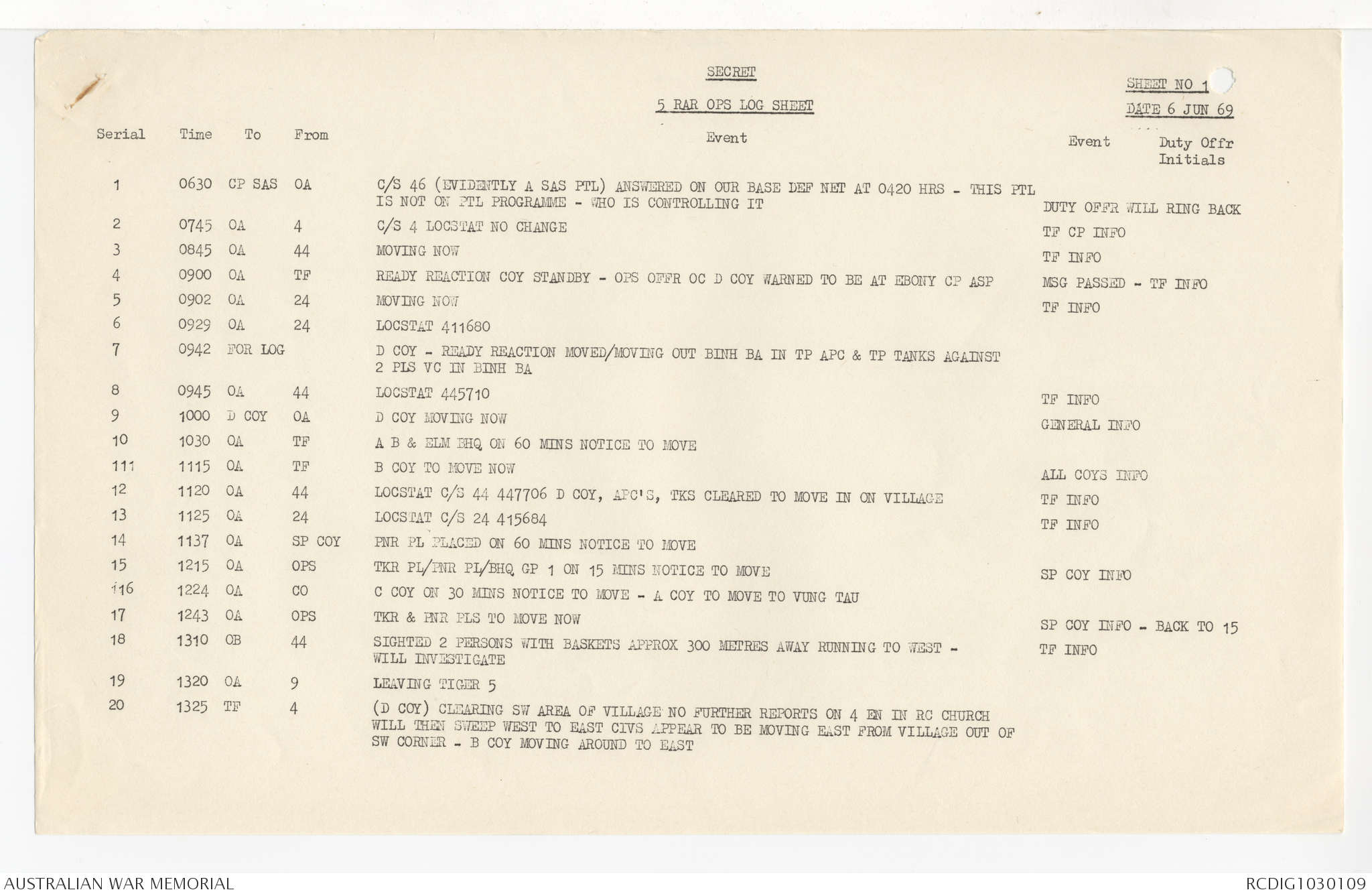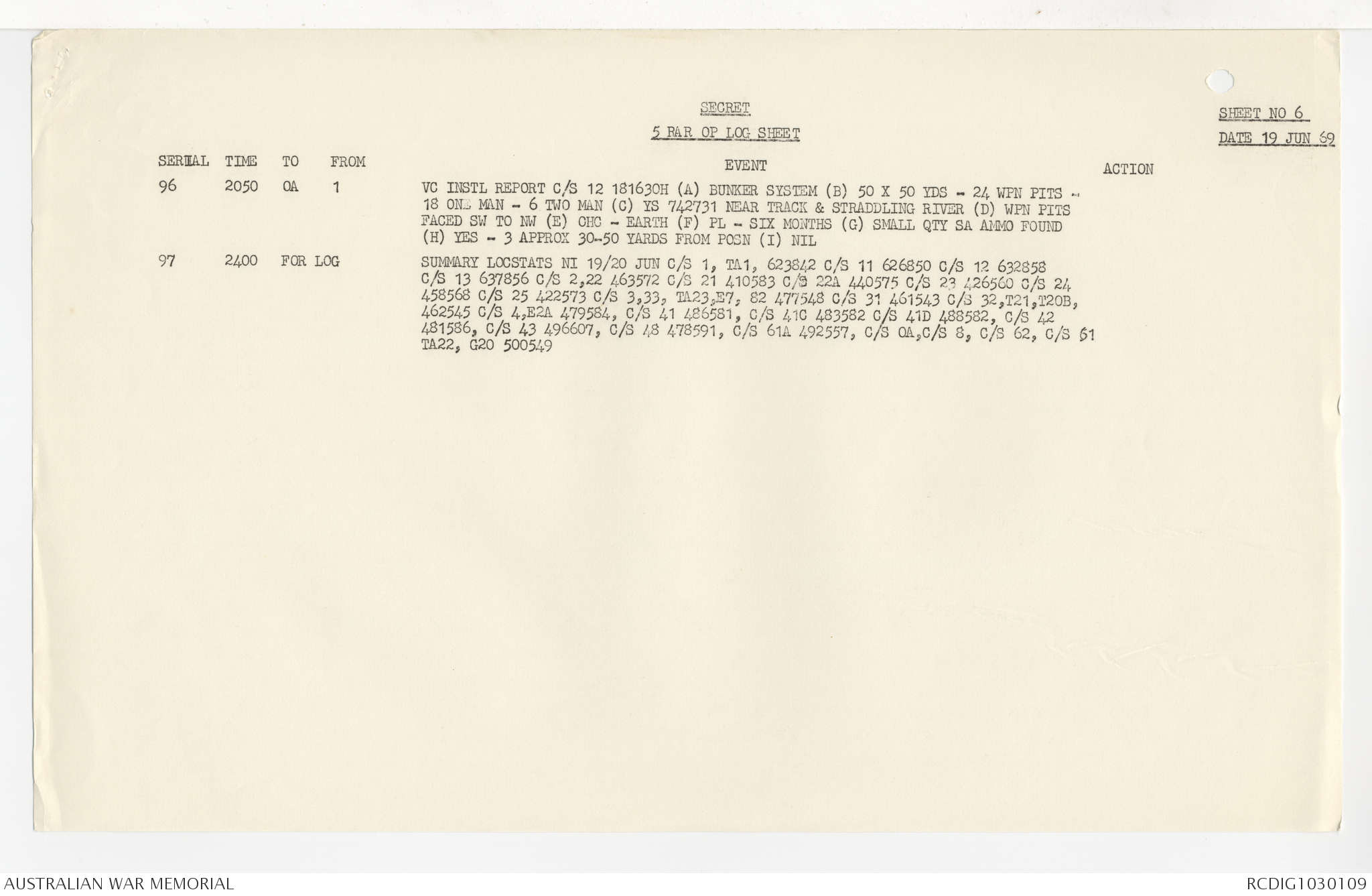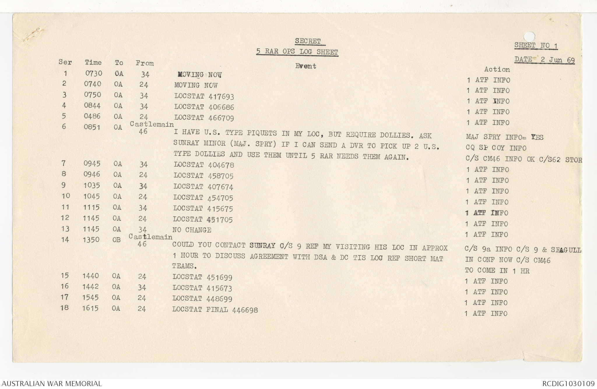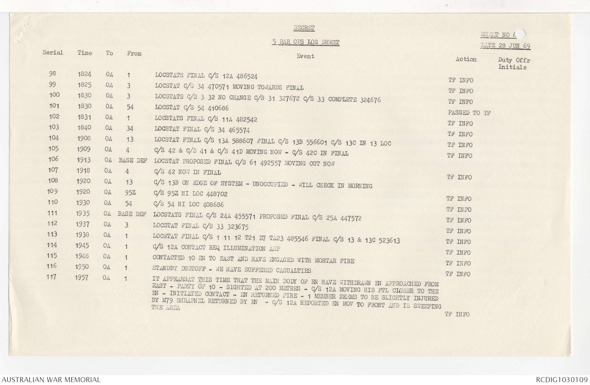 AWM95 7/5/25 - 1-30 June 1969, Narrative, Operations log, Annexes