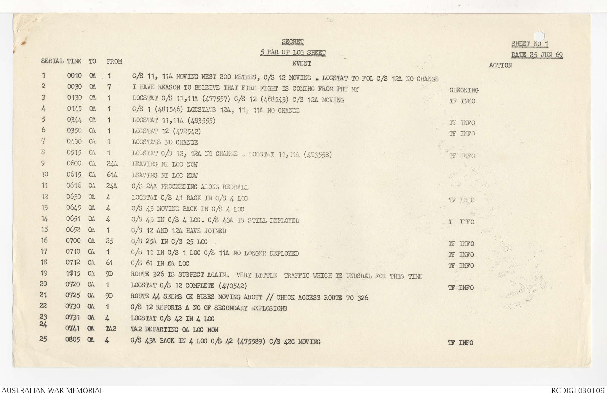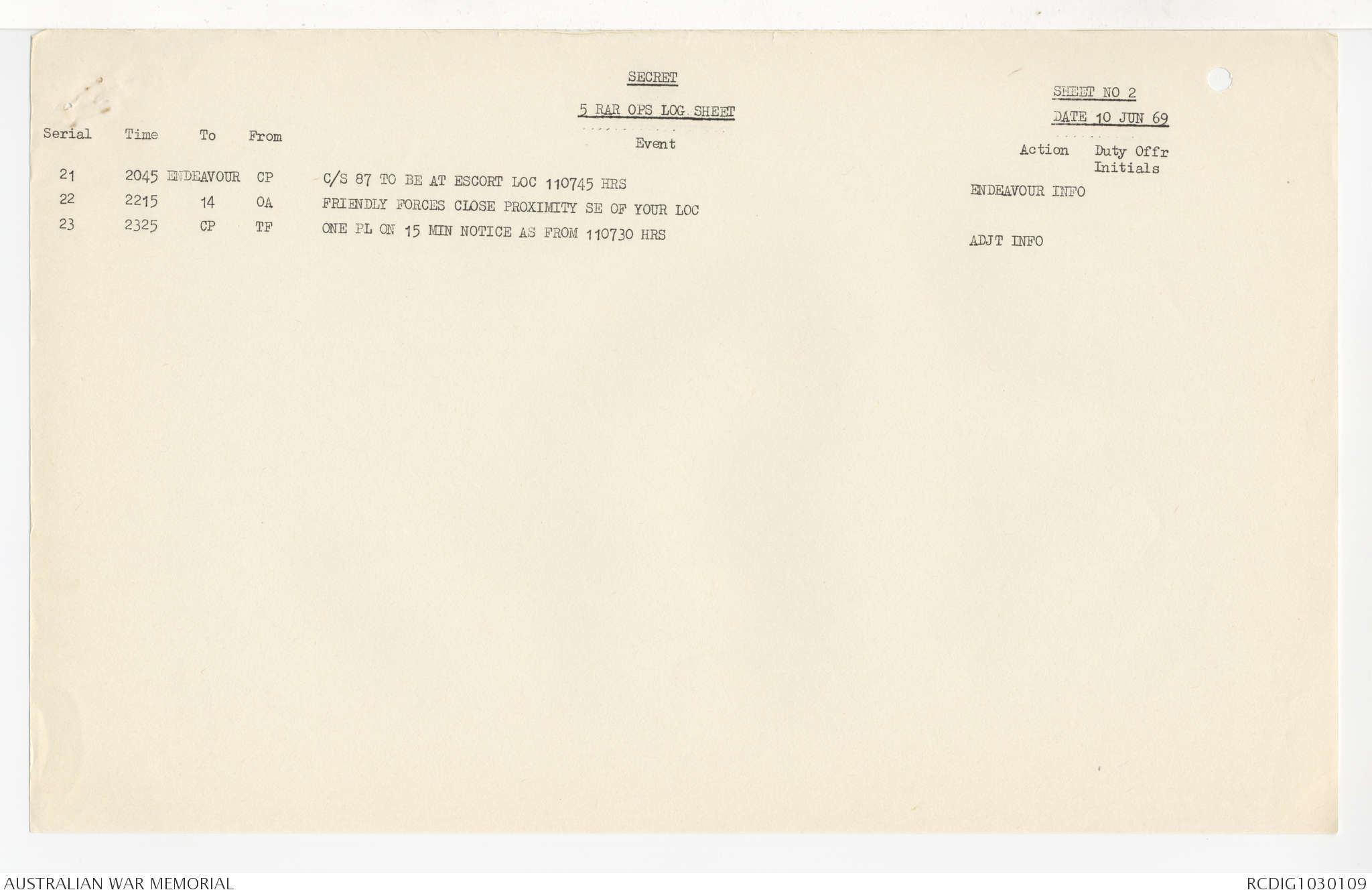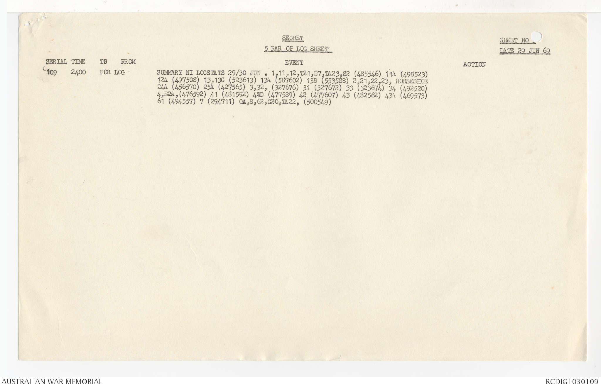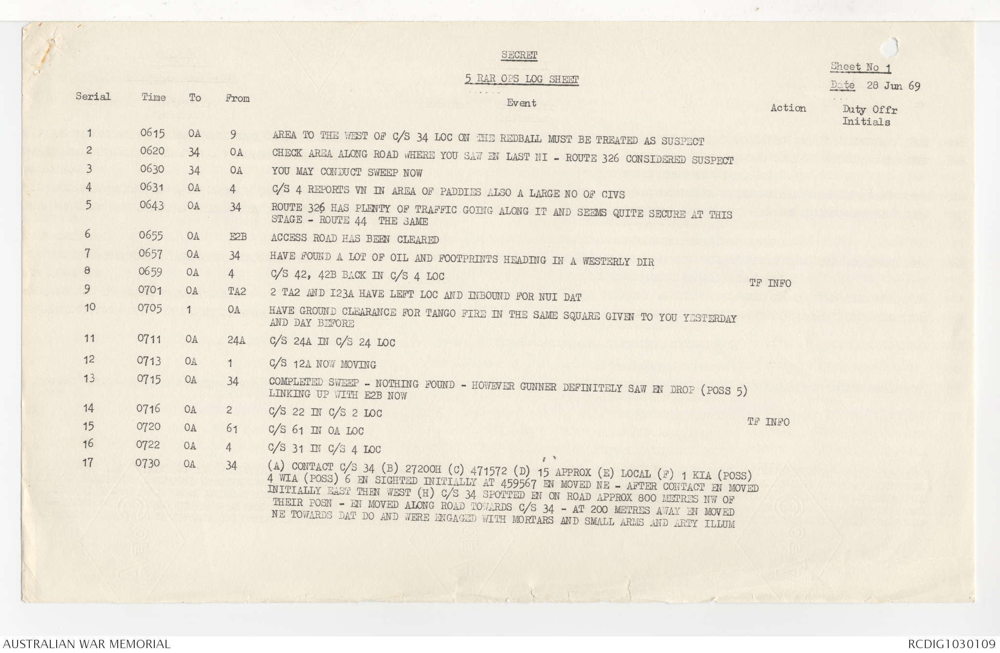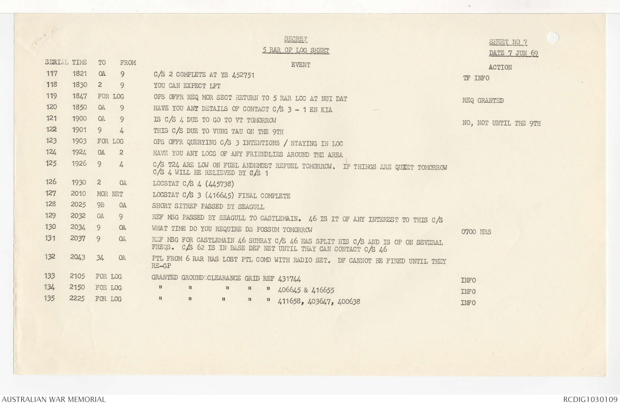 AWM95 7/5/25 - 1-30 June 1969, Narrative, Operations log, Annexes