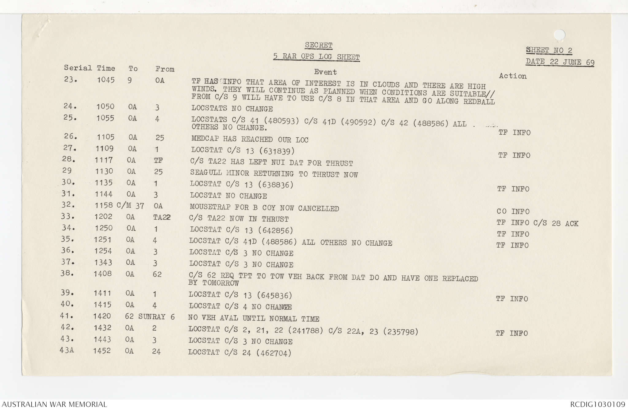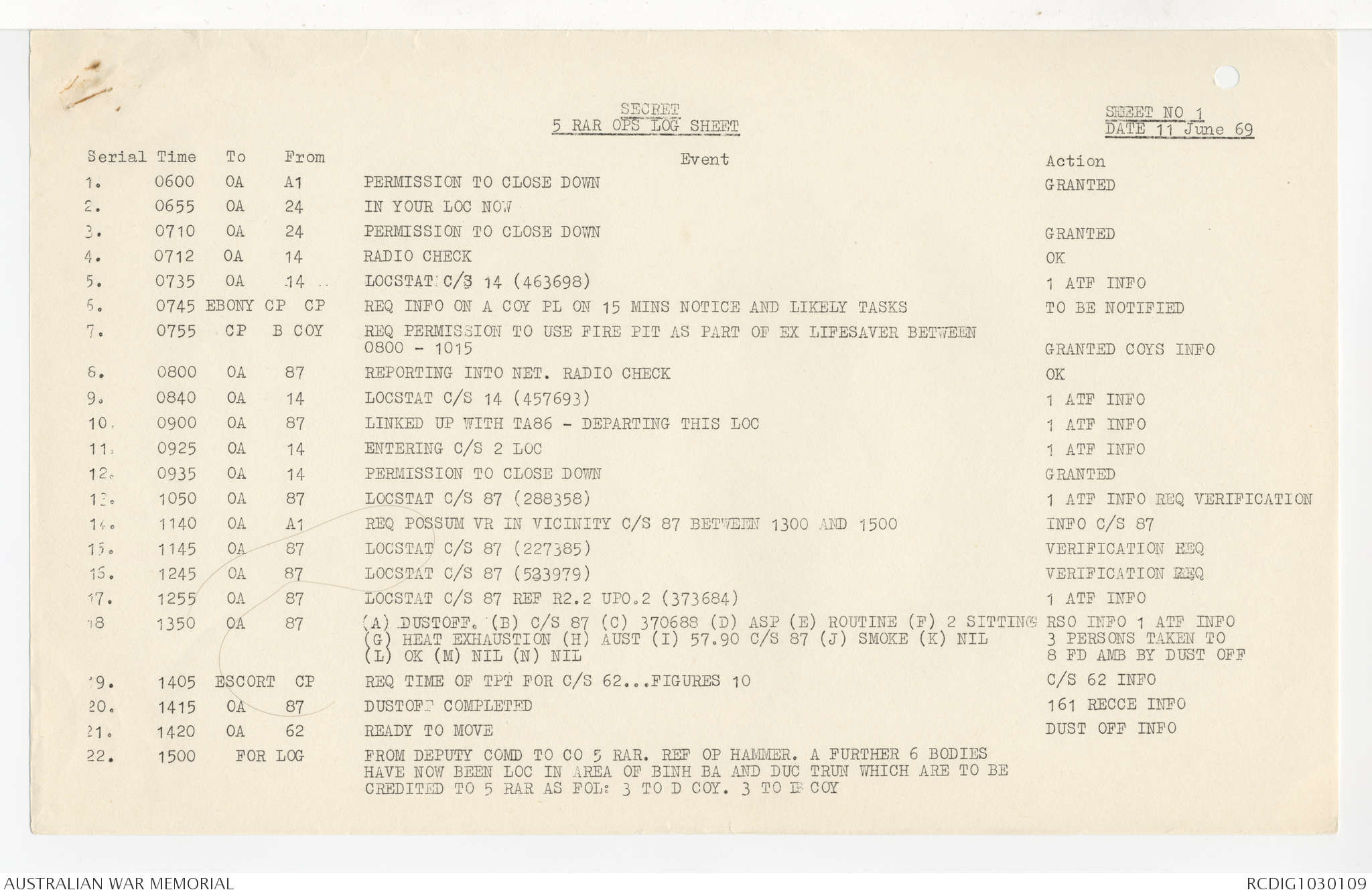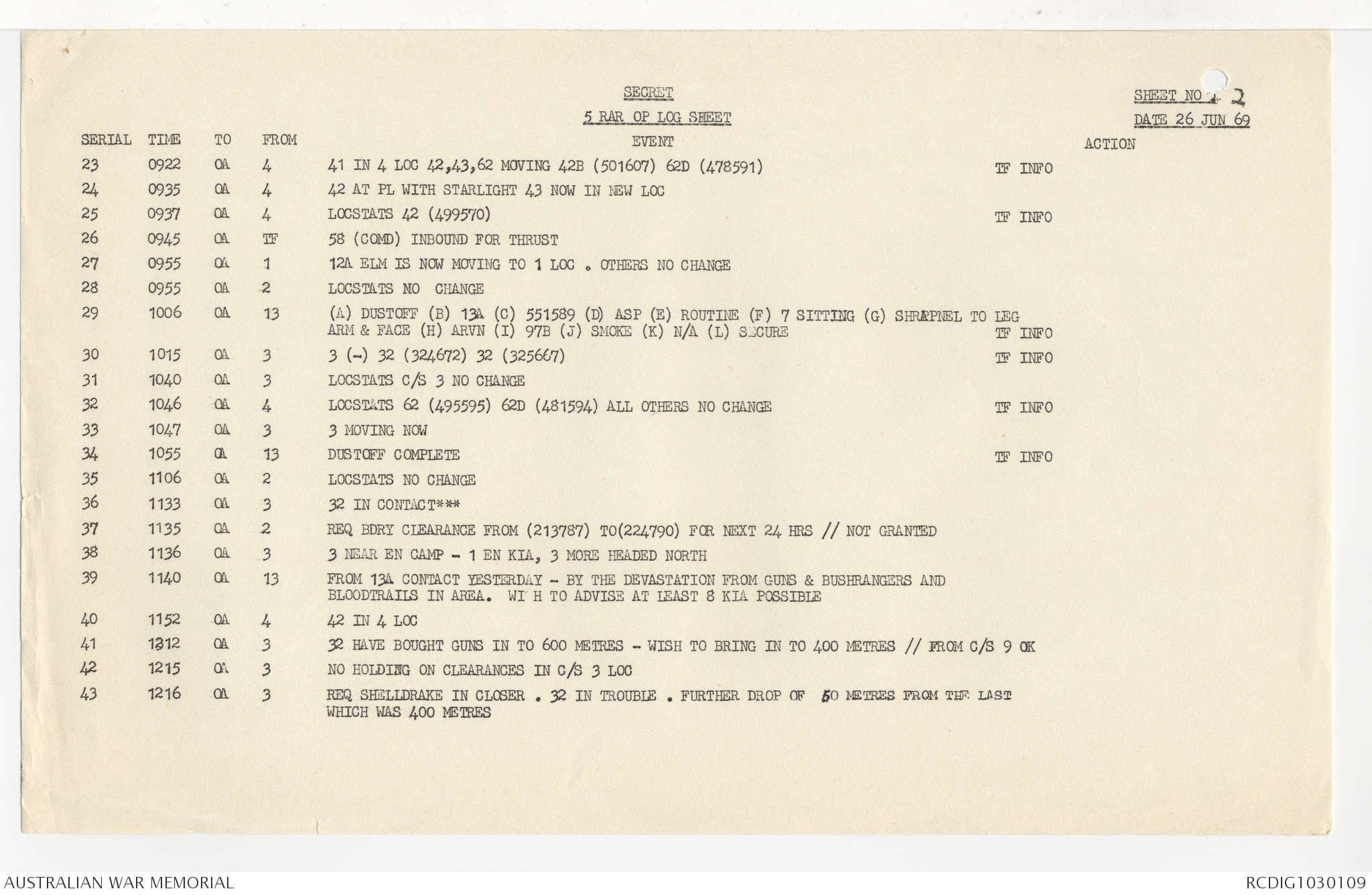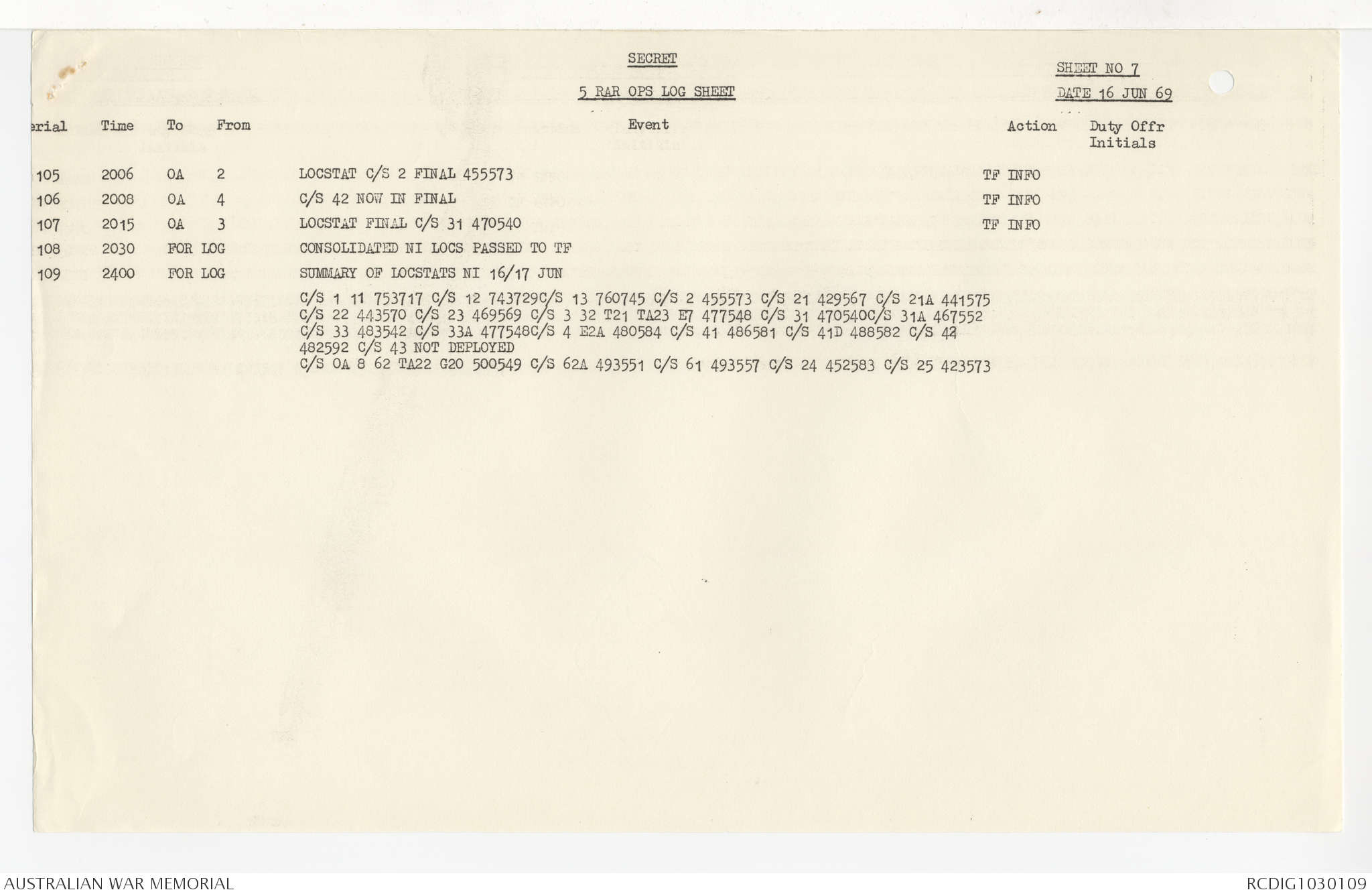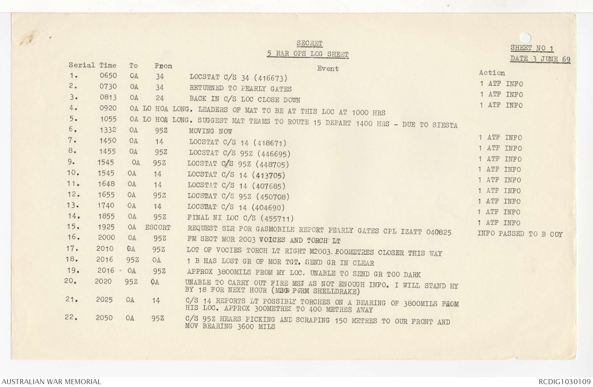 AWM95 7/5/25 - 1-30 June 1969, Narrative, Operations log, Annexes