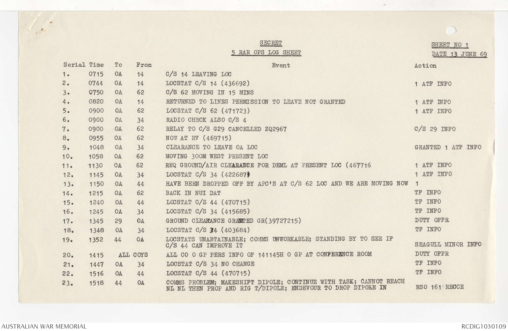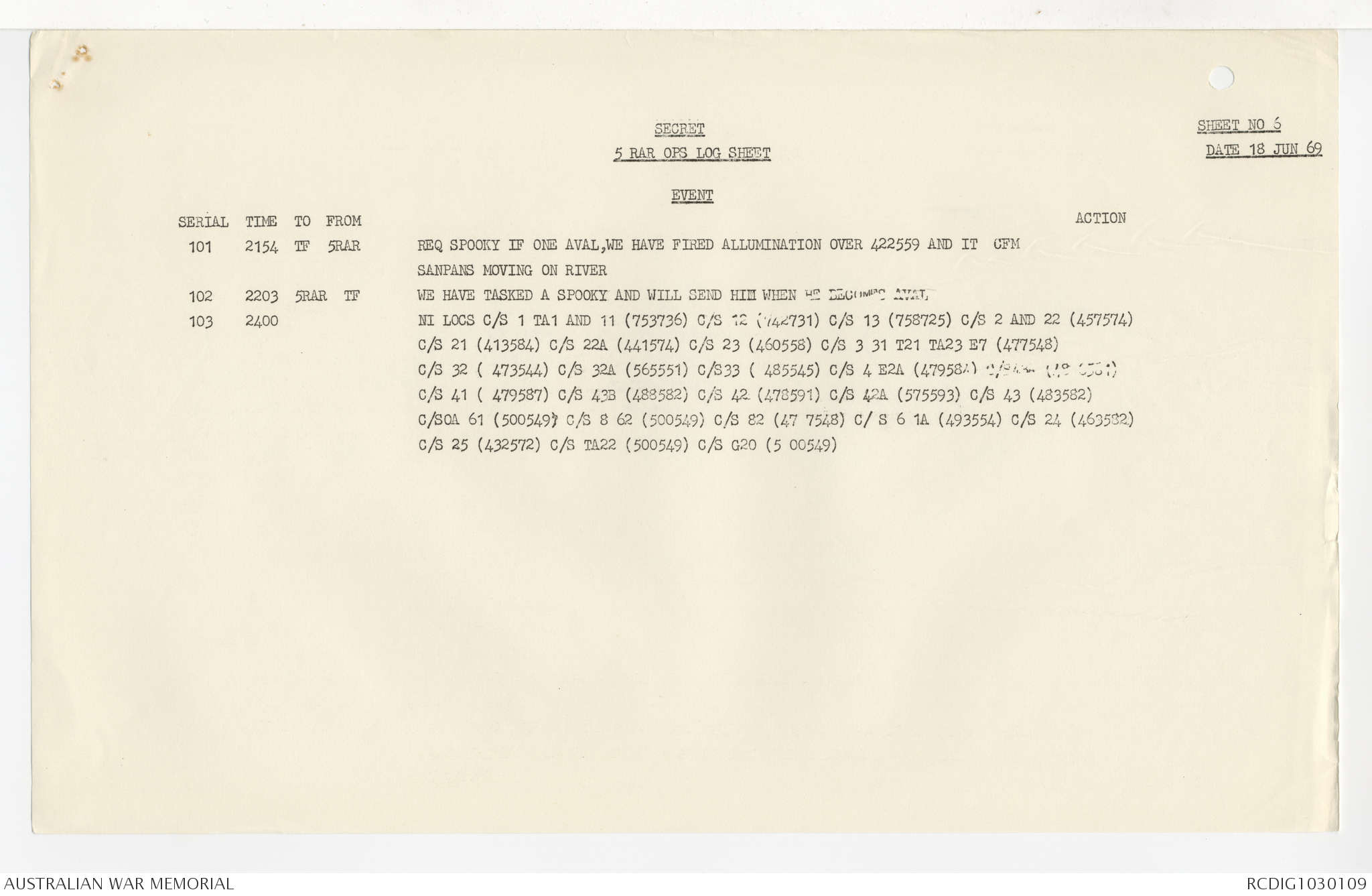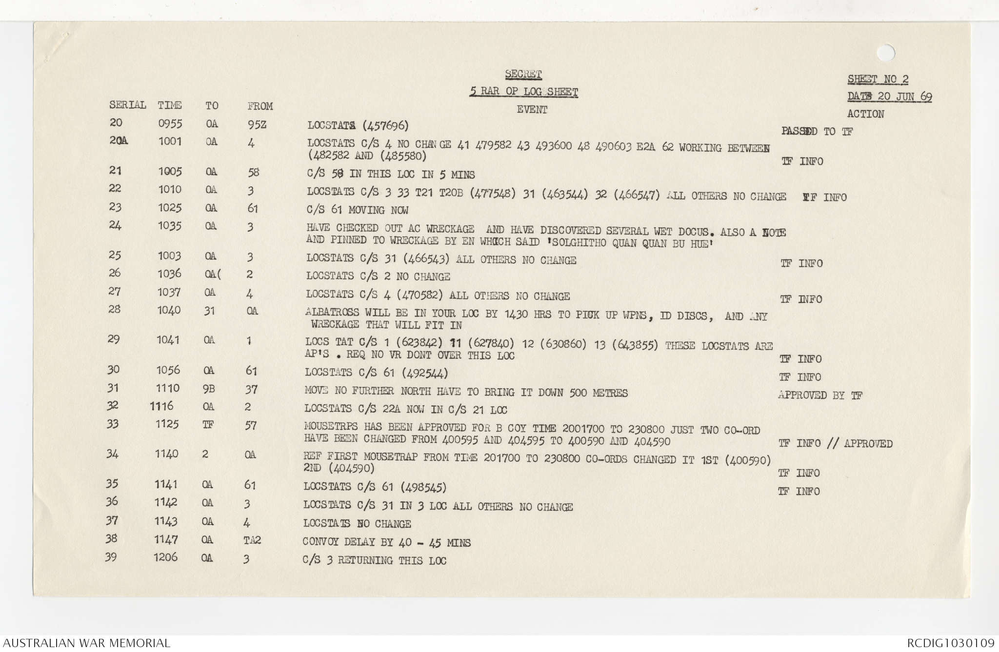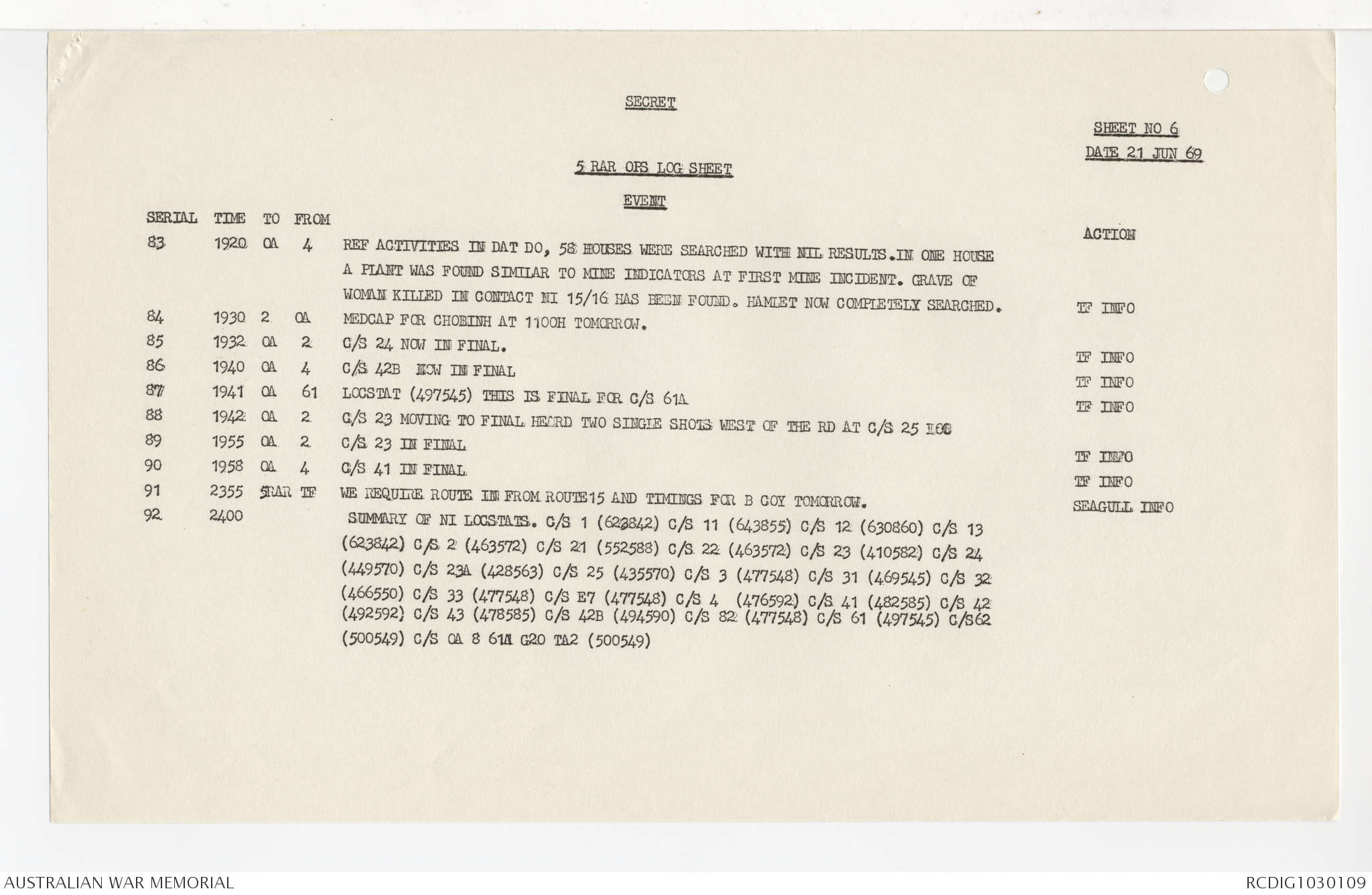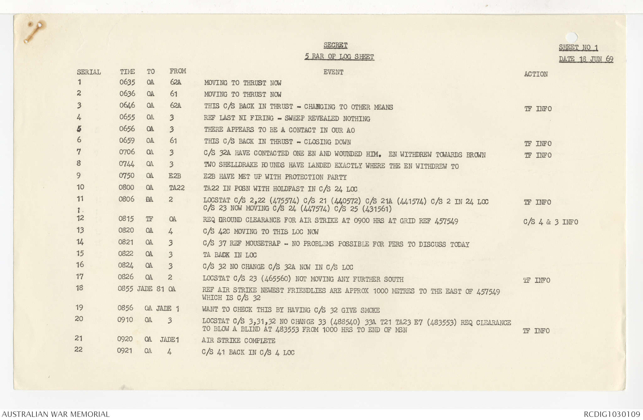 AWM95 7/5/25 - 1-30 June 1969, Narrative, Operations log, Annexes