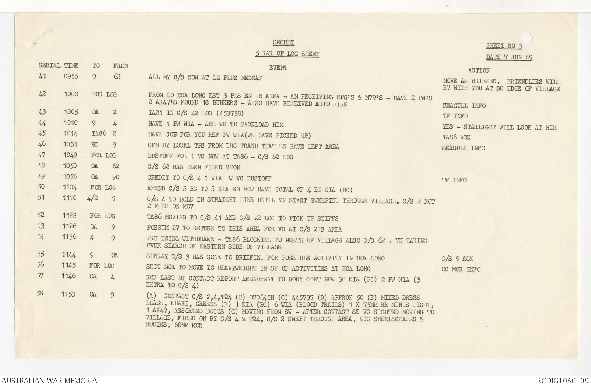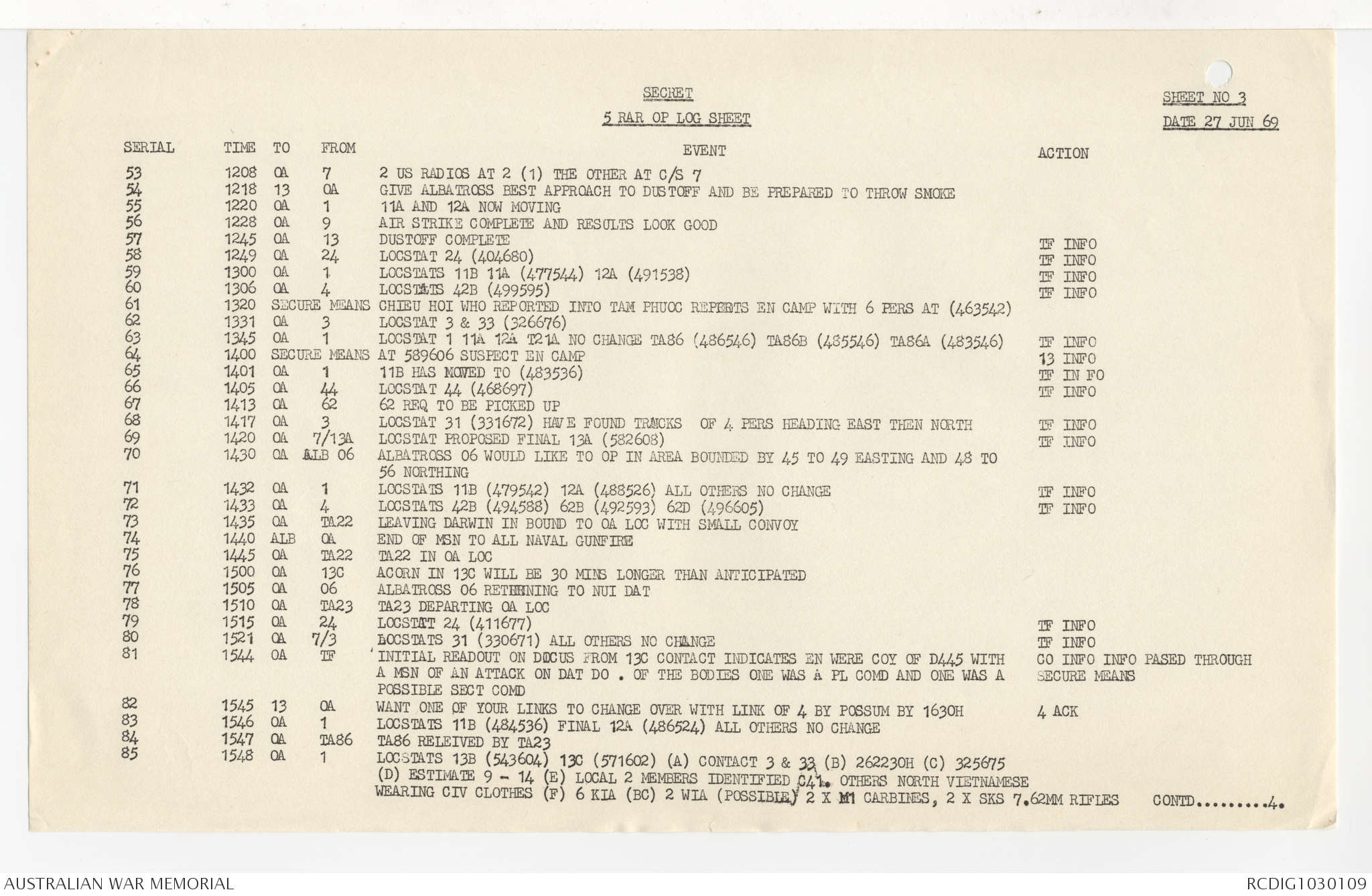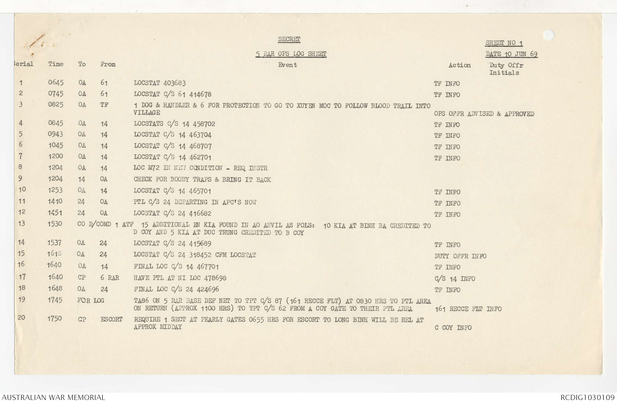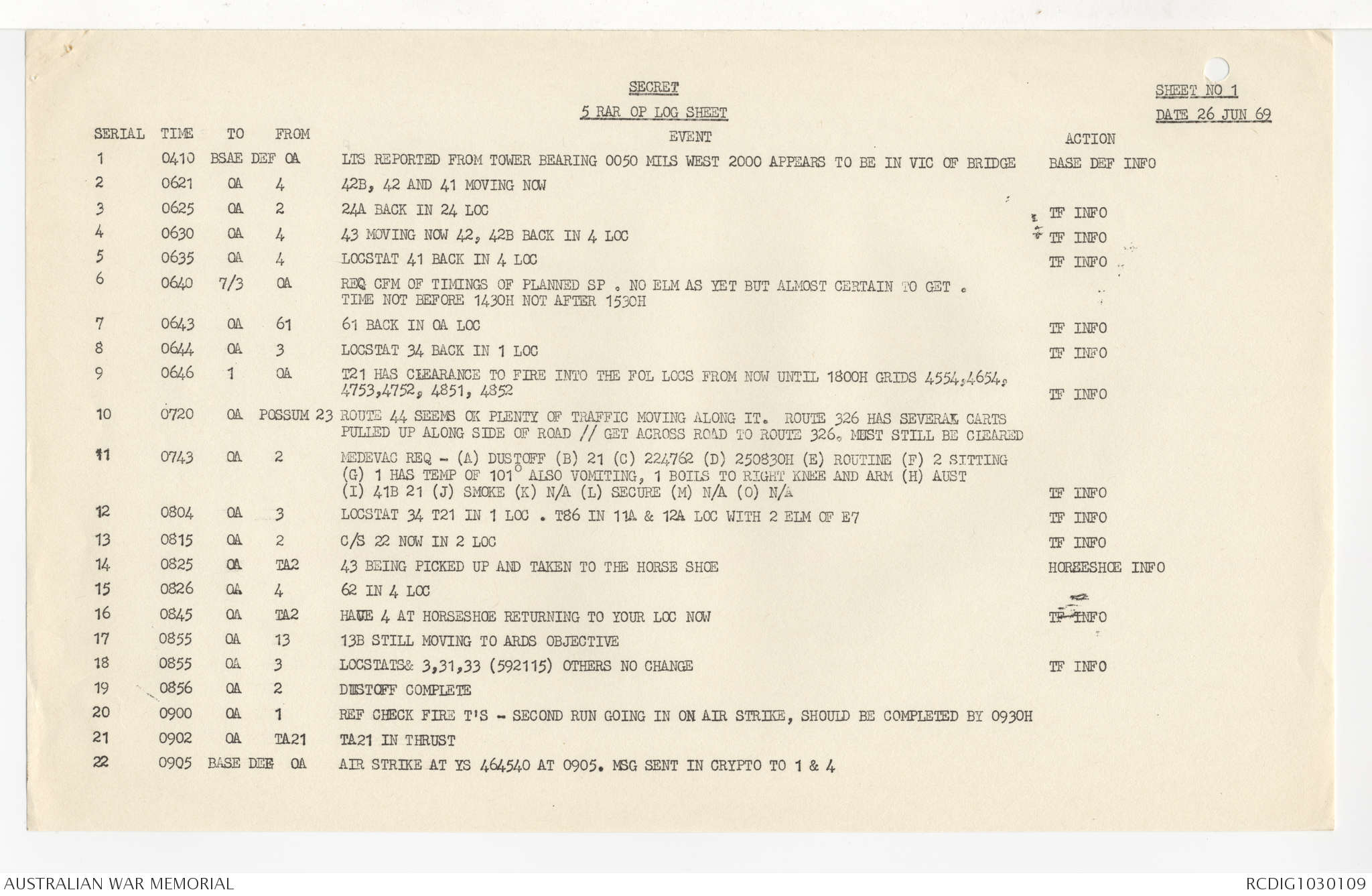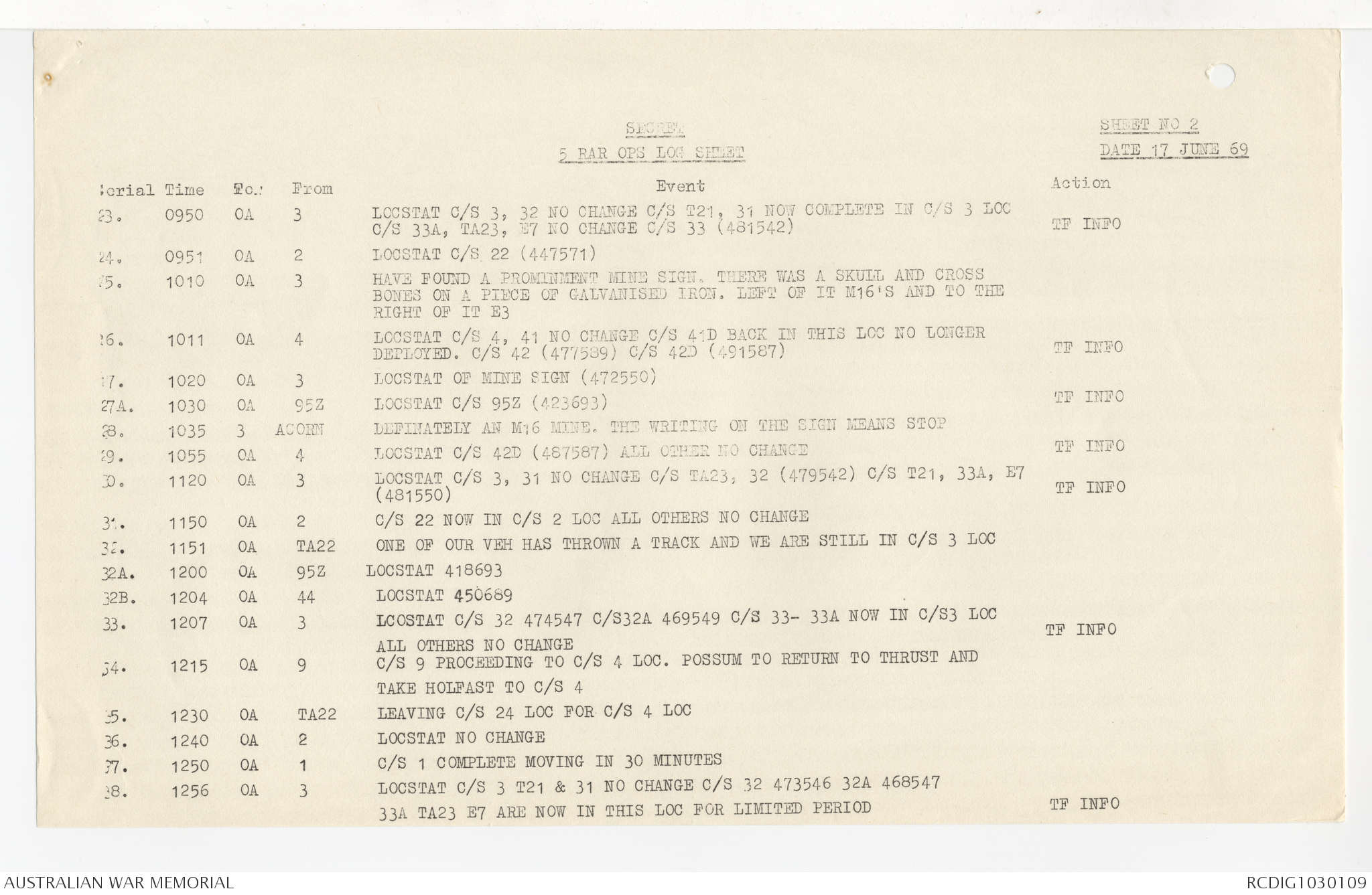AWM95 7/5/25 - 1-30 June 1969, Narrative, Operations log, Annexes