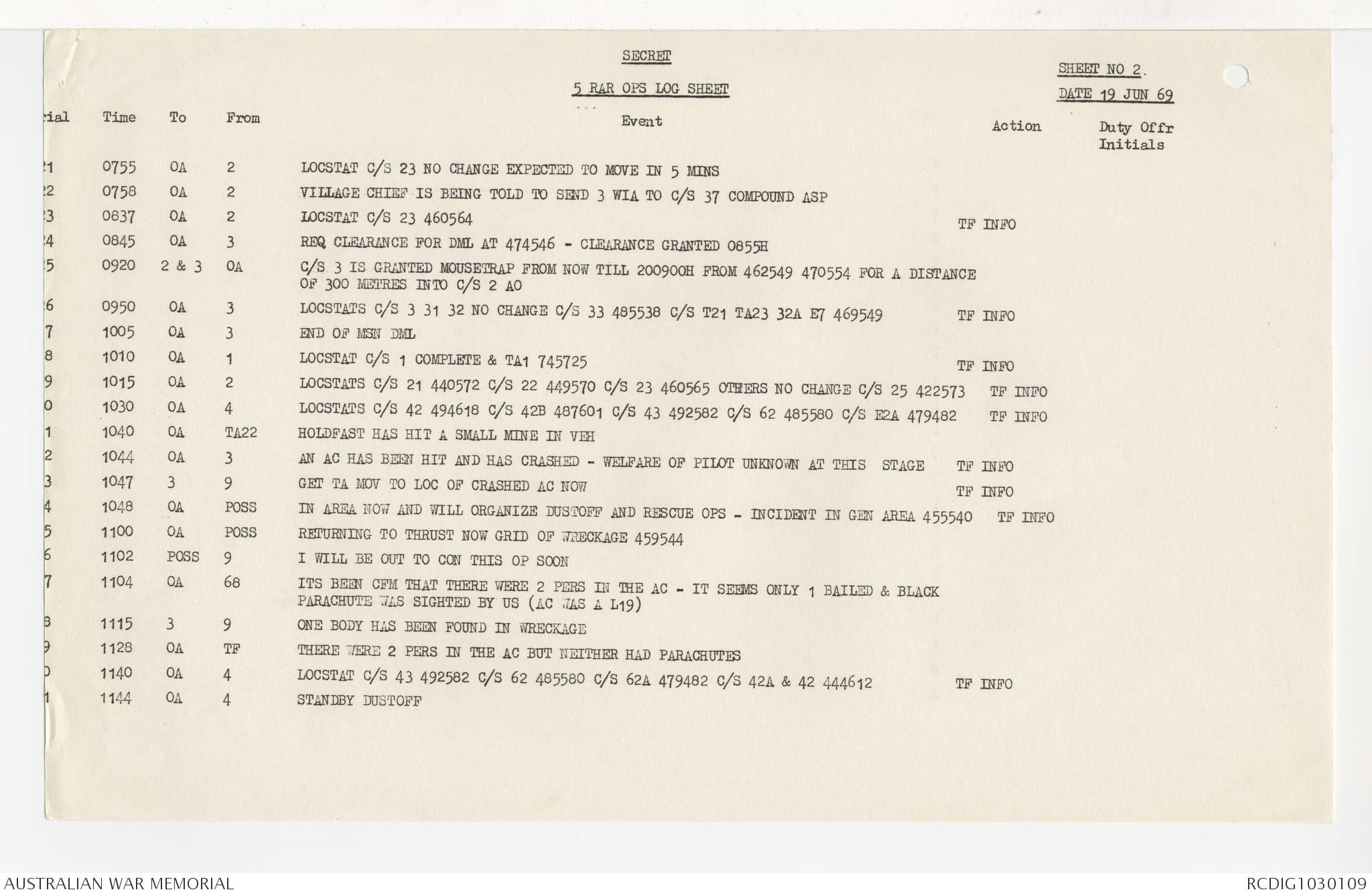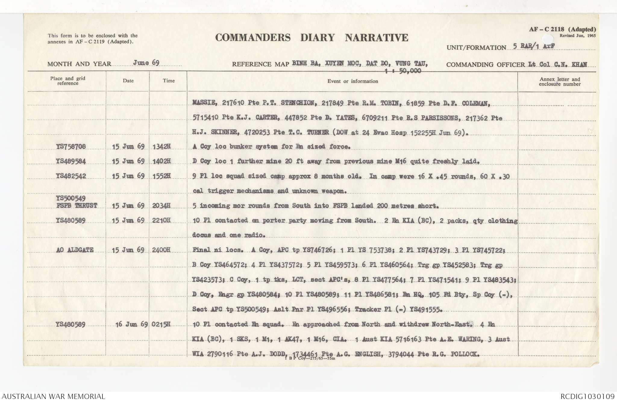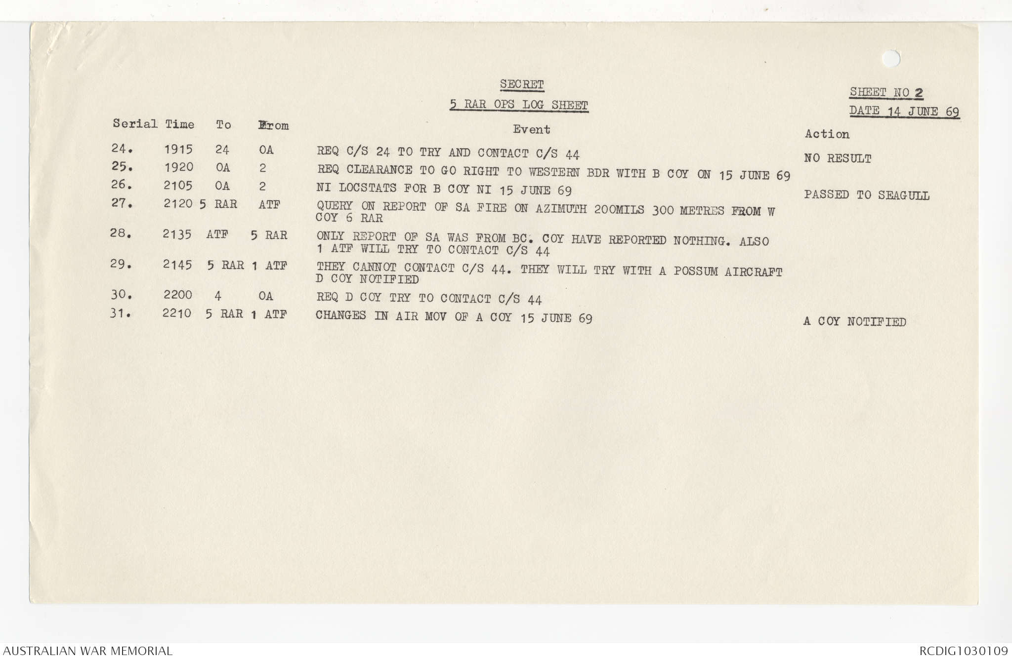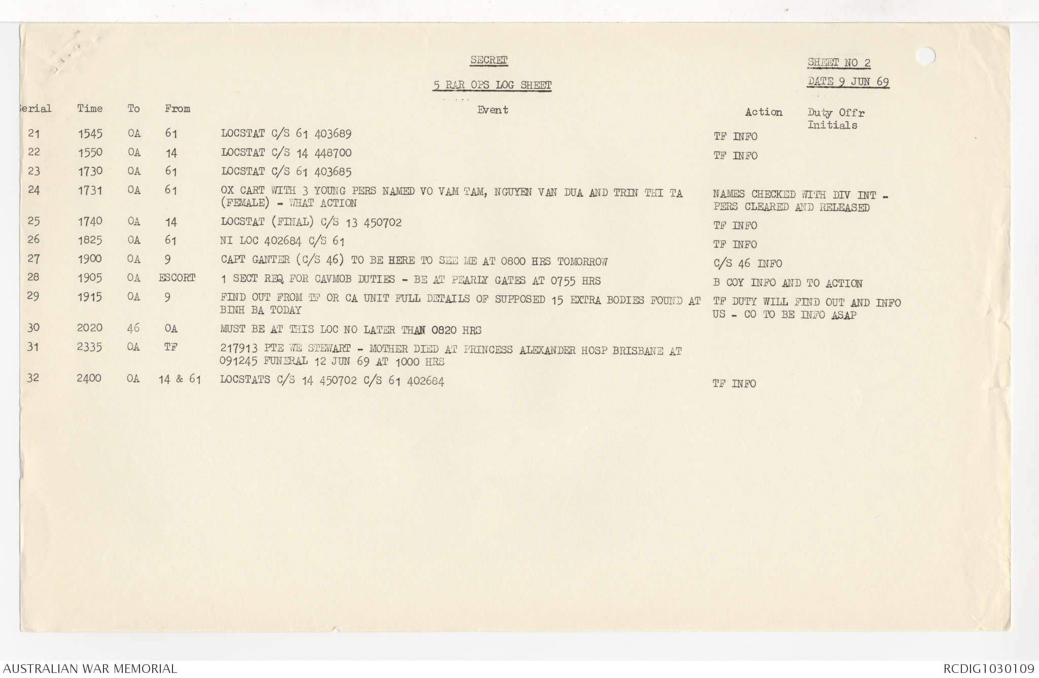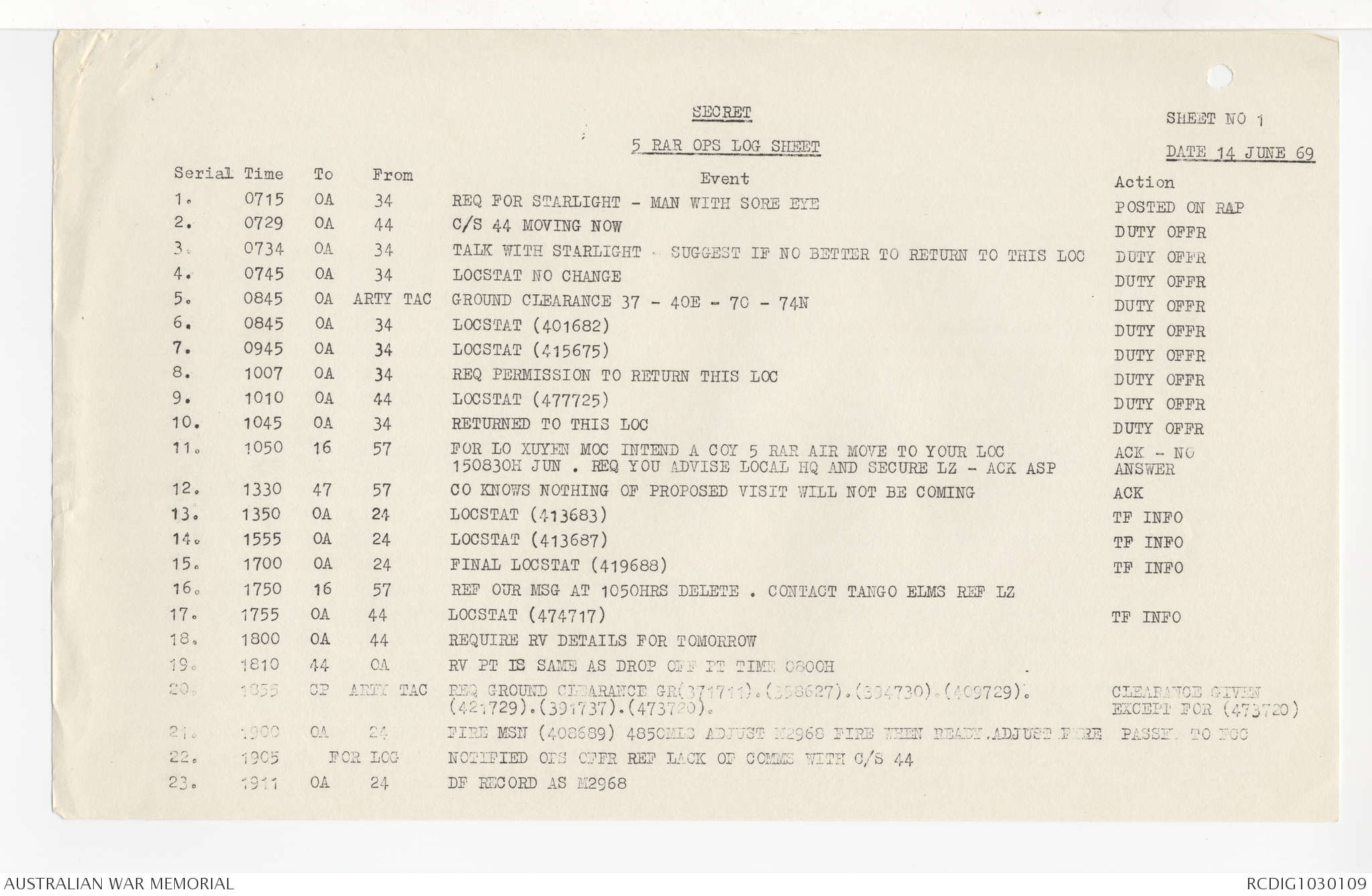 AWM95 7/5/25 - 1-30 June 1969, Narrative, Operations log, Annexes