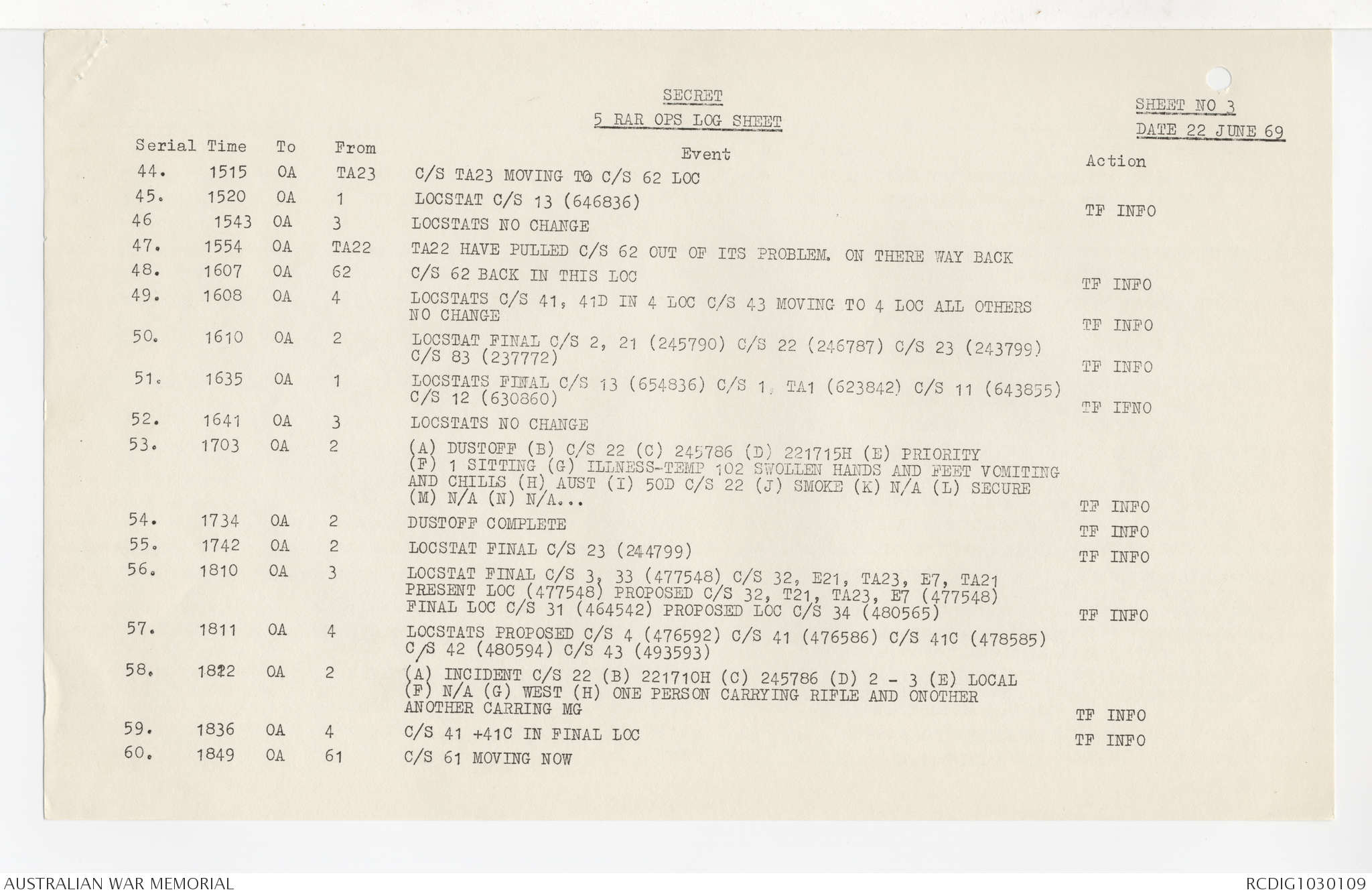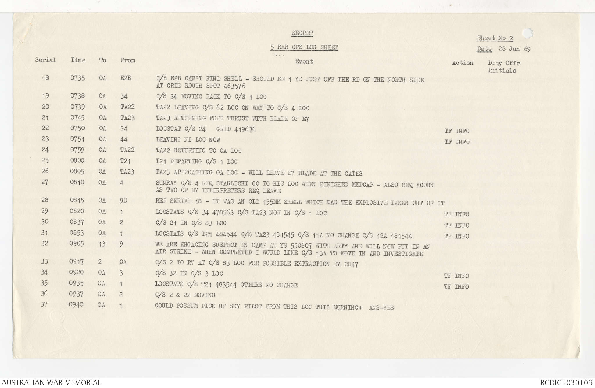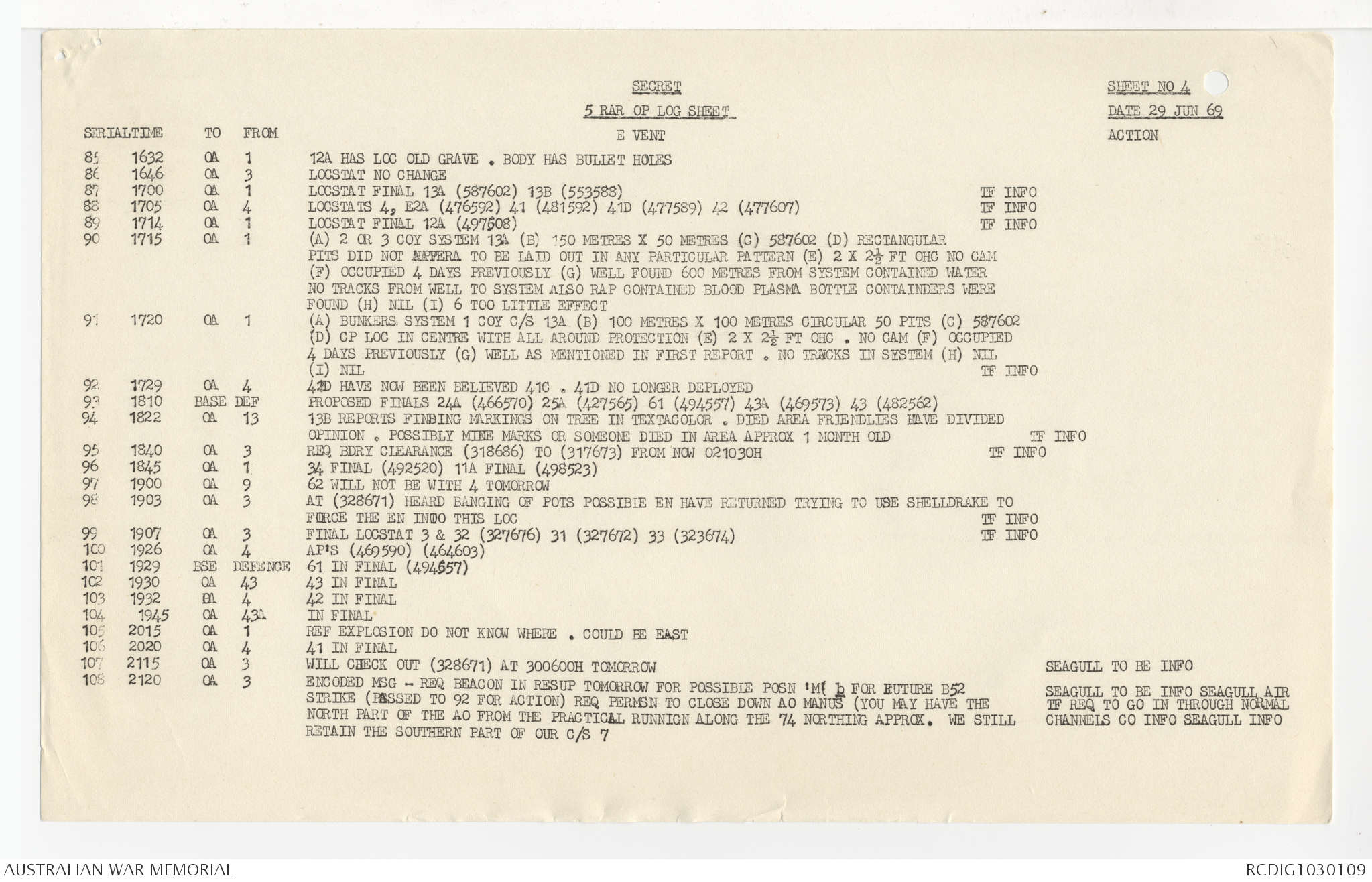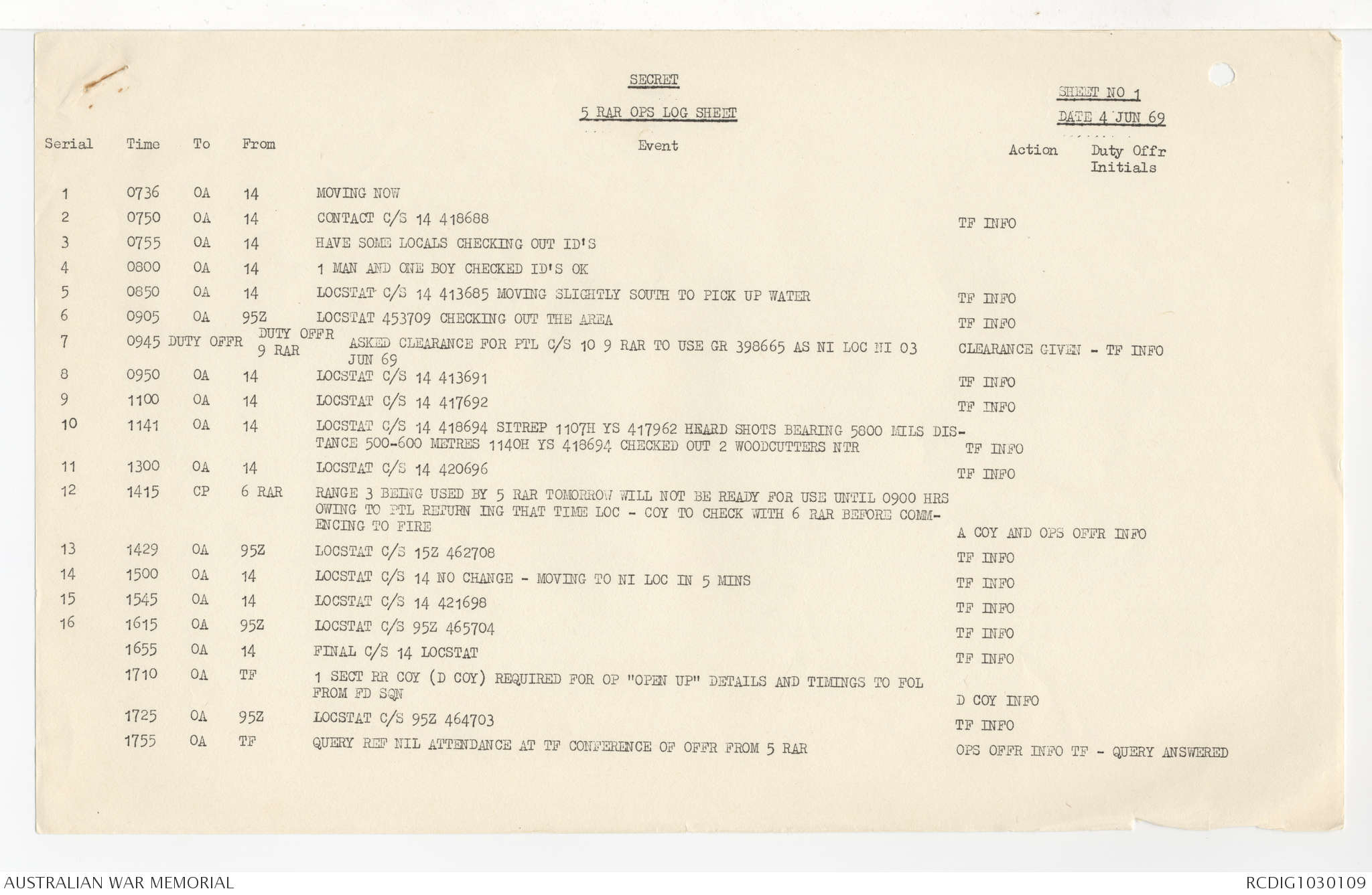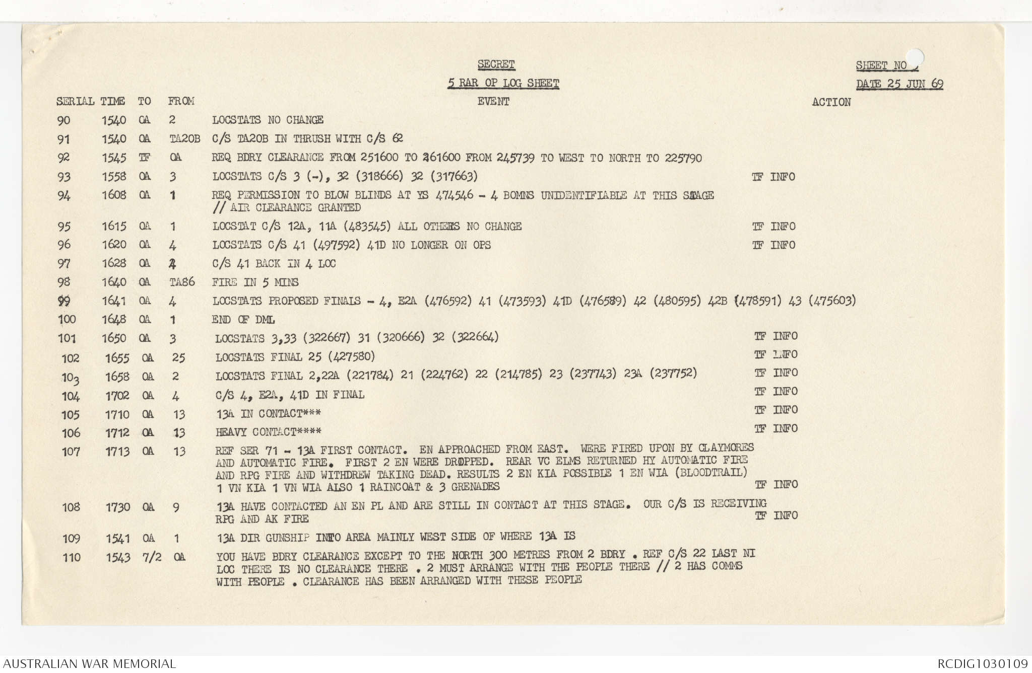 AWM95 7/5/25 - 1-30 June 1969, Narrative, Operations log, Annexes