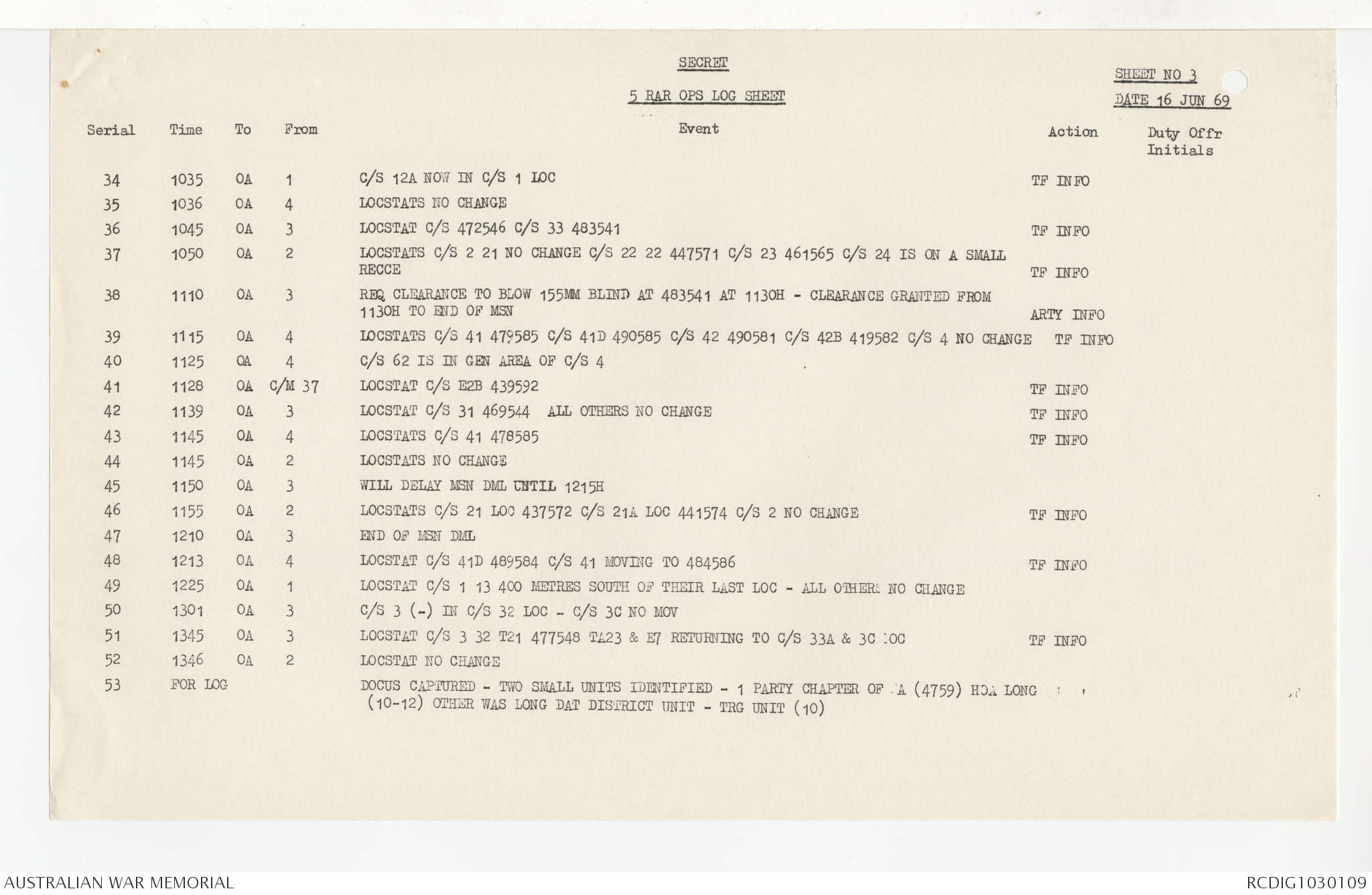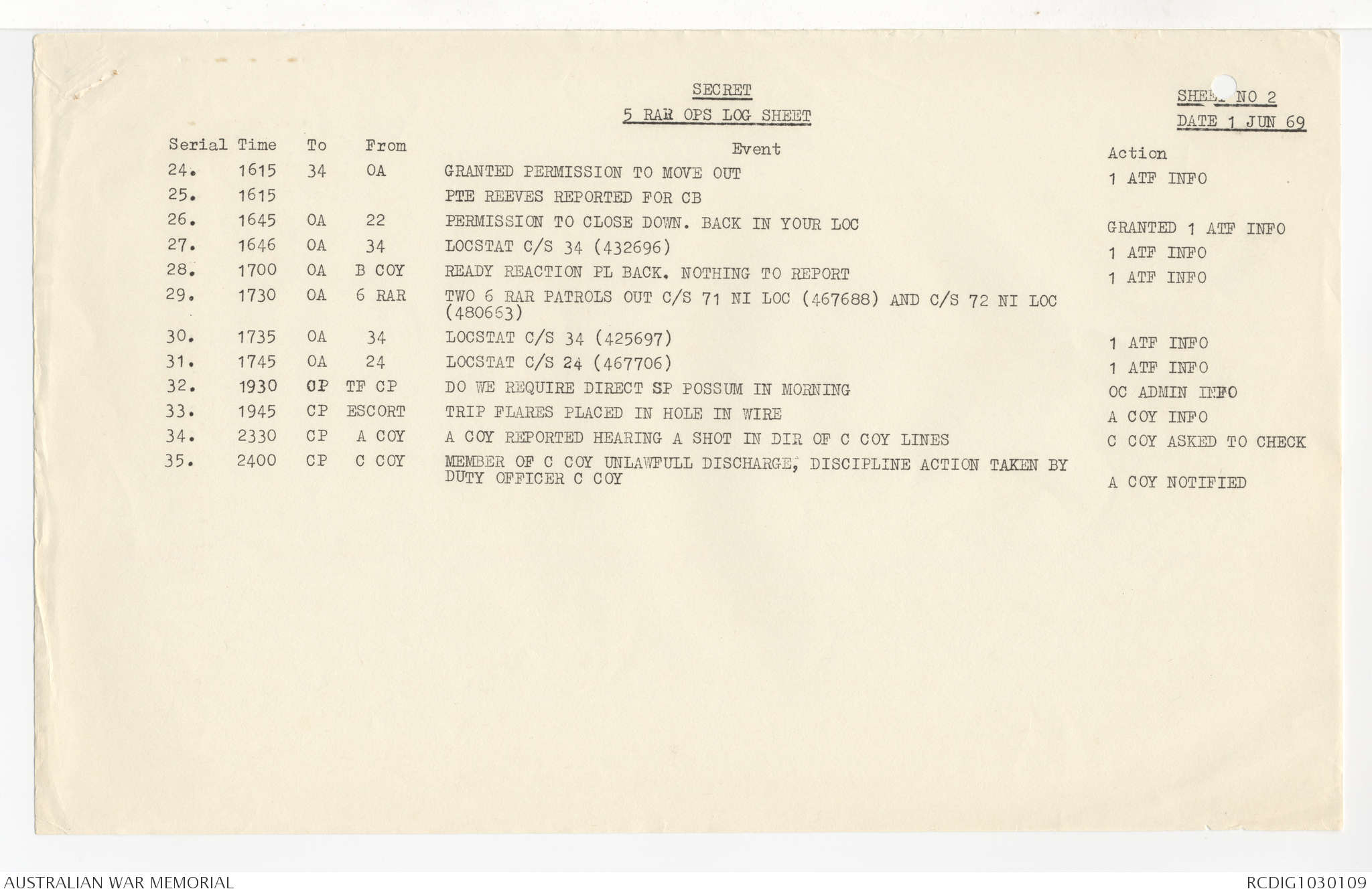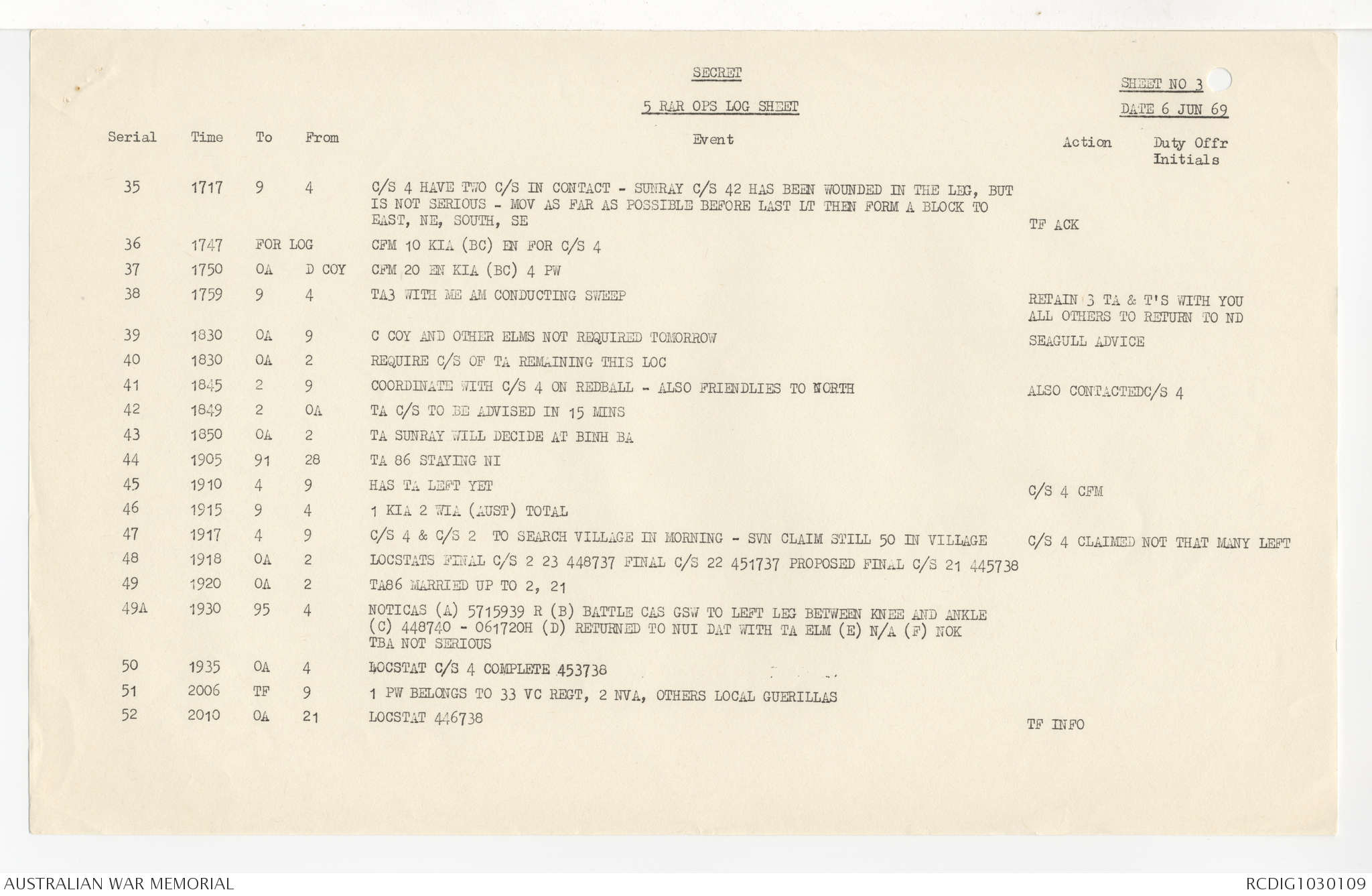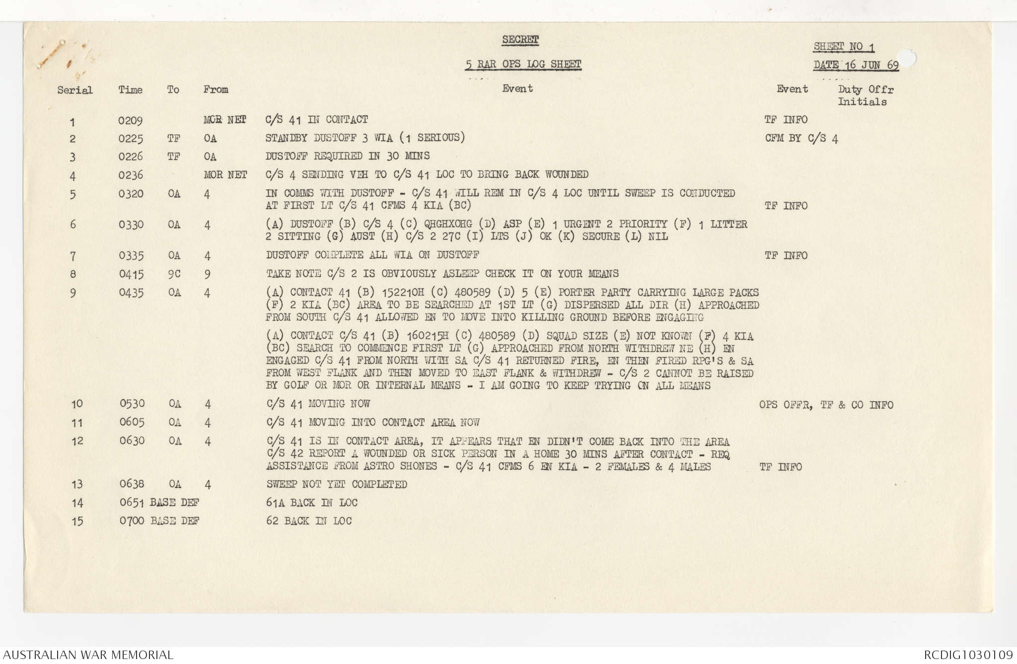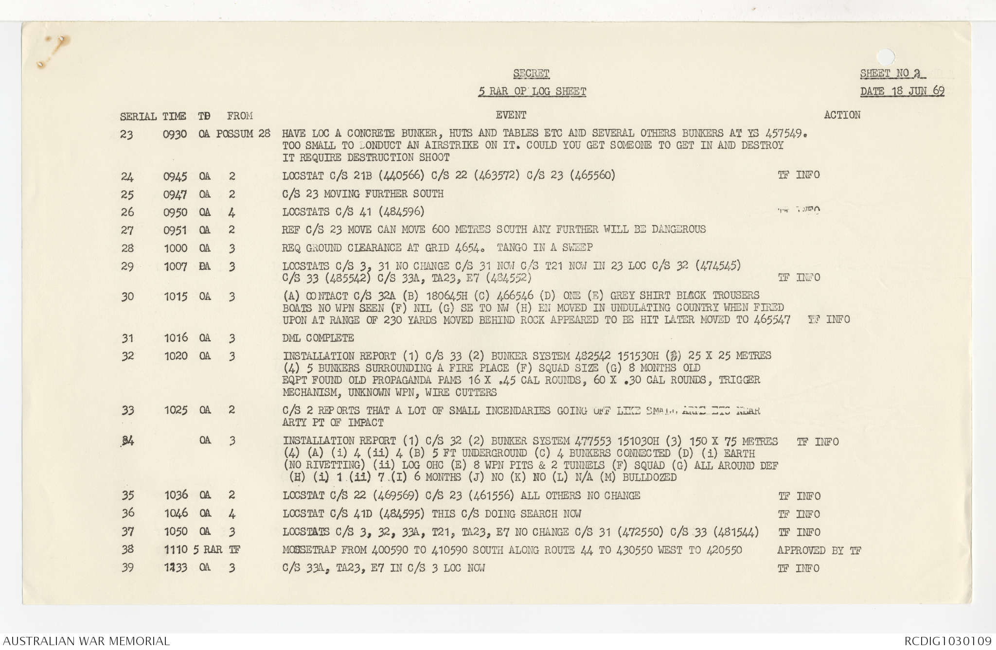 AWM95 7/5/25 - 1-30 June 1969, Narrative, Operations log, Annexes