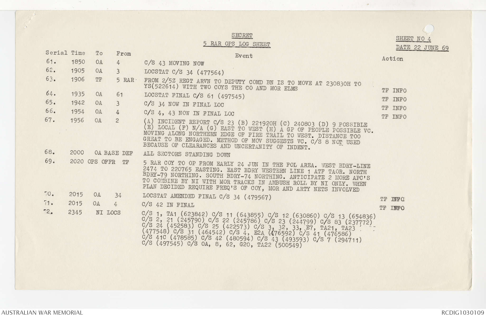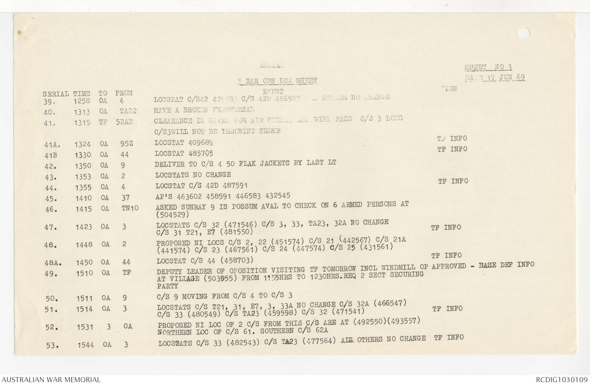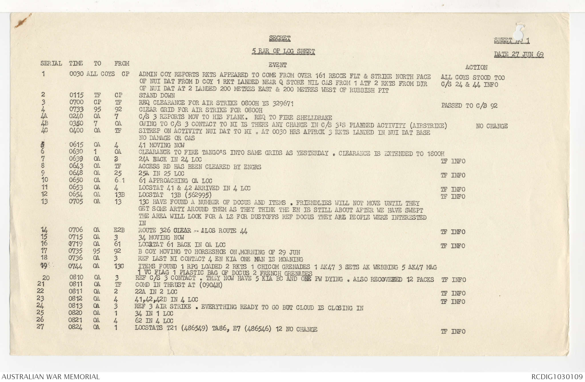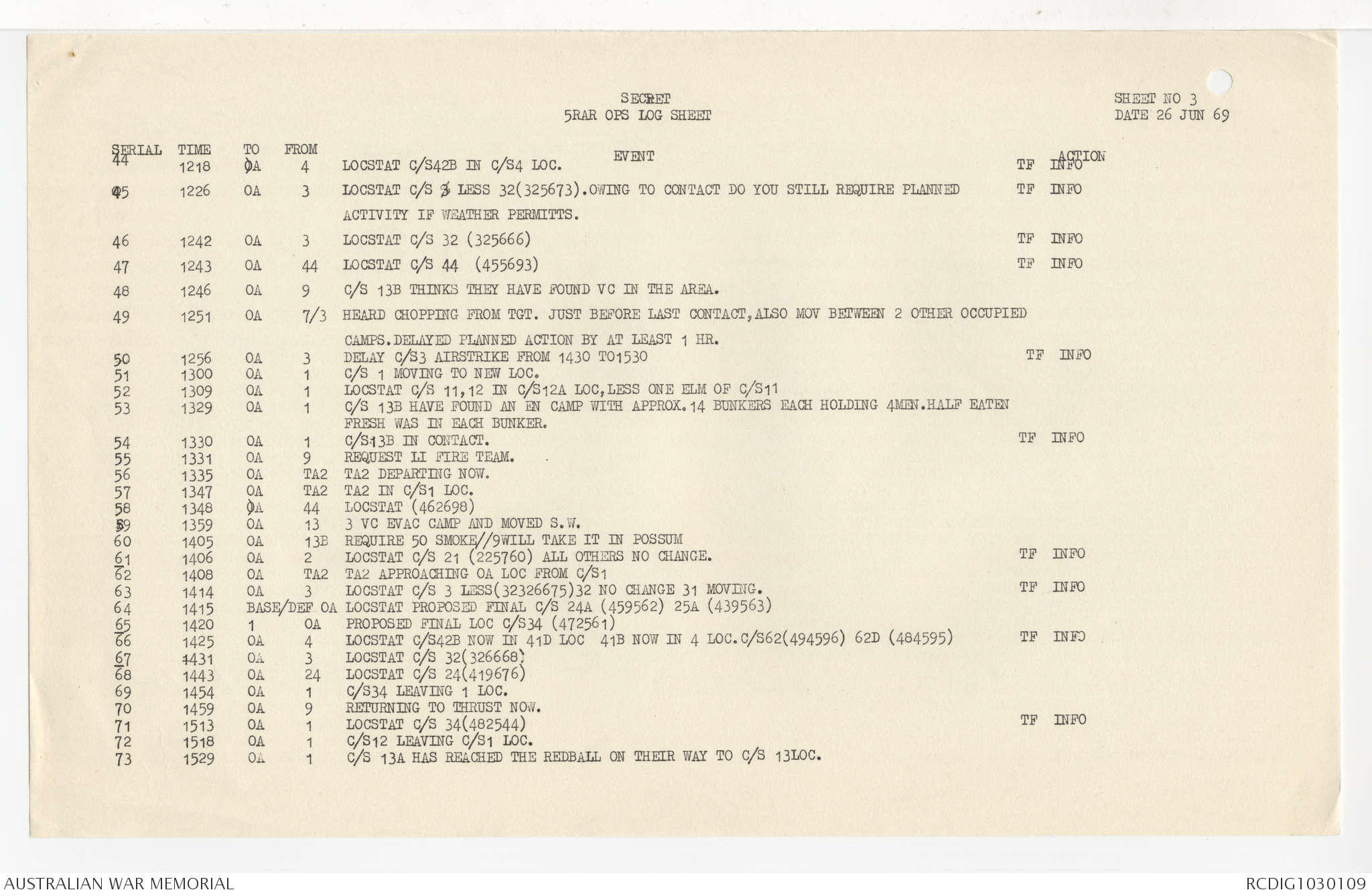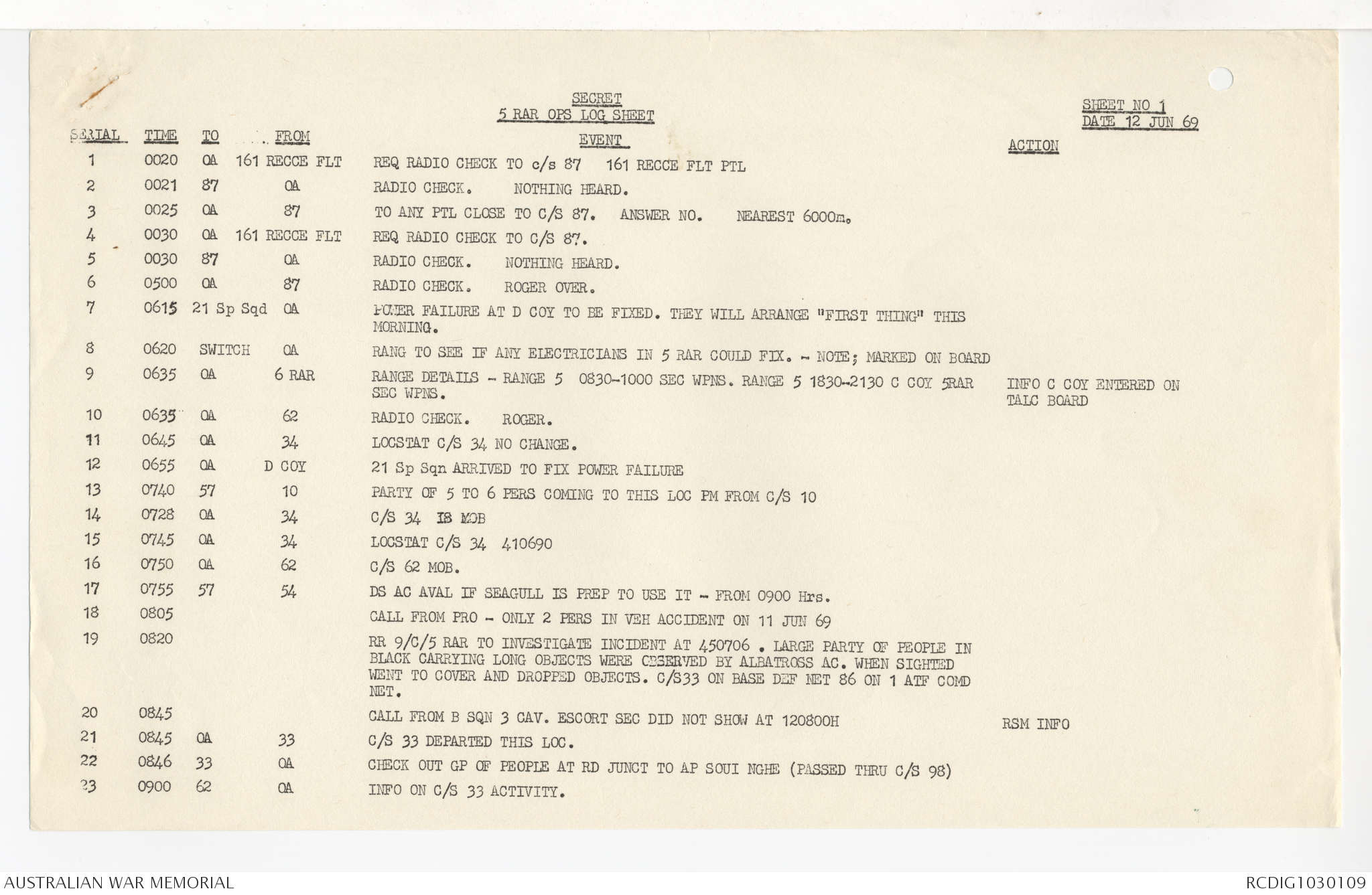 AWM95 7/5/25 - 1-30 June 1969, Narrative, Operations log, Annexes