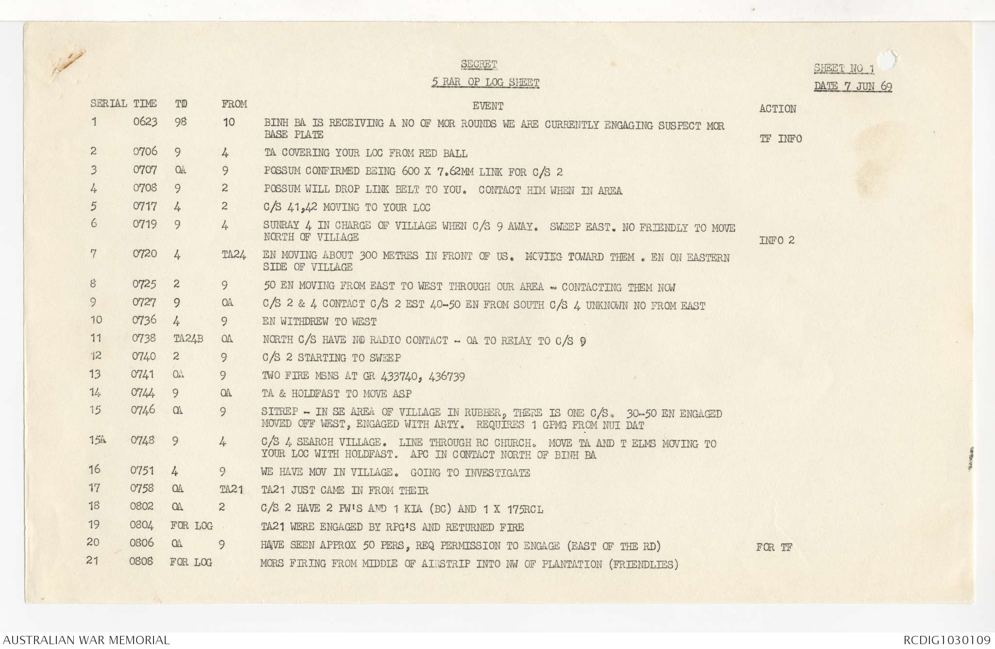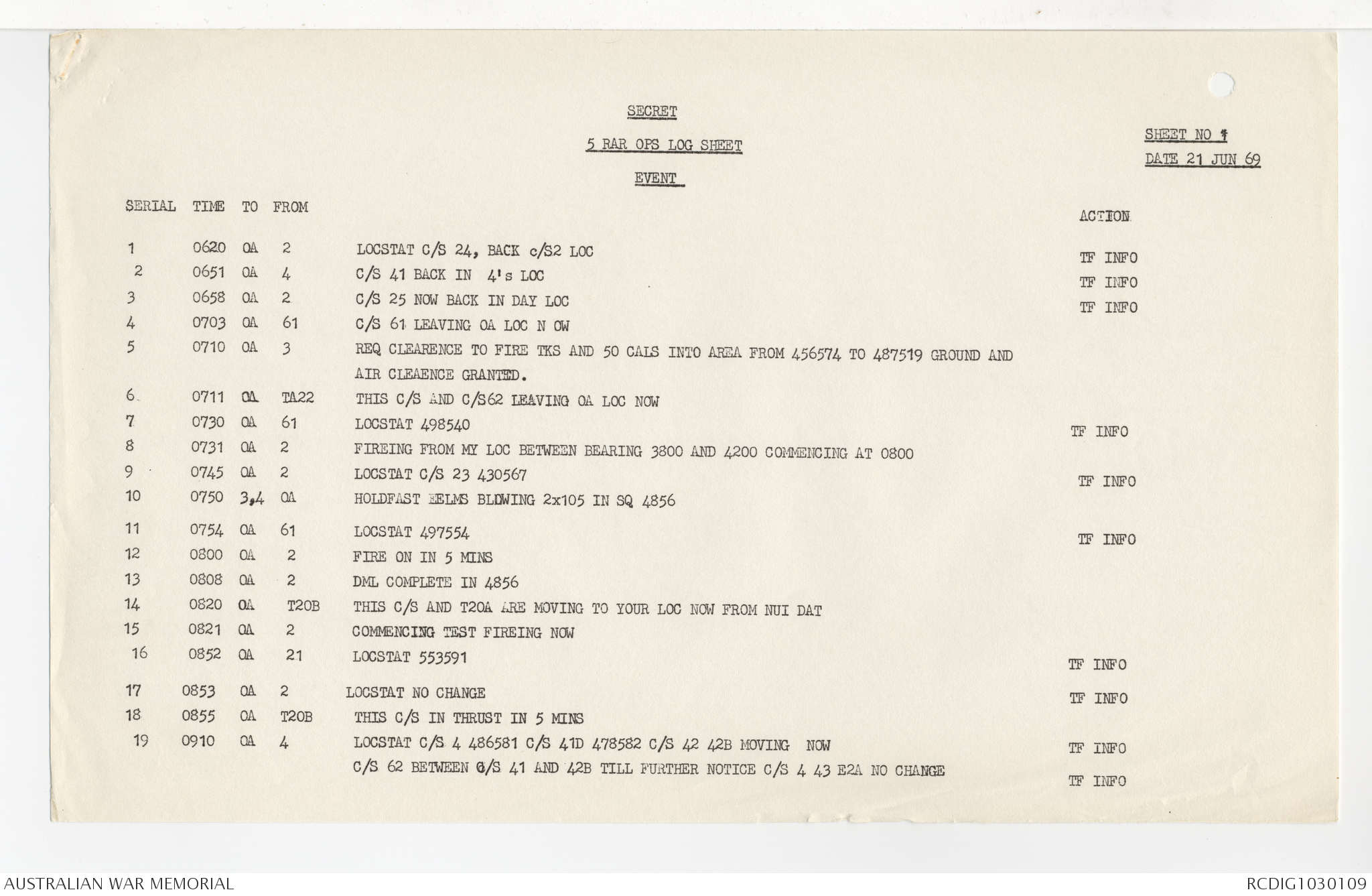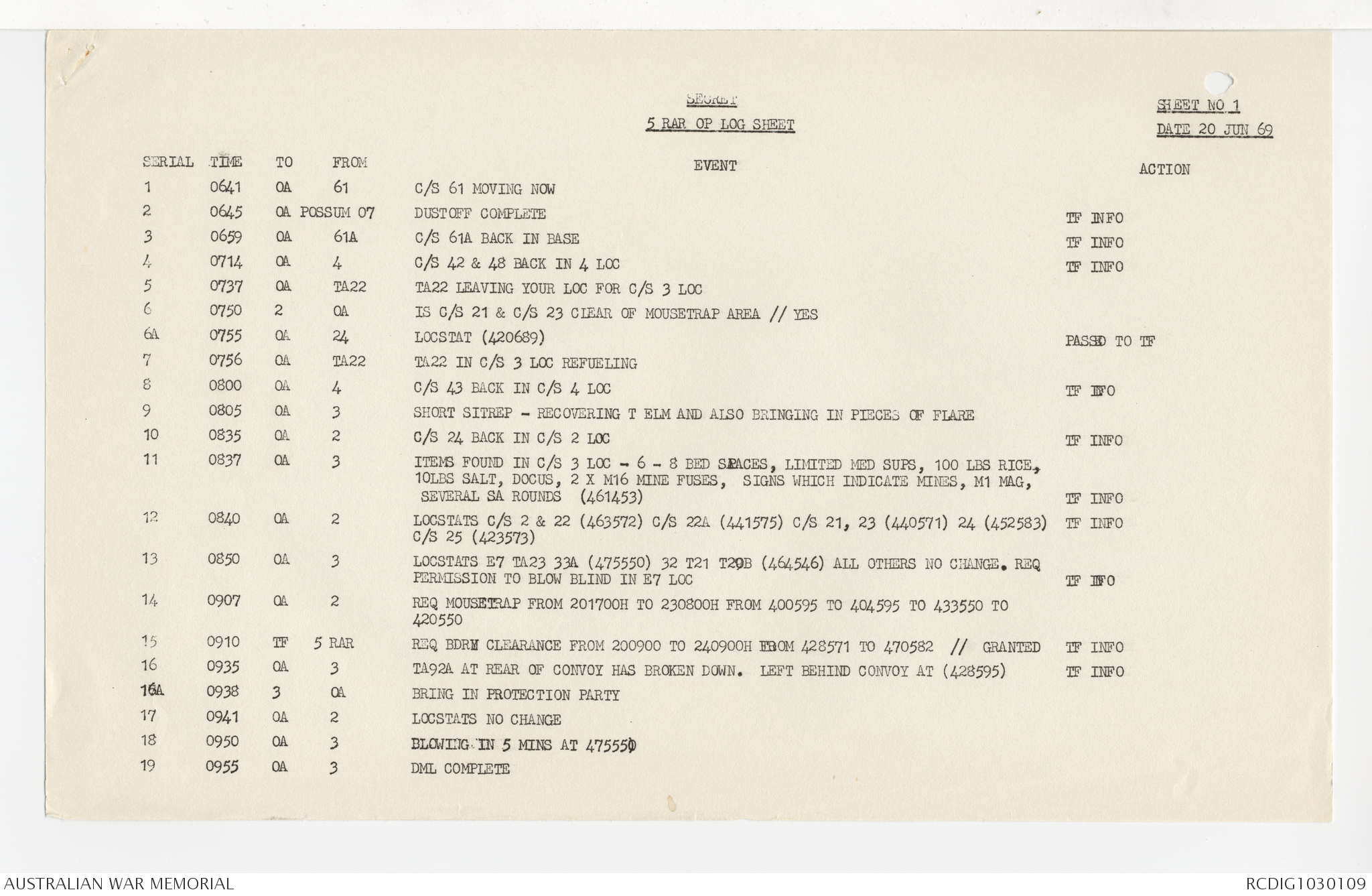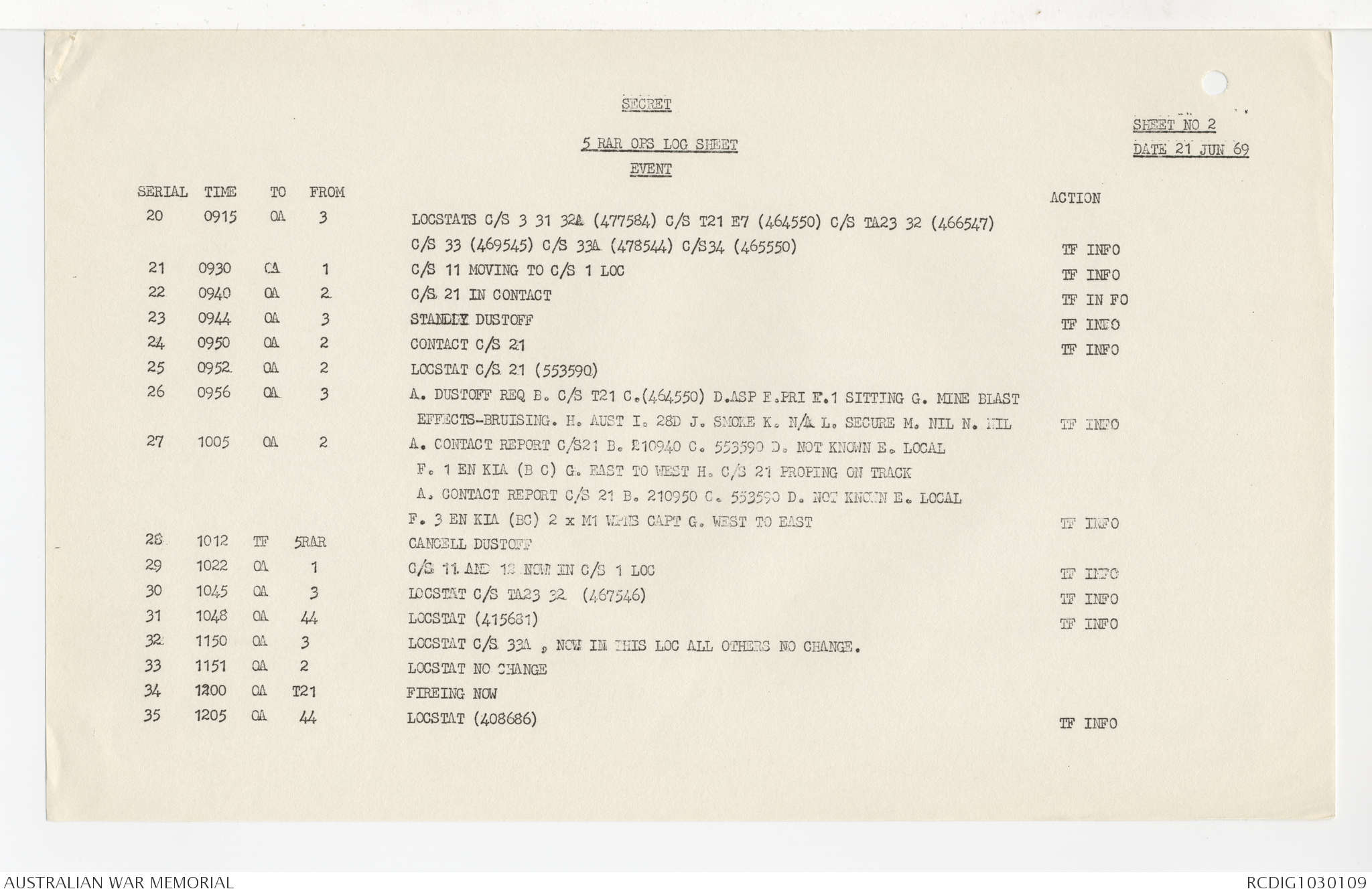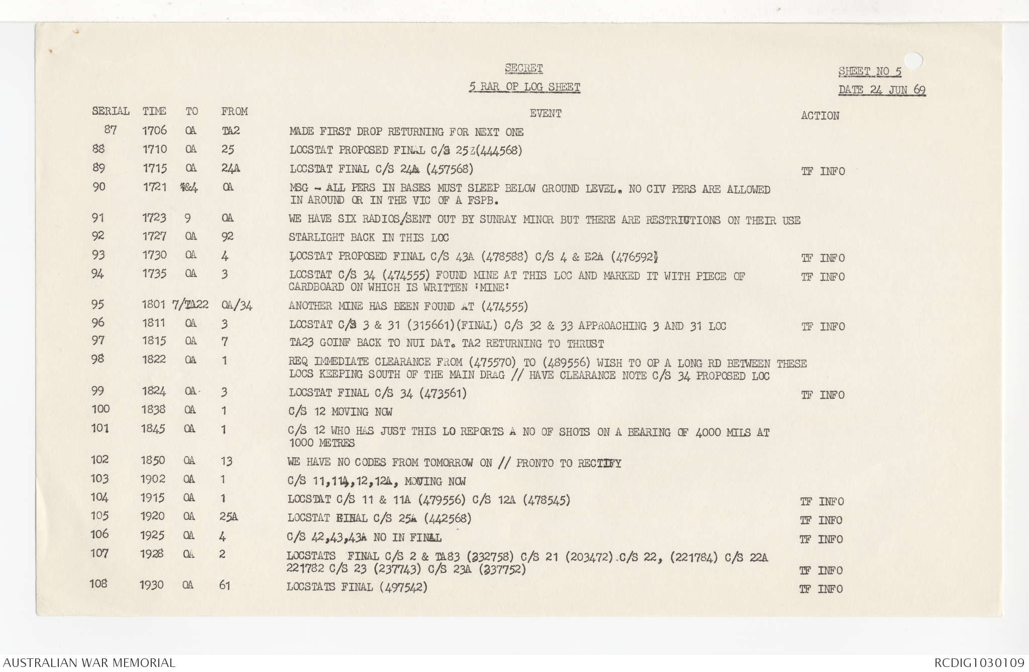 AWM95 7/5/25 - 1-30 June 1969, Narrative, Operations log, Annexes