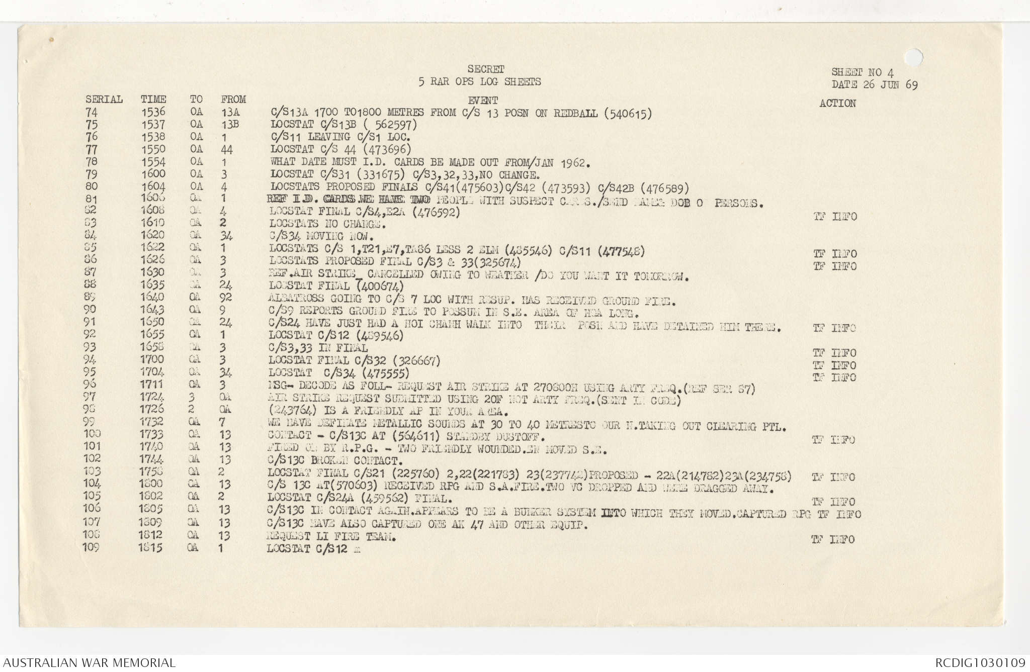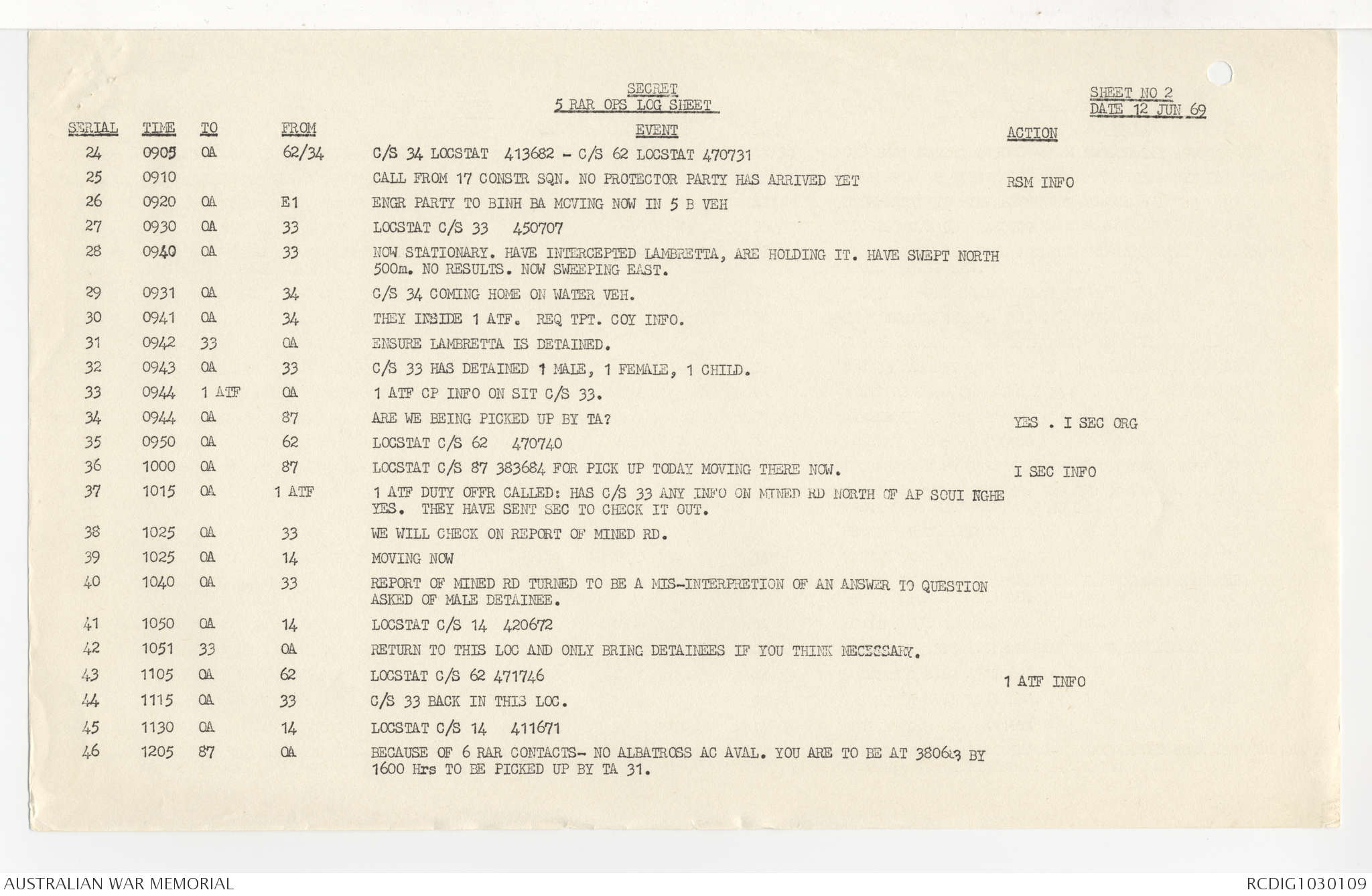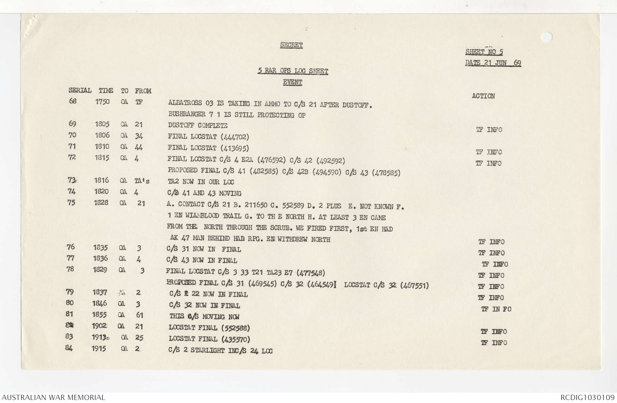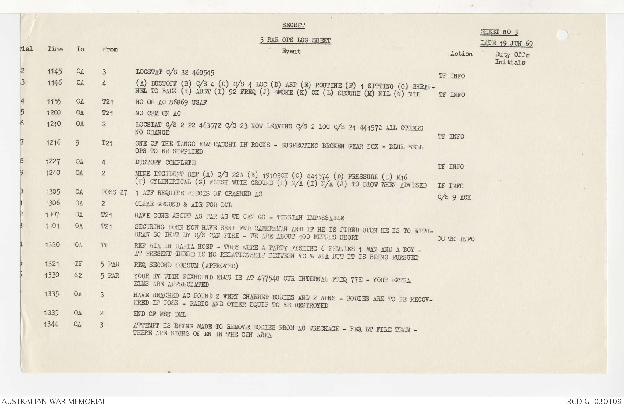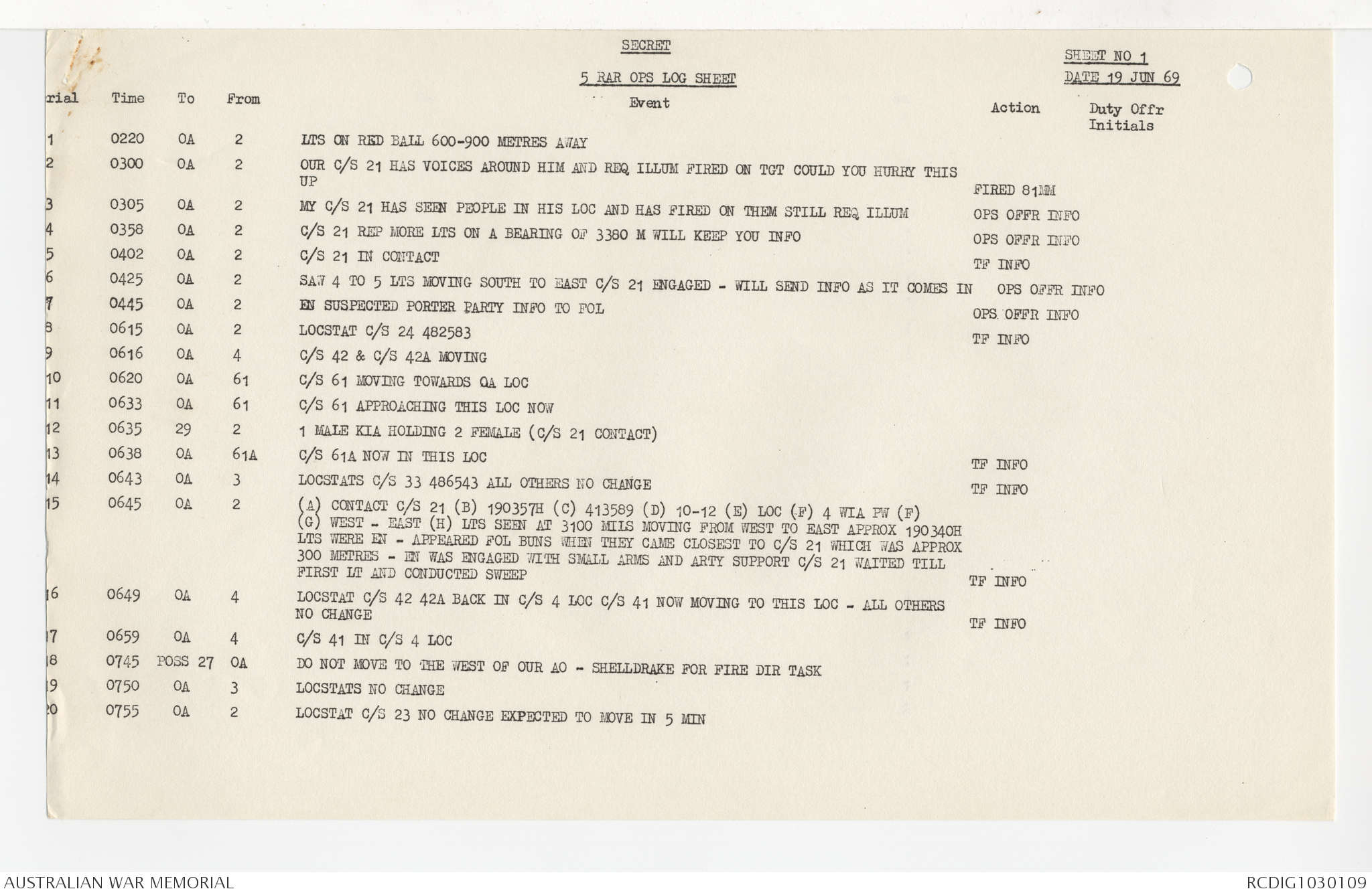 AWM95 7/5/25 - 1-30 June 1969, Narrative, Operations log, Annexes