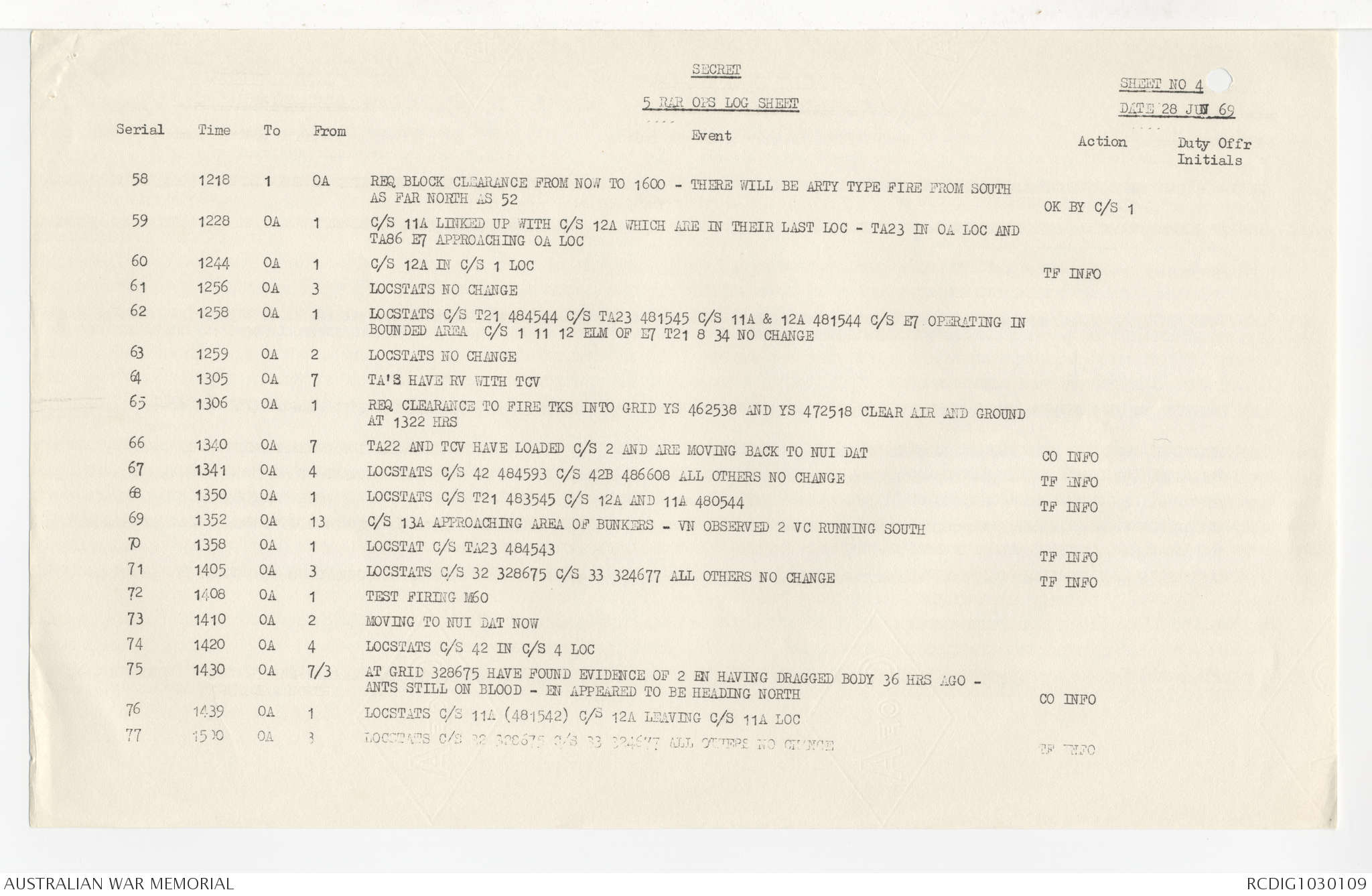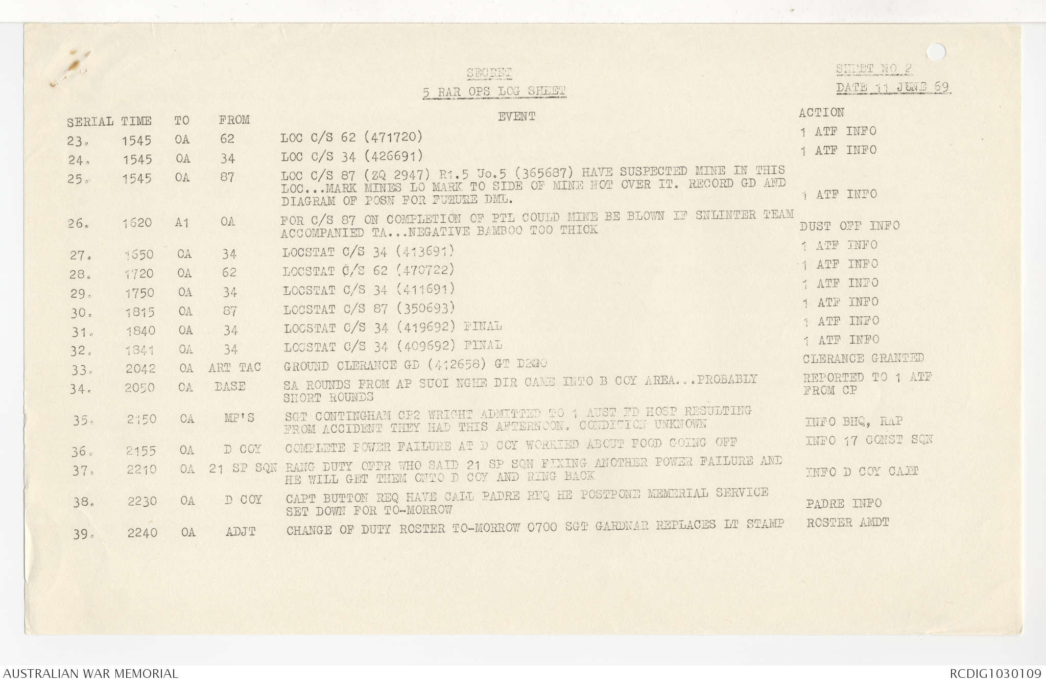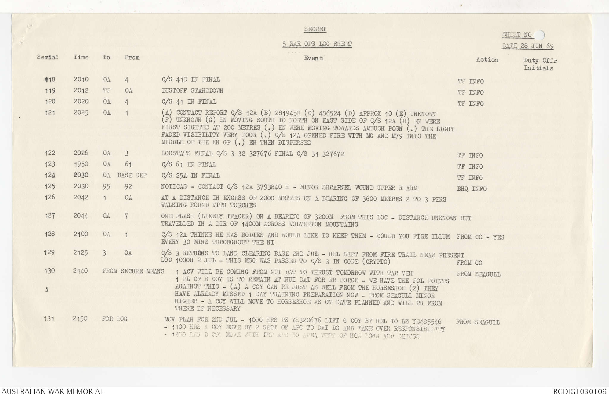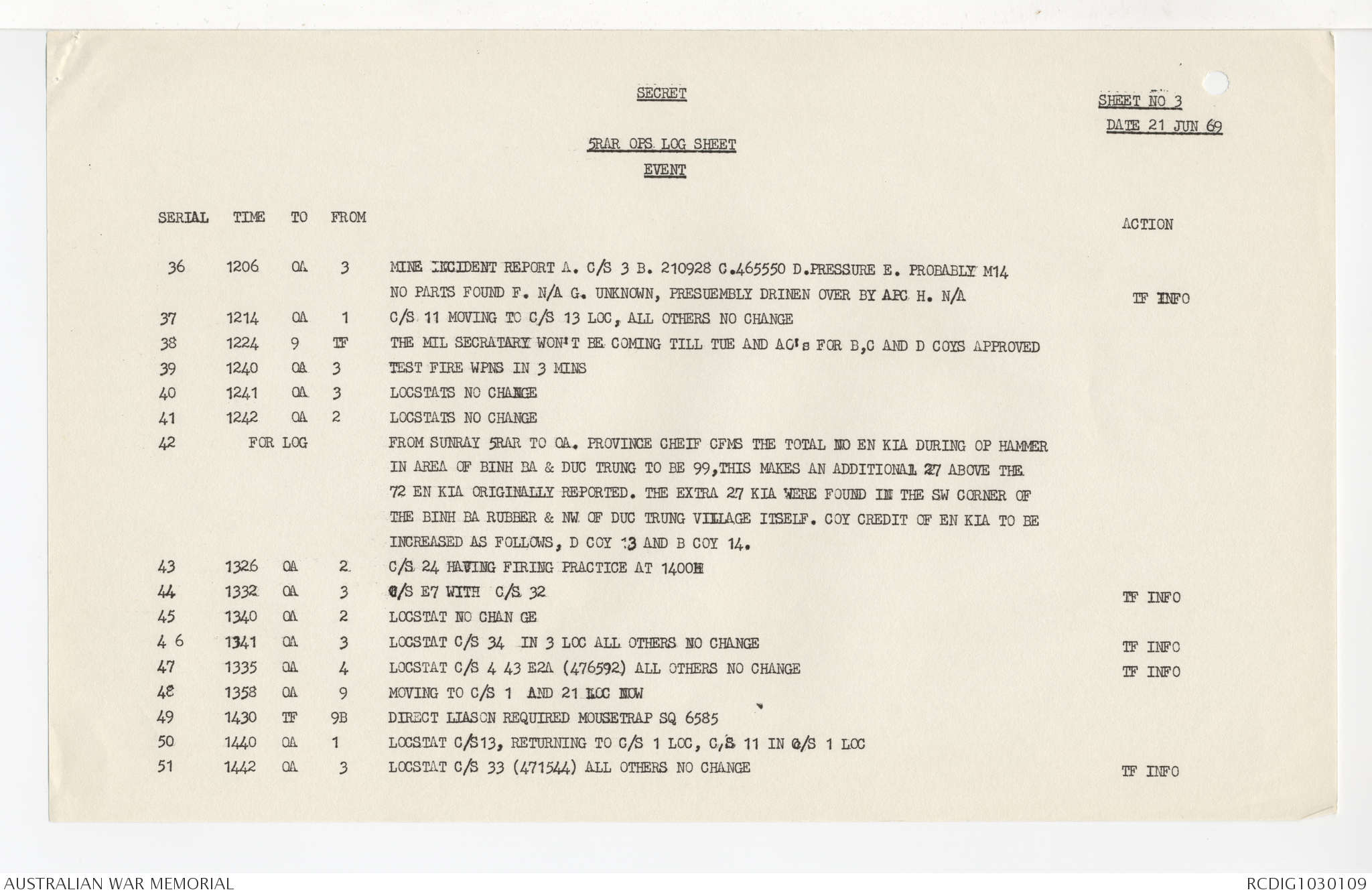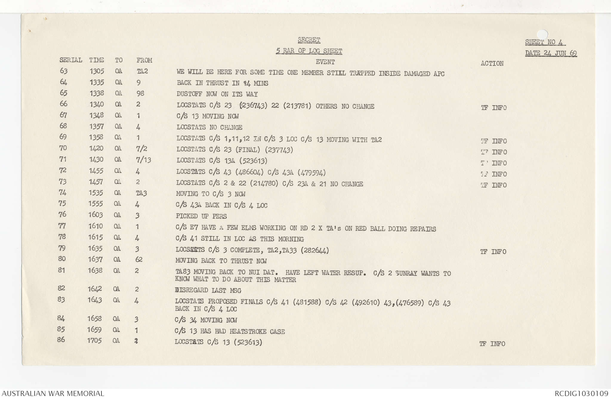 AWM95 7/5/25 - 1-30 June 1969, Narrative, Operations log, Annexes