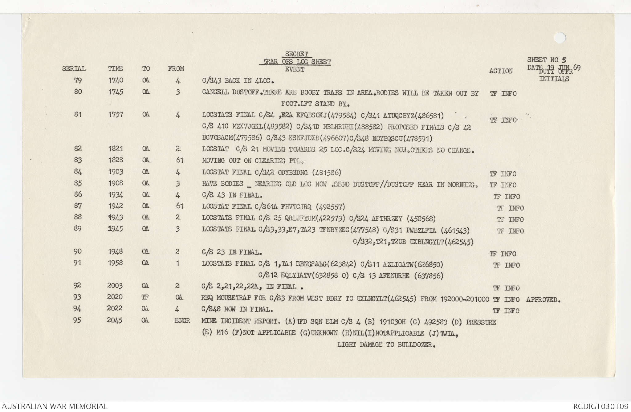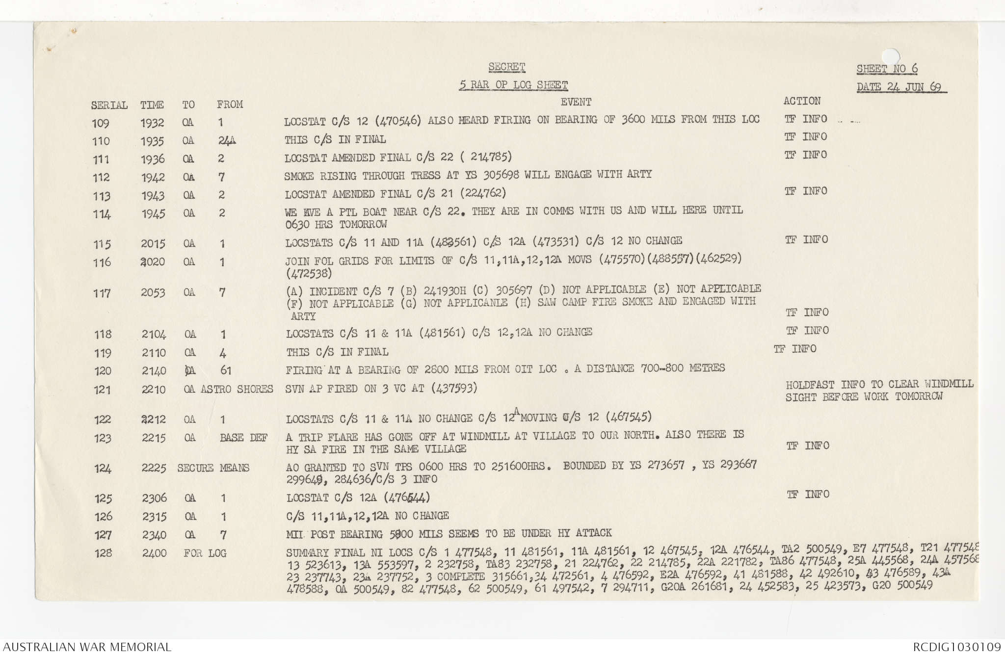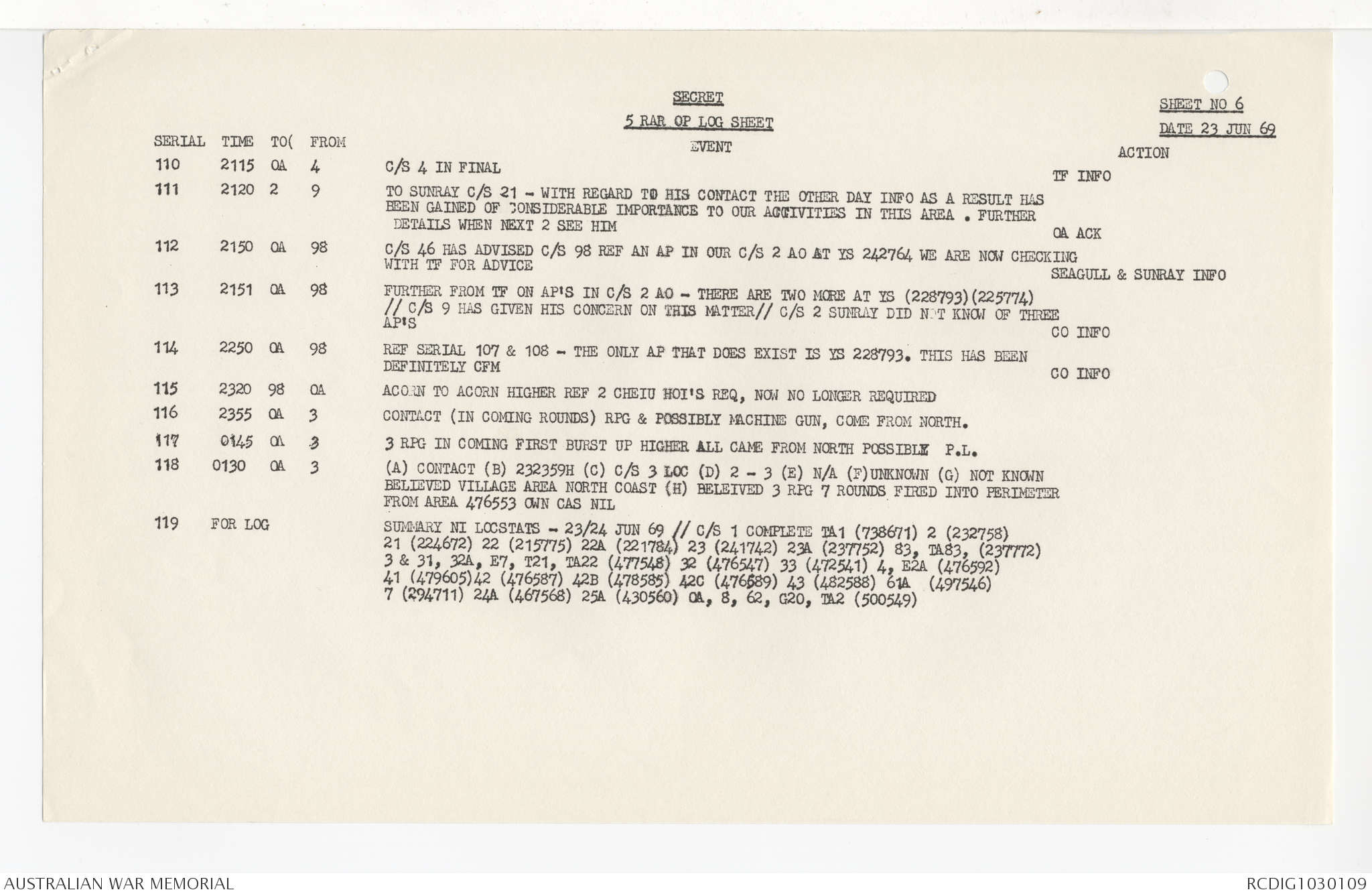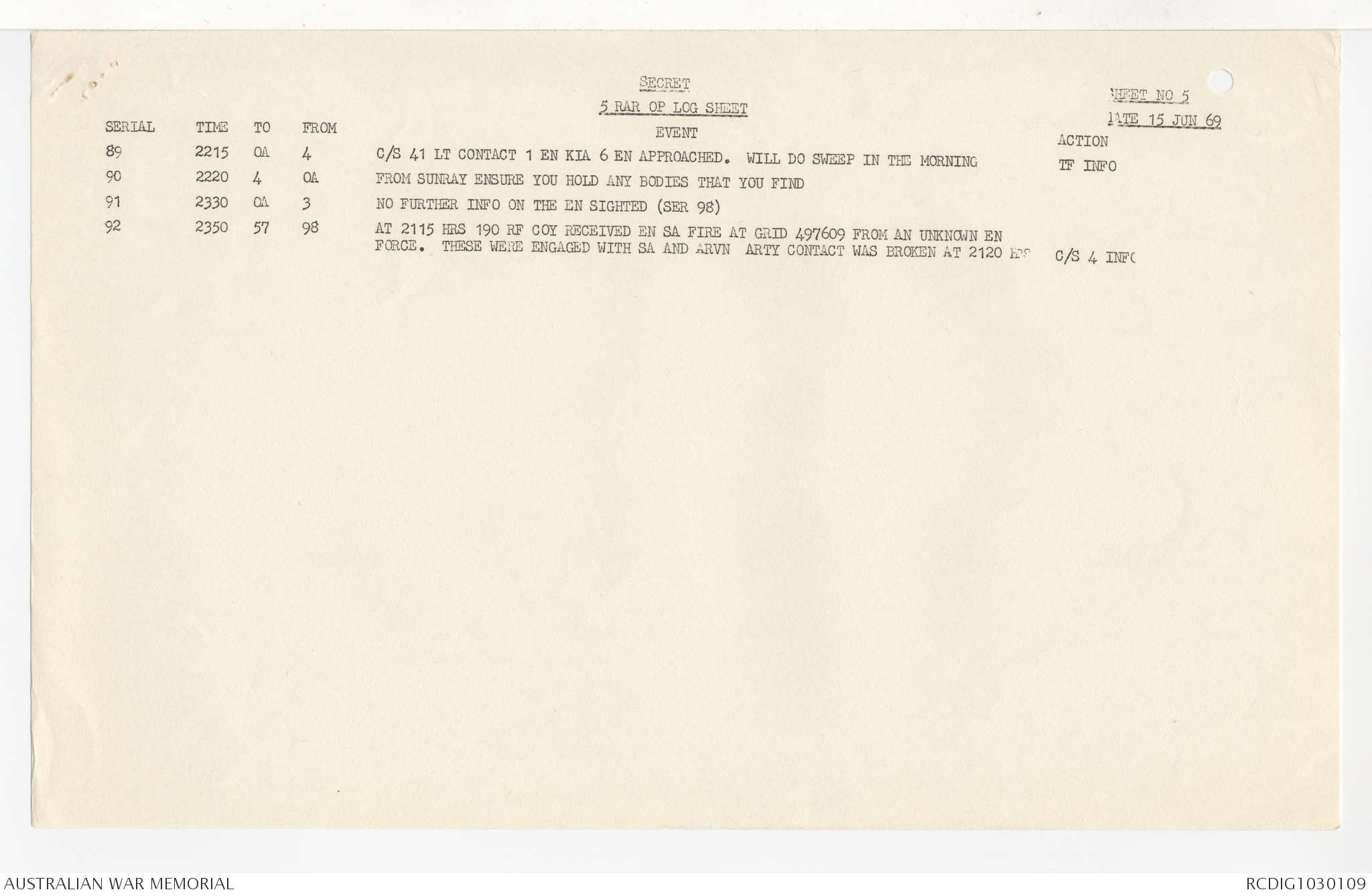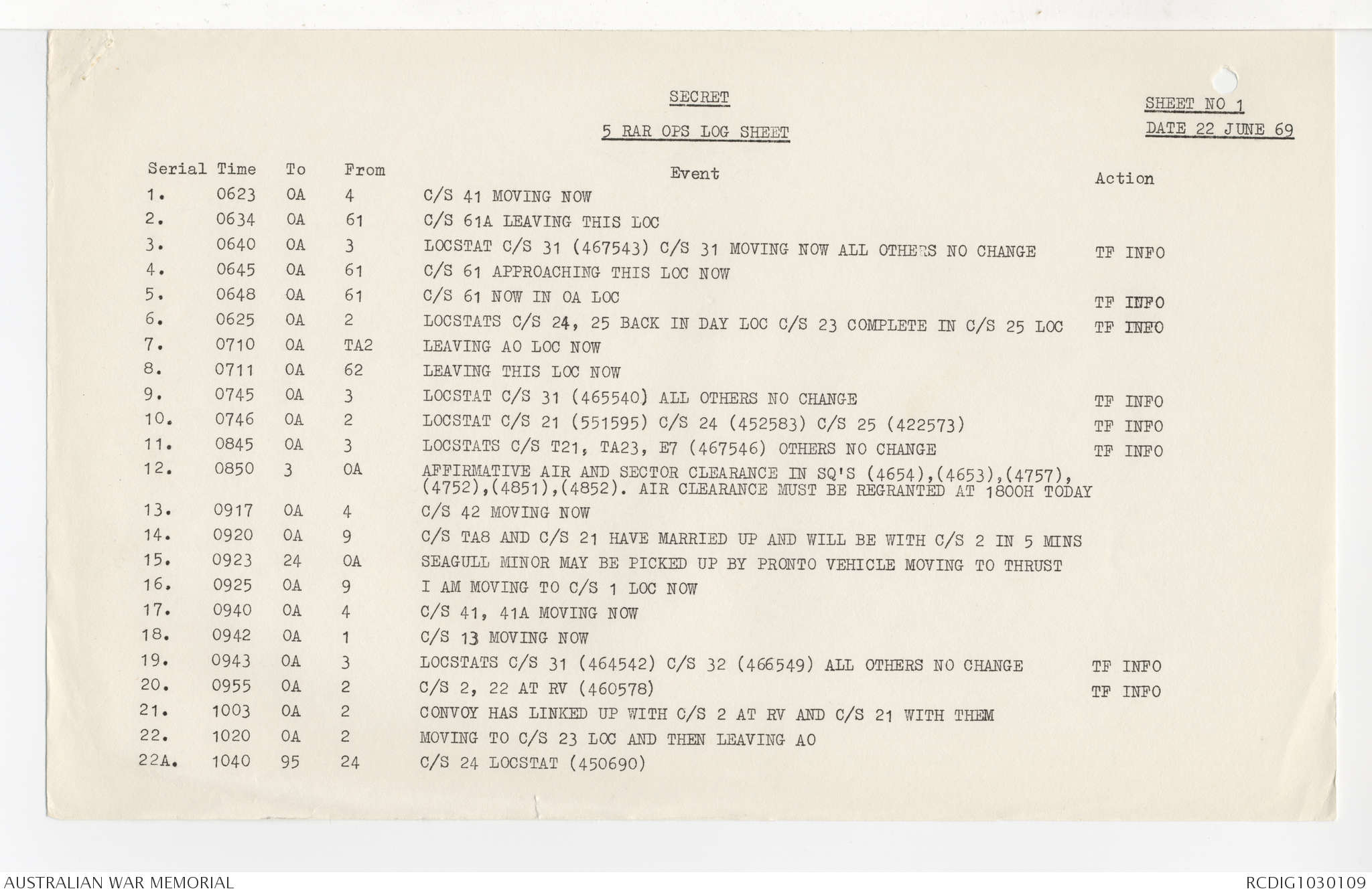 AWM95 7/5/25 - 1-30 June 1969, Narrative, Operations log, Annexes