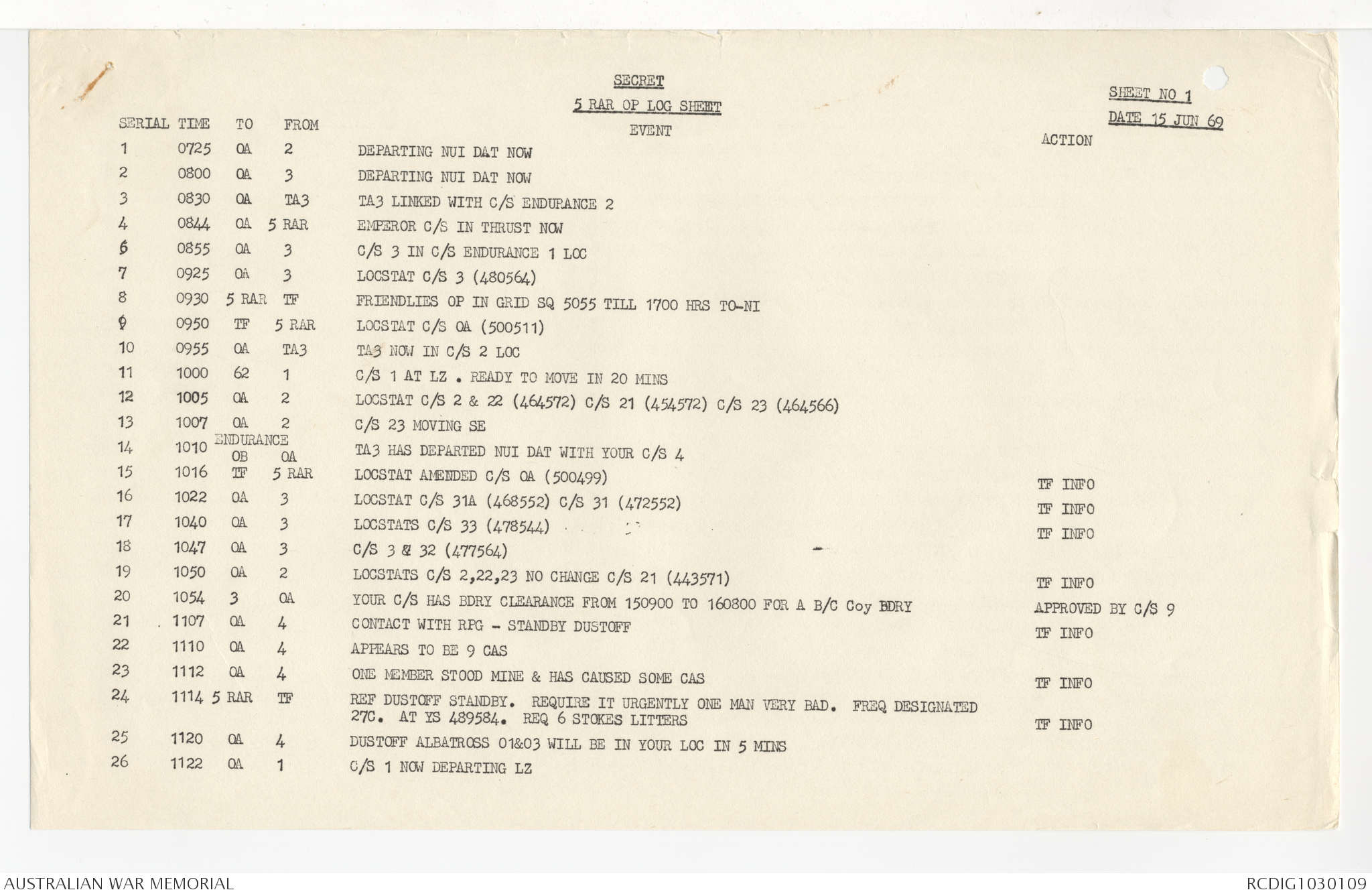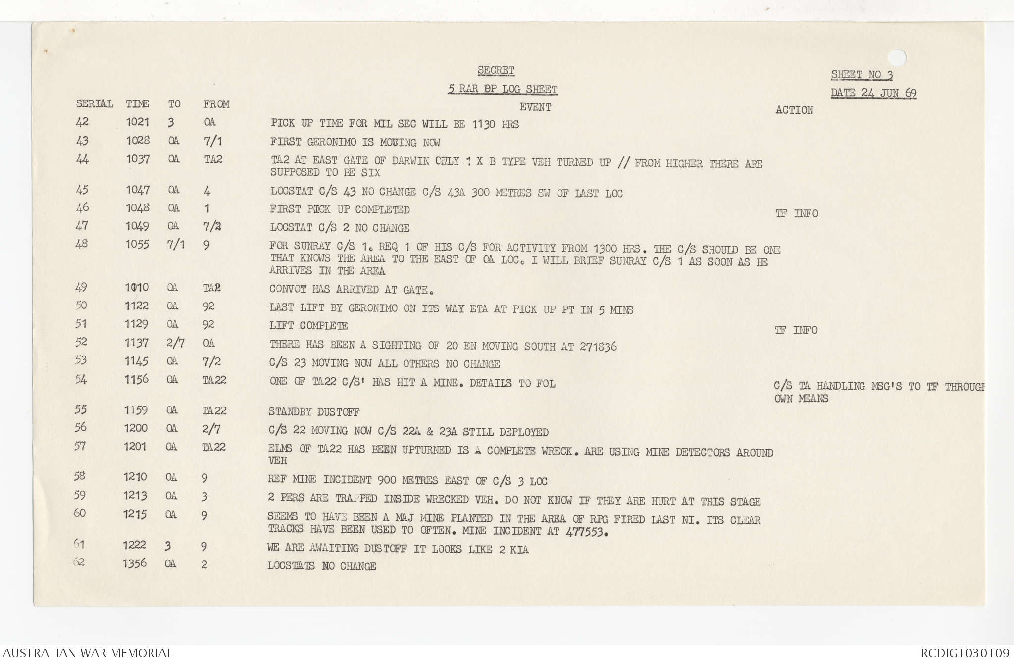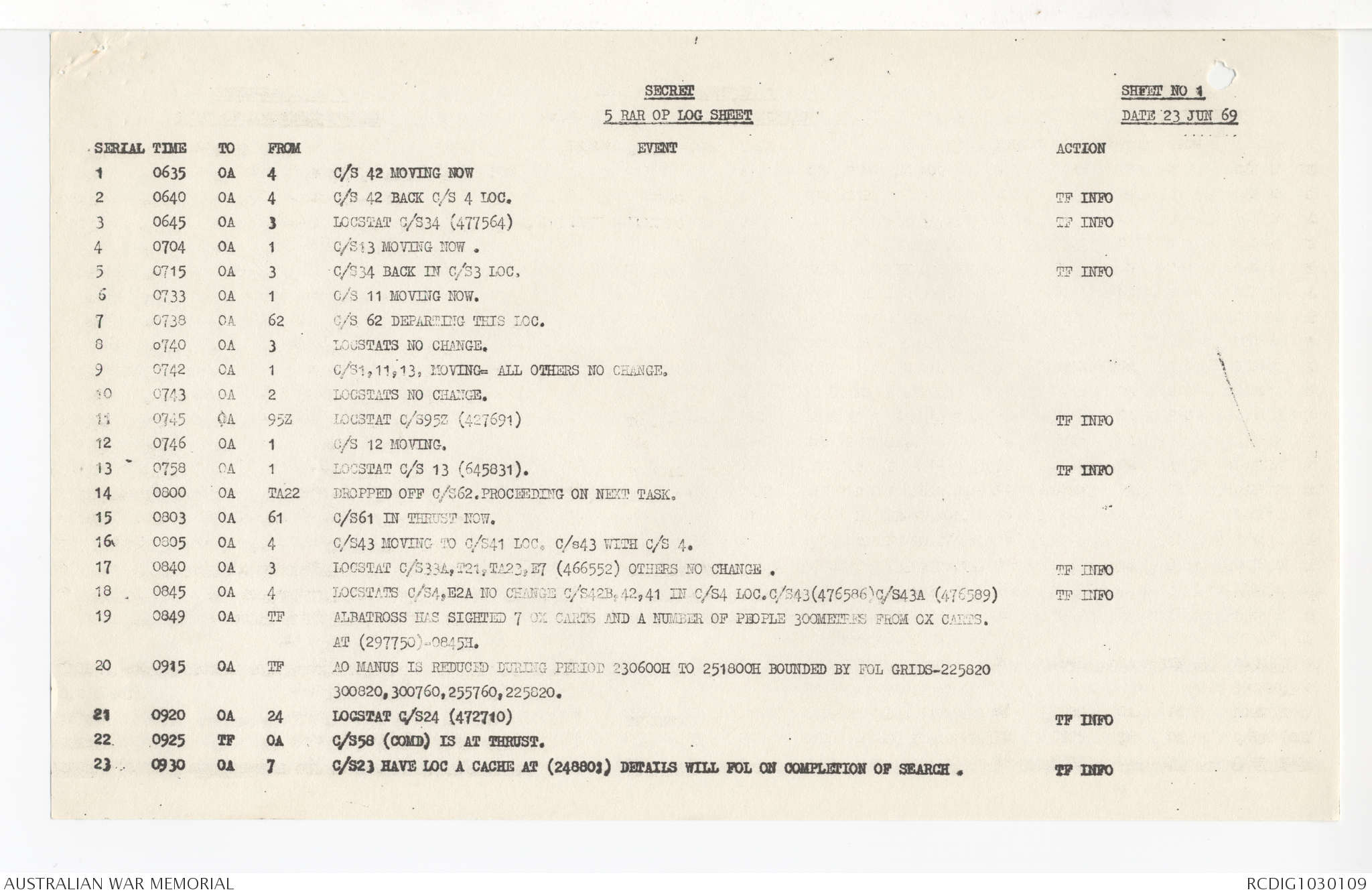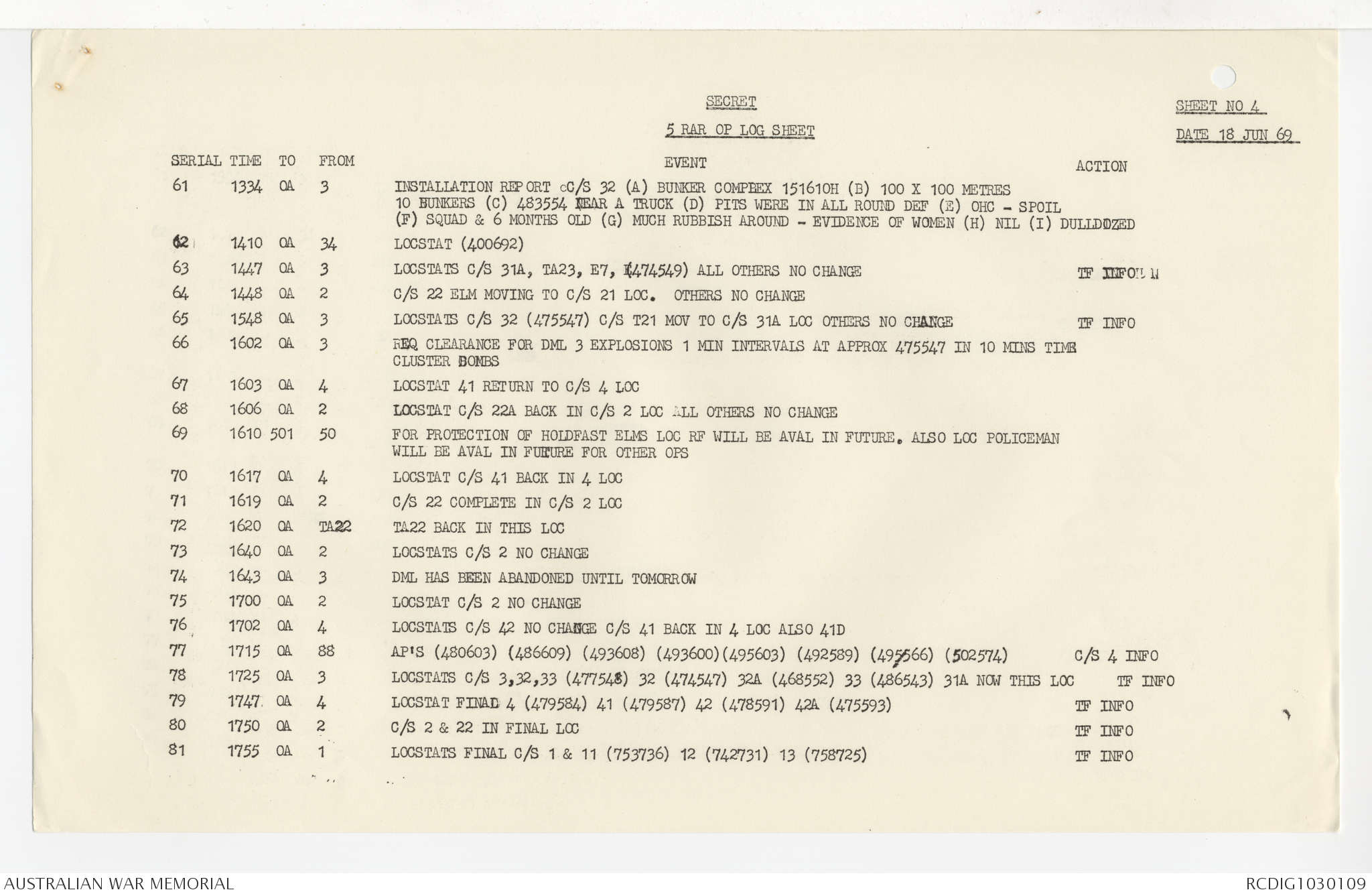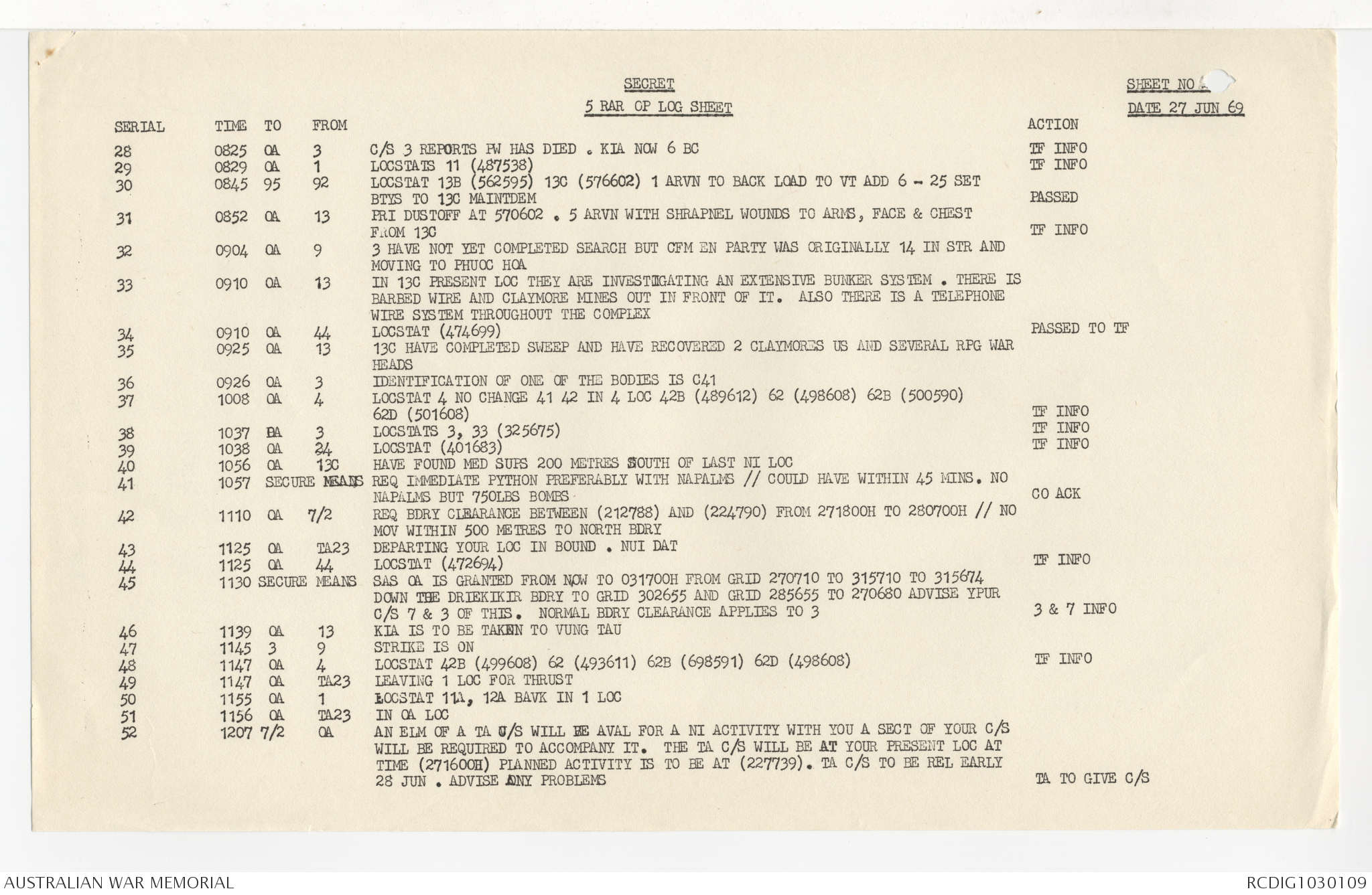 AWM95 7/5/25 - 1-30 June 1969, Narrative, Operations log, Annexes