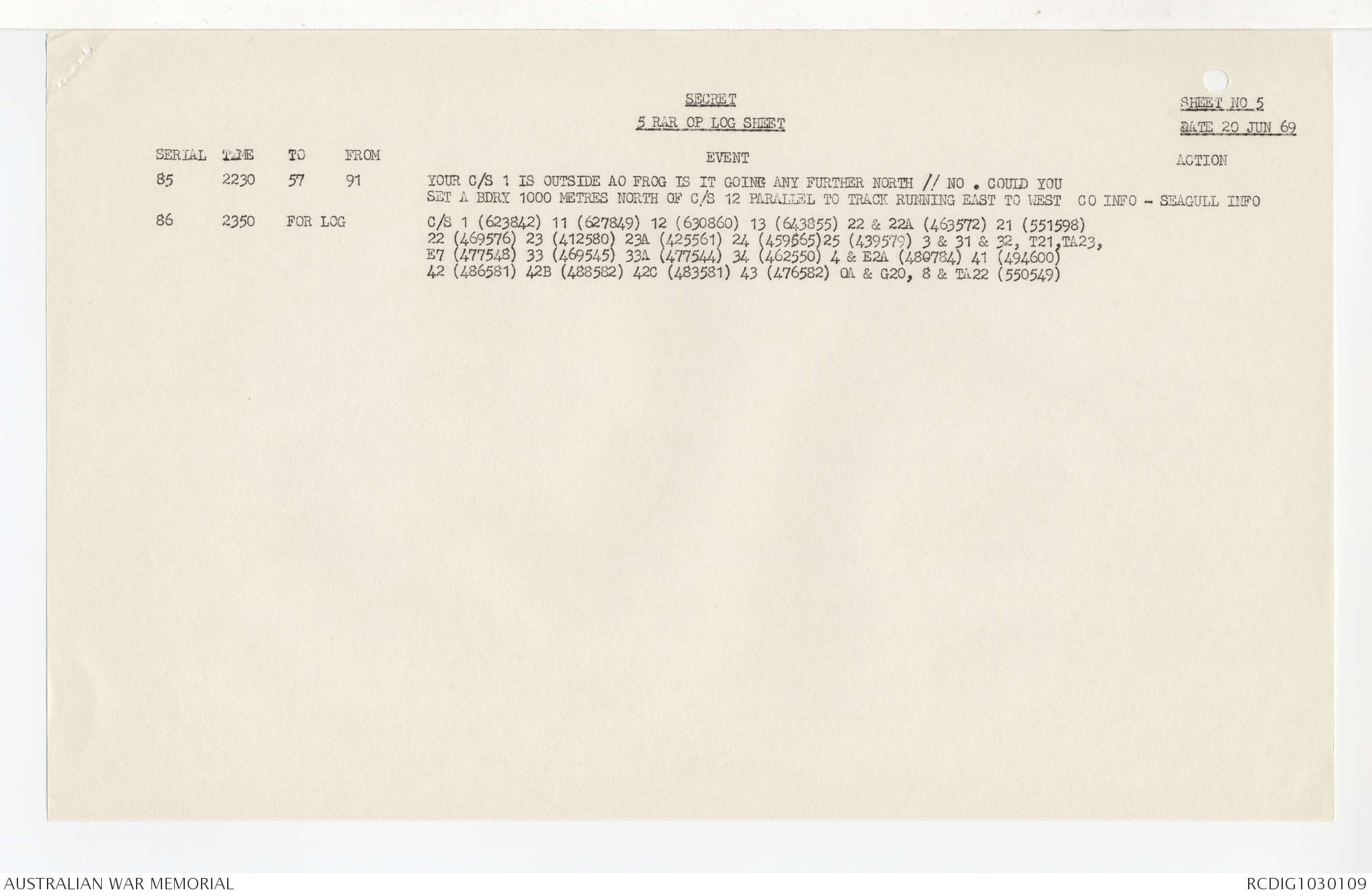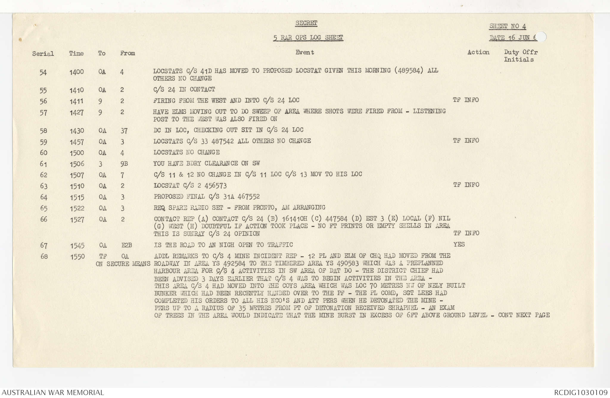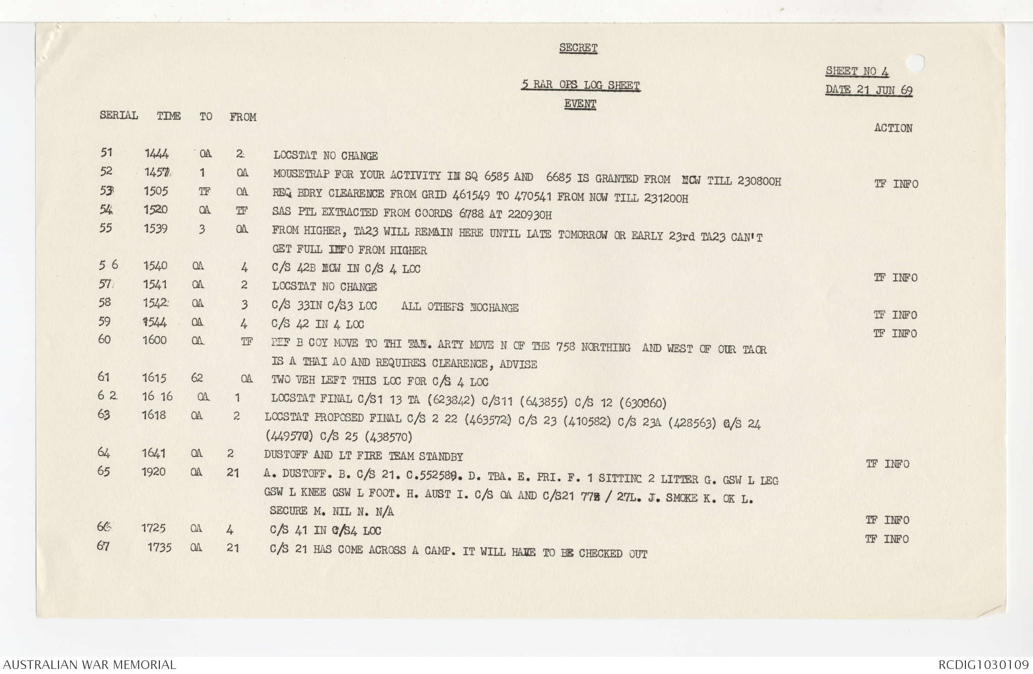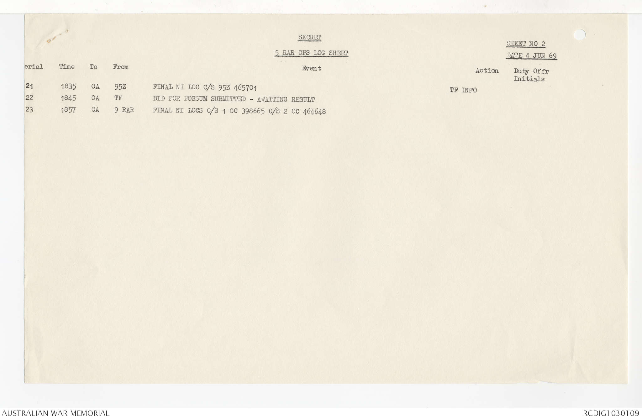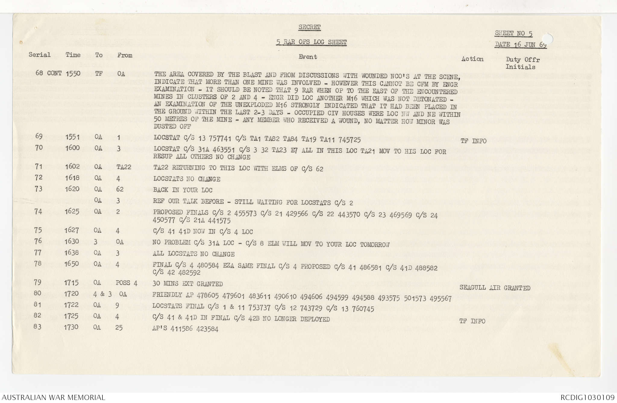 AWM95 7/5/25 - 1-30 June 1969, Narrative, Operations log, Annexes