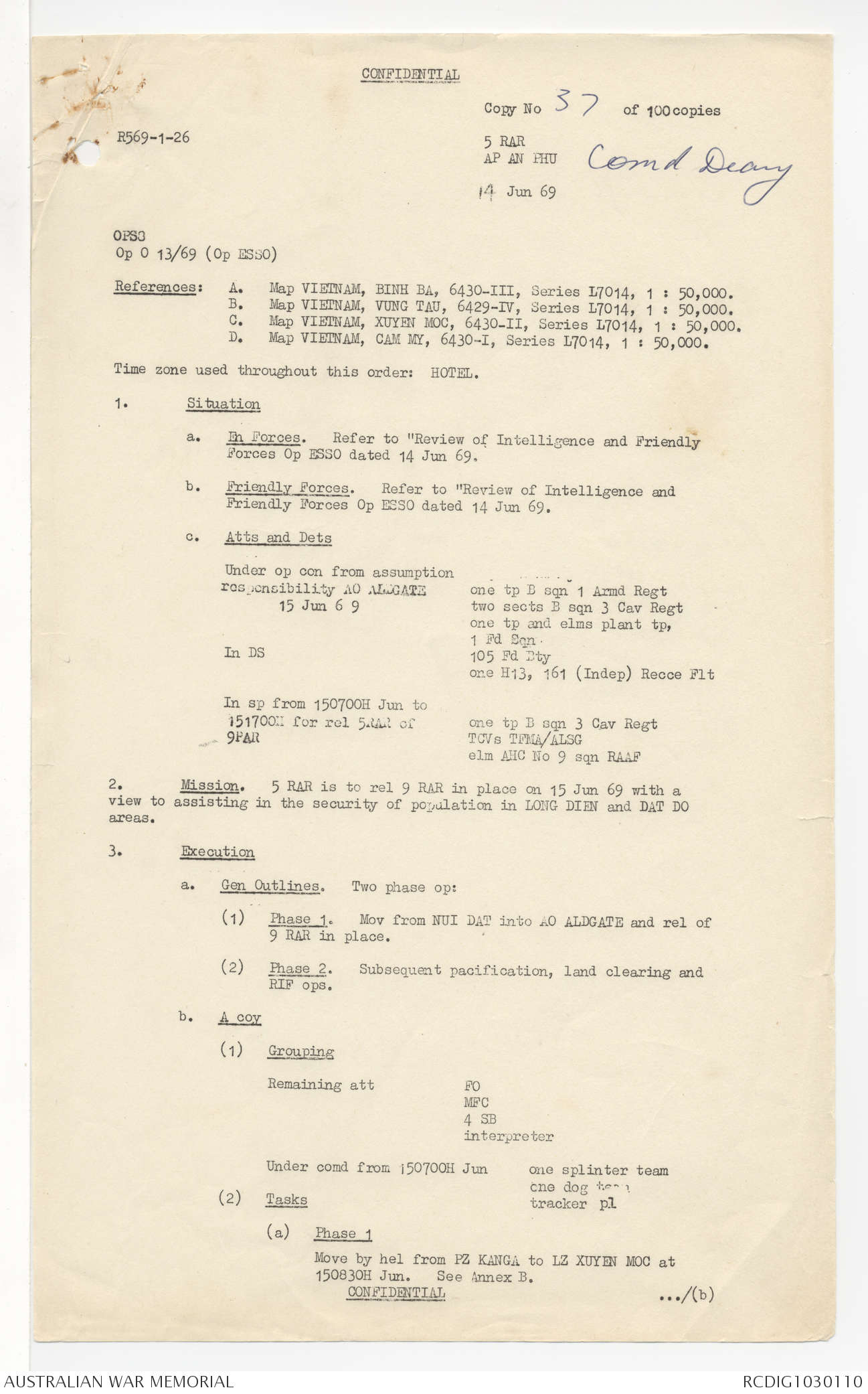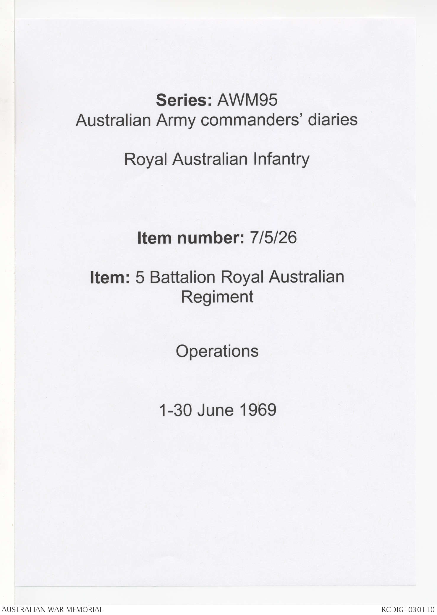 AWM95 7/5/26 - 1-30 June 1969, Operations
