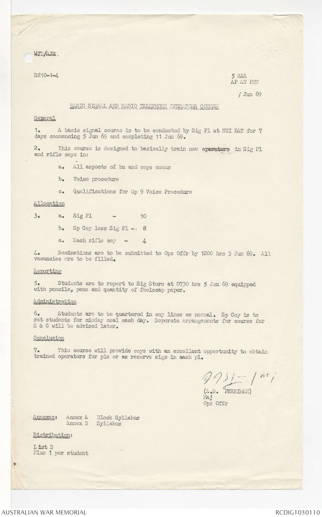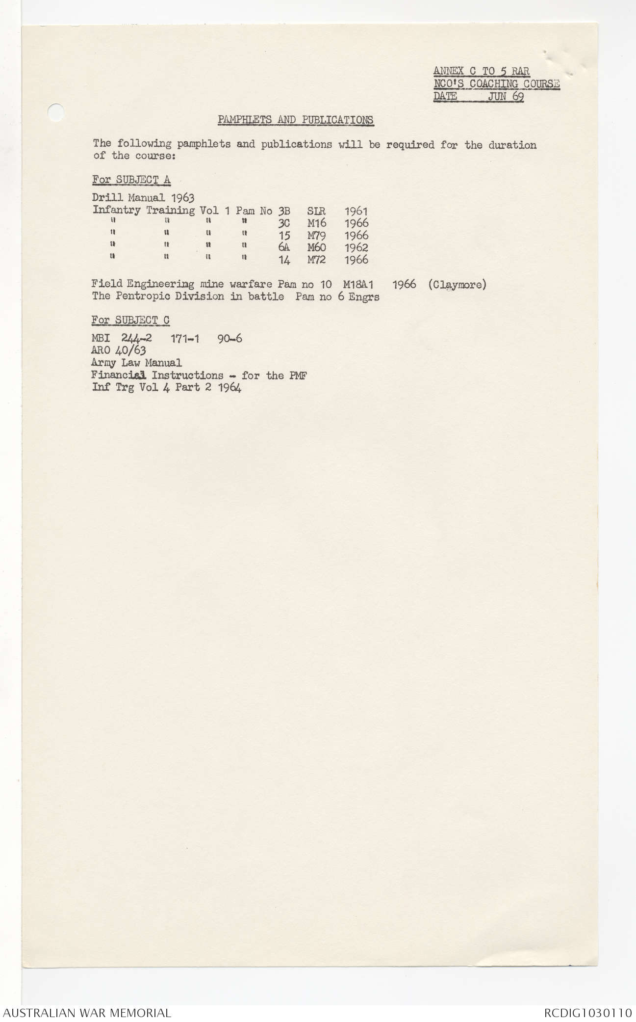 - AWM95 Subclass 7/5 - 5 Battalion Royal Australian Regiment