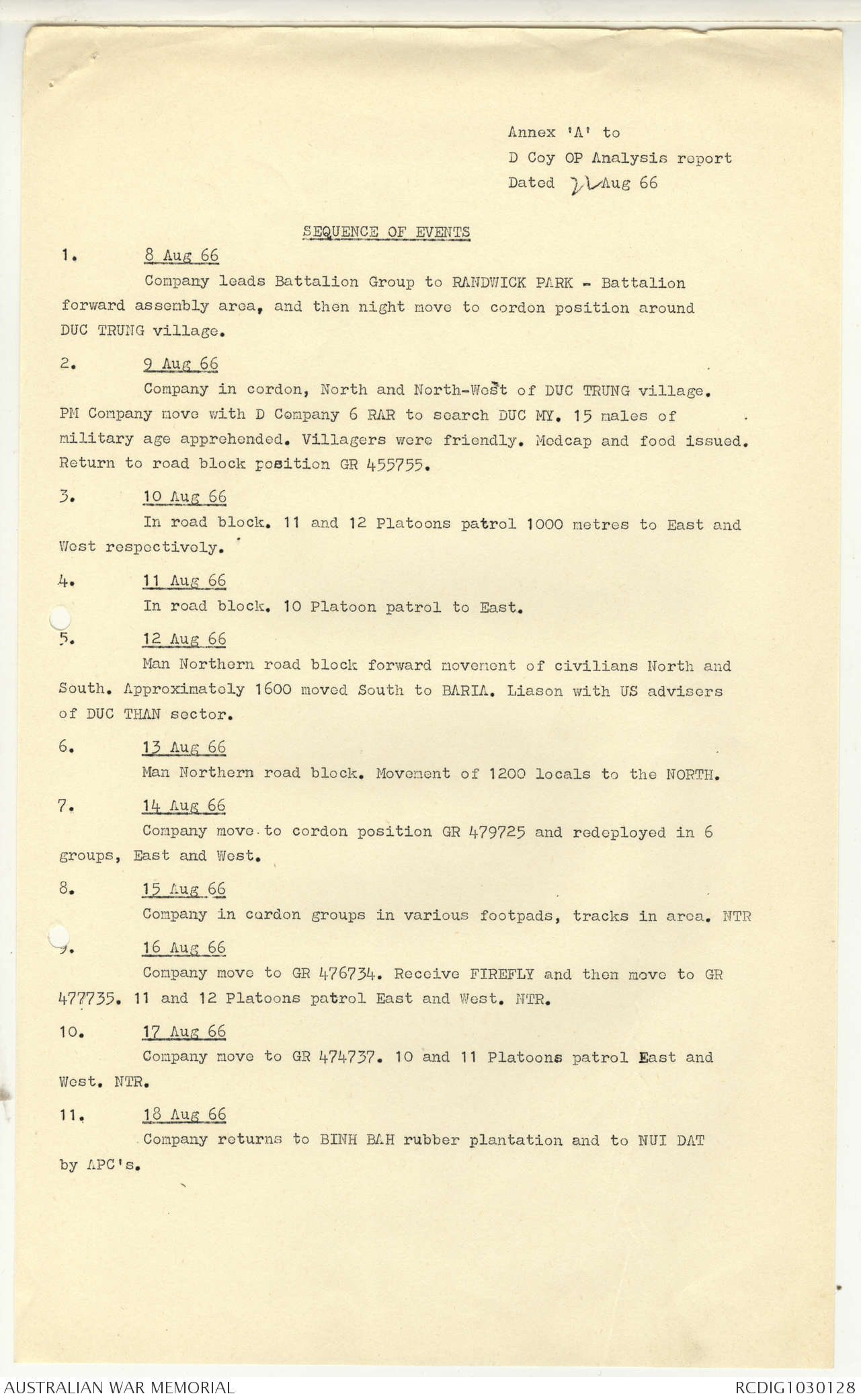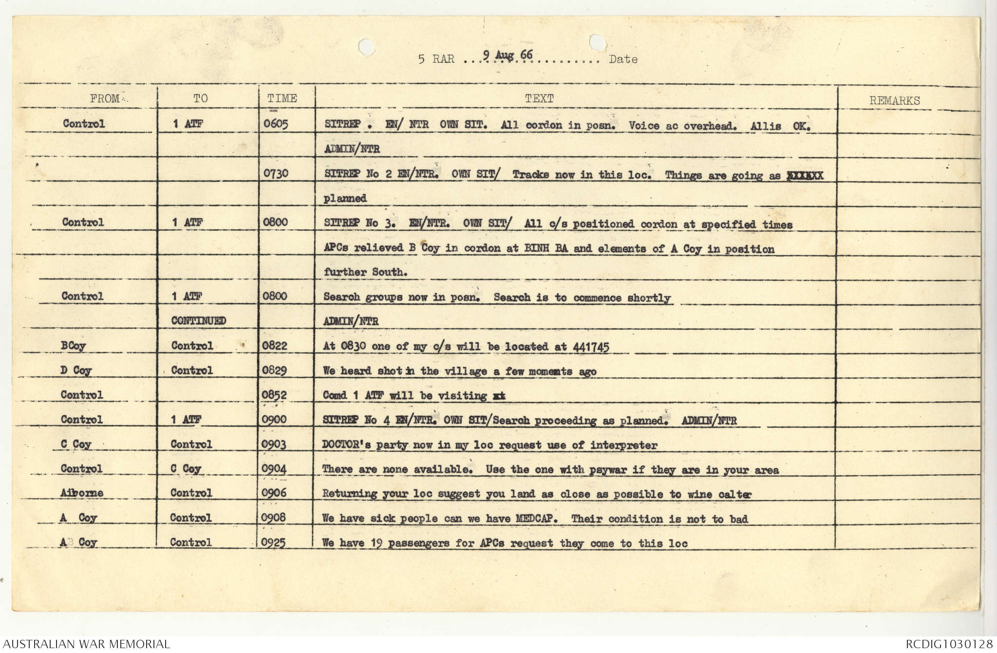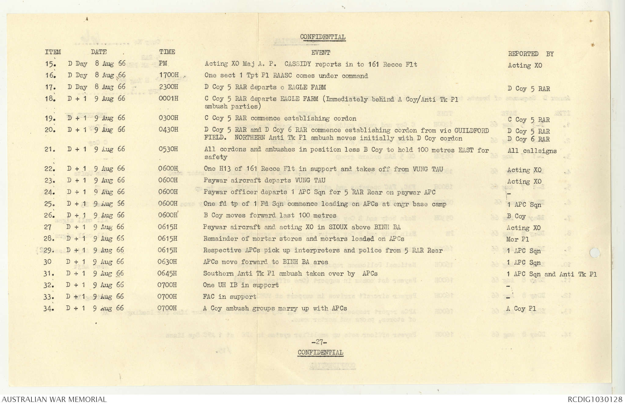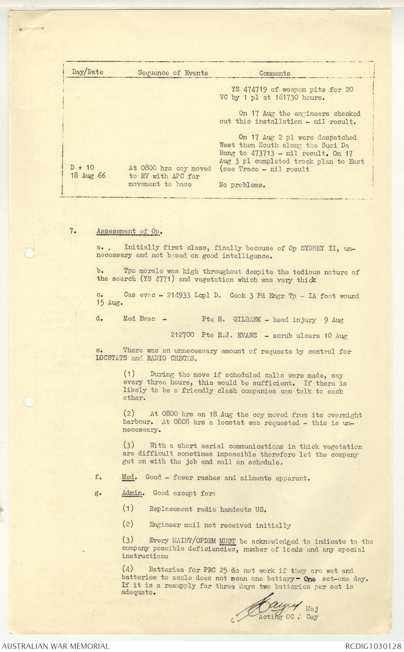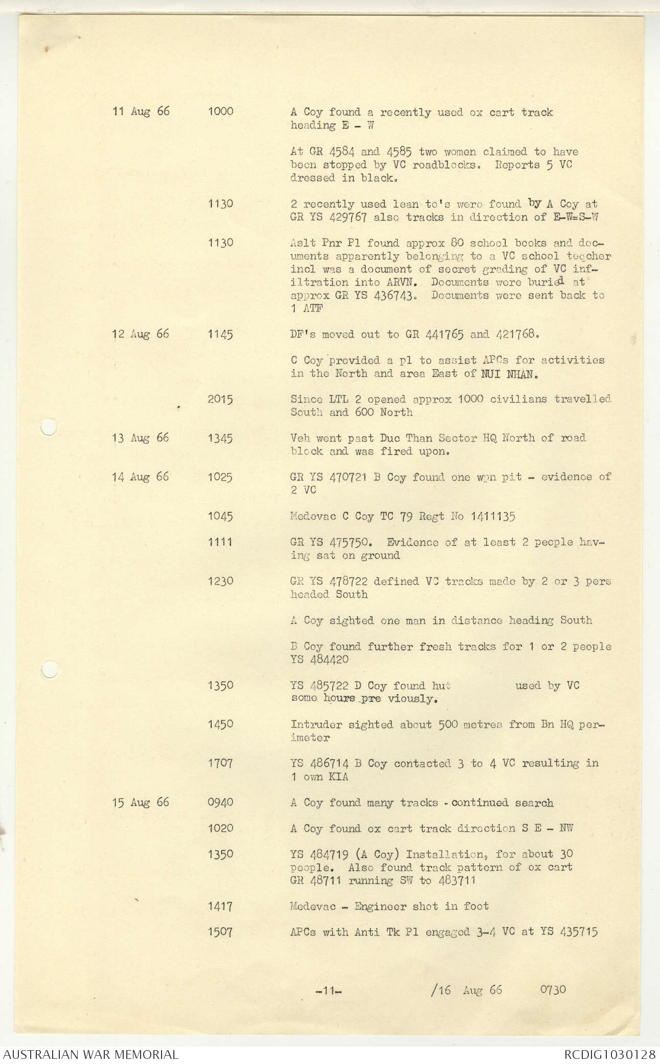 AWM95 7/5/7 PART 1 - 1-31 August 1966, Narrative, Operations log, Annexes