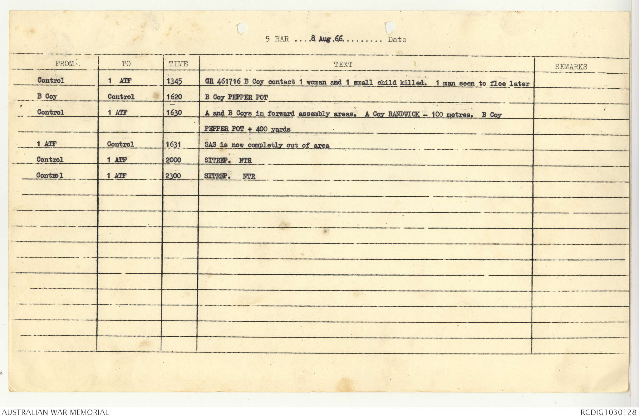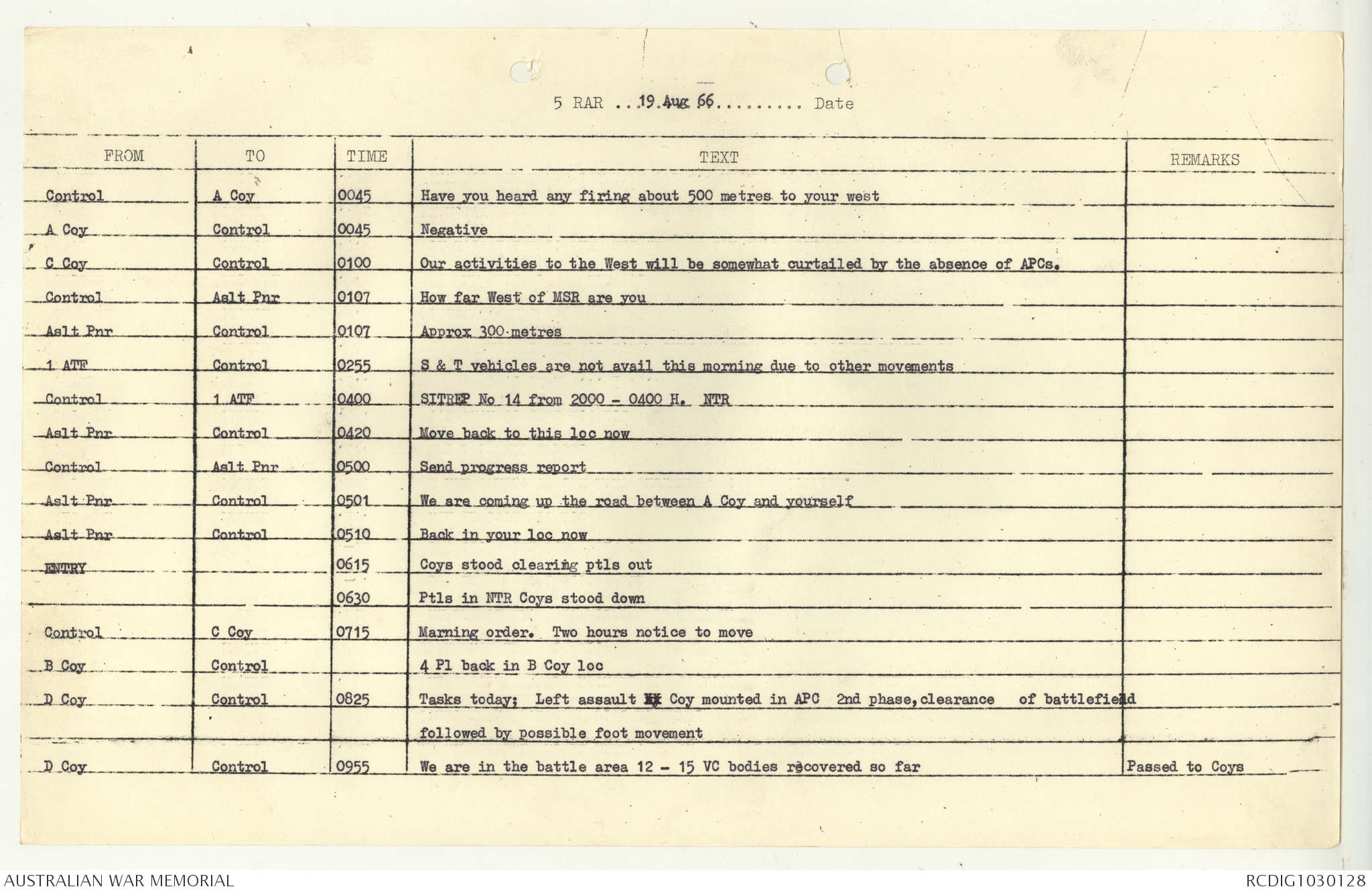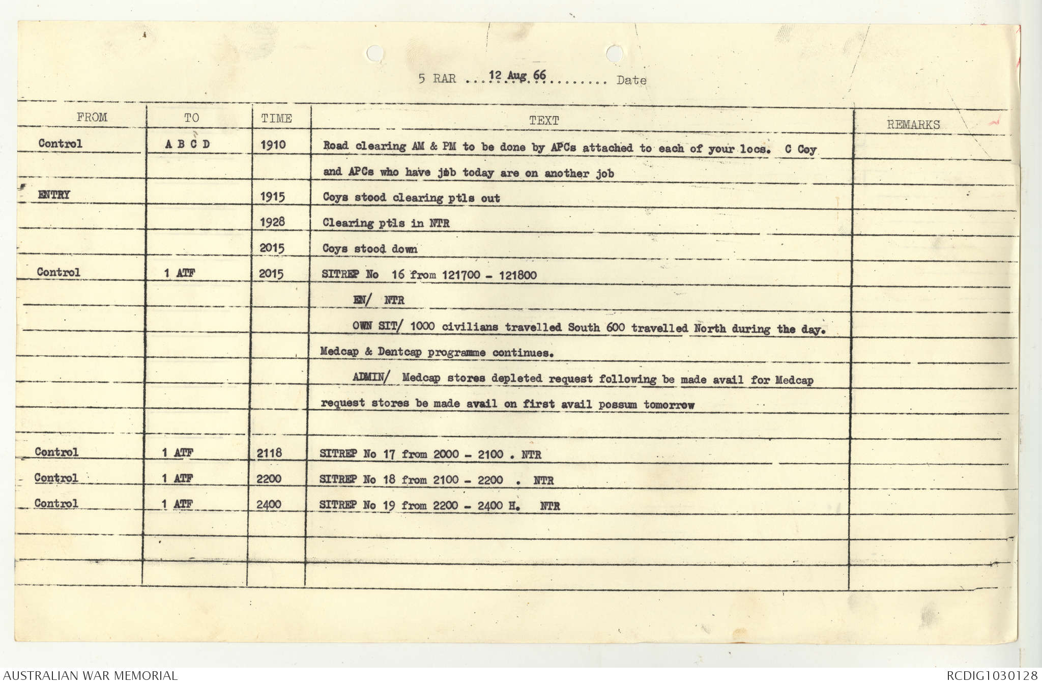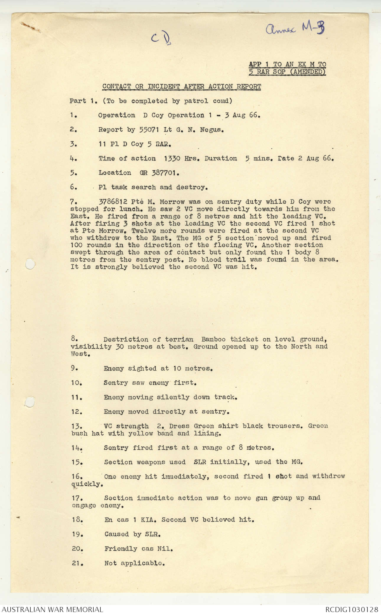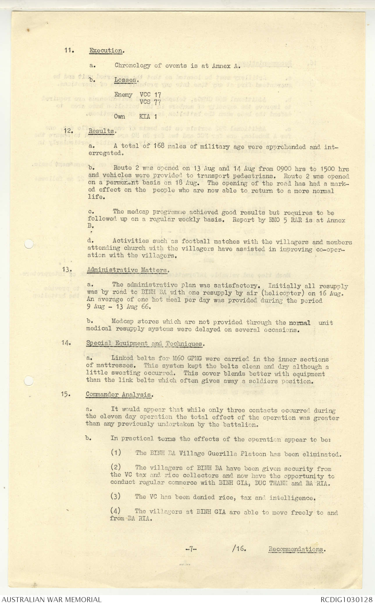 AWM95 7/5/7 PART 1 - 1-31 August 1966, Narrative, Operations log, Annexes