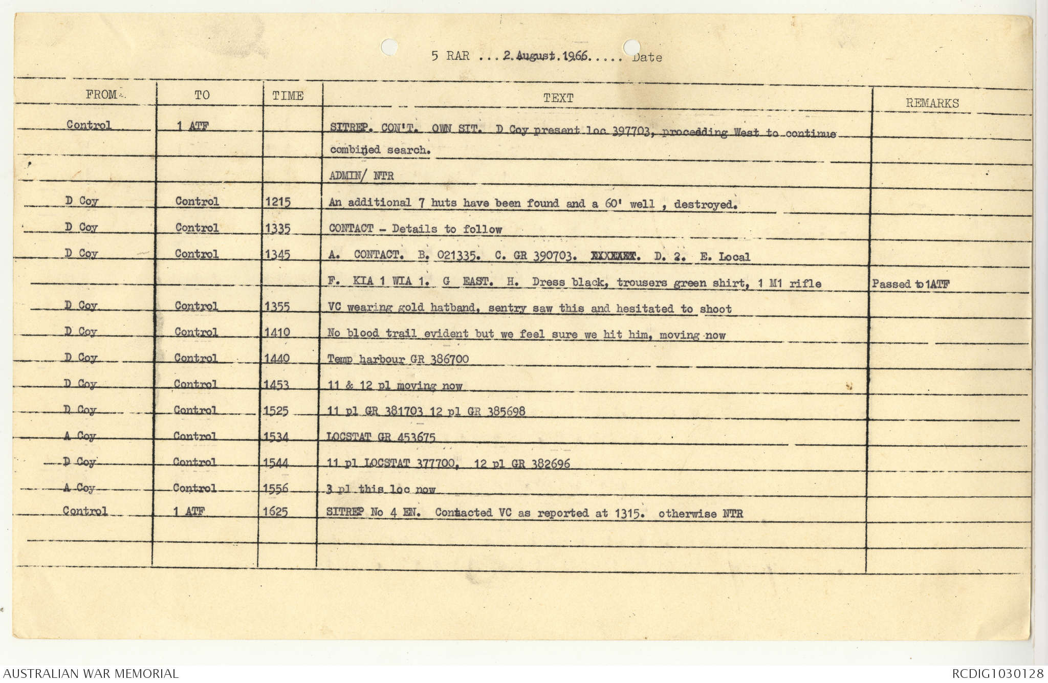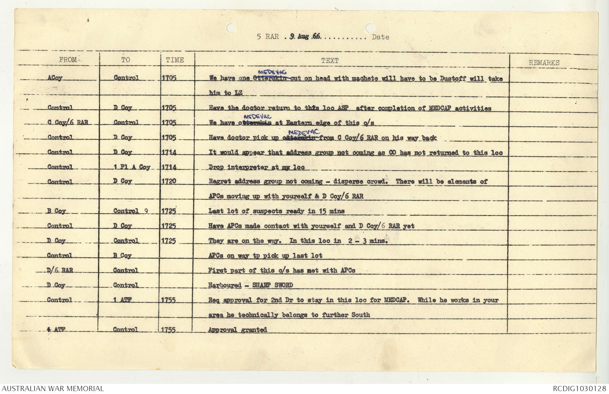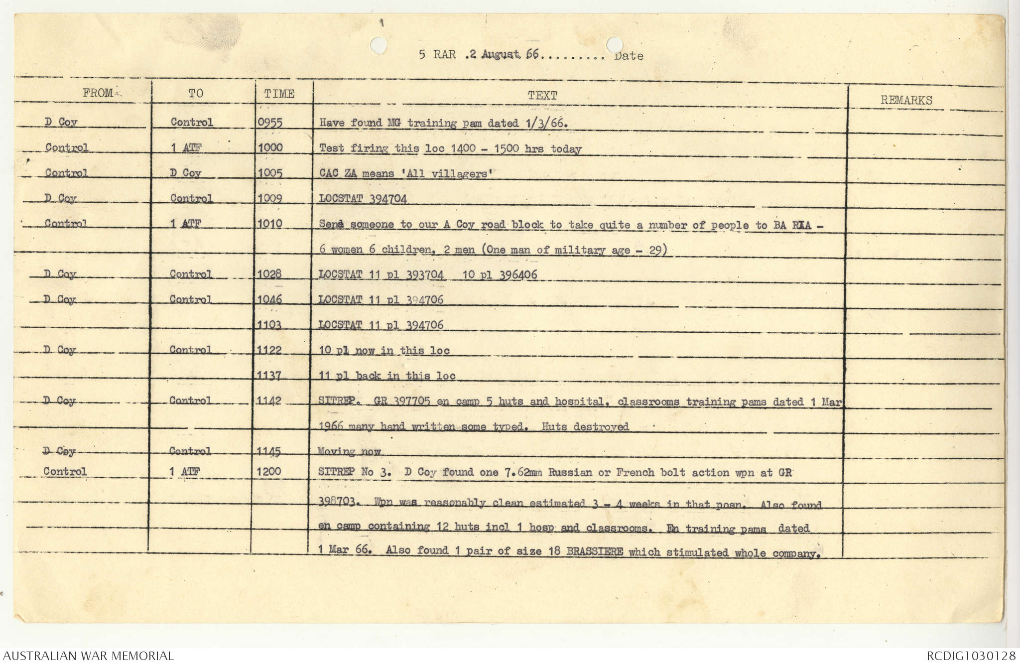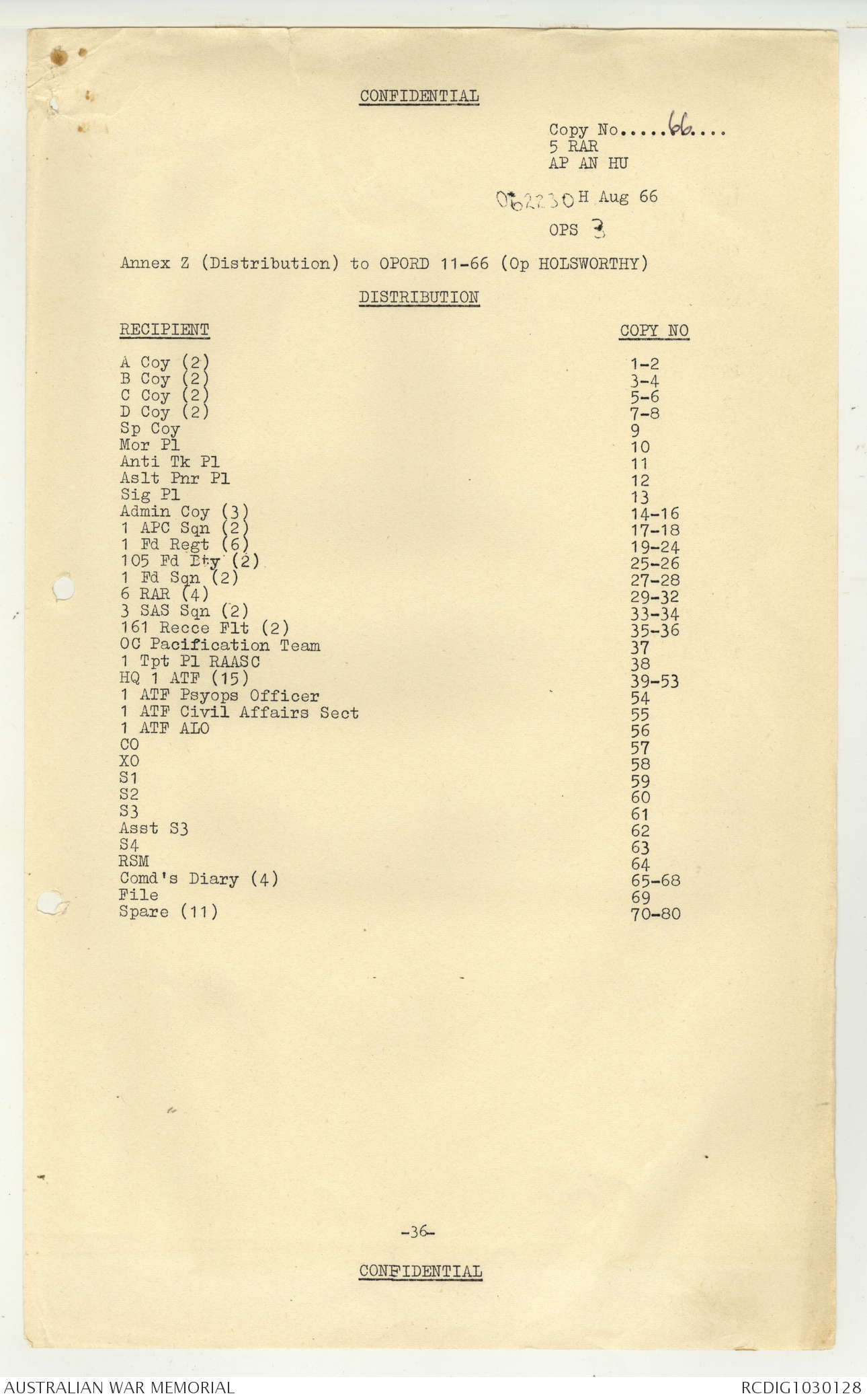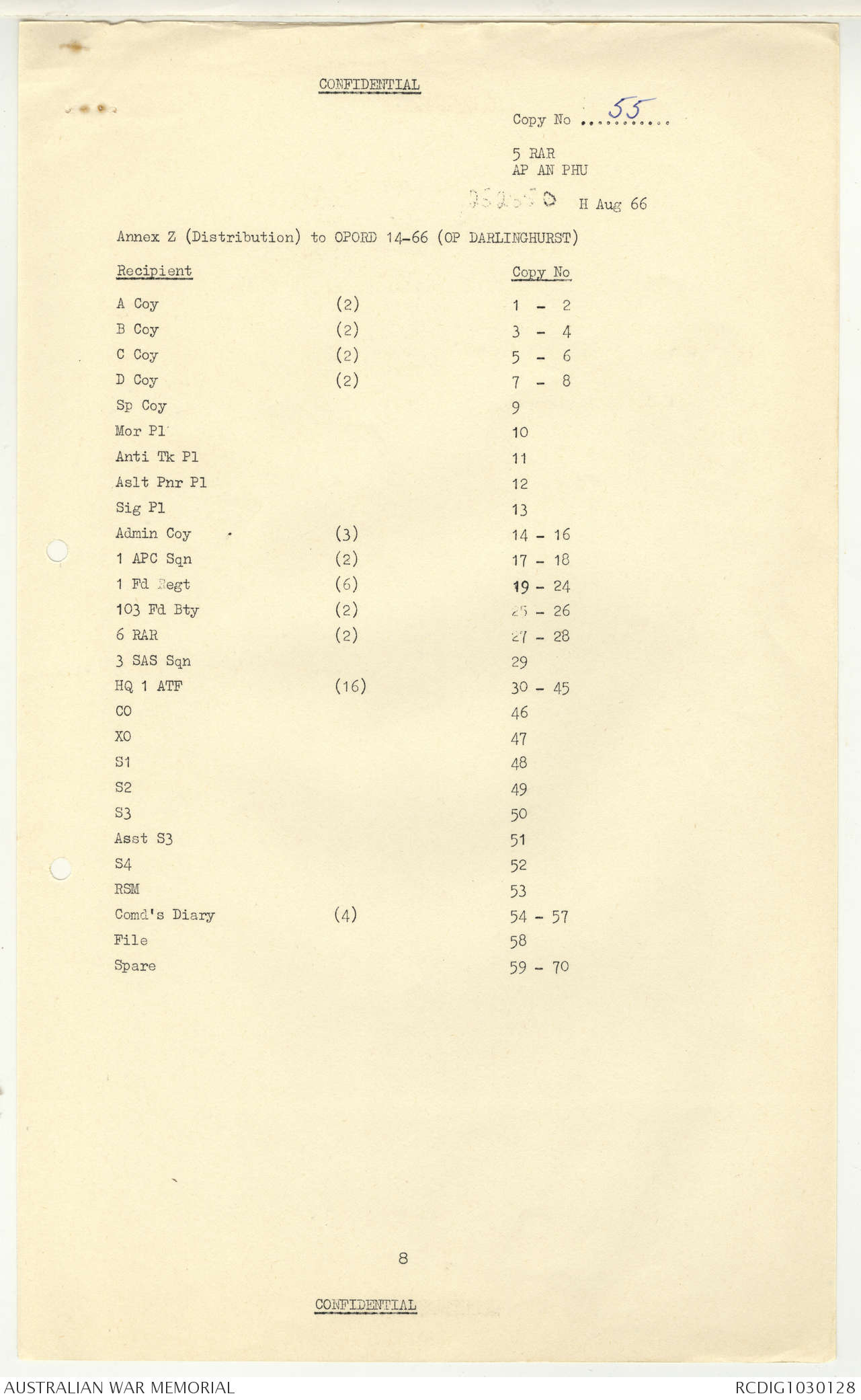 AWM95 7/5/7 PART 1 - 1-31 August 1966, Narrative, Operations log, Annexes