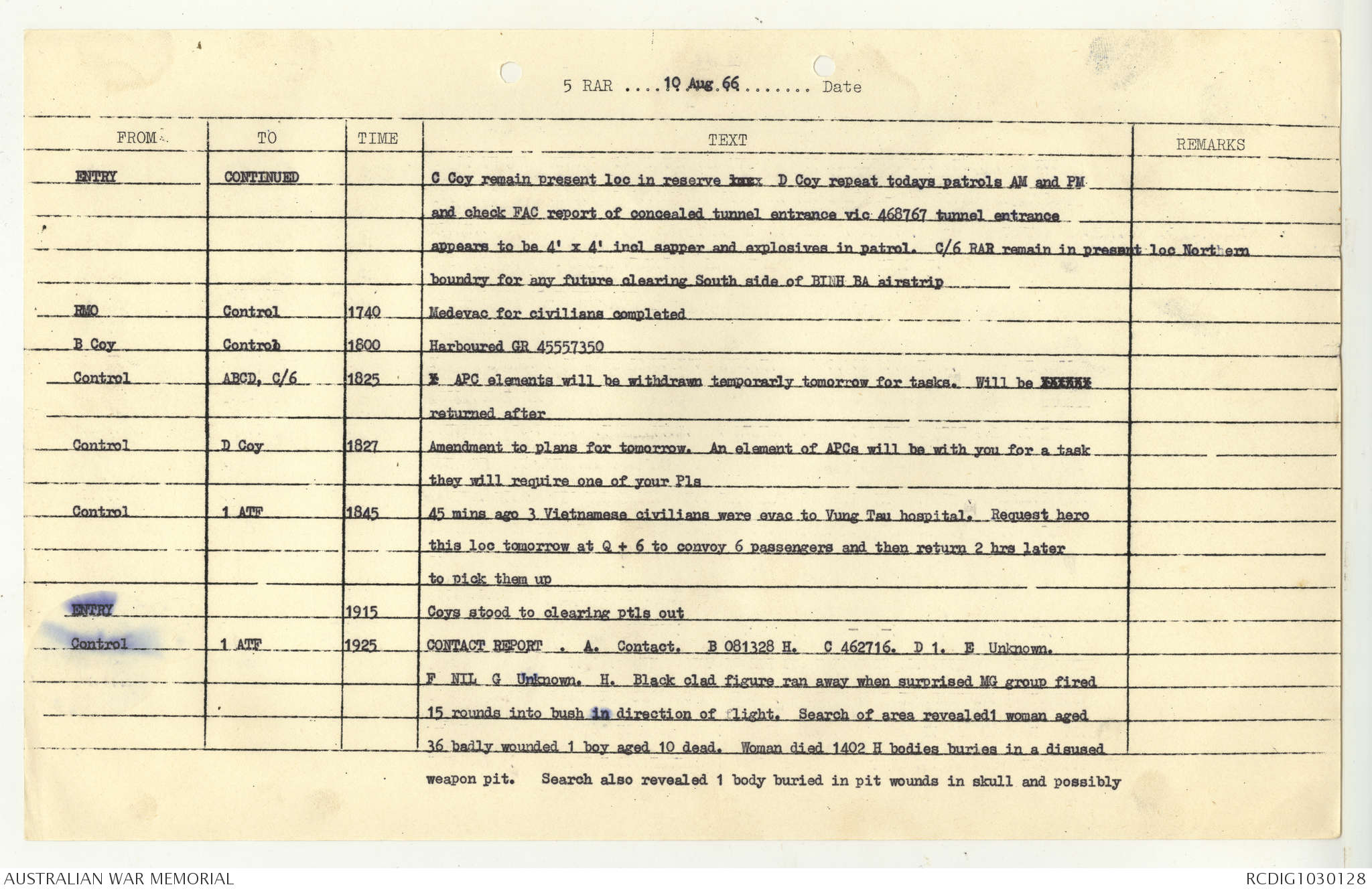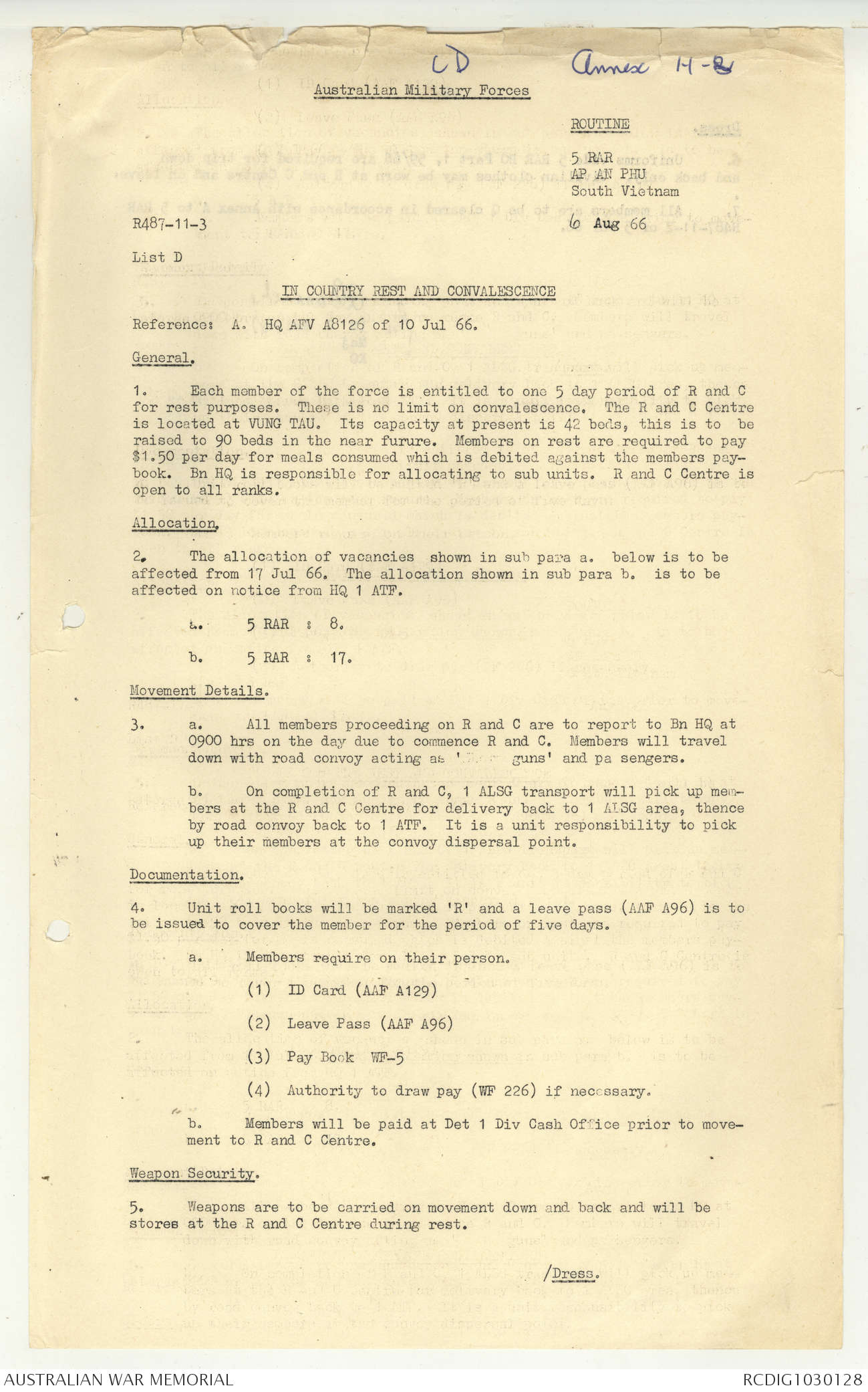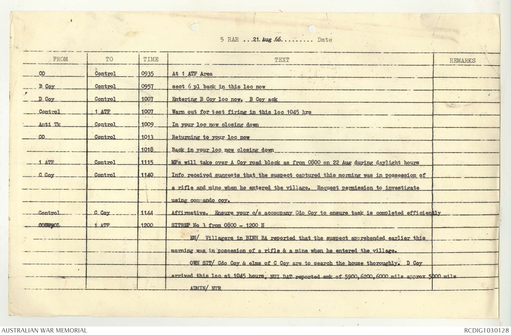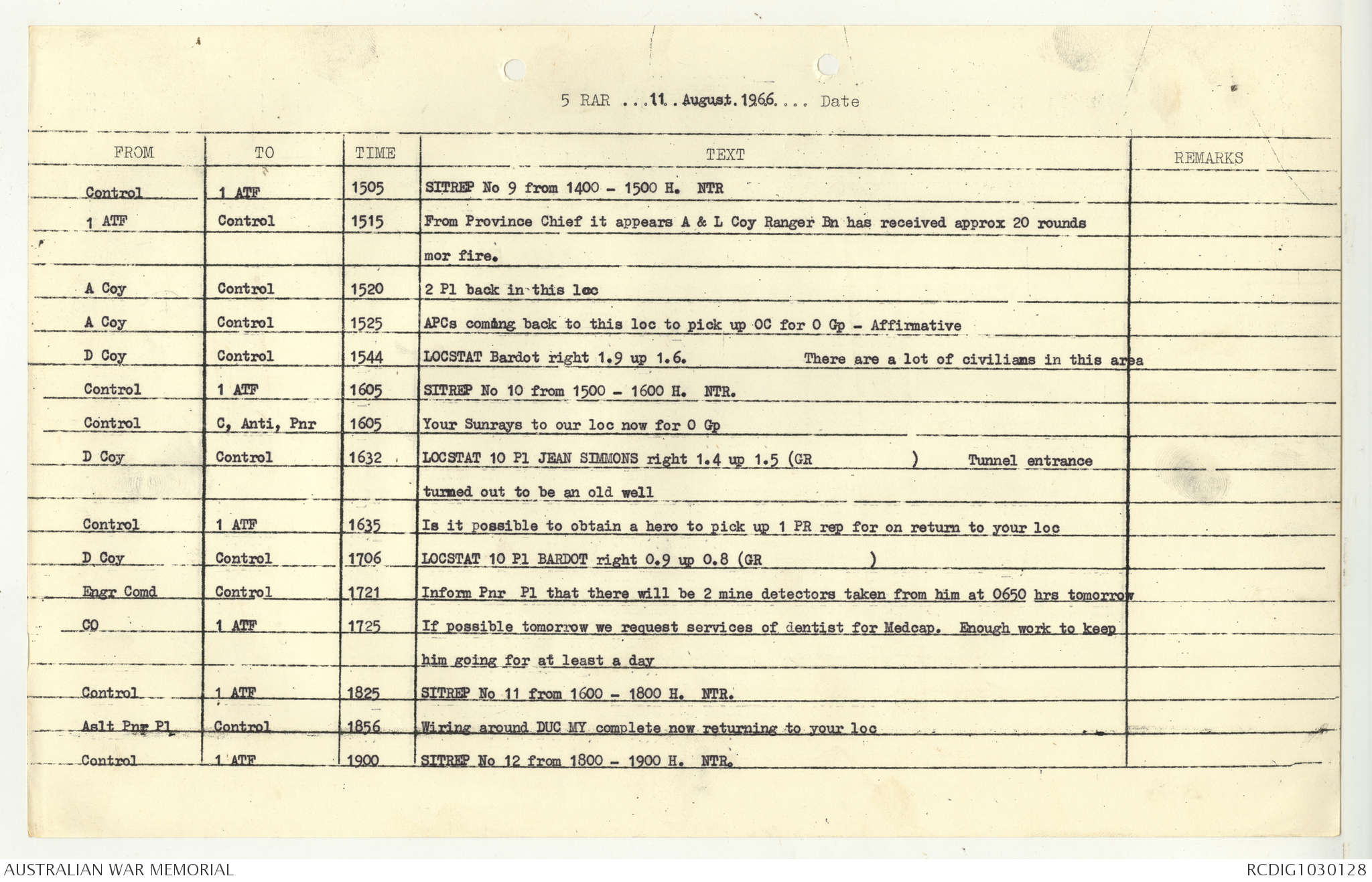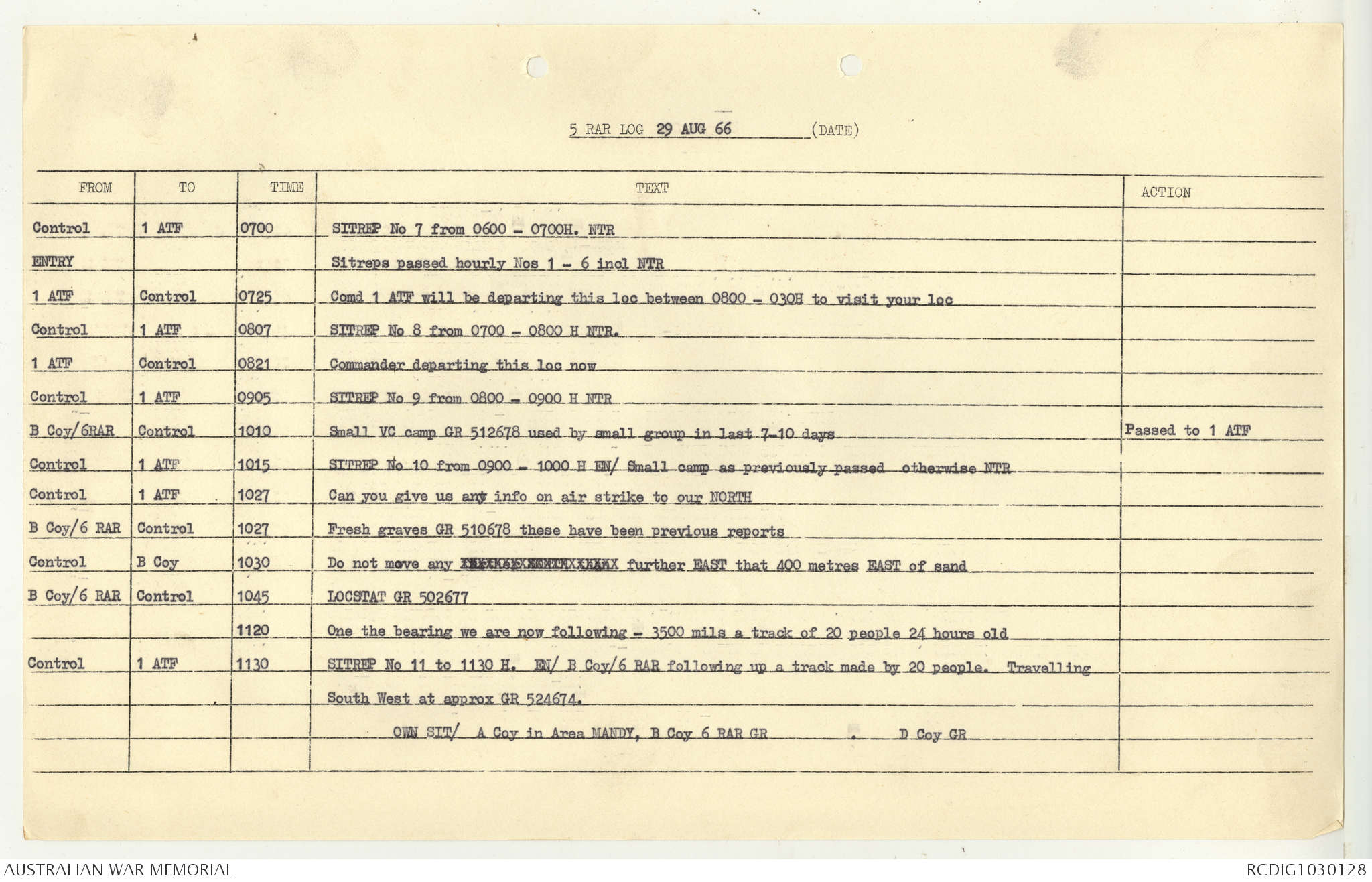 AWM95 7/5/7 PART 1 - 1-31 August 1966, Narrative, Operations log, Annexes