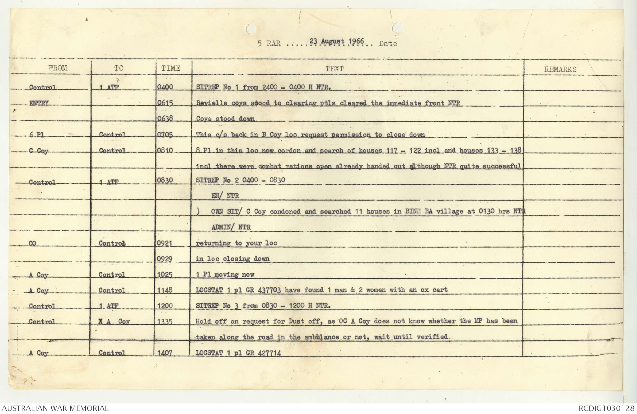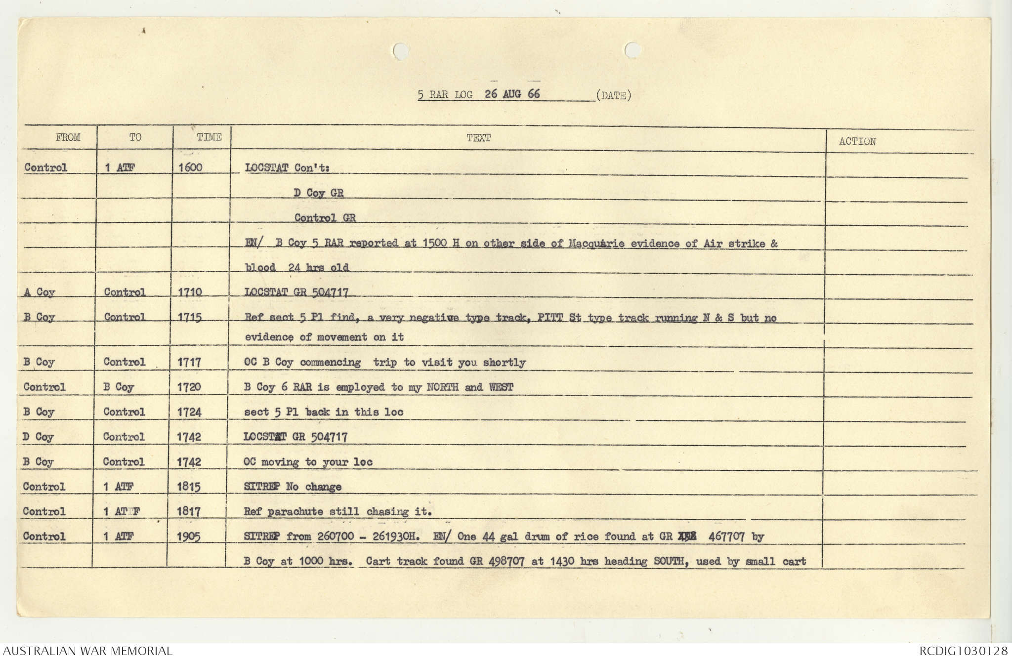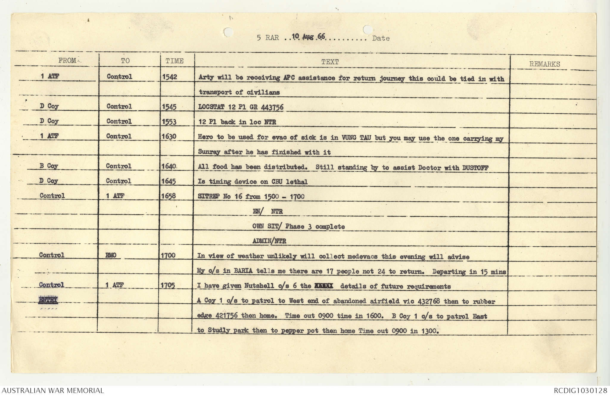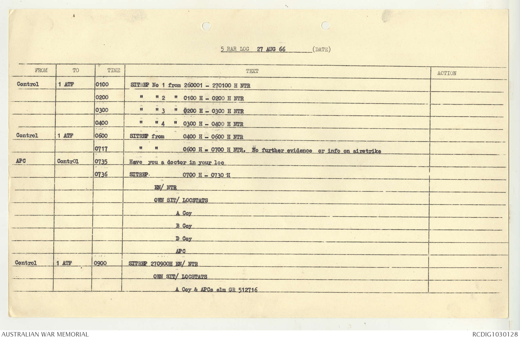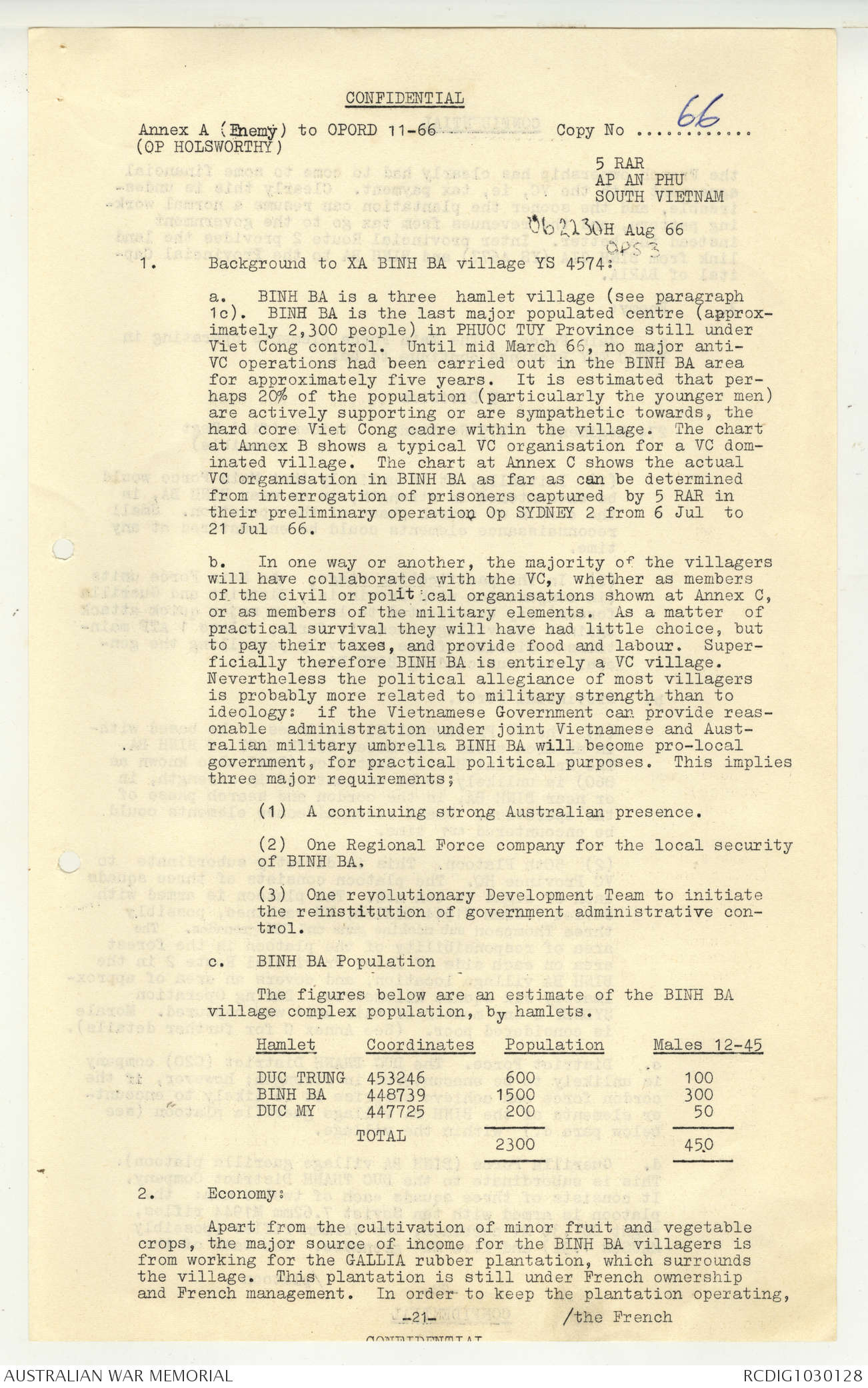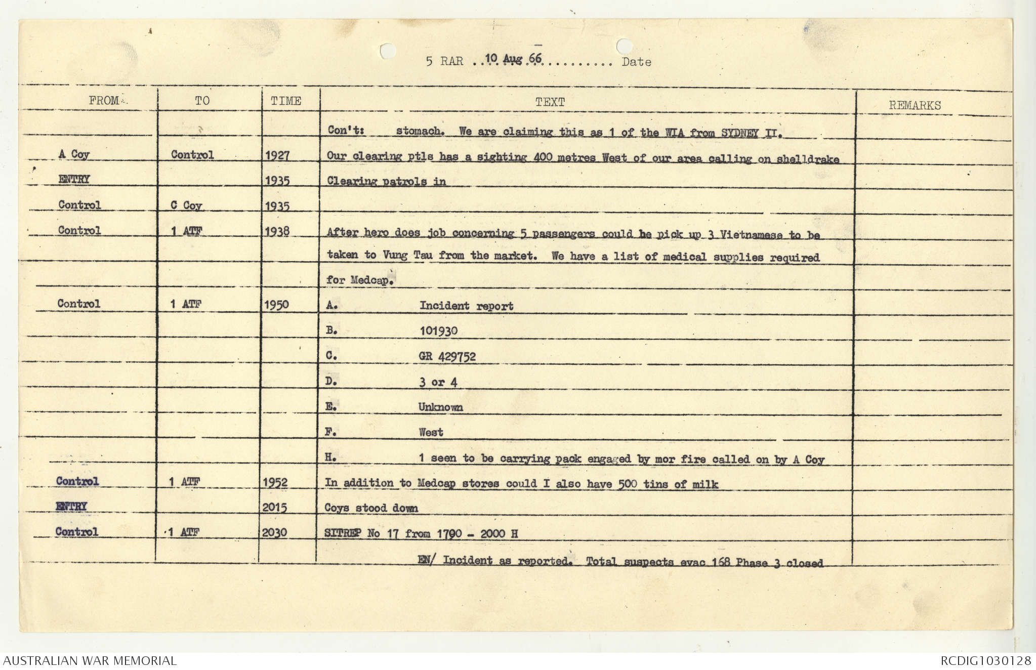 AWM95 7/5/7 PART 1 - 1-31 August 1966, Narrative, Operations log, Annexes