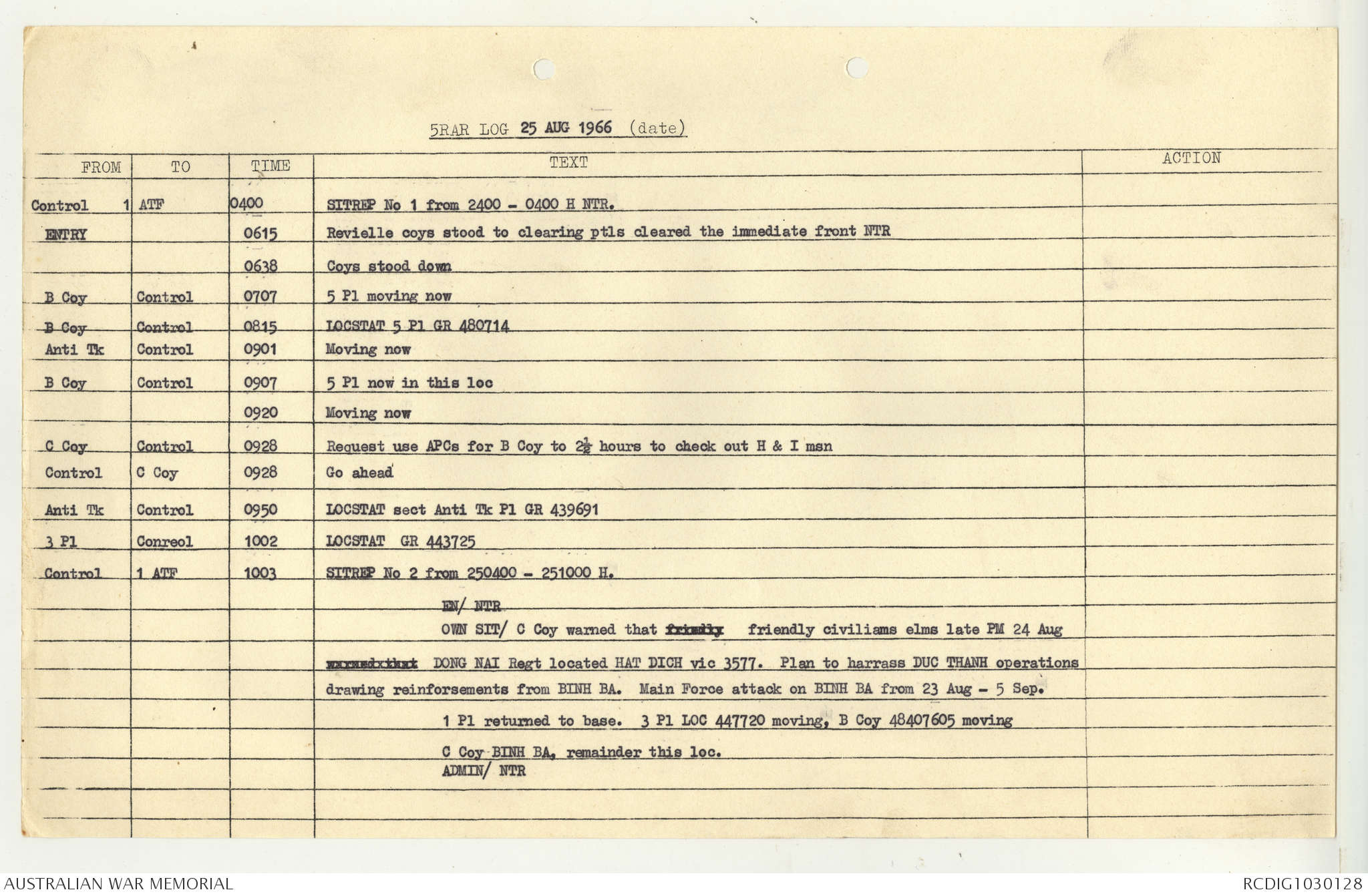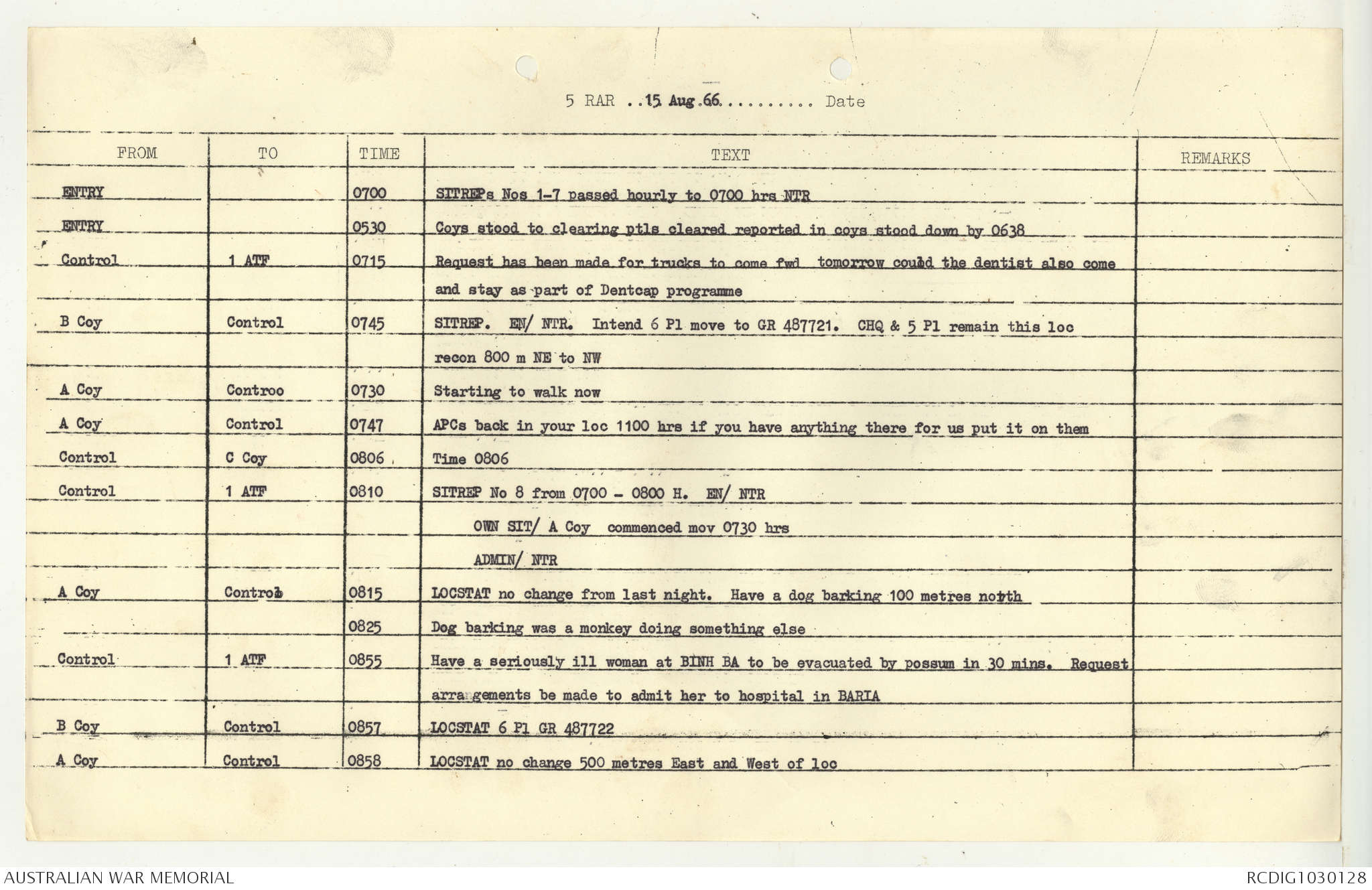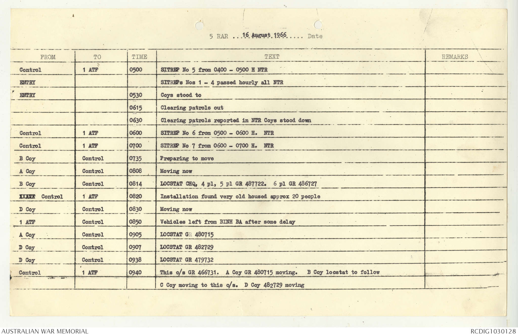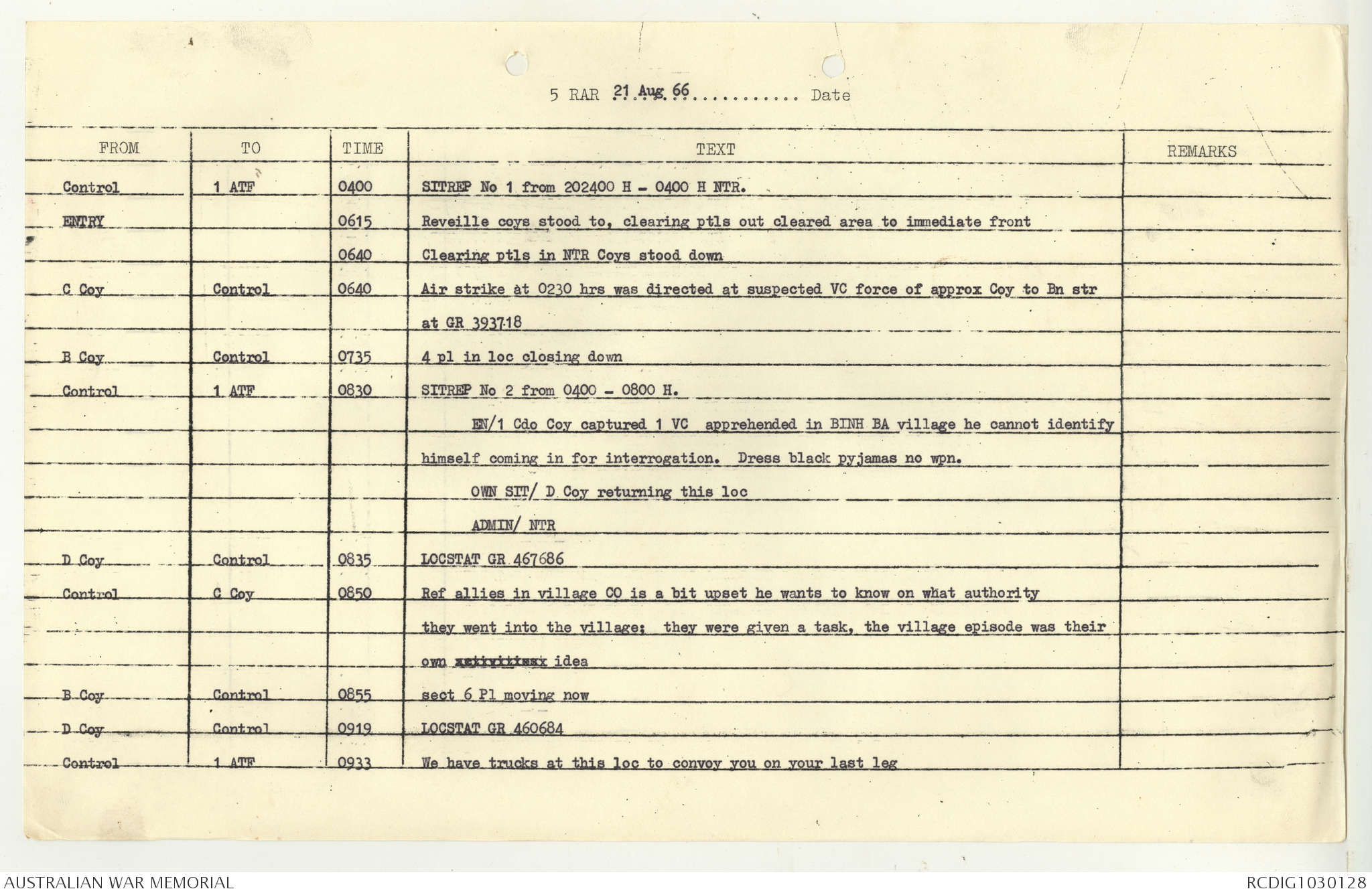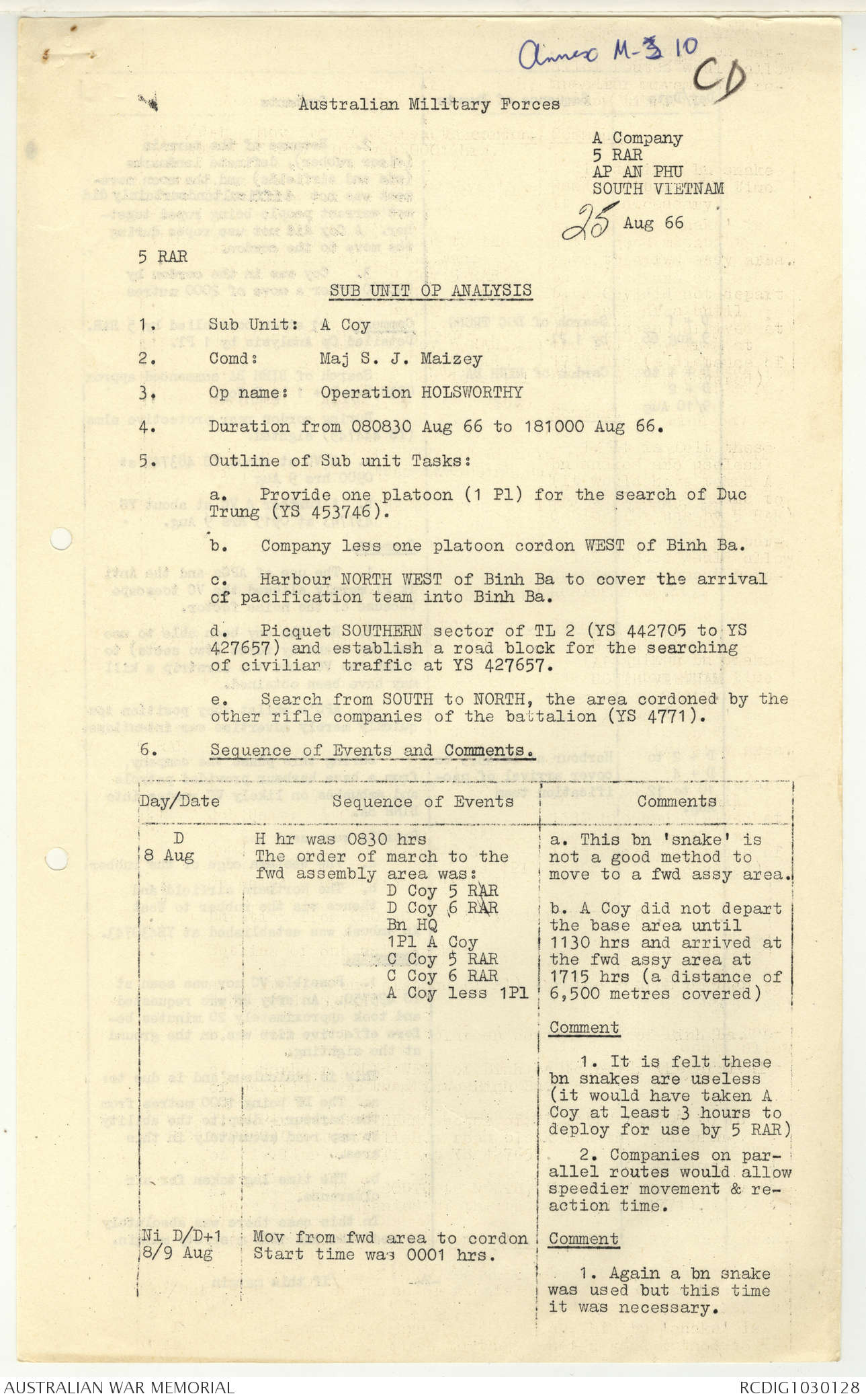 AWM95 7/5/7 PART 1 - 1-31 August 1966, Narrative, Operations log, Annexes