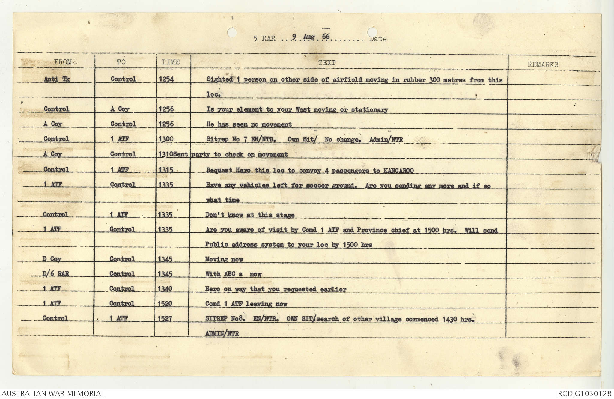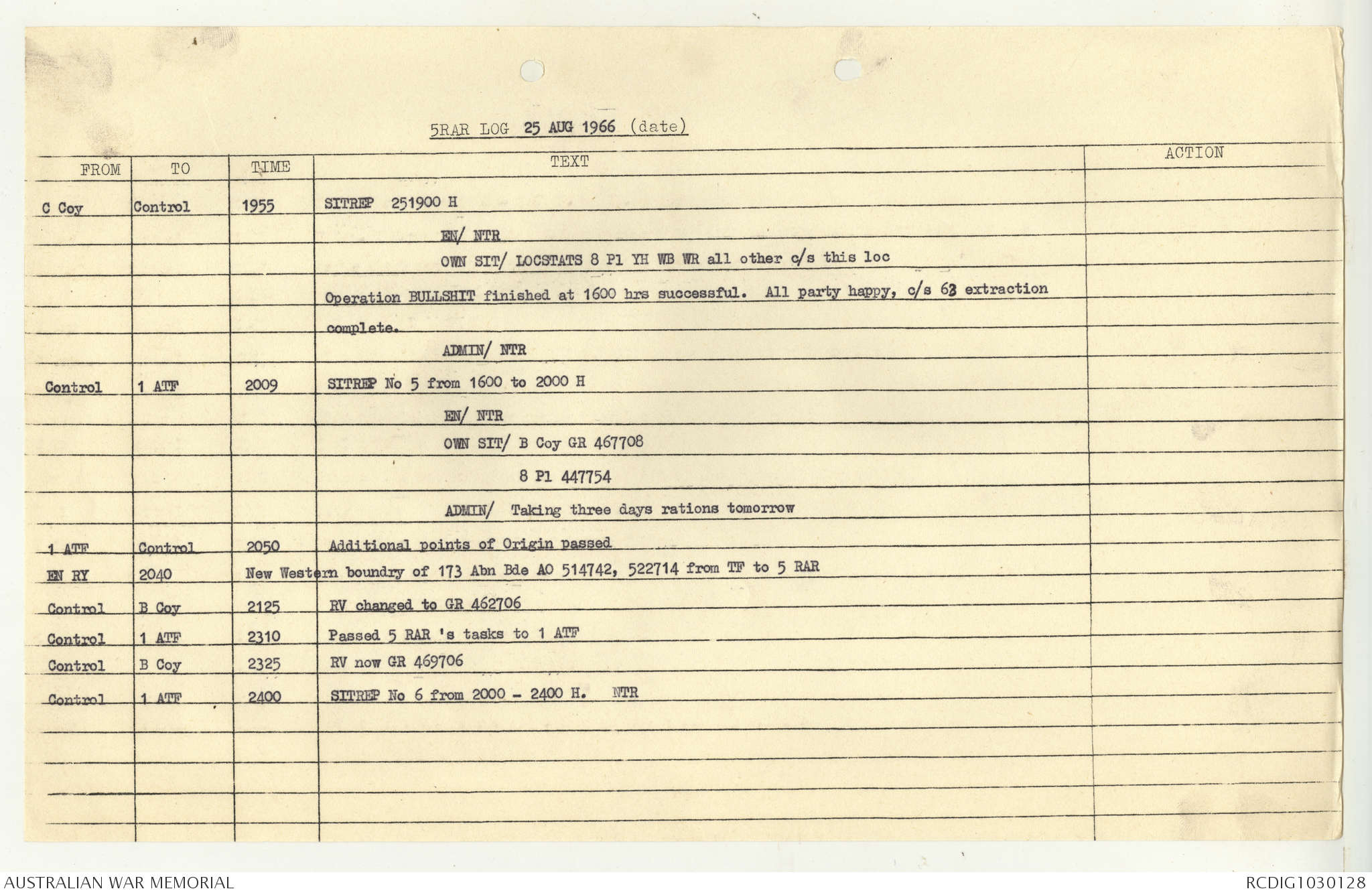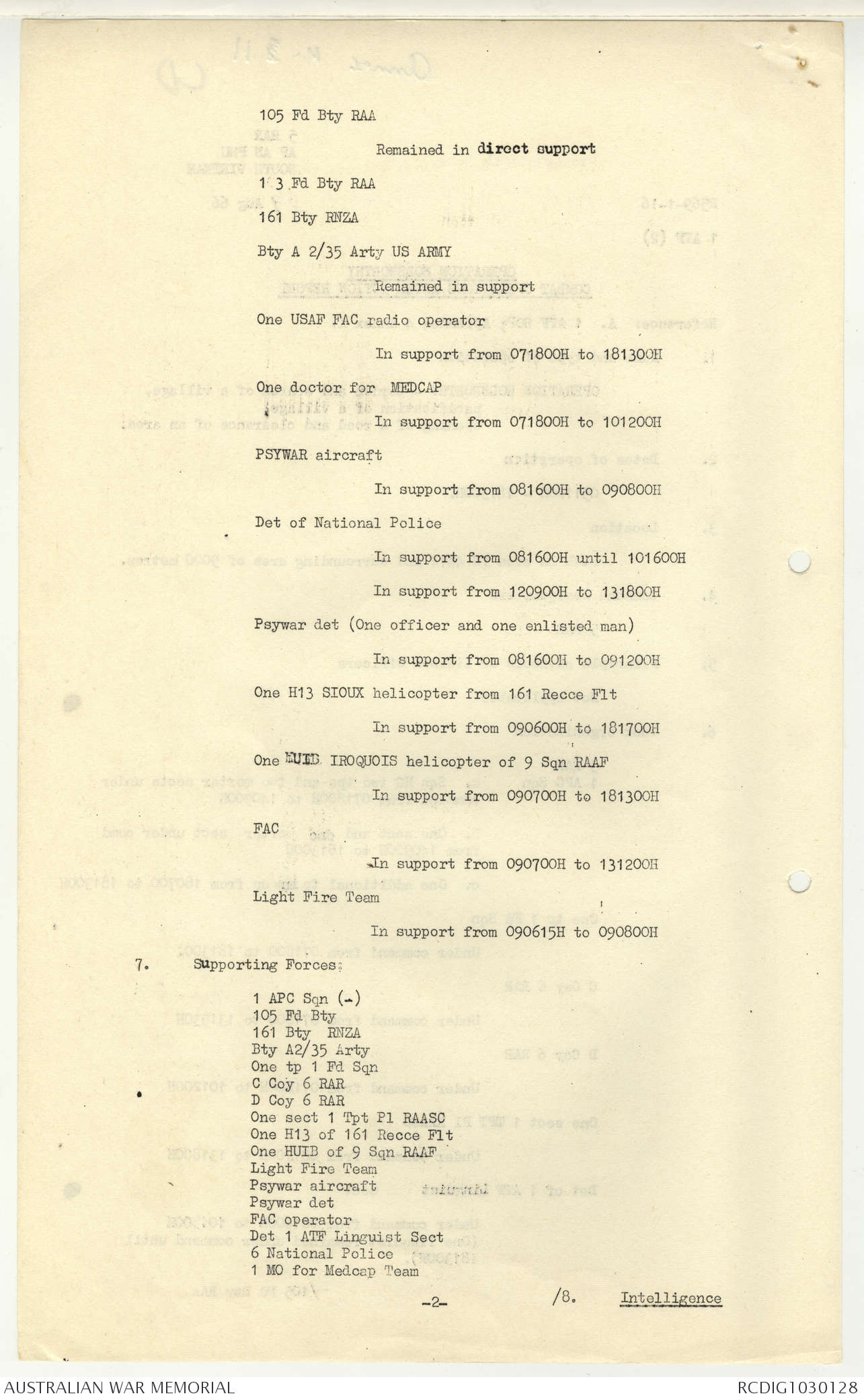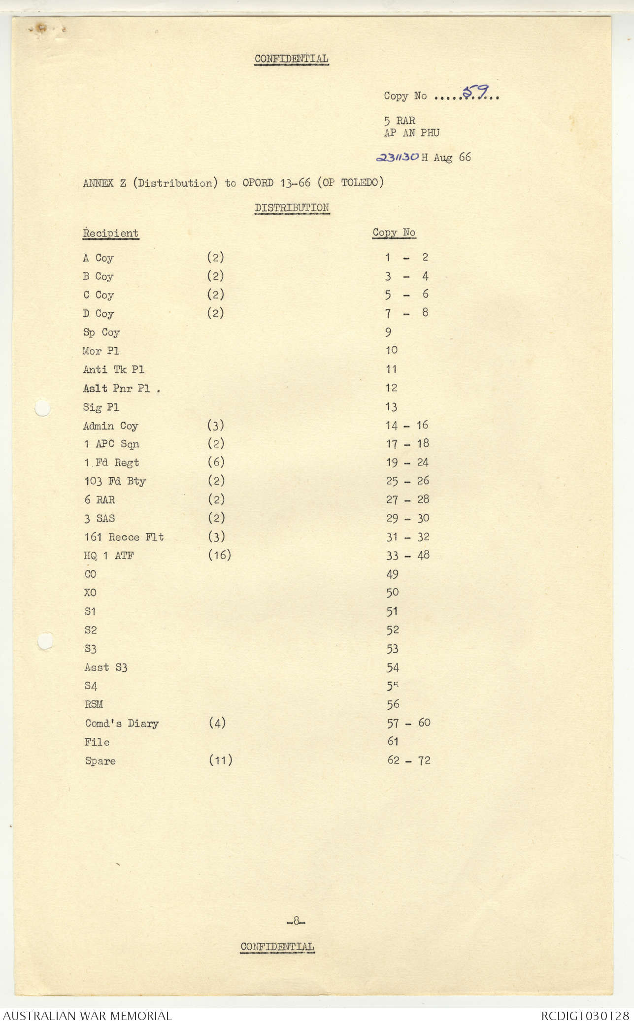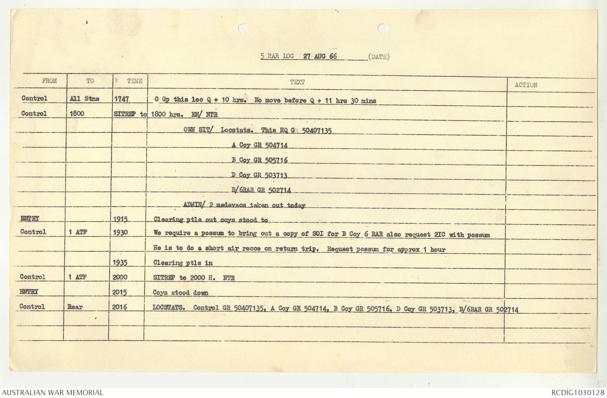 AWM95 7/5/7 PART 1 - 1-31 August 1966, Narrative, Operations log, Annexes
