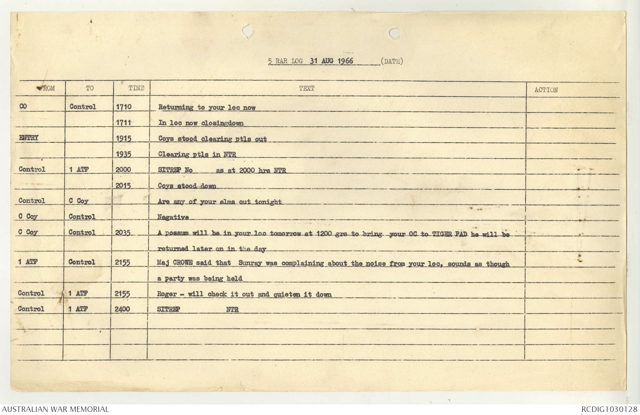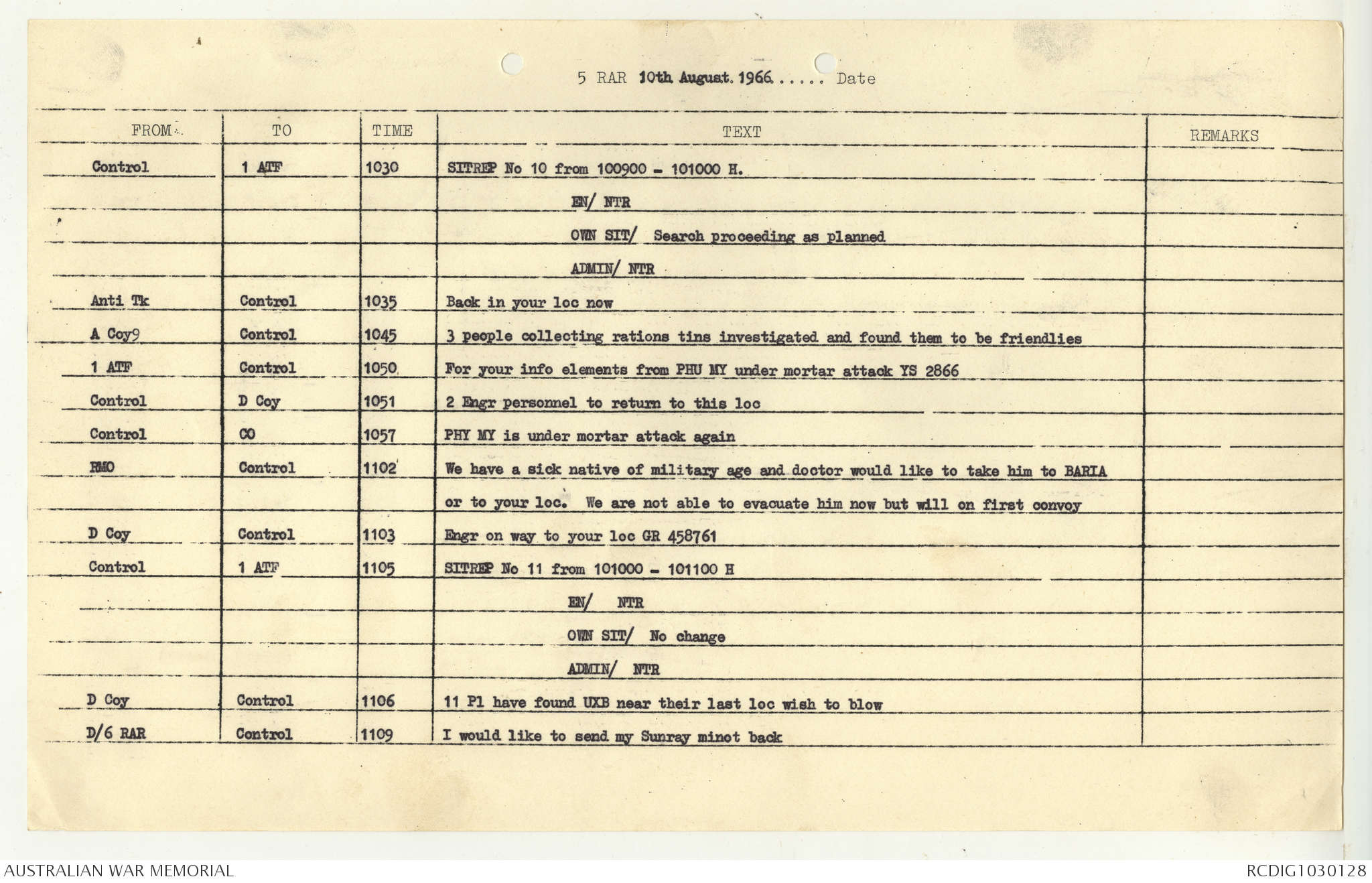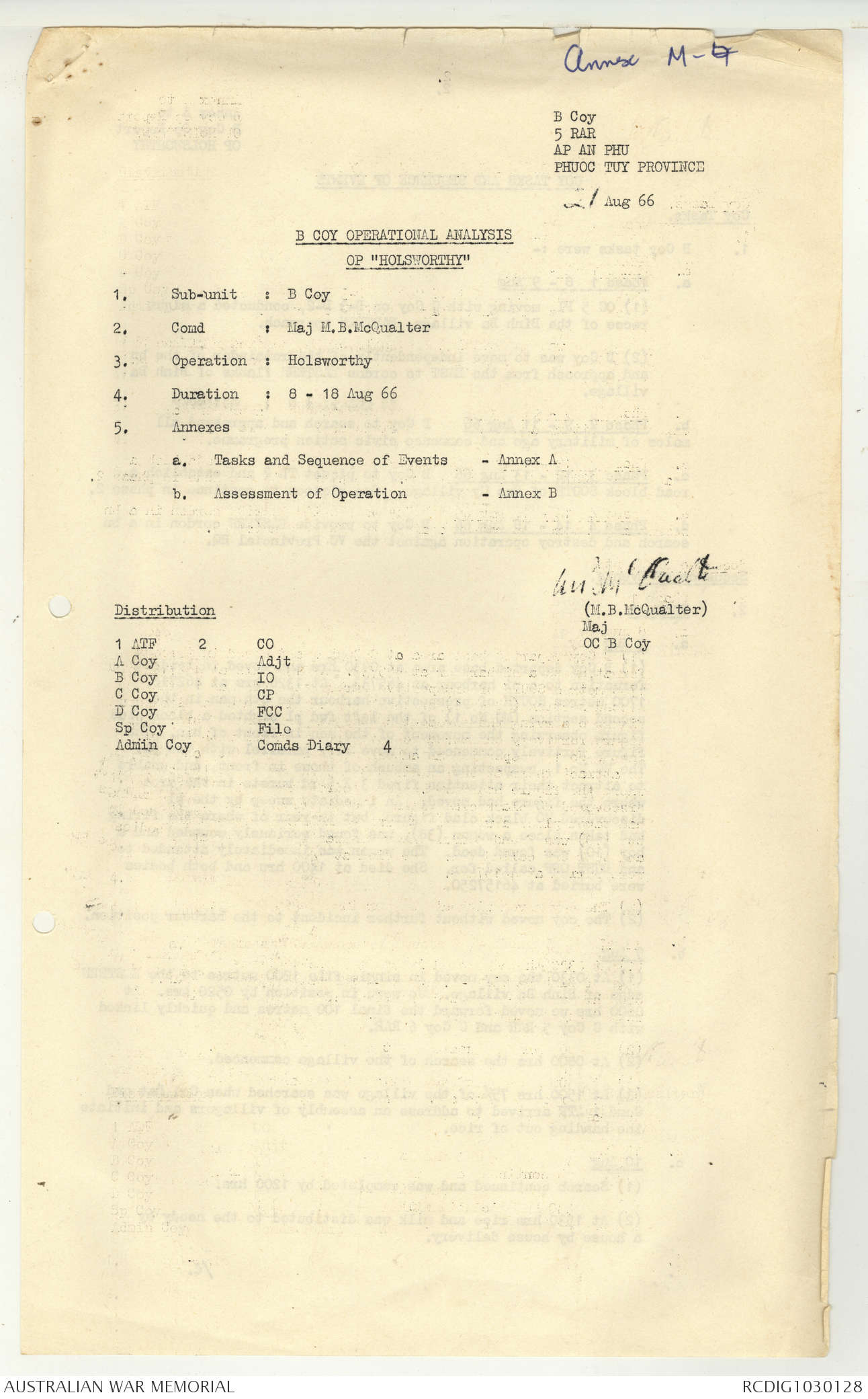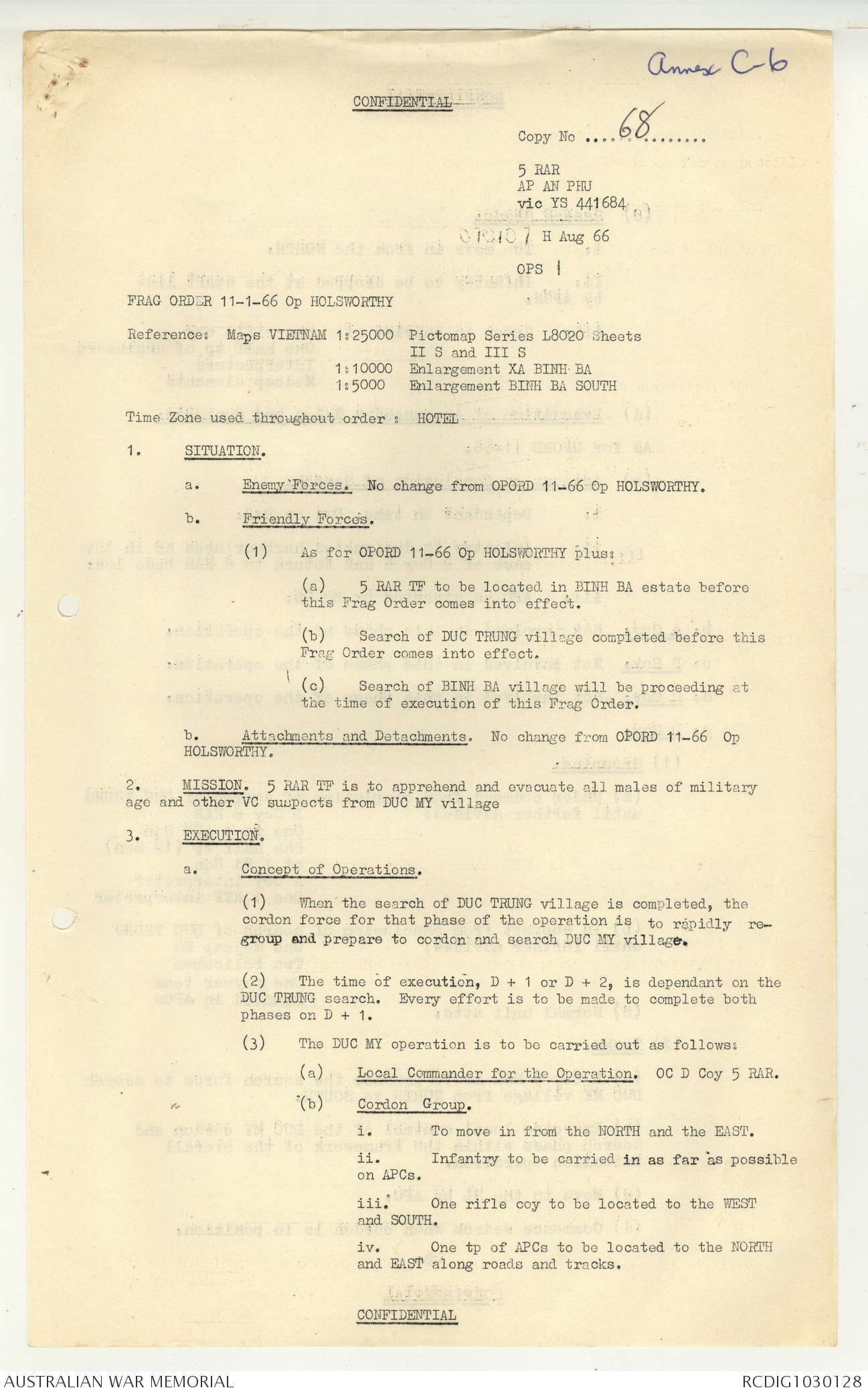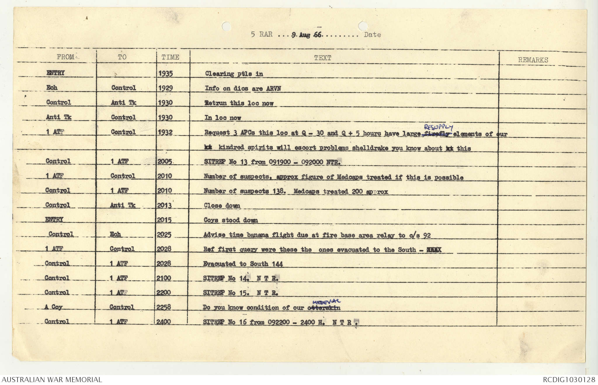 AWM95 7/5/7 PART 1 - 1-31 August 1966, Narrative, Operations log, Annexes