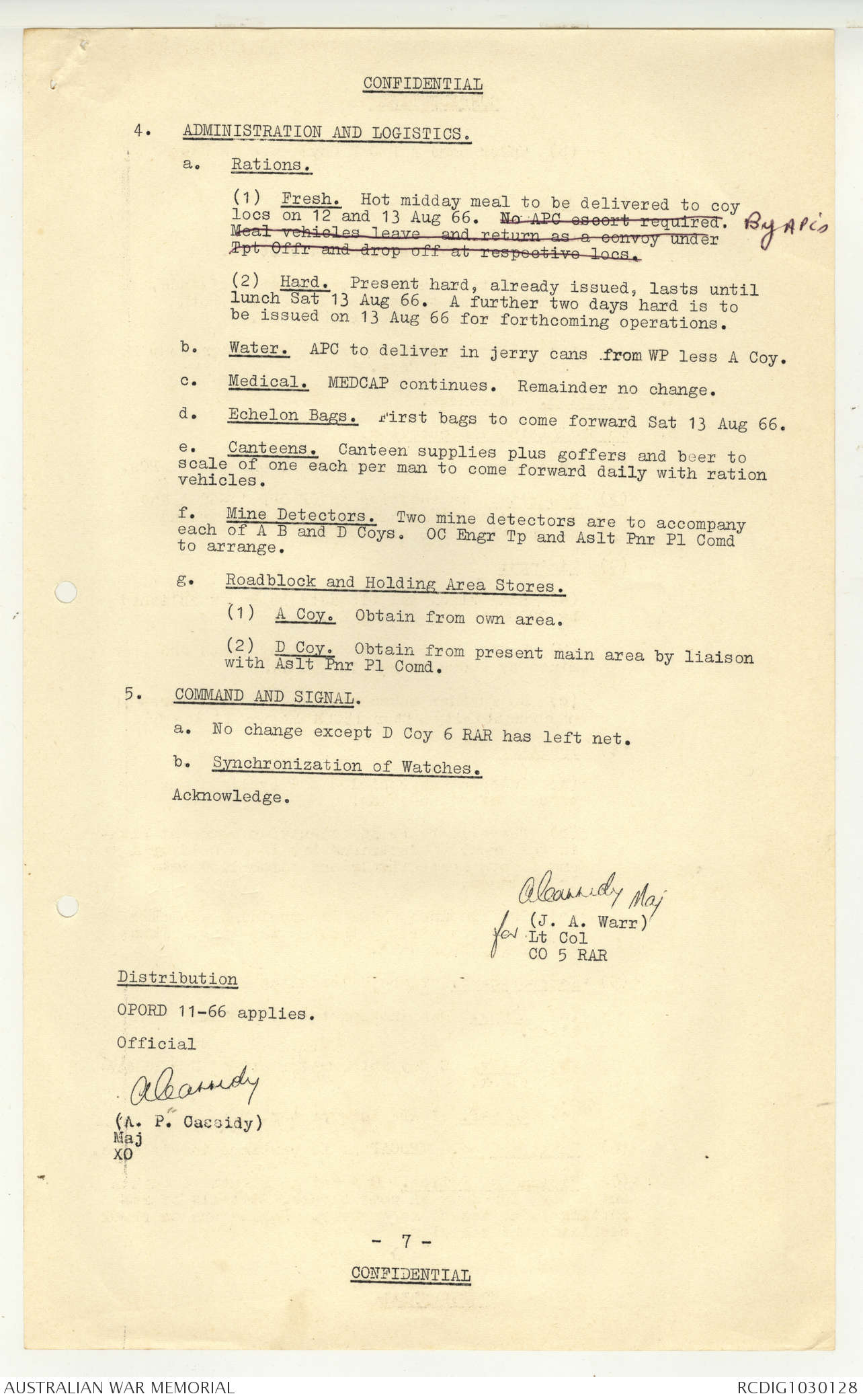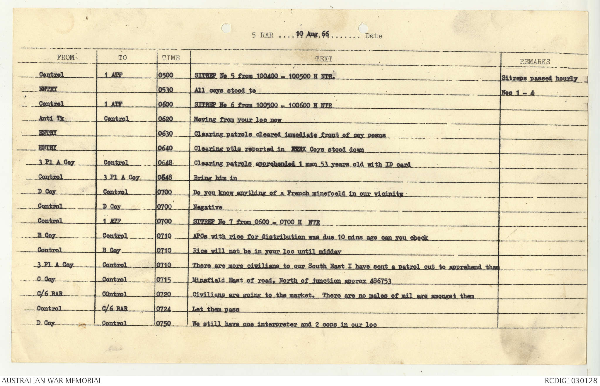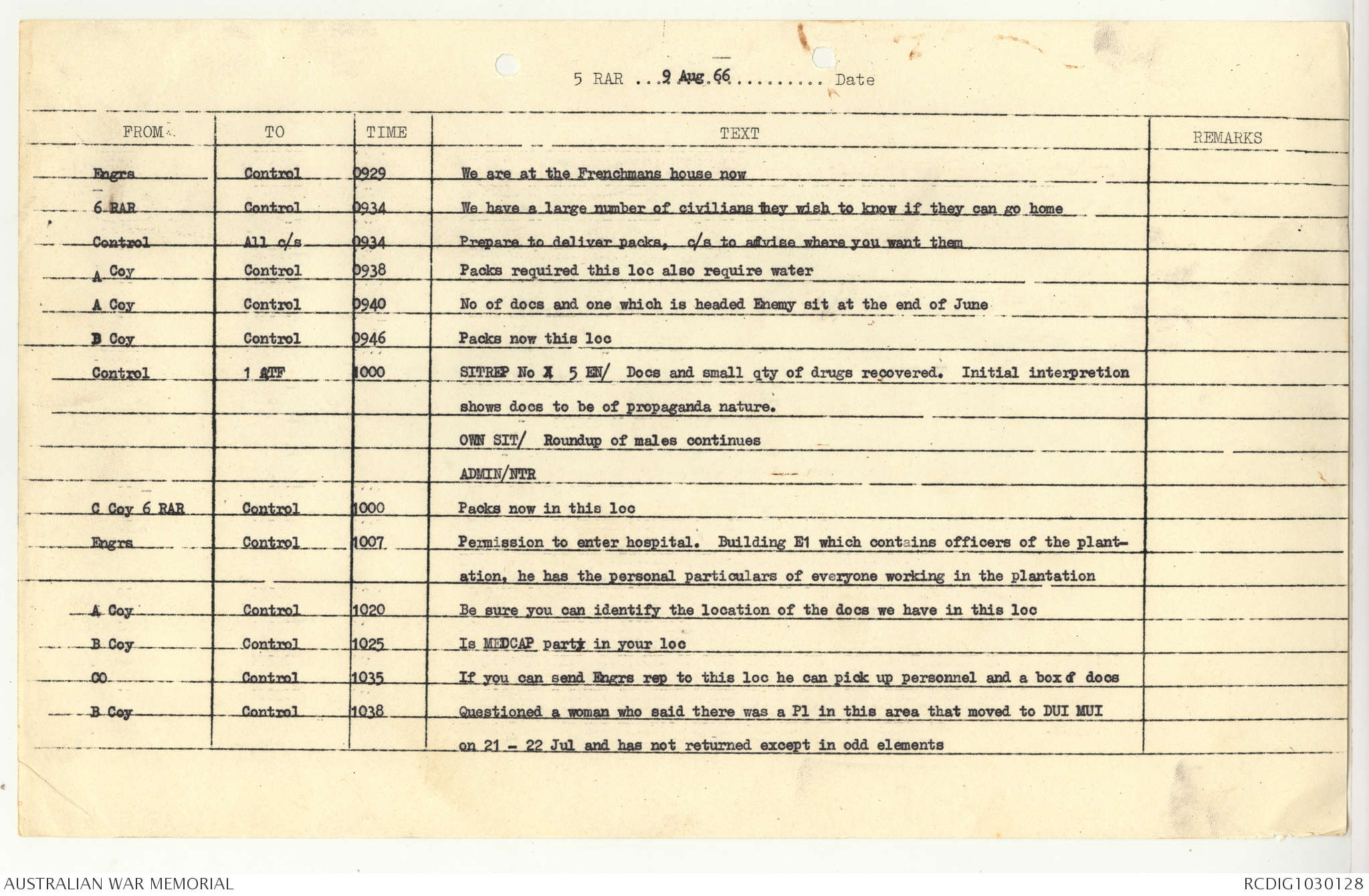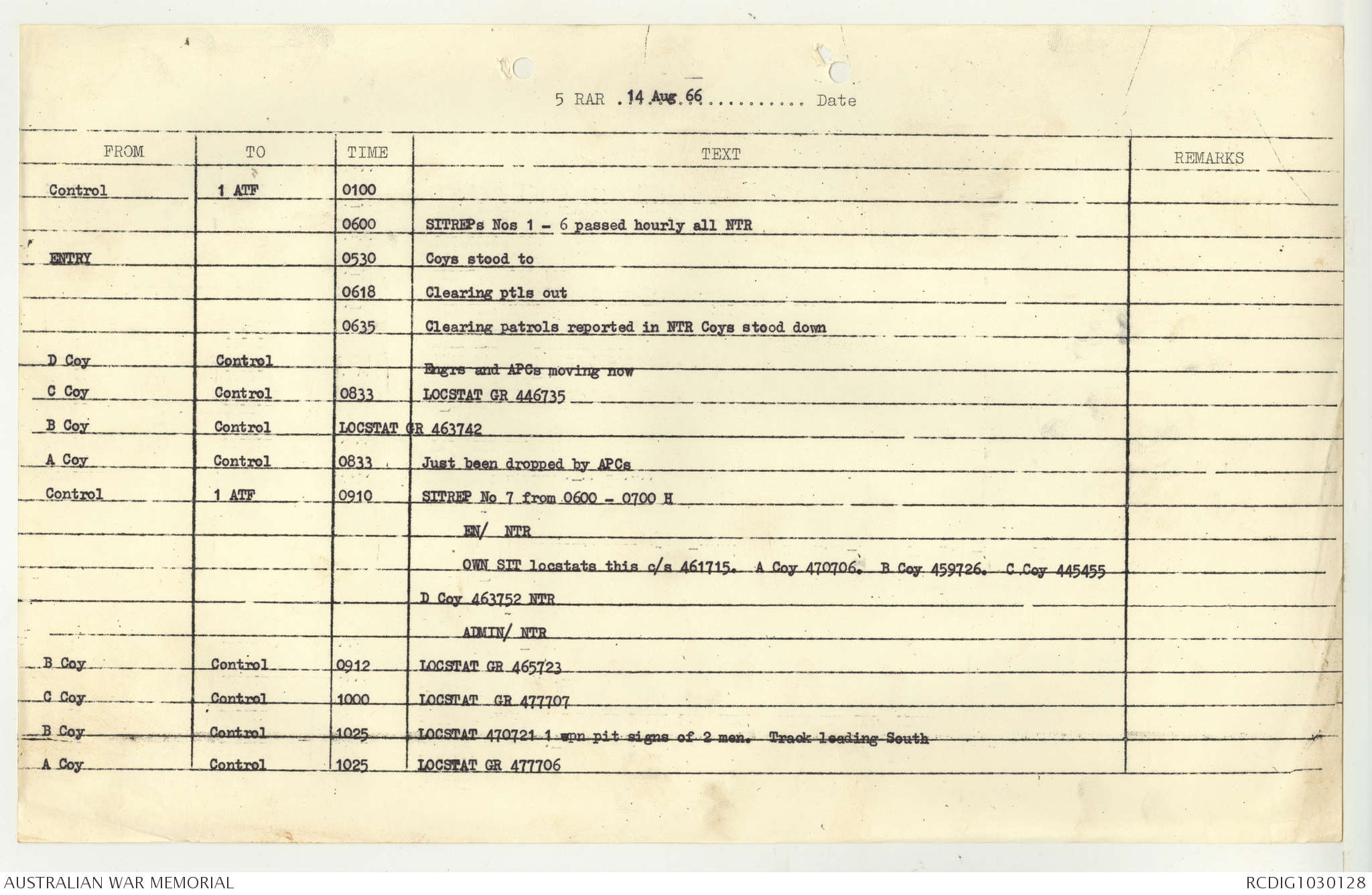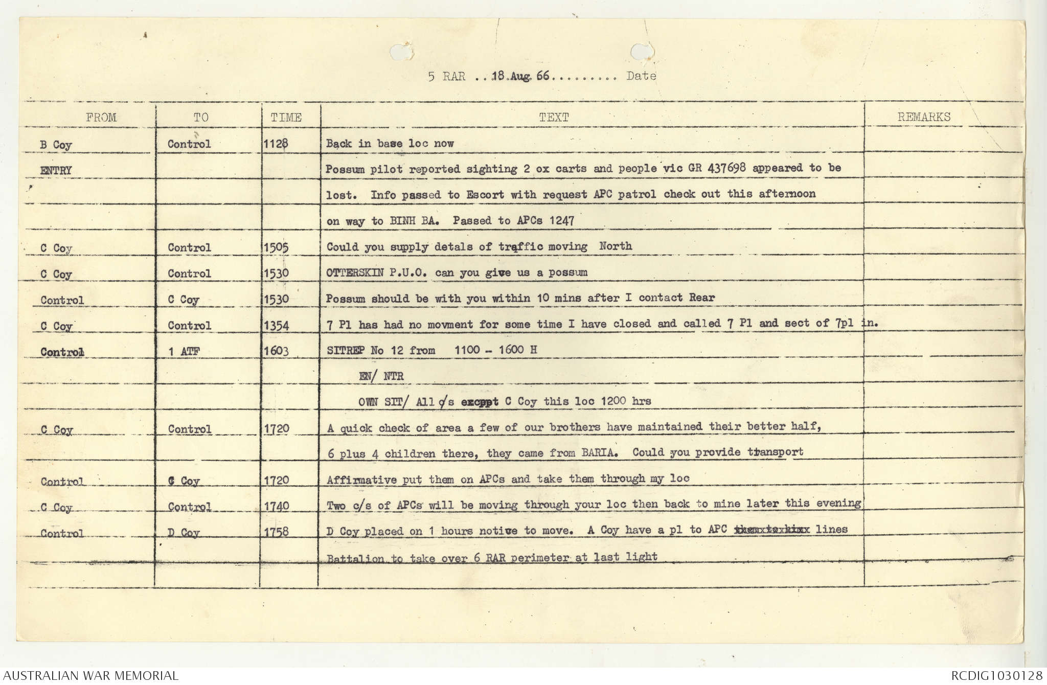 AWM95 7/5/7 PART 1 - 1-31 August 1966, Narrative, Operations log, Annexes