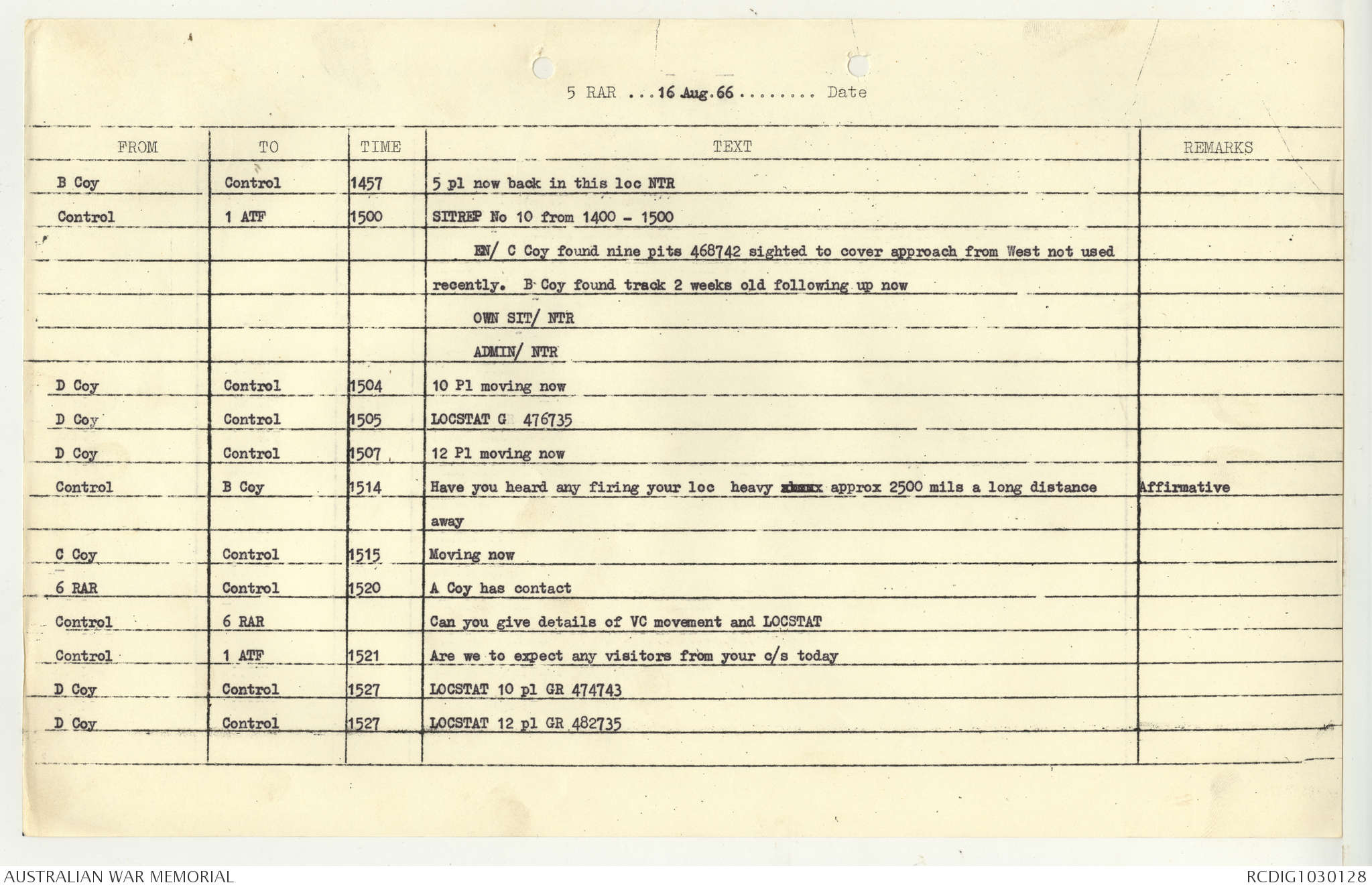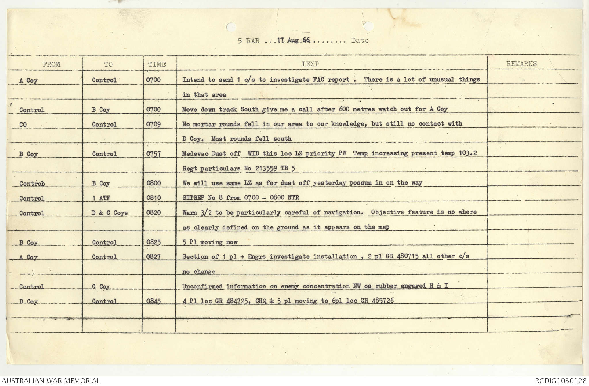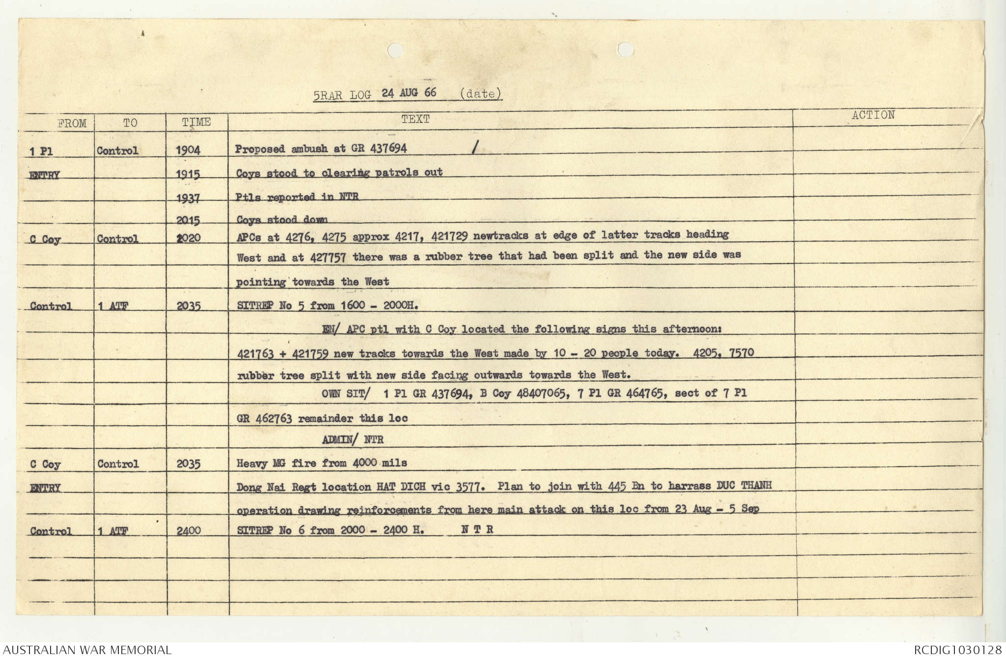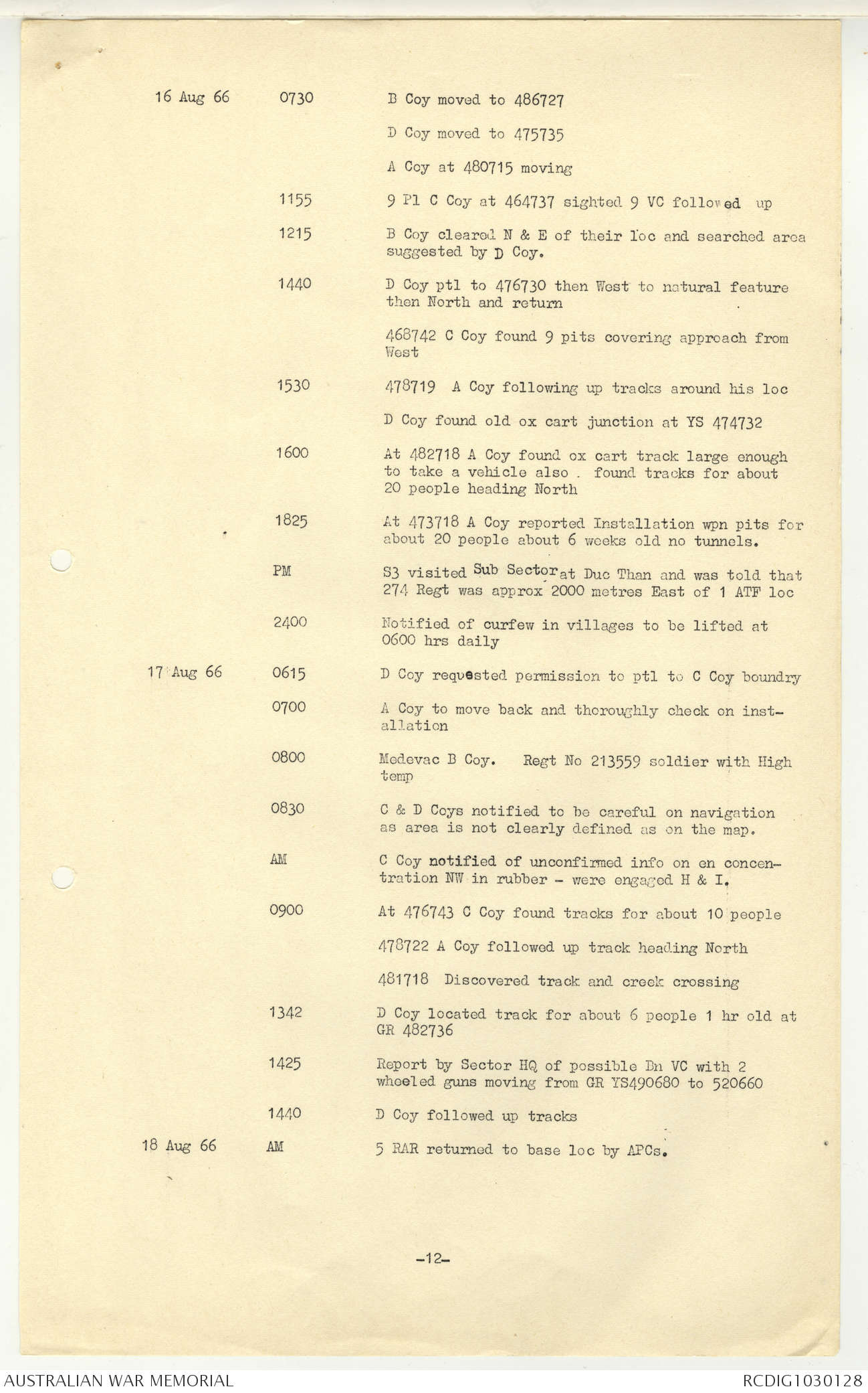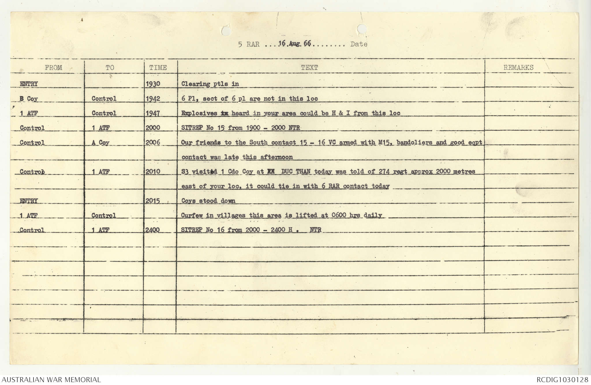 AWM95 7/5/7 PART 1 - 1-31 August 1966, Narrative, Operations log, Annexes