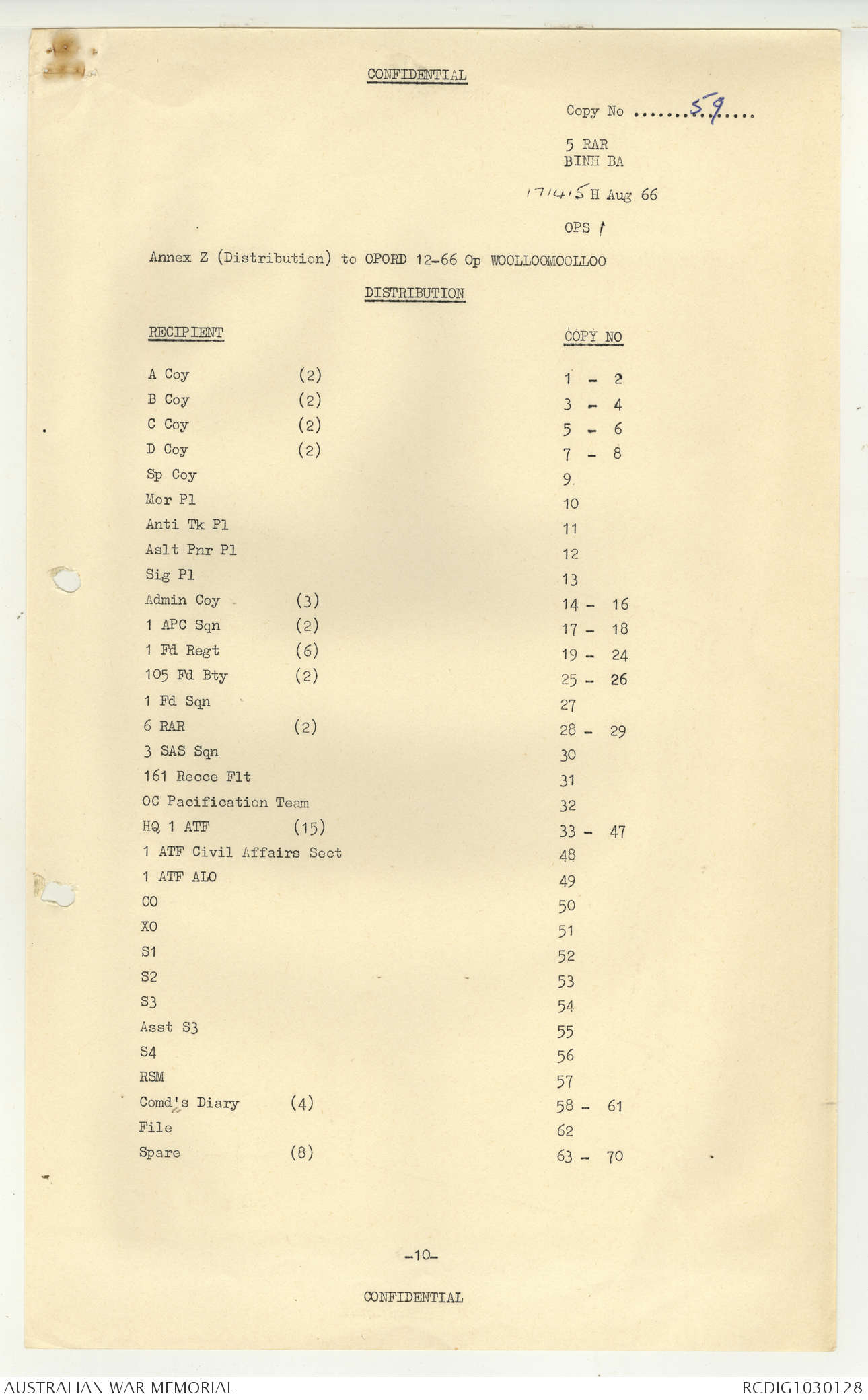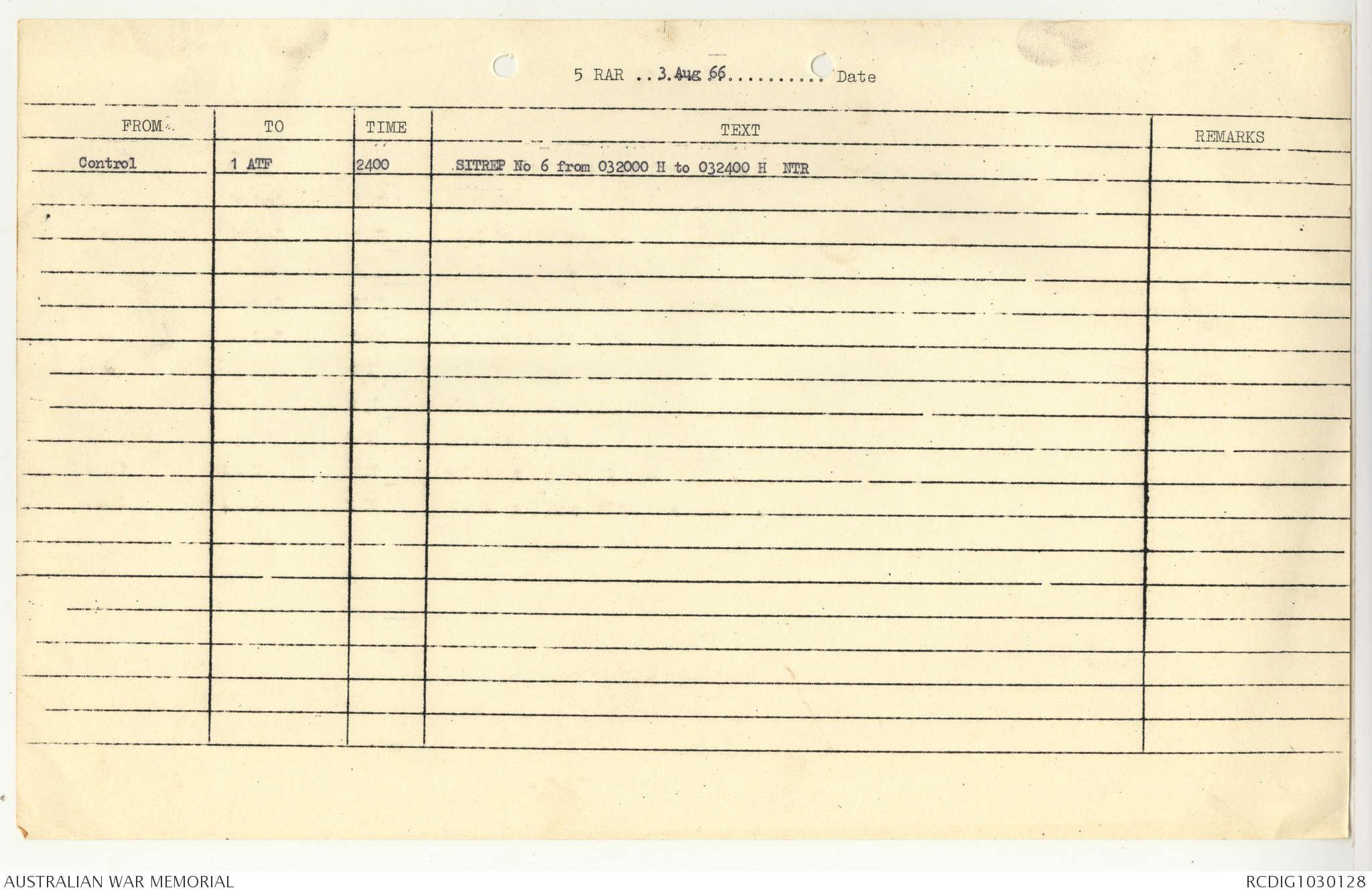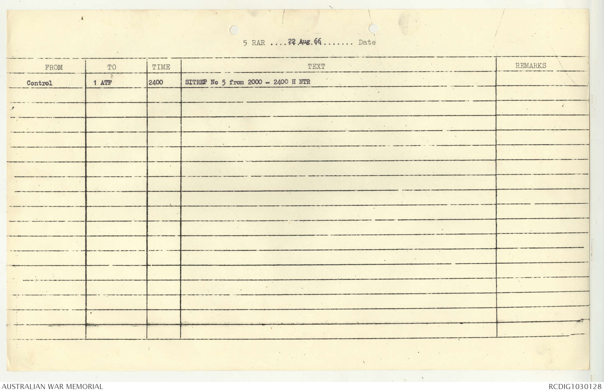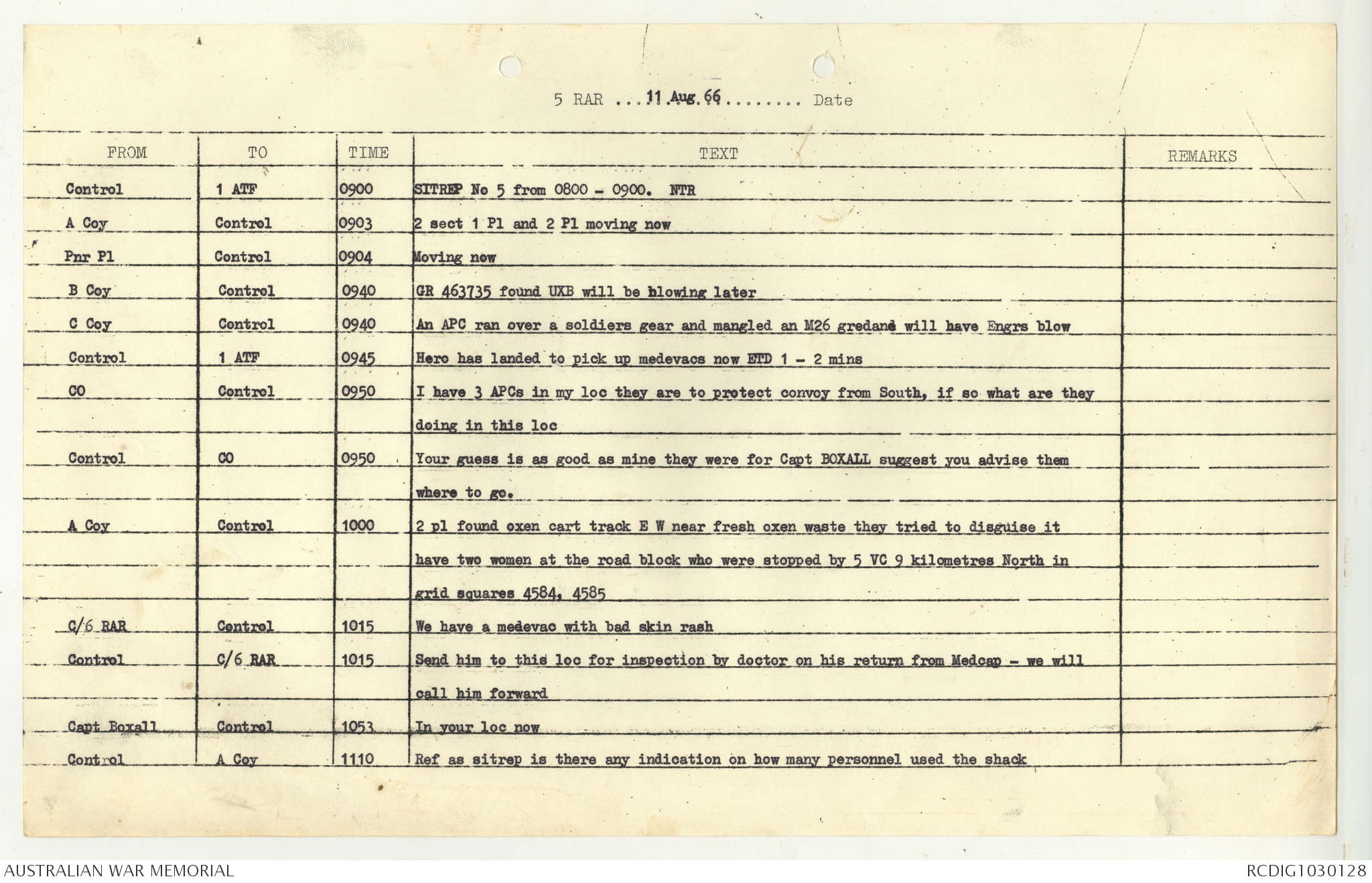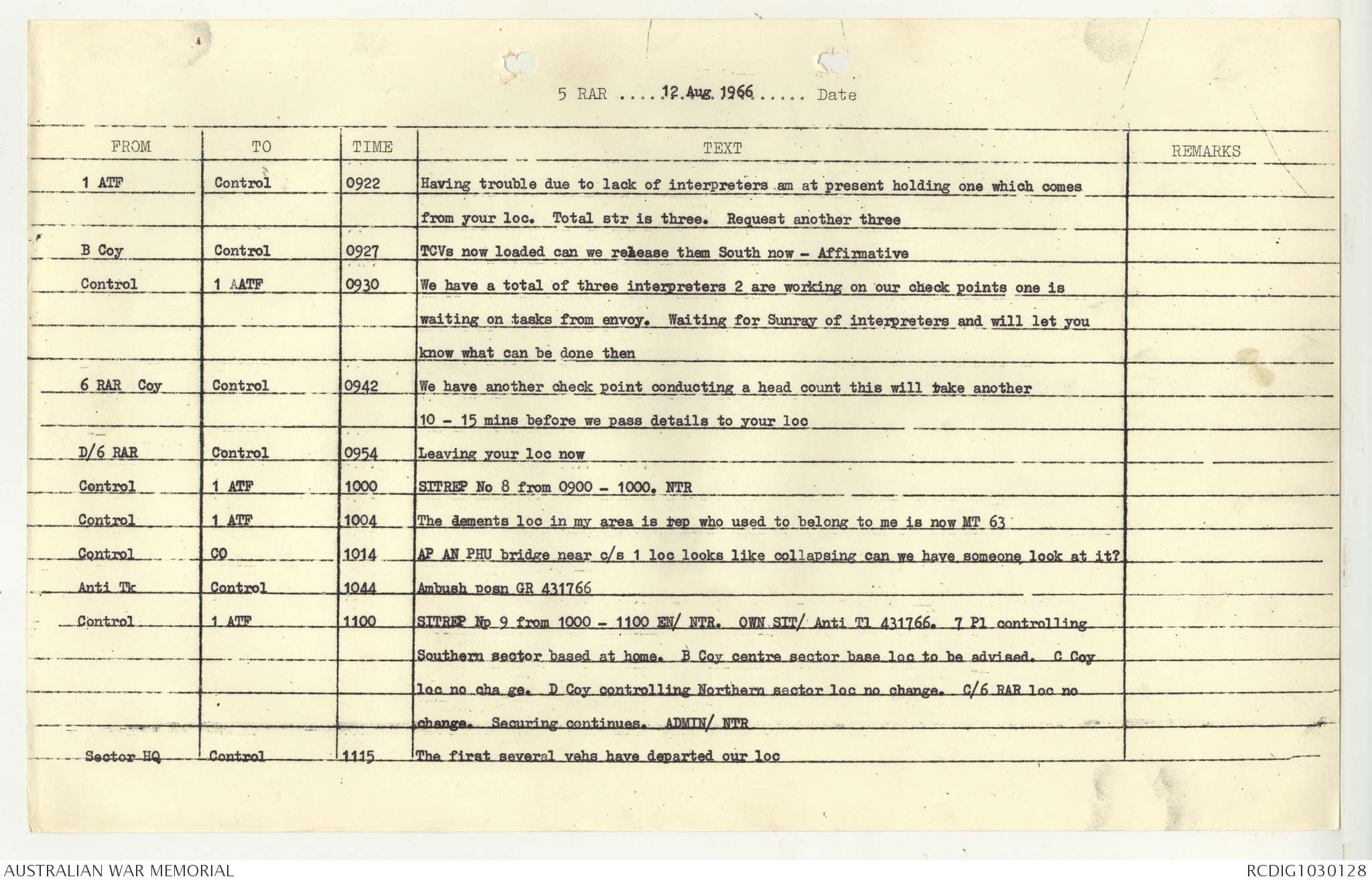 AWM95 7/5/7 PART 1 - 1-31 August 1966, Narrative, Operations log, Annexes
