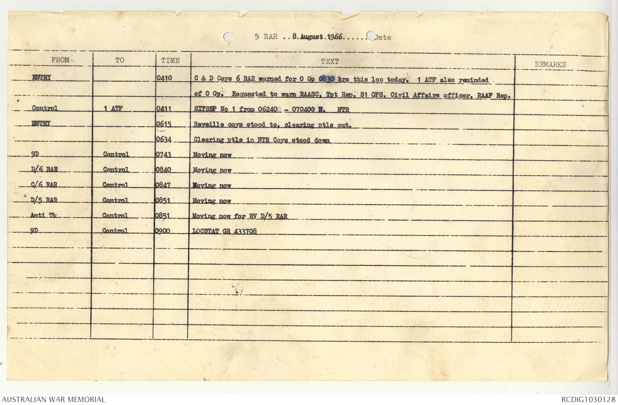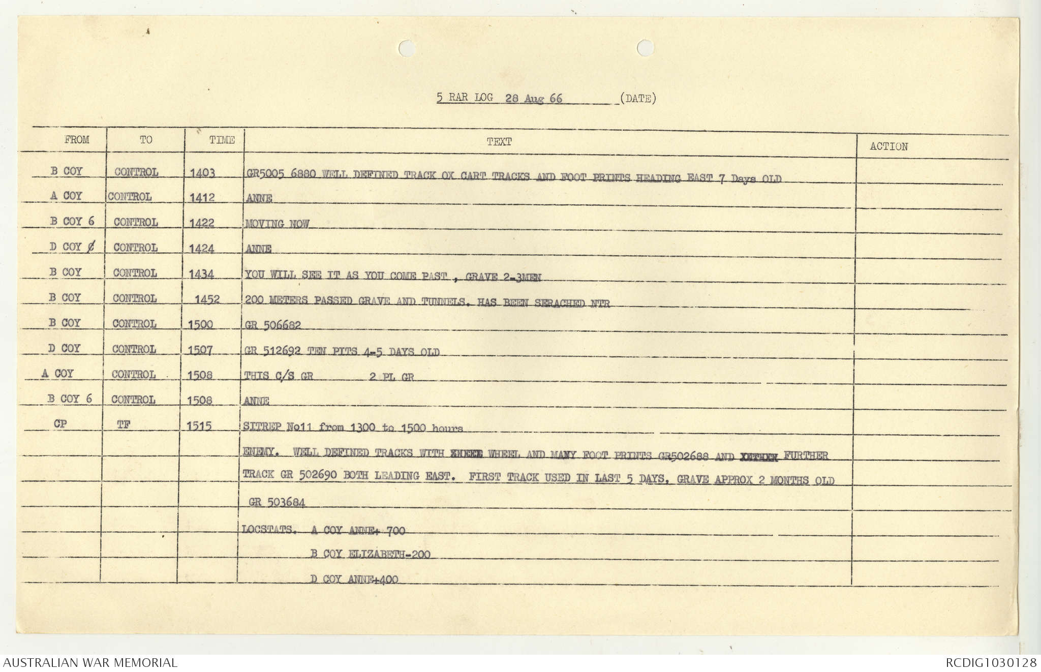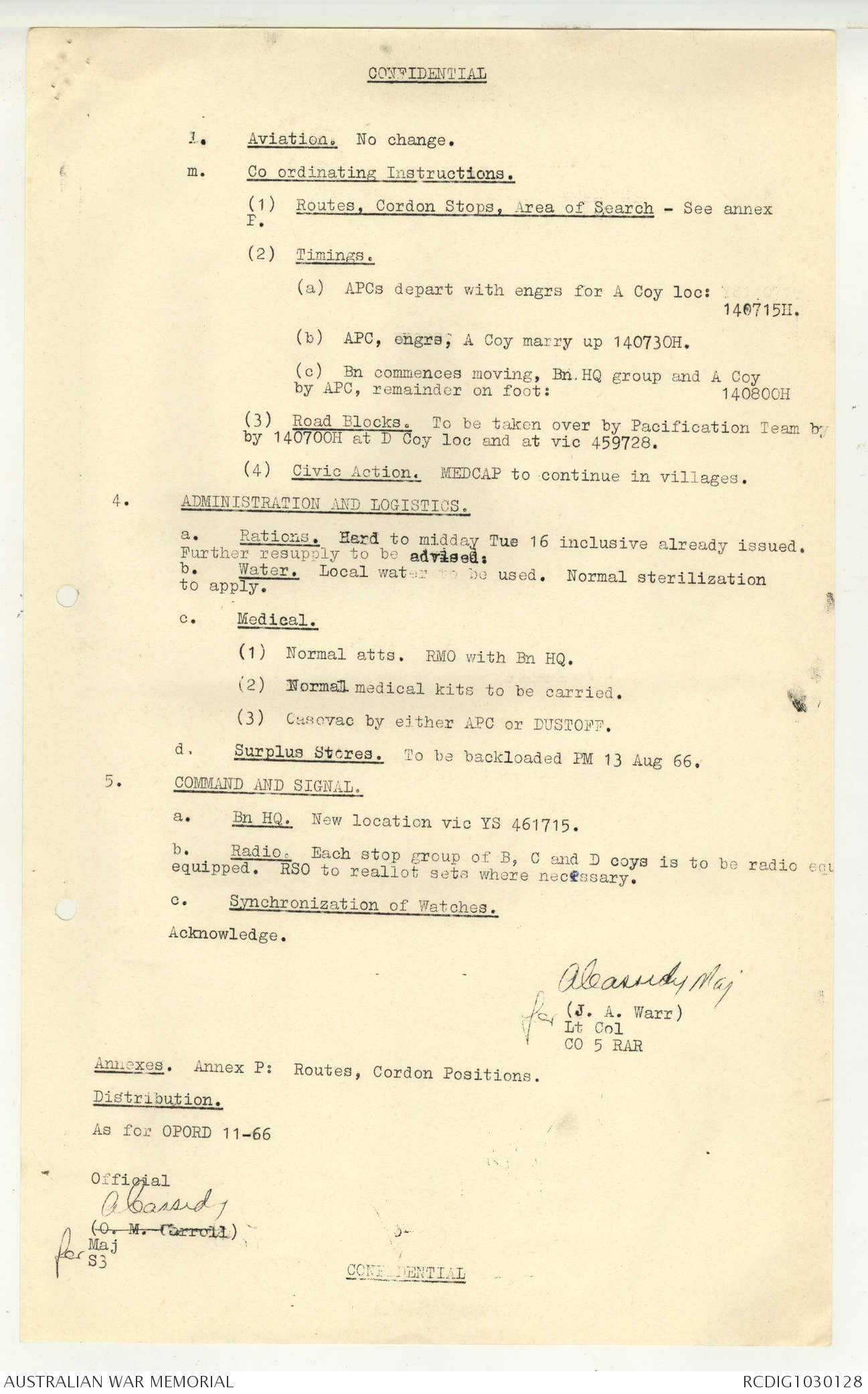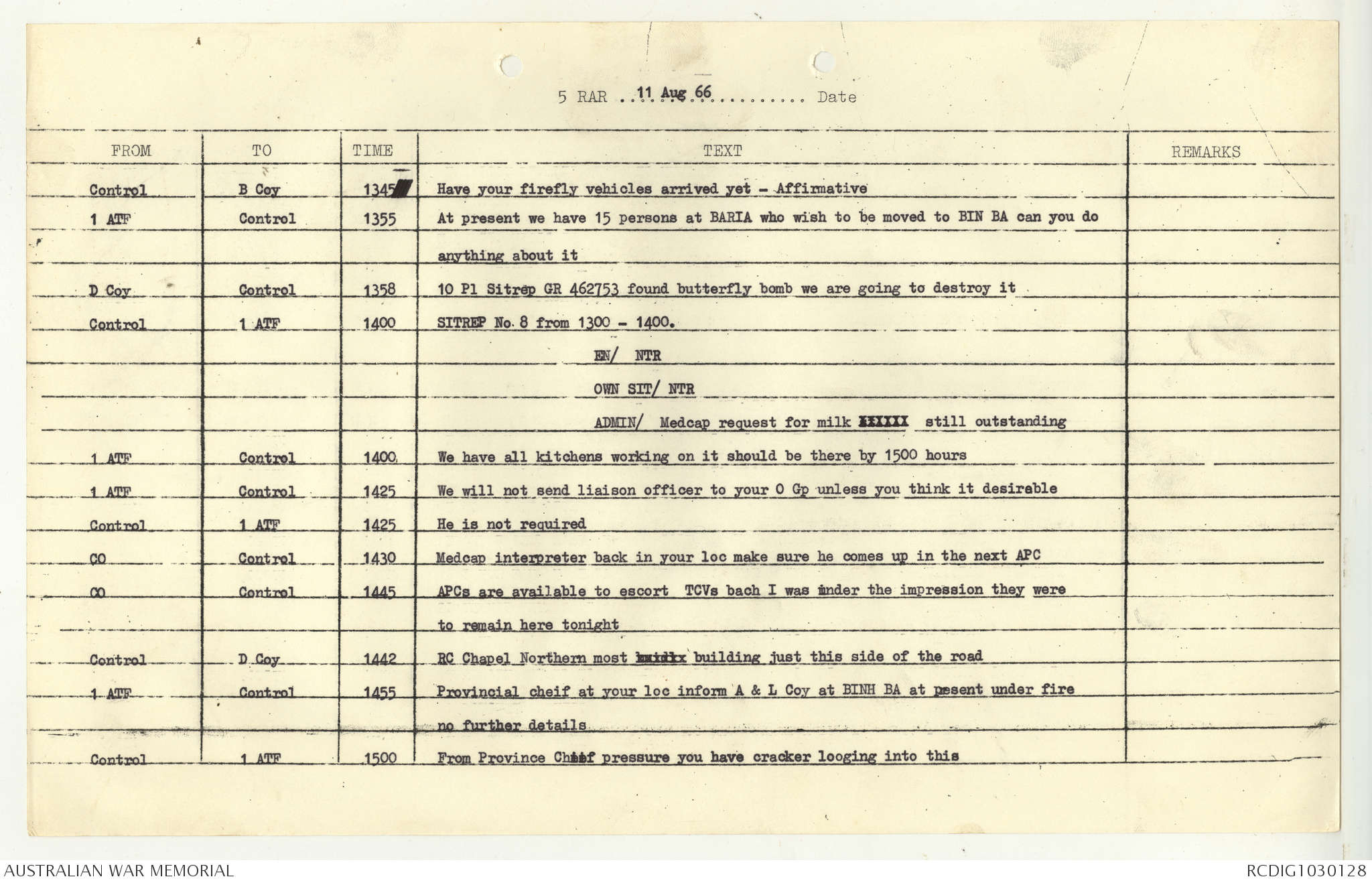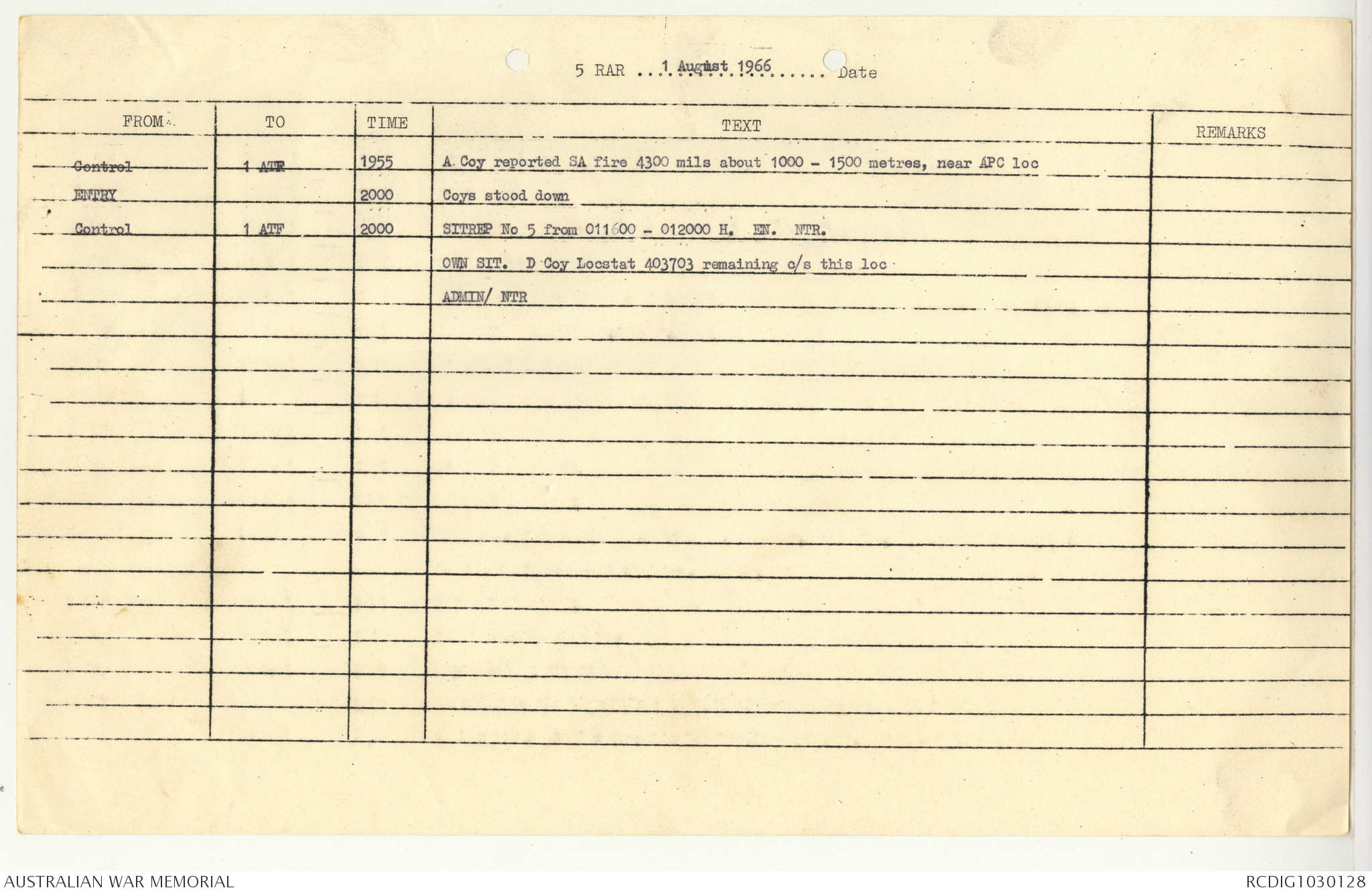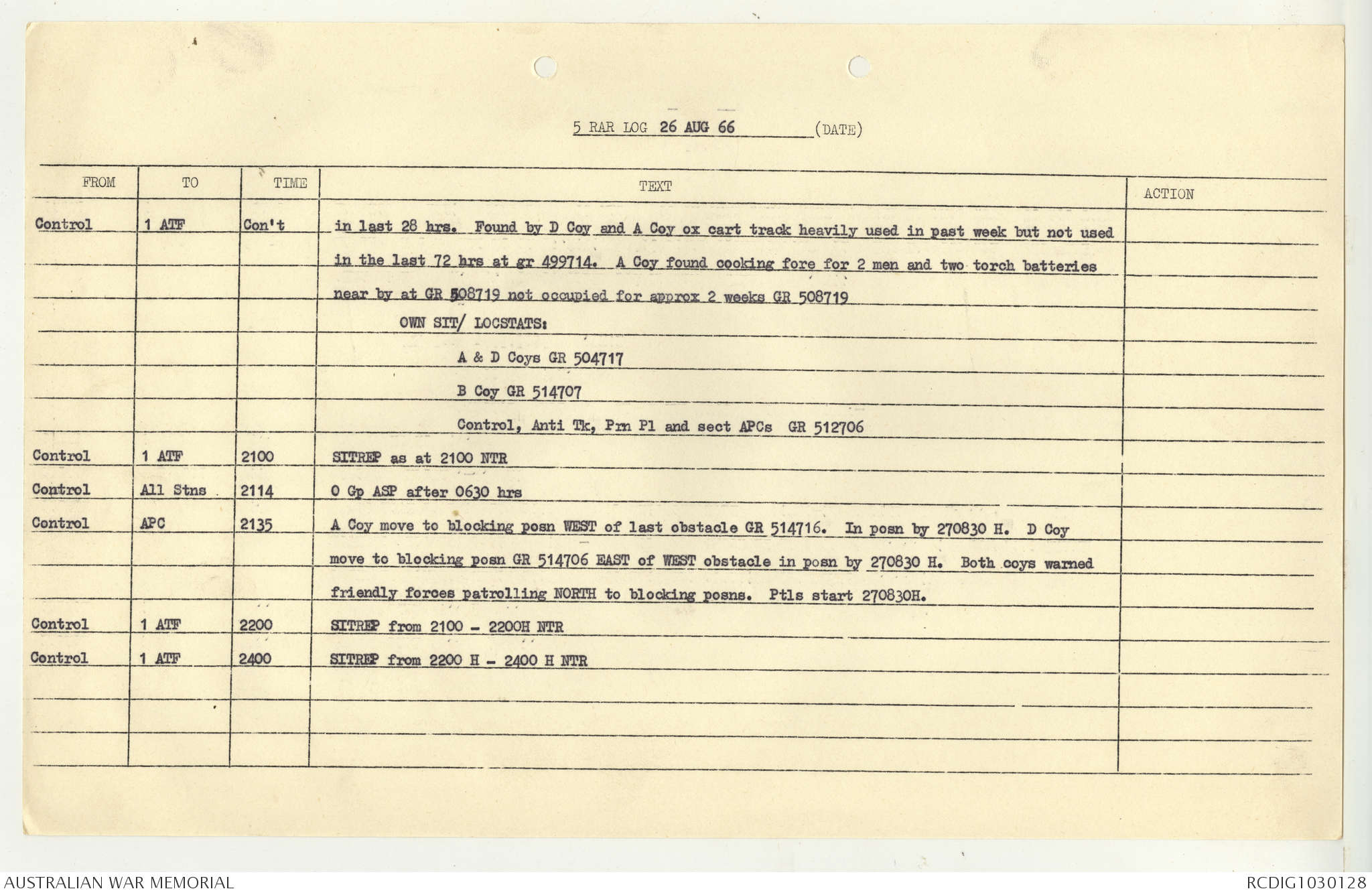 AWM95 7/5/7 PART 1 - 1-31 August 1966, Narrative, Operations log, Annexes