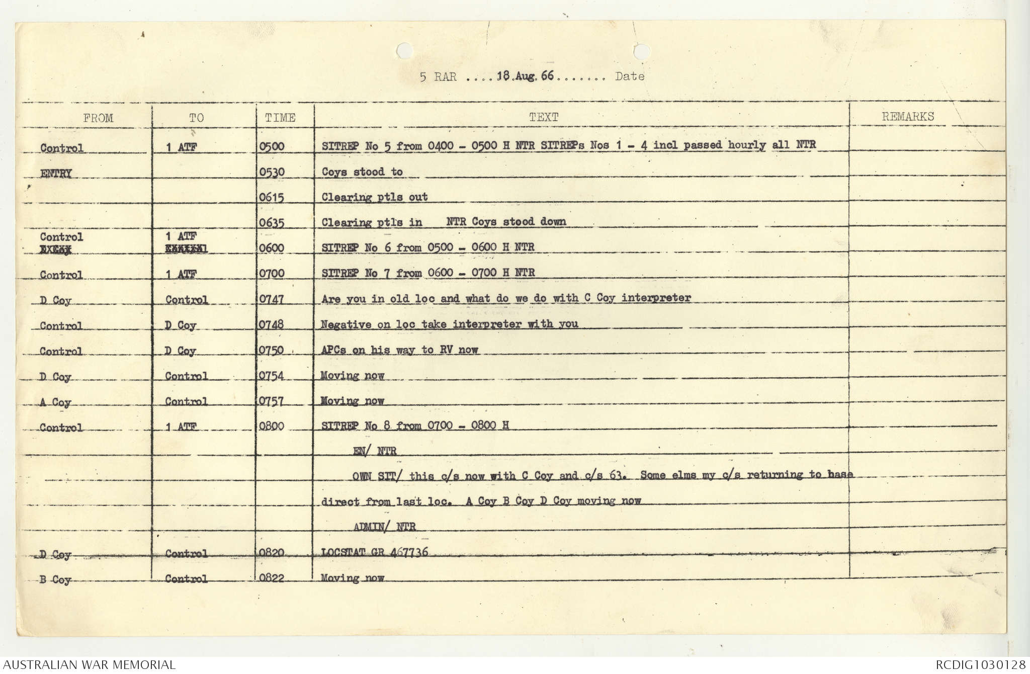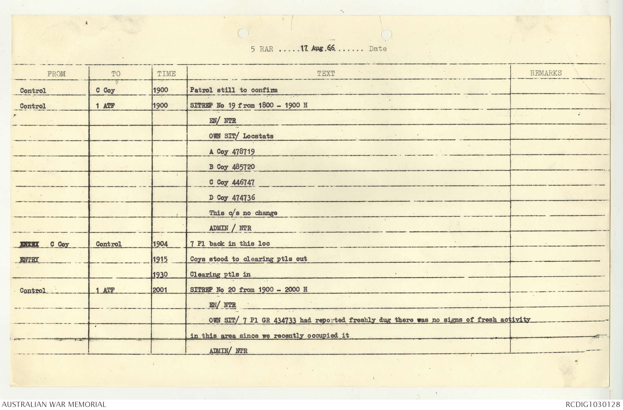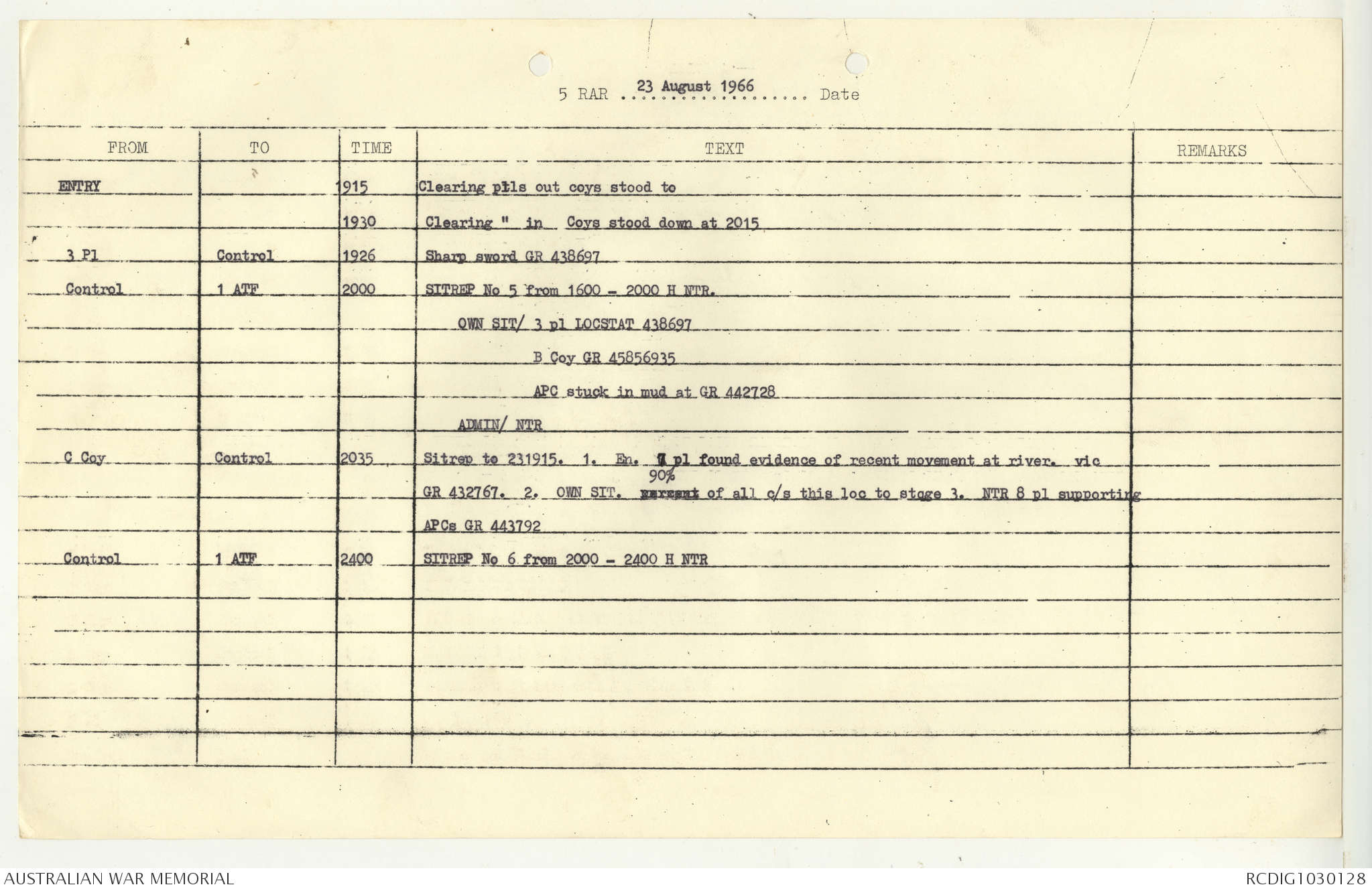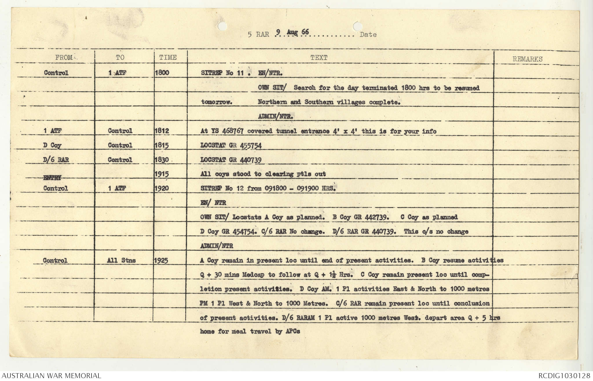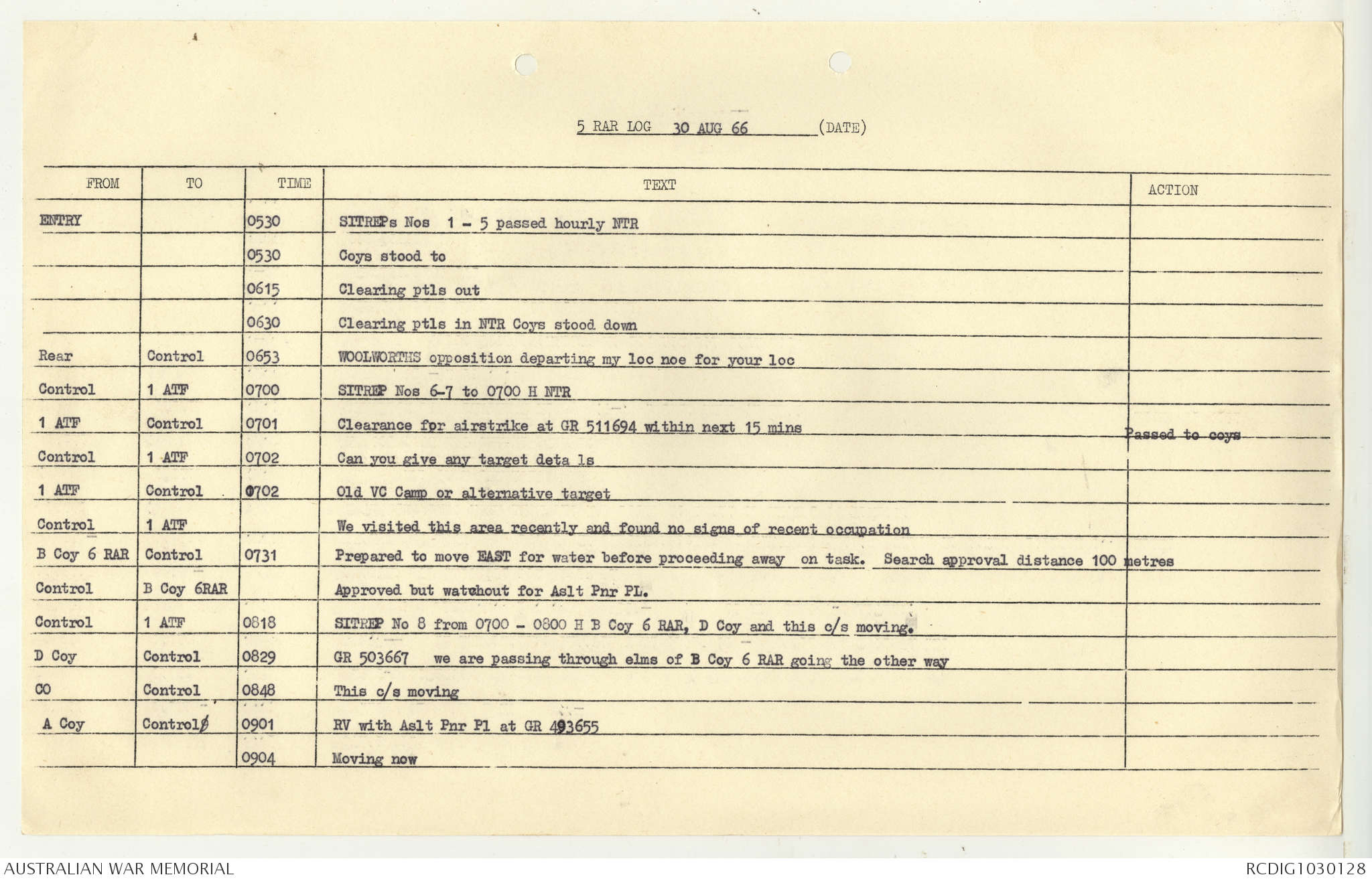 AWM95 7/5/7 PART 1 - 1-31 August 1966, Narrative, Operations log, Annexes