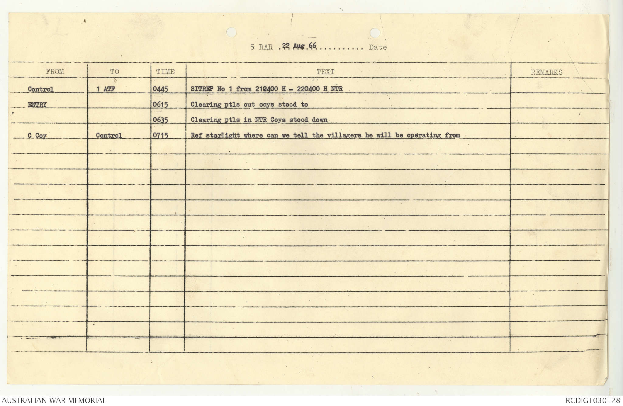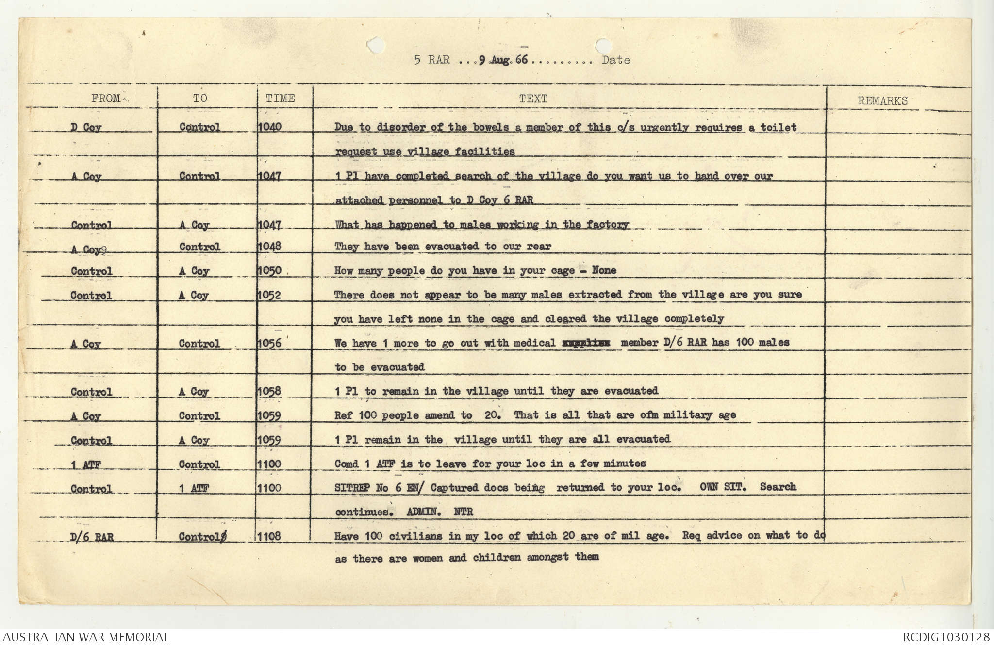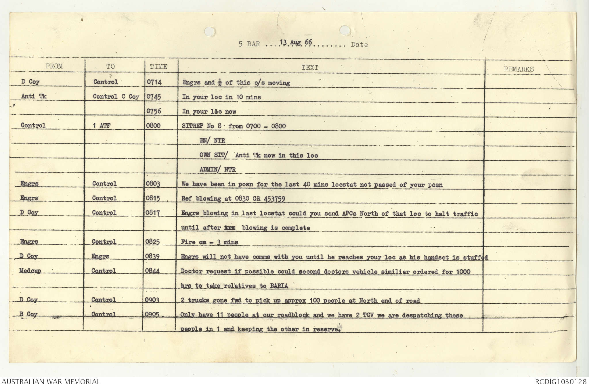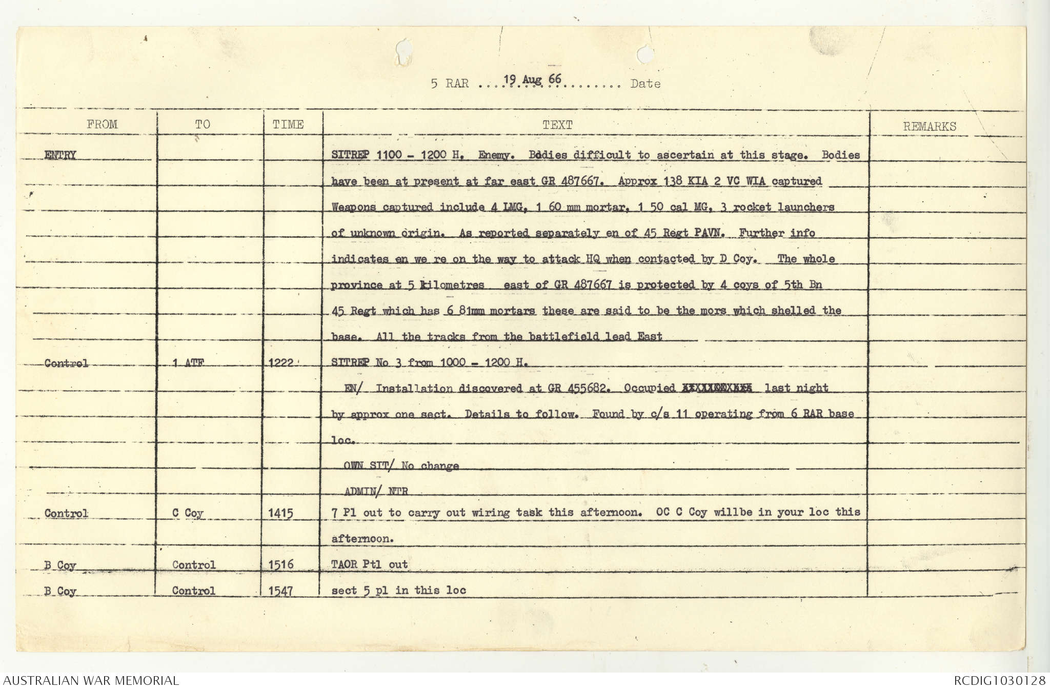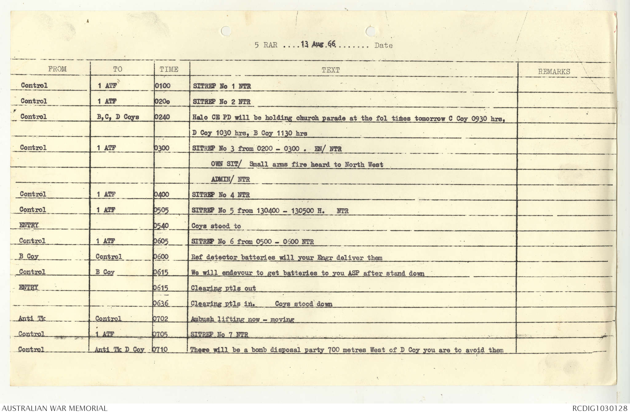 AWM95 7/5/7 PART 1 - 1-31 August 1966, Narrative, Operations log, Annexes