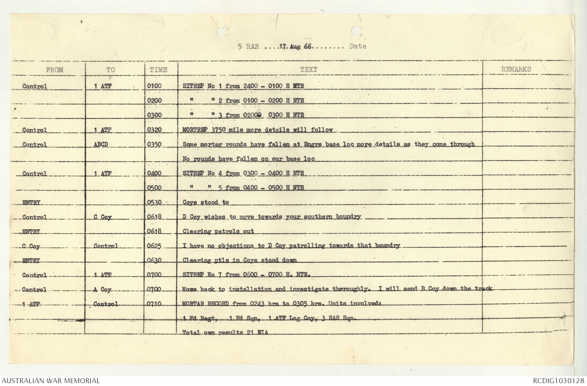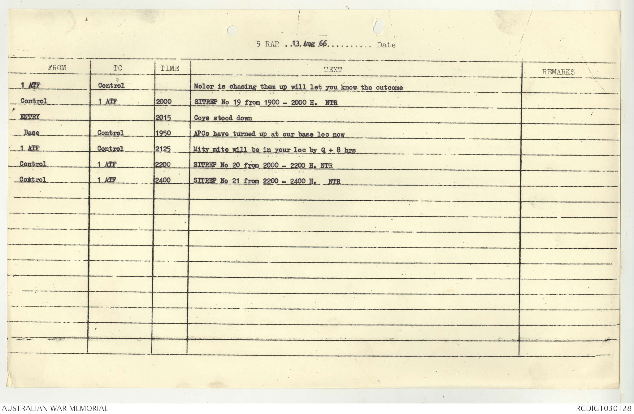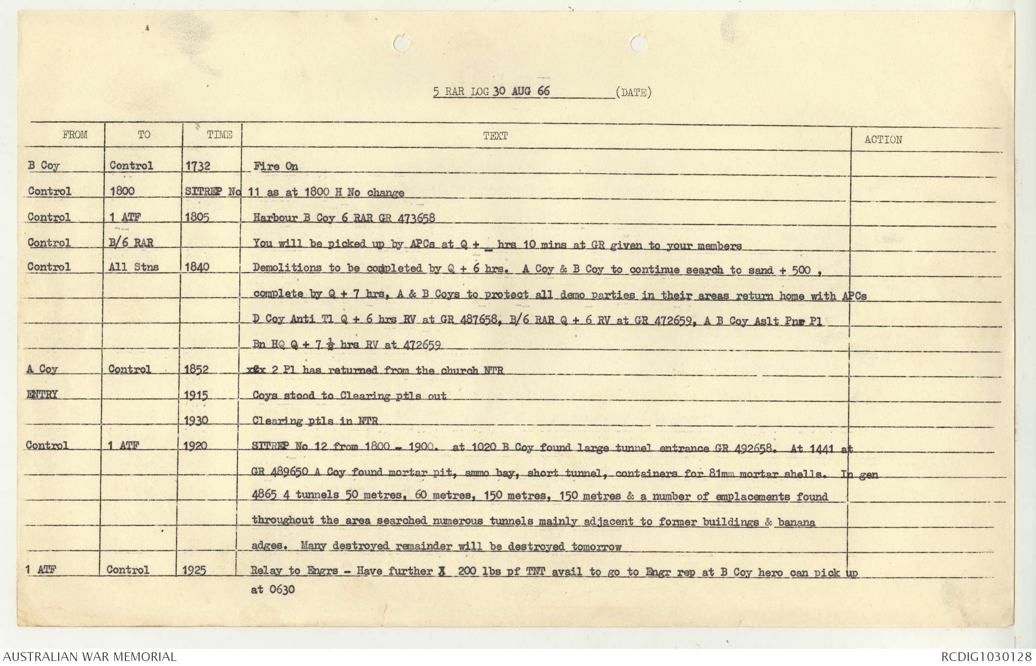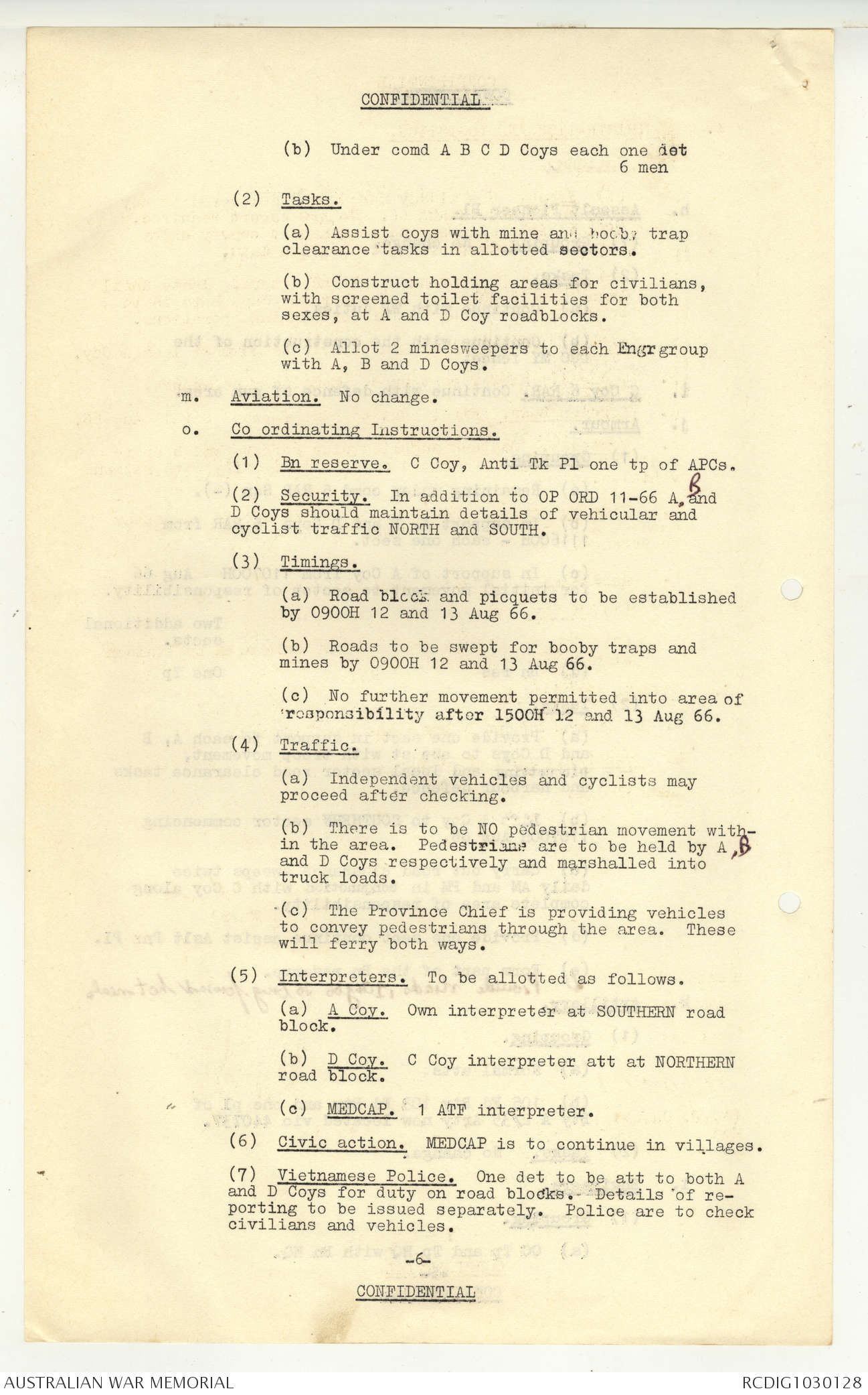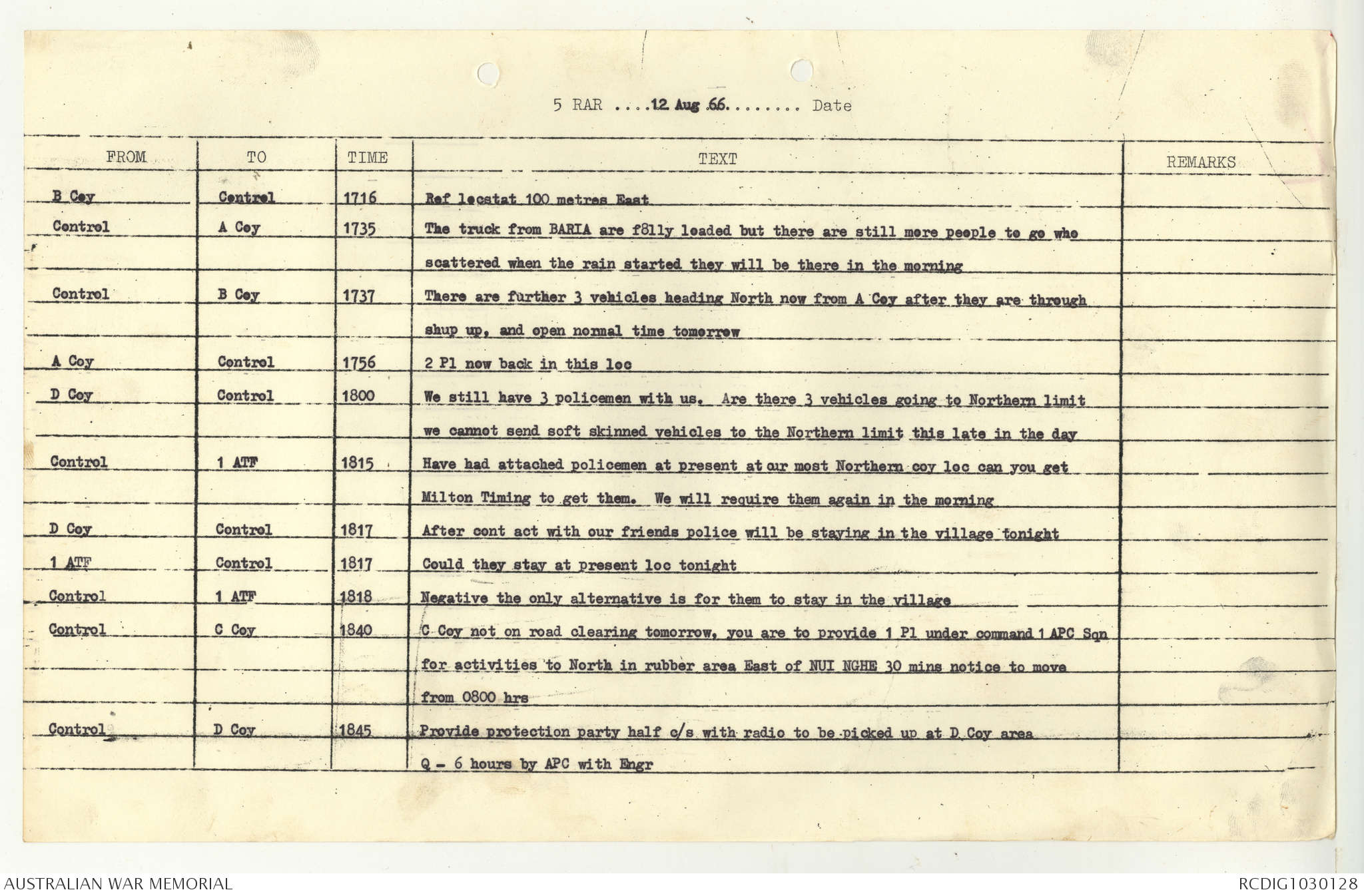 AWM95 7/5/7 PART 1 - 1-31 August 1966, Narrative, Operations log, Annexes