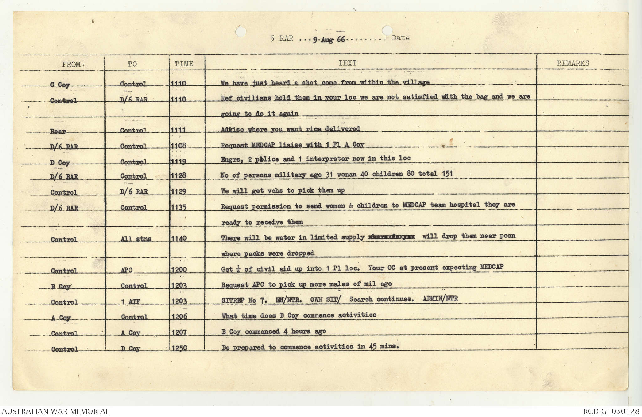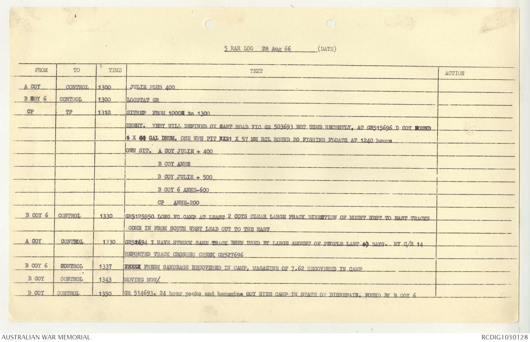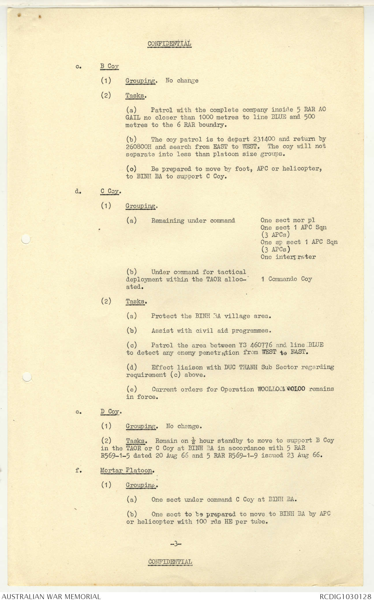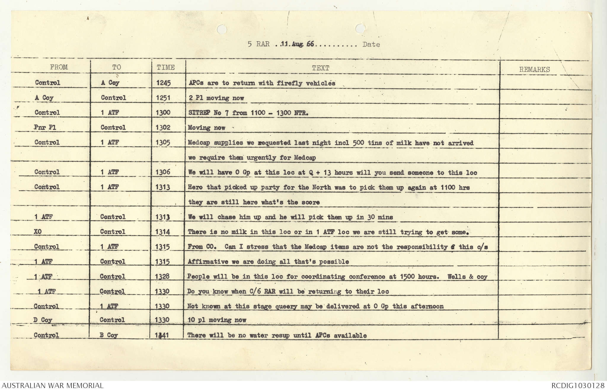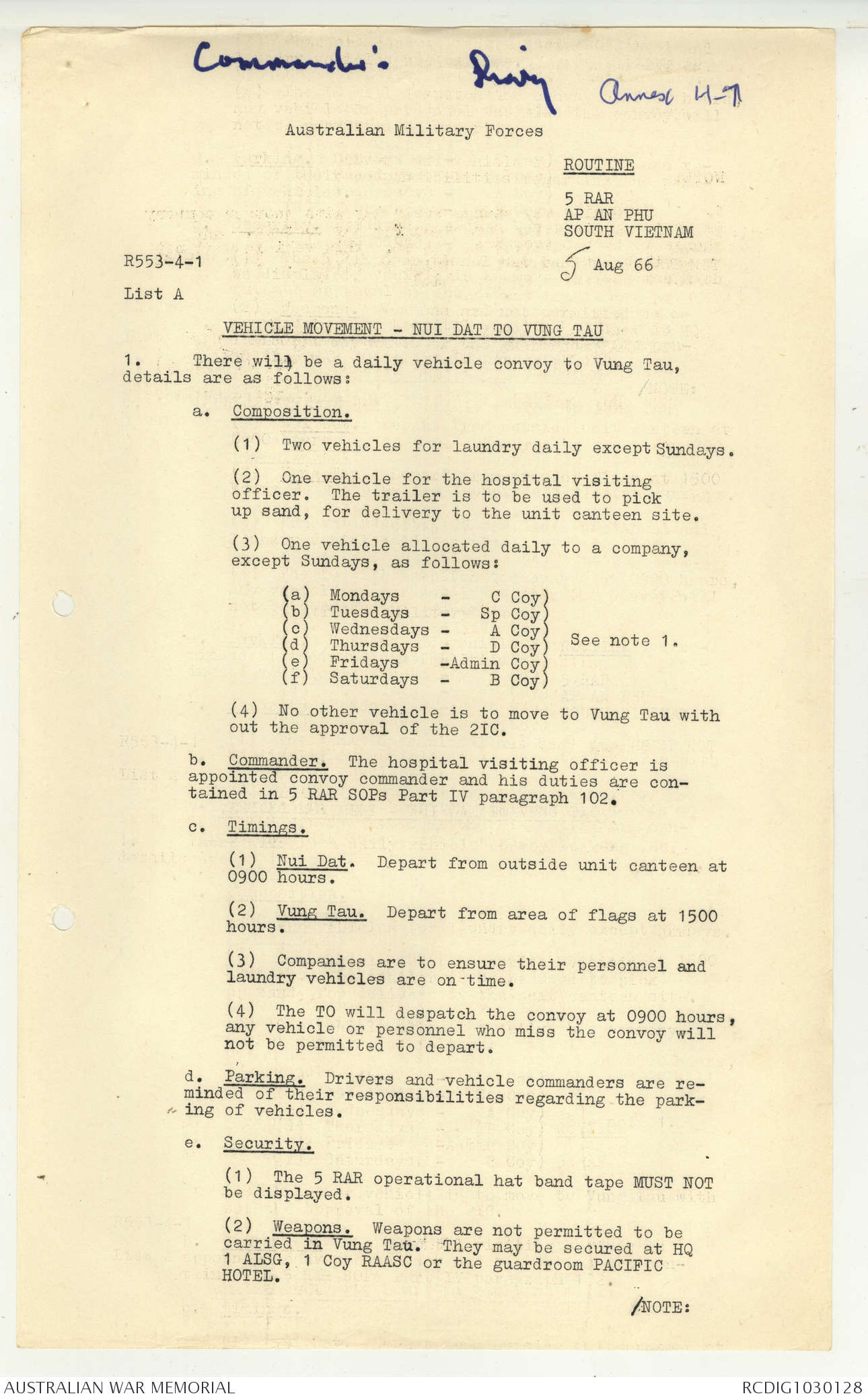 AWM95 7/5/7 PART 1 - 1-31 August 1966, Narrative, Operations log, Annexes