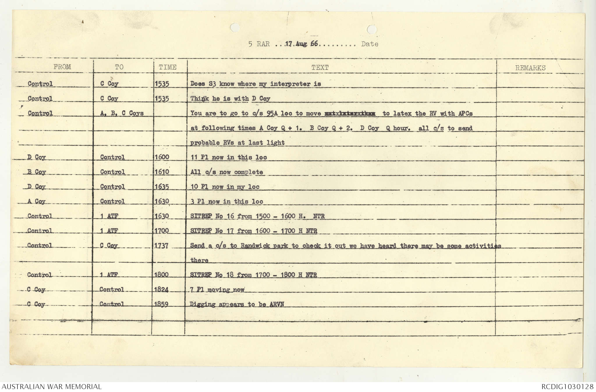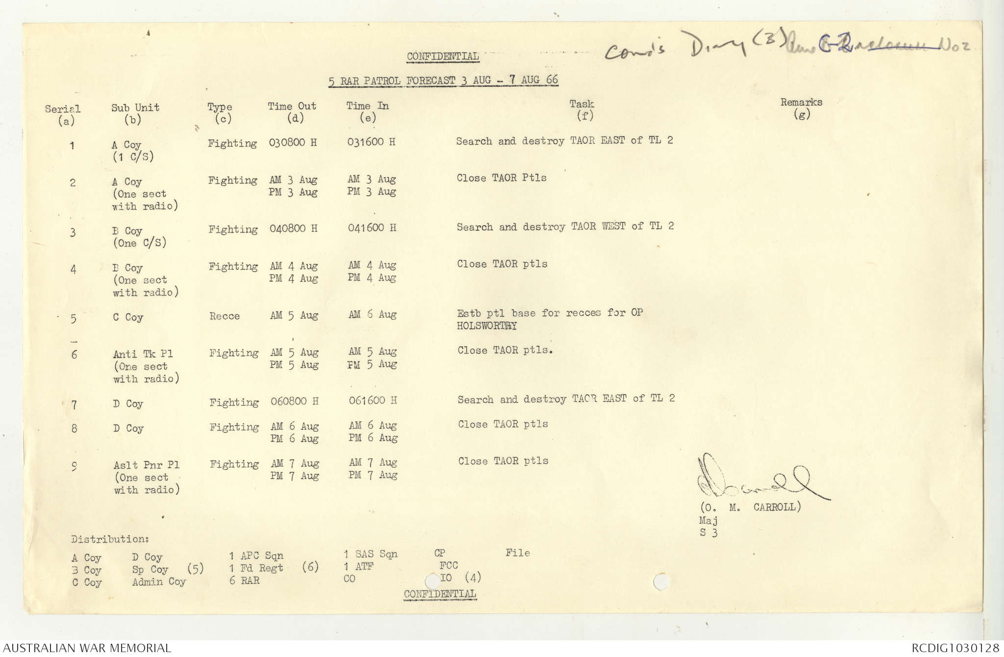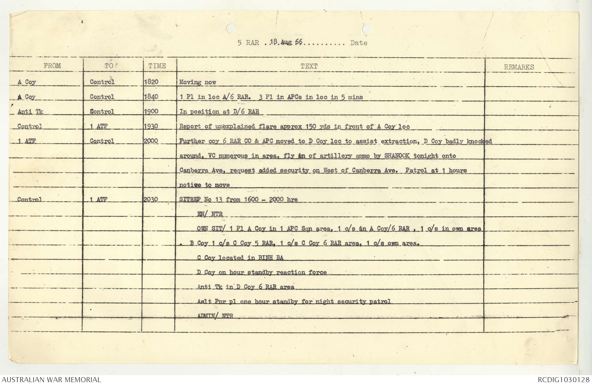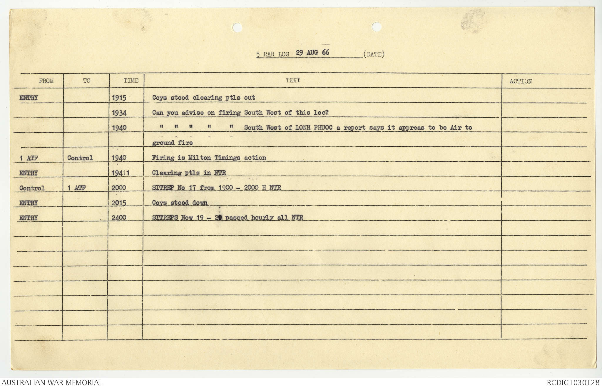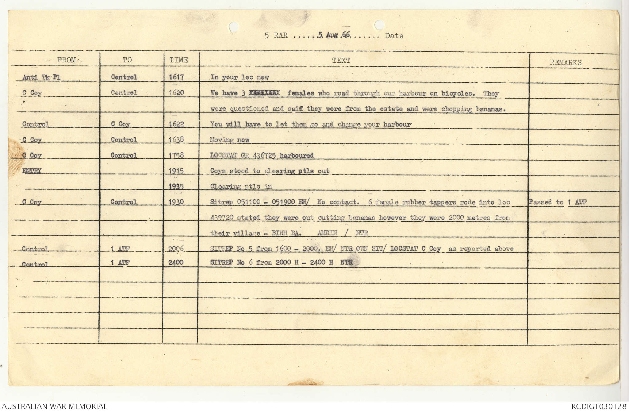 AWM95 7/5/7 PART 1 - 1-31 August 1966, Narrative, Operations log, Annexes