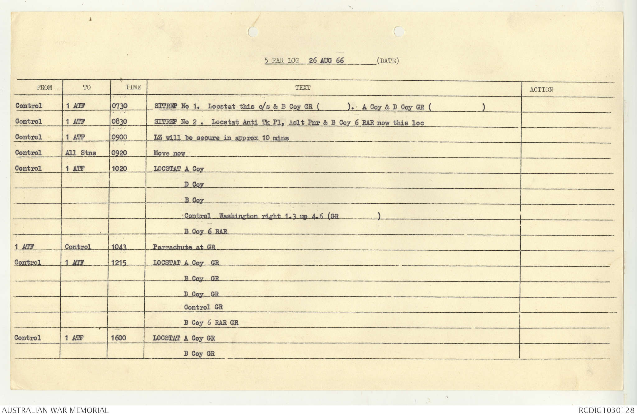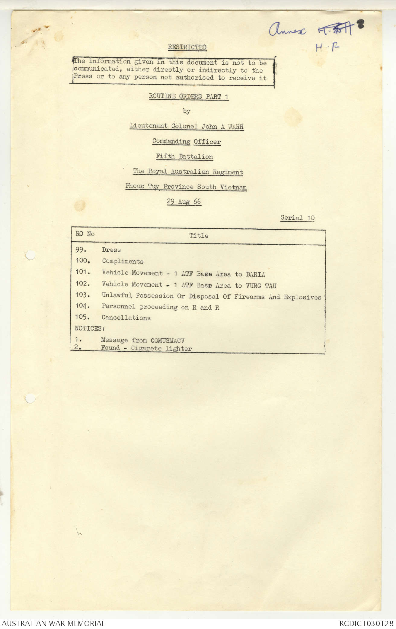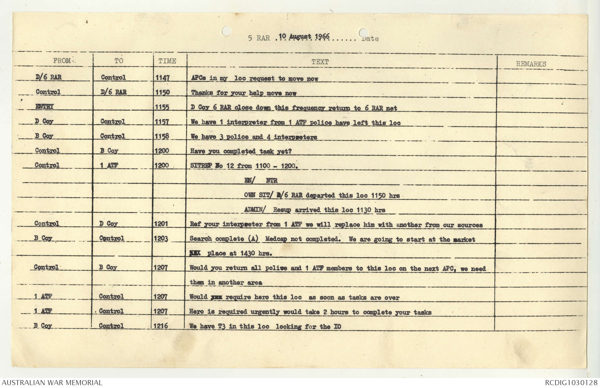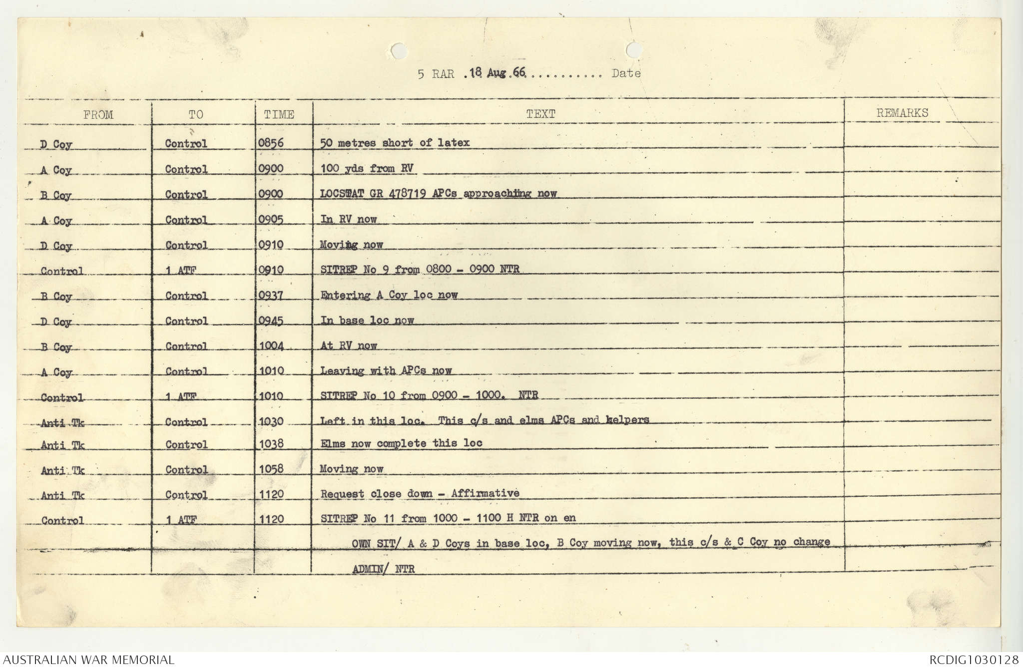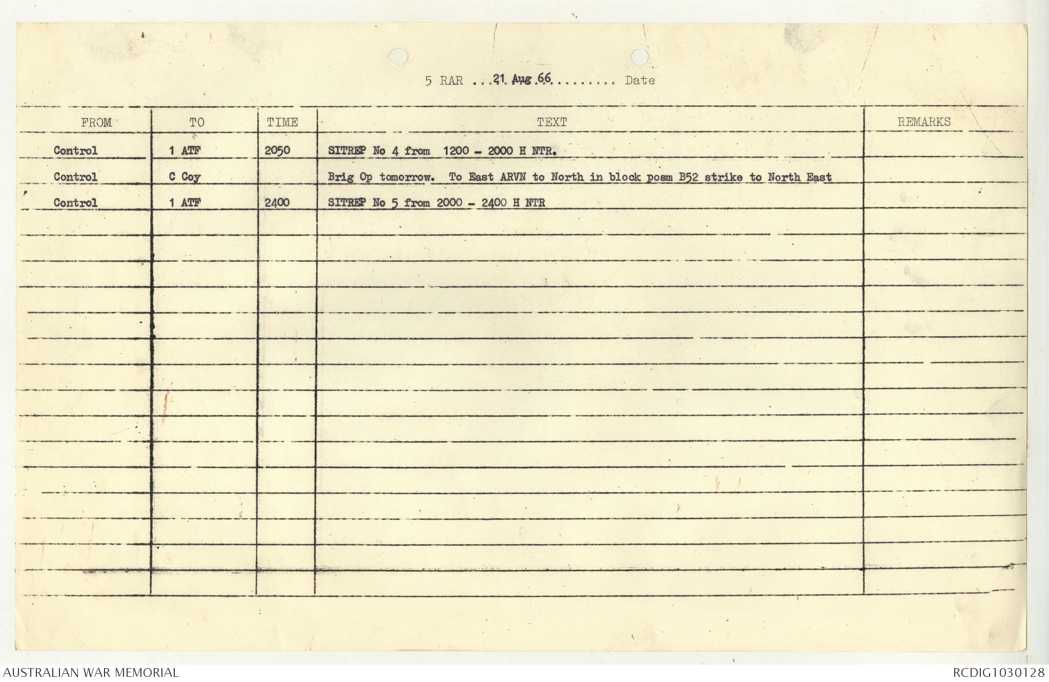 AWM95 7/5/7 PART 1 - 1-31 August 1966, Narrative, Operations log, Annexes