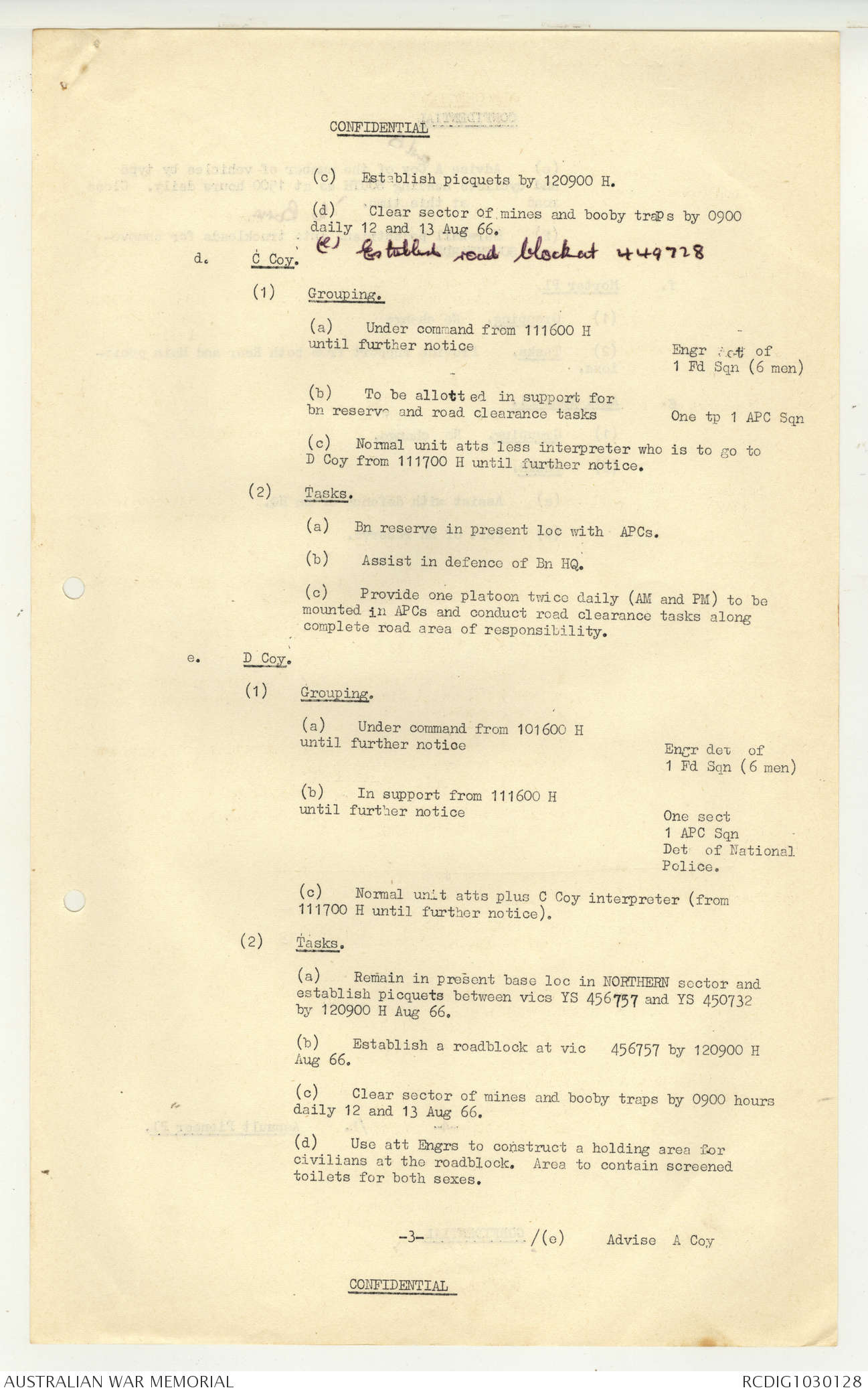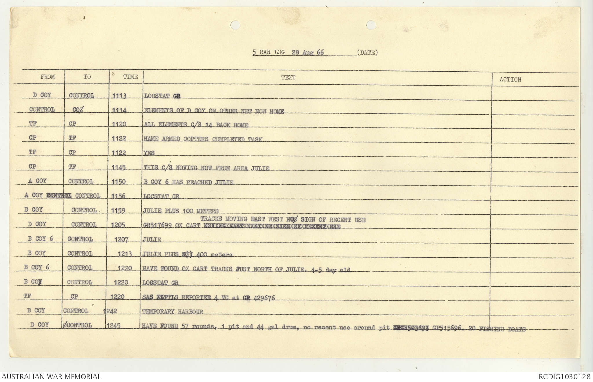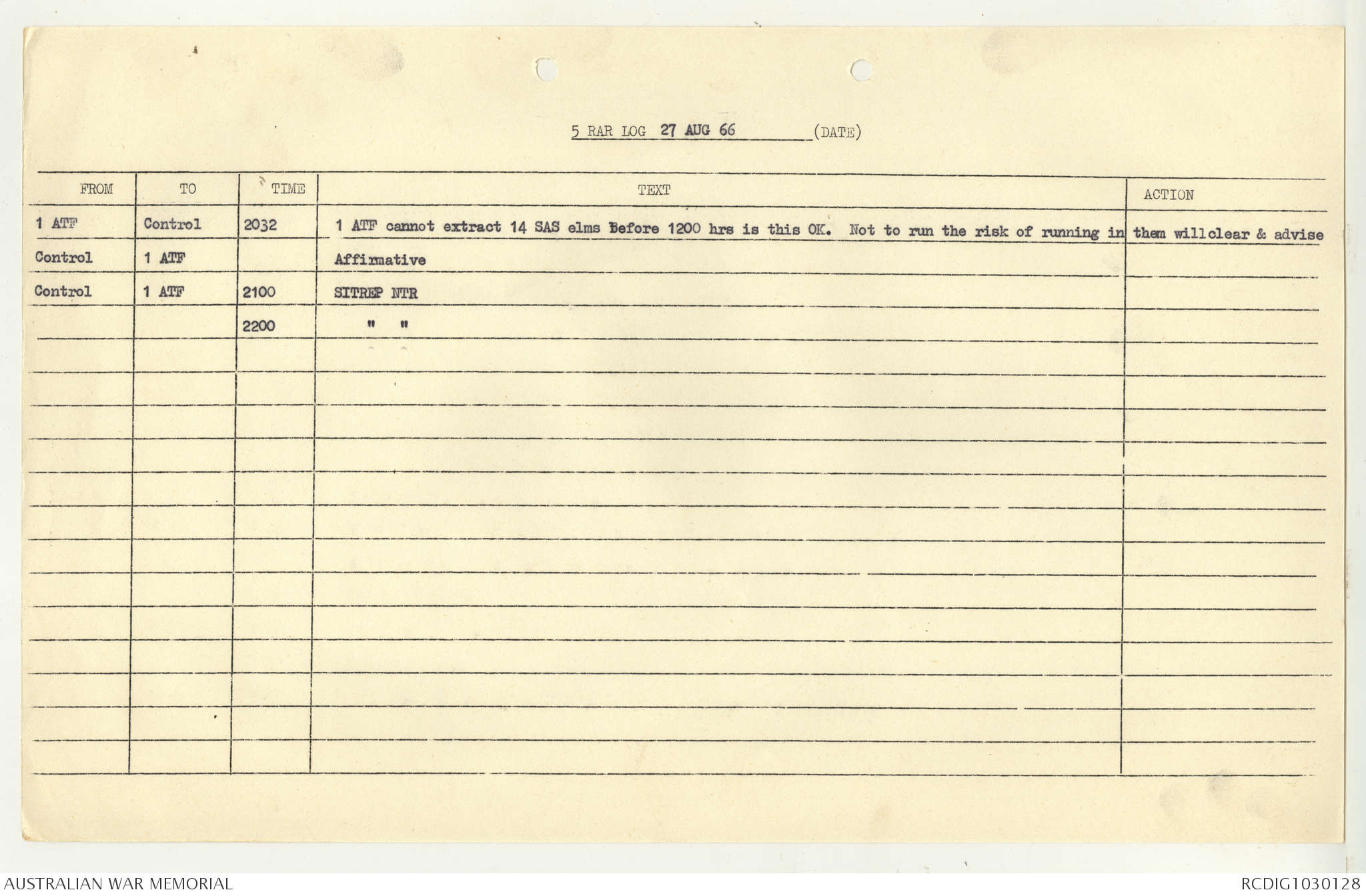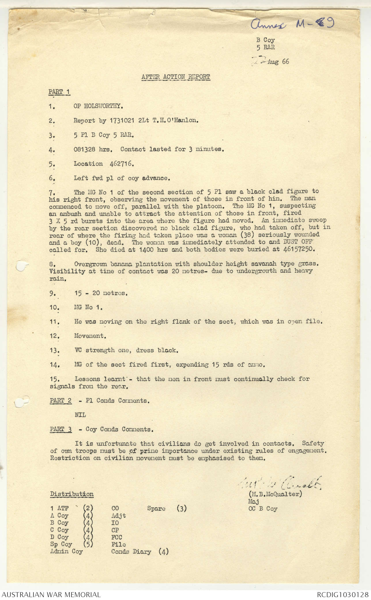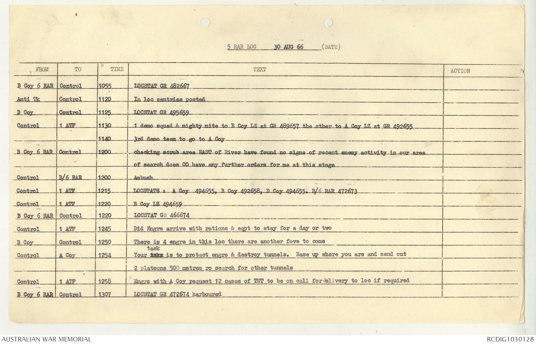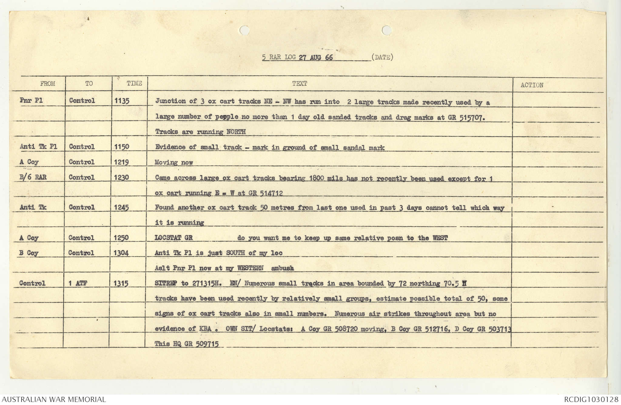 AWM95 7/5/7 PART 1 - 1-31 August 1966, Narrative, Operations log, Annexes