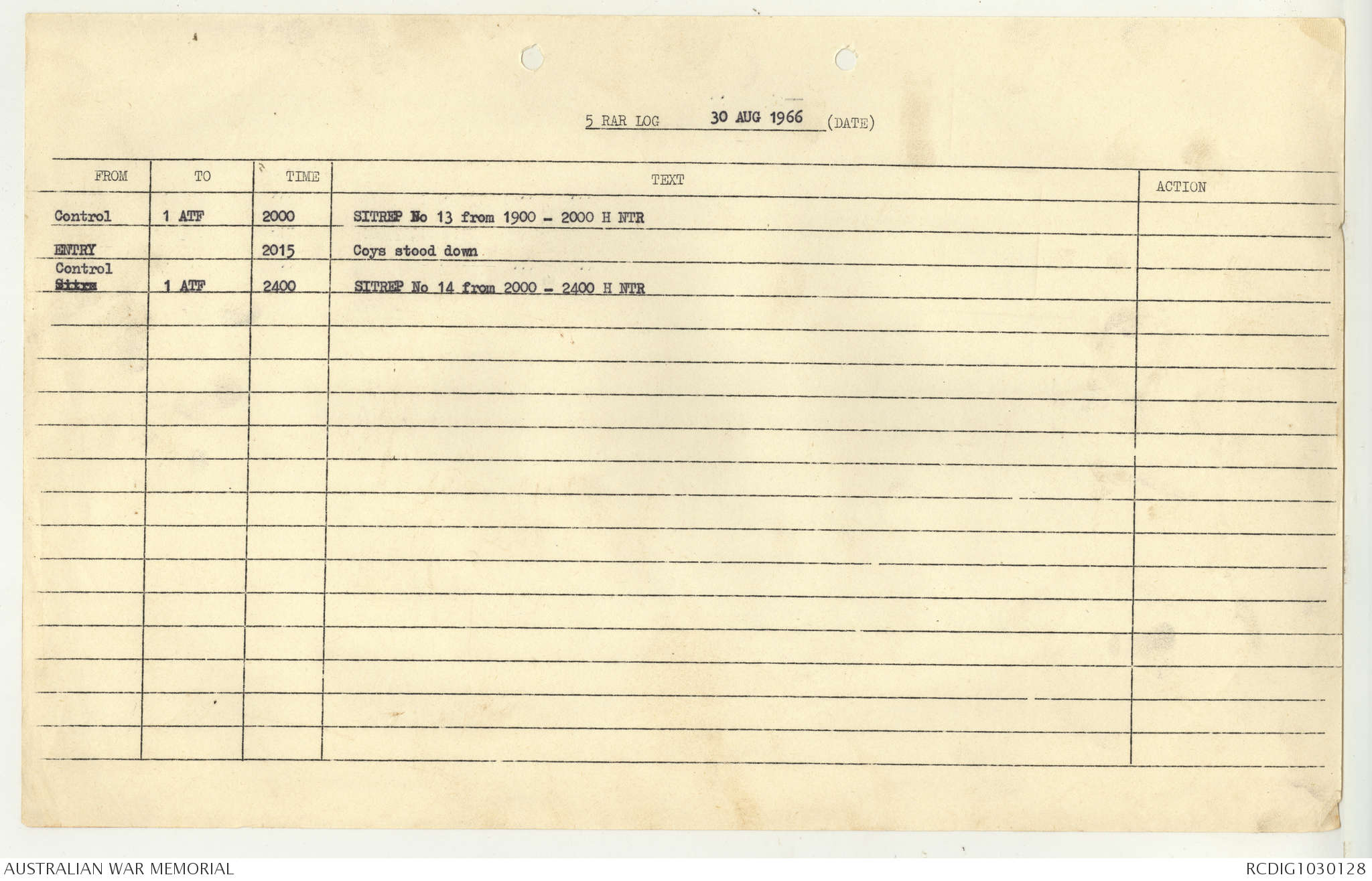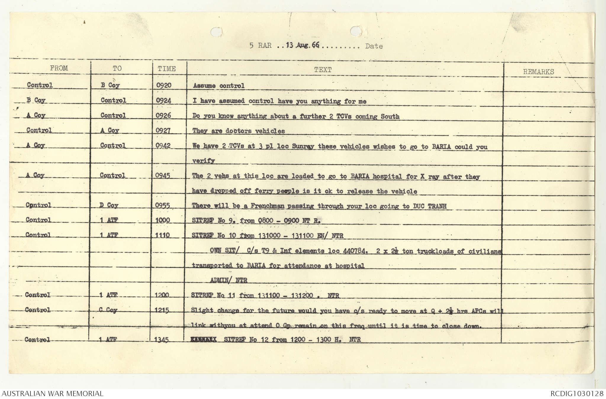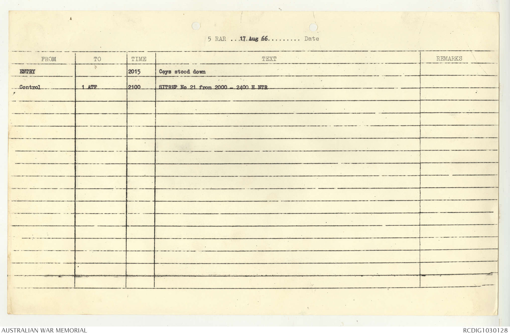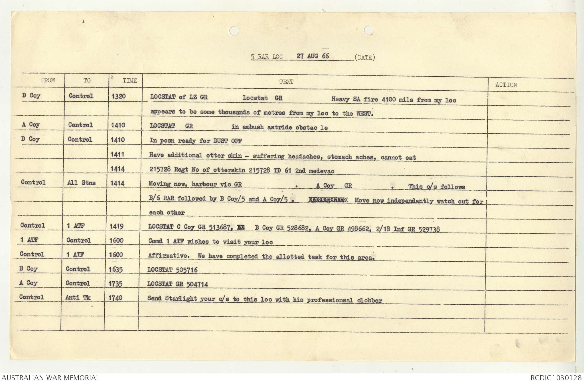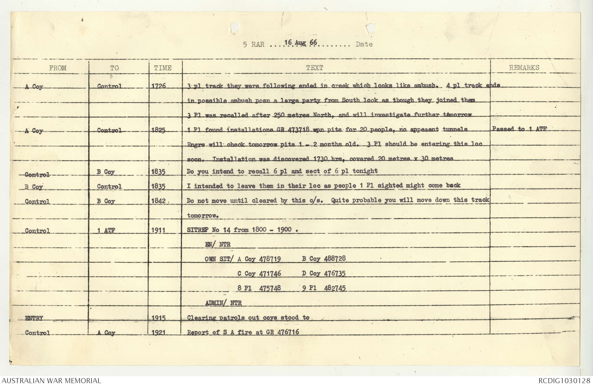AWM95 7/5/7 PART 1 - 1-31 August 1966, Narrative, Operations log, Annexes