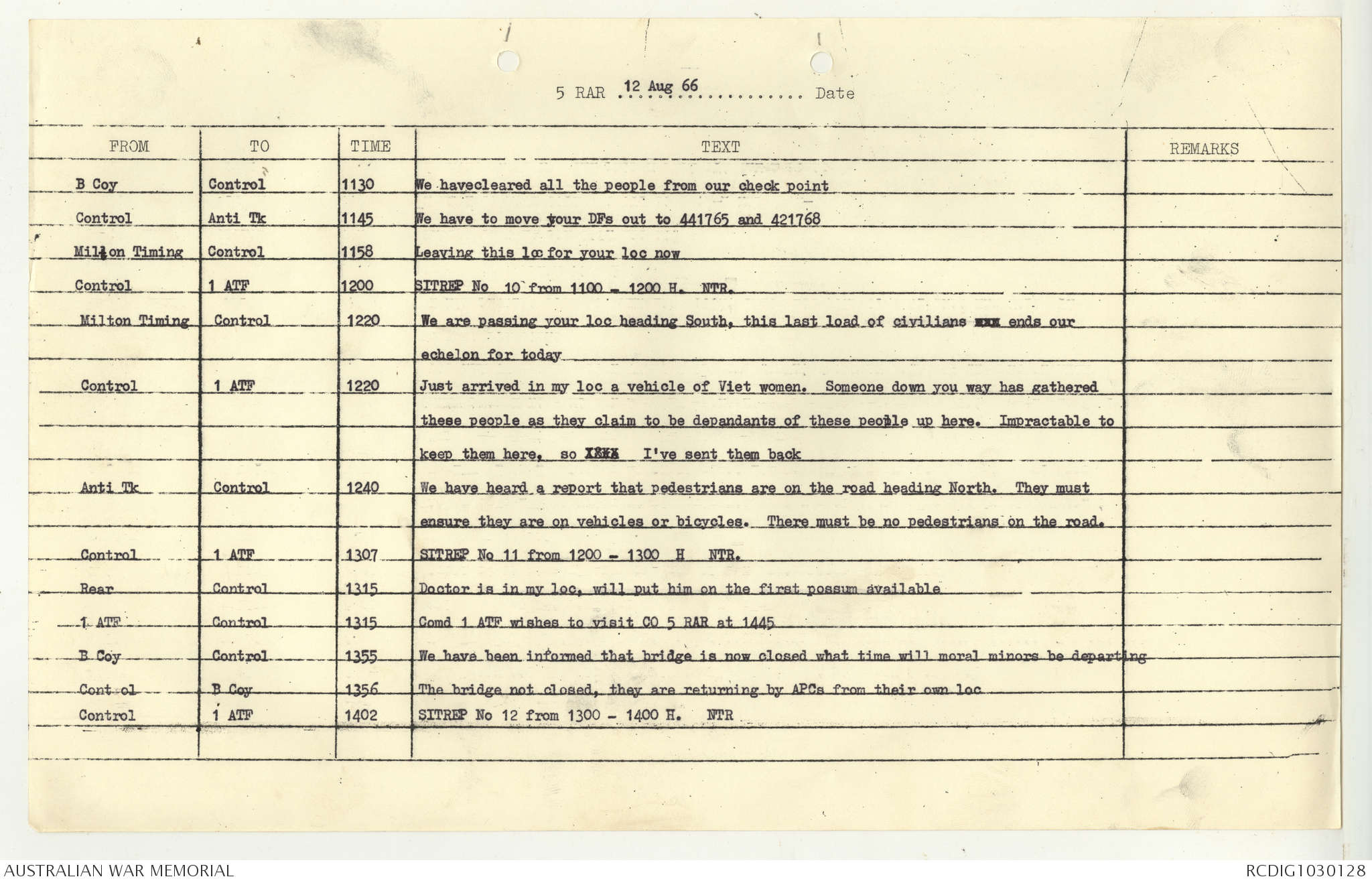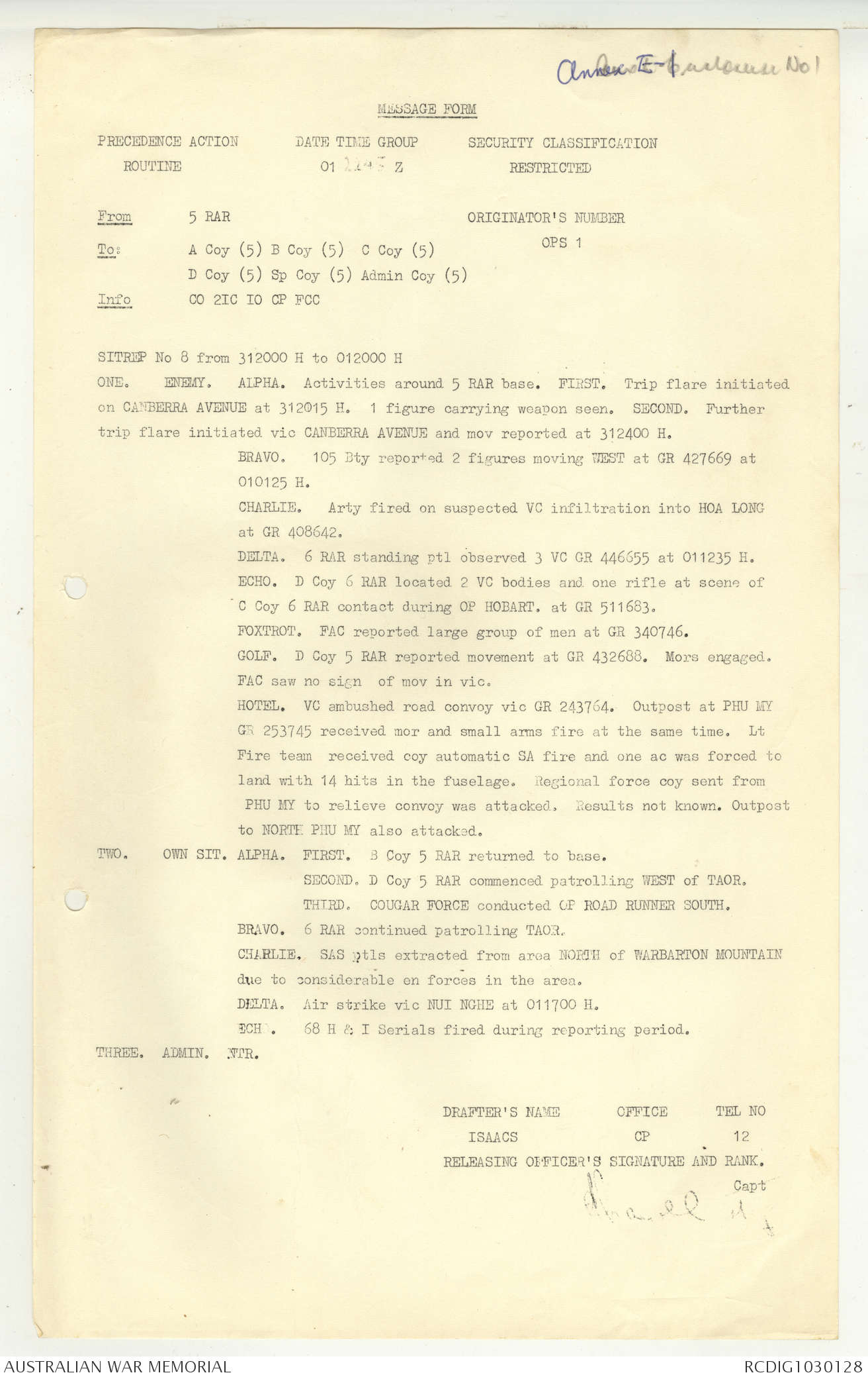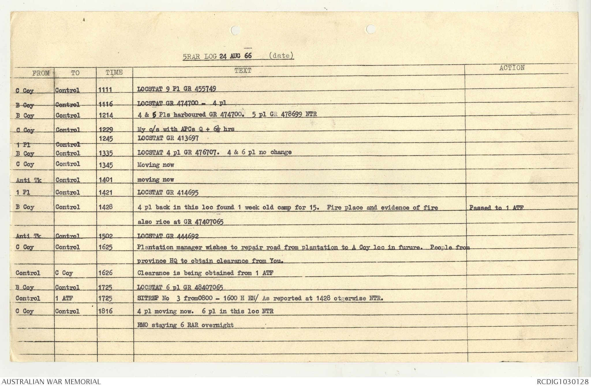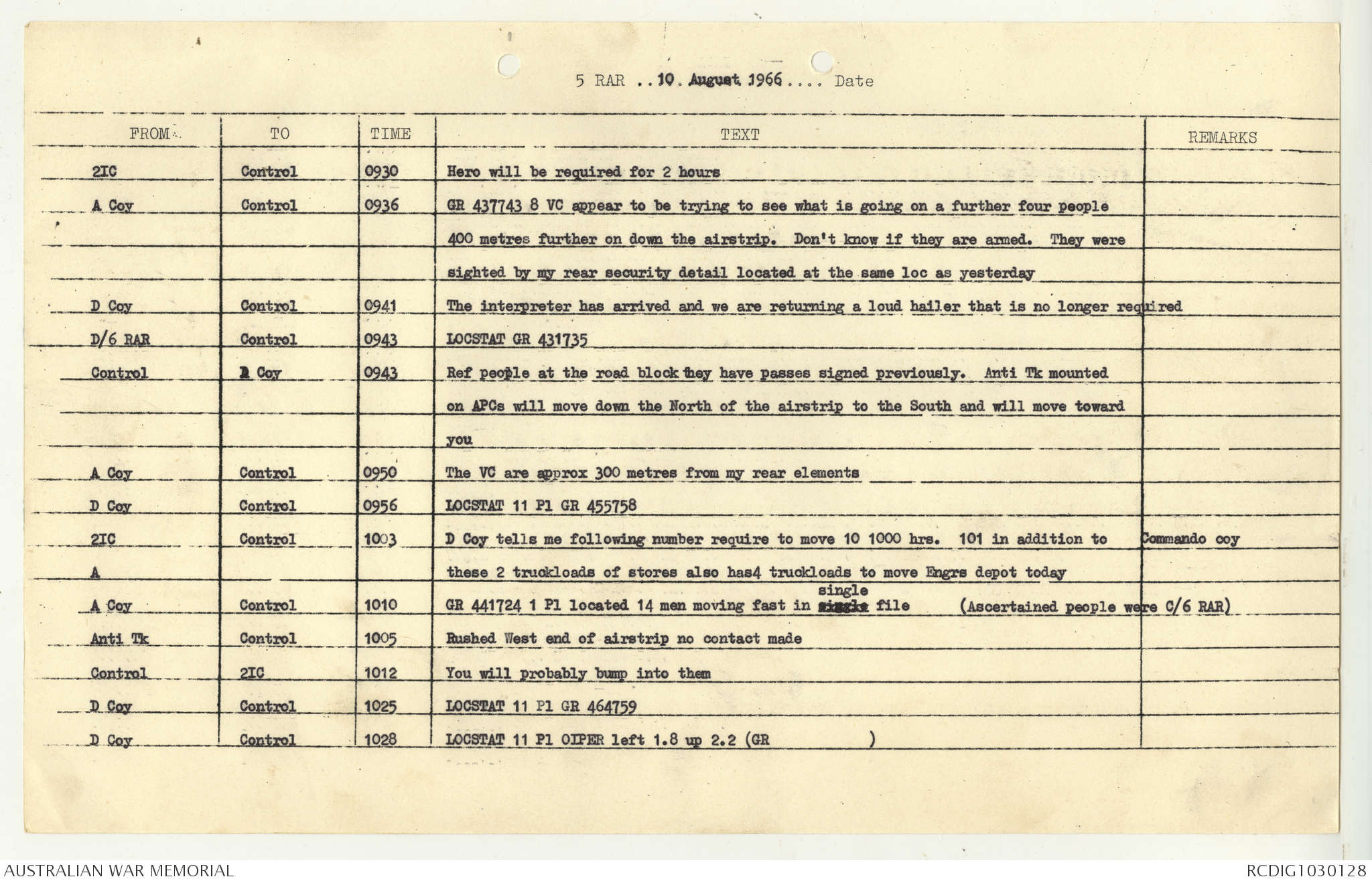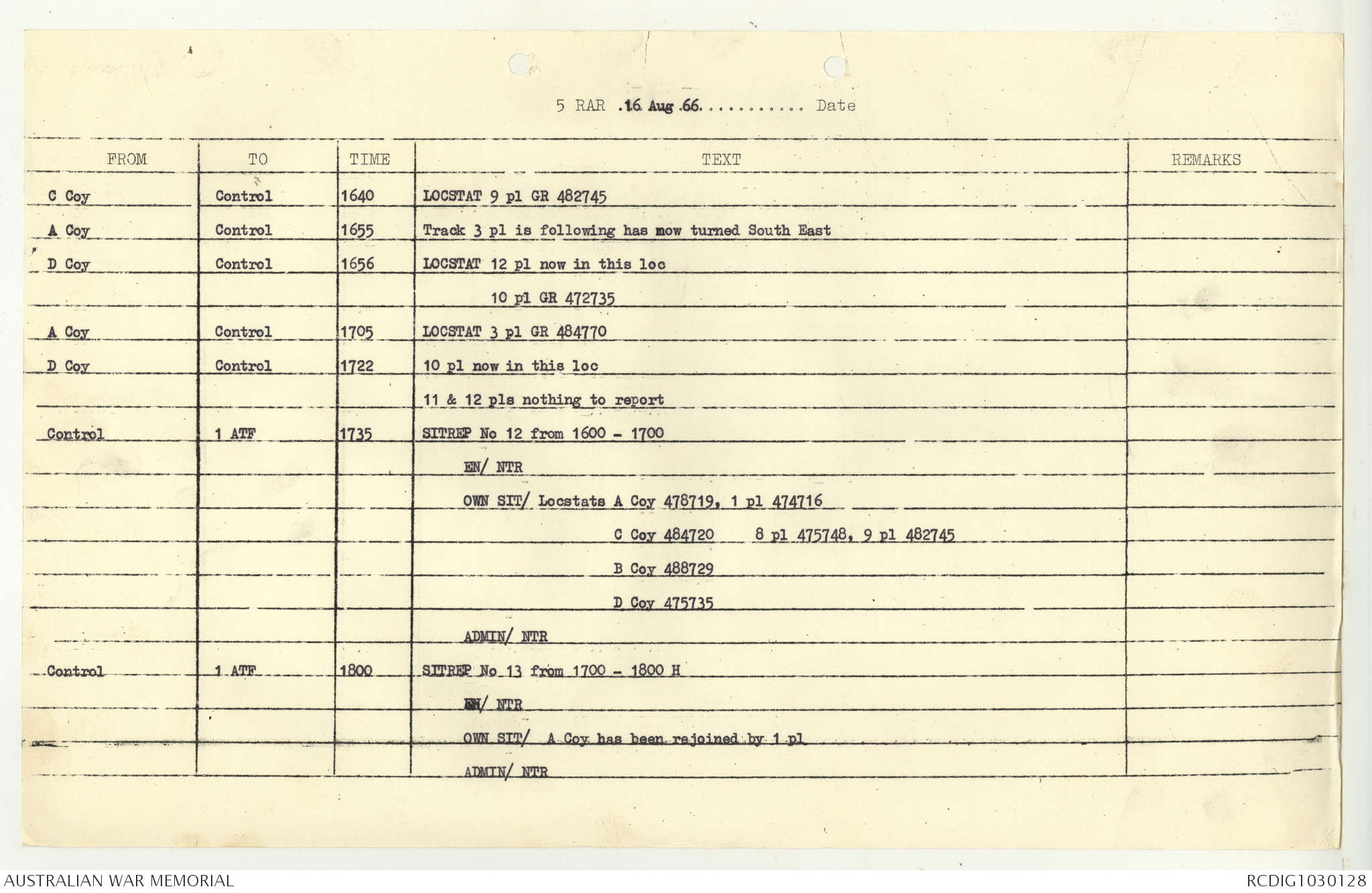 AWM95 7/5/7 PART 1 - 1-31 August 1966, Narrative, Operations log, Annexes