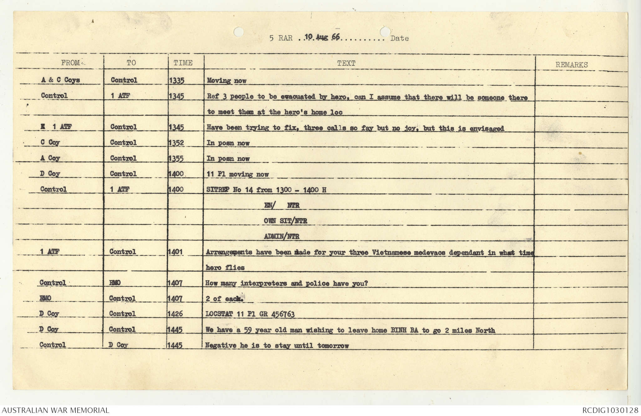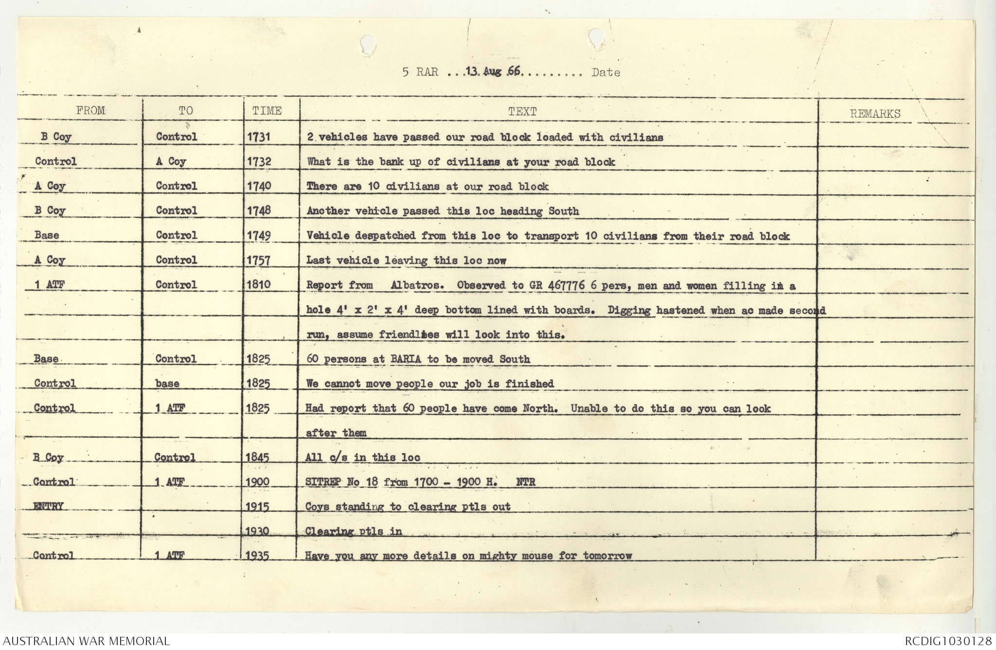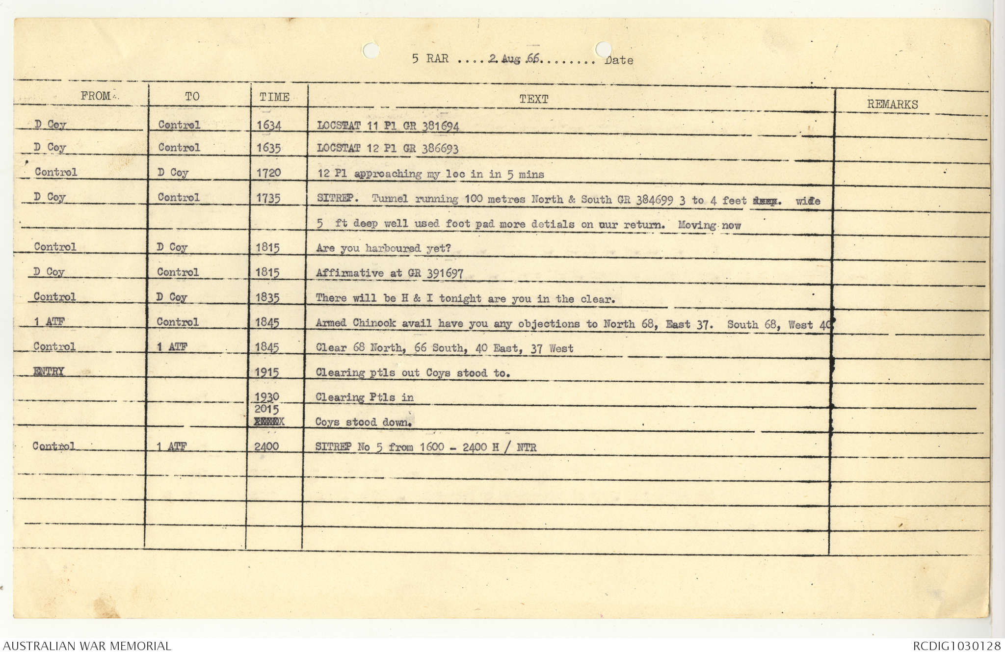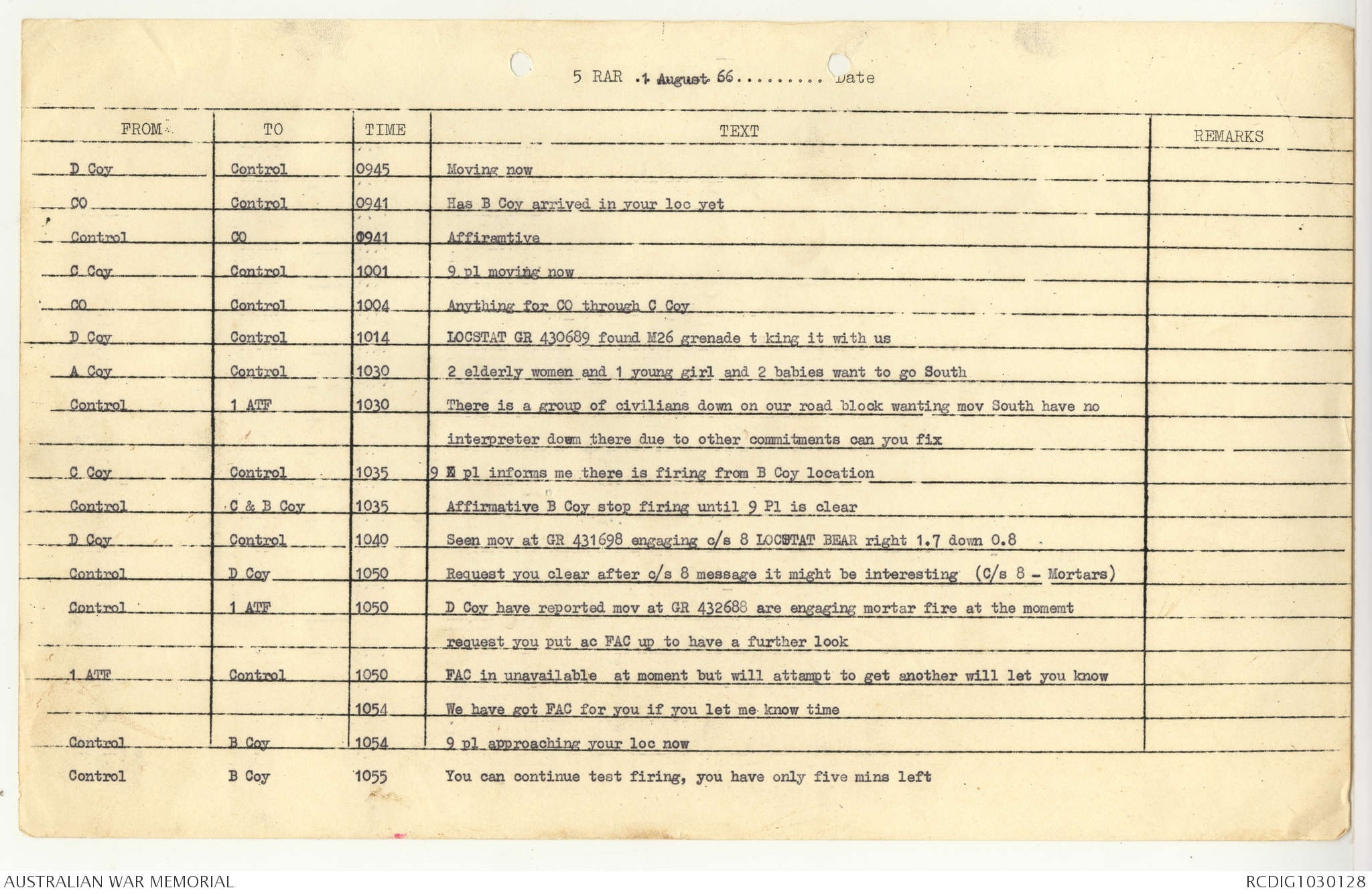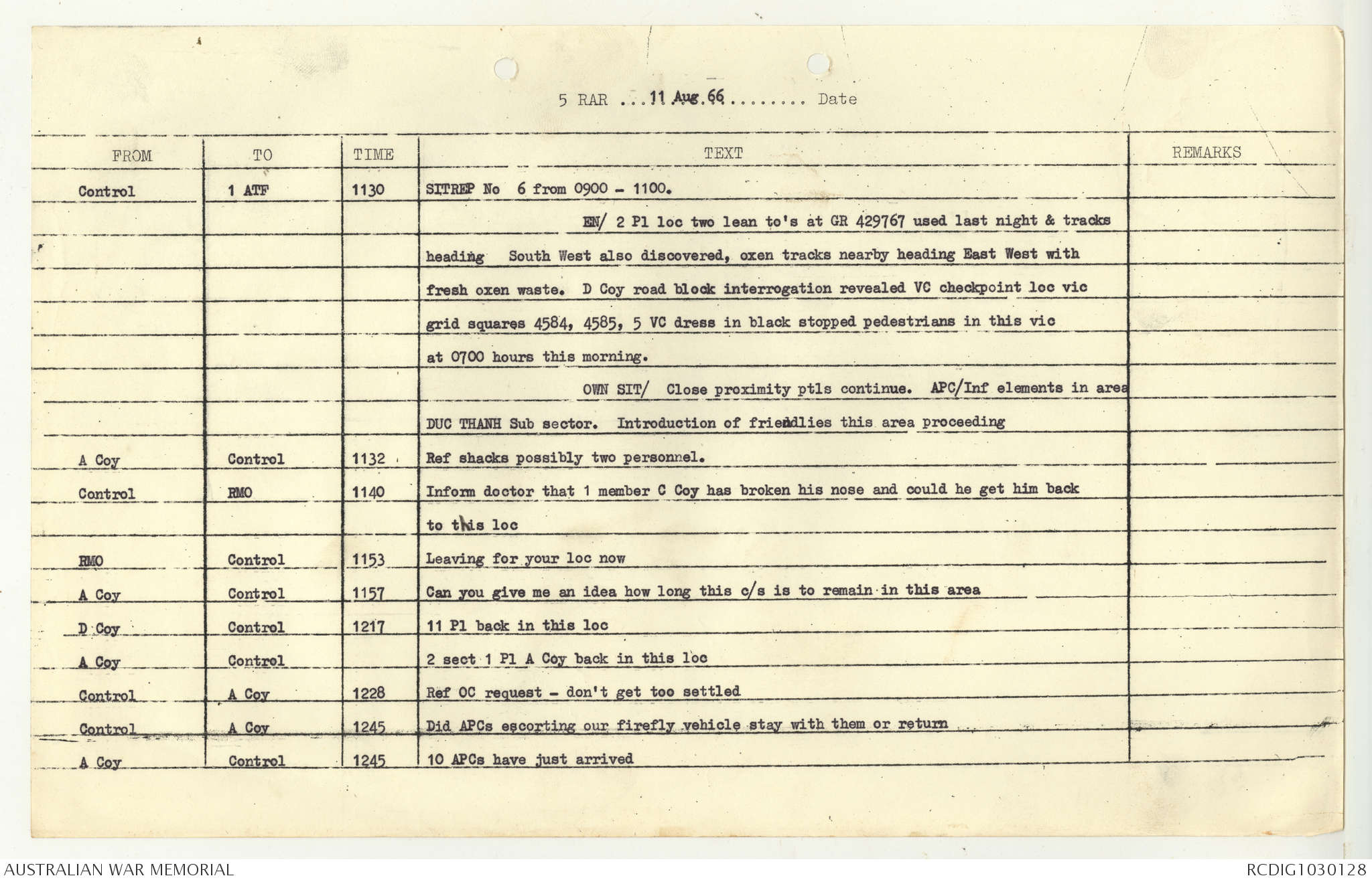 AWM95 7/5/7 PART 1 - 1-31 August 1966, Narrative, Operations log, Annexes