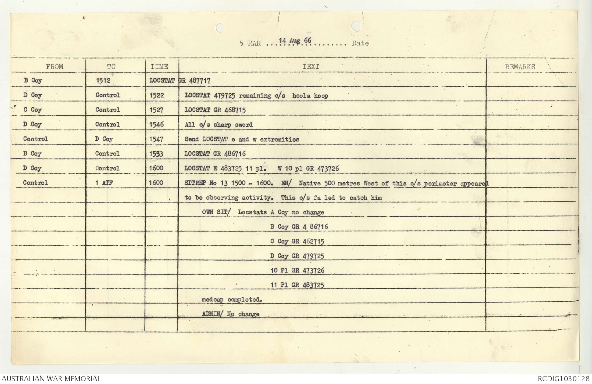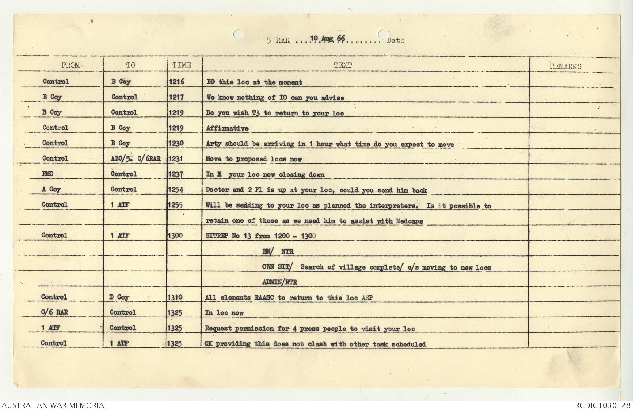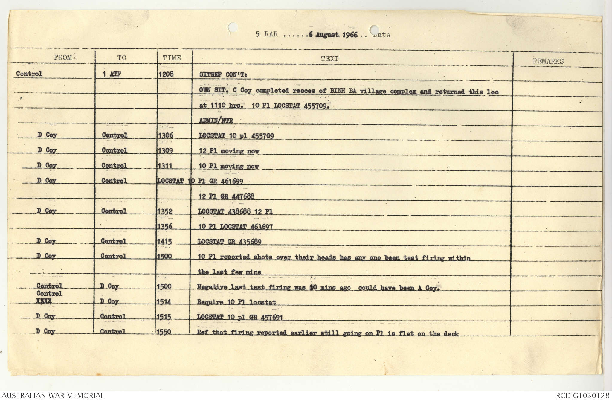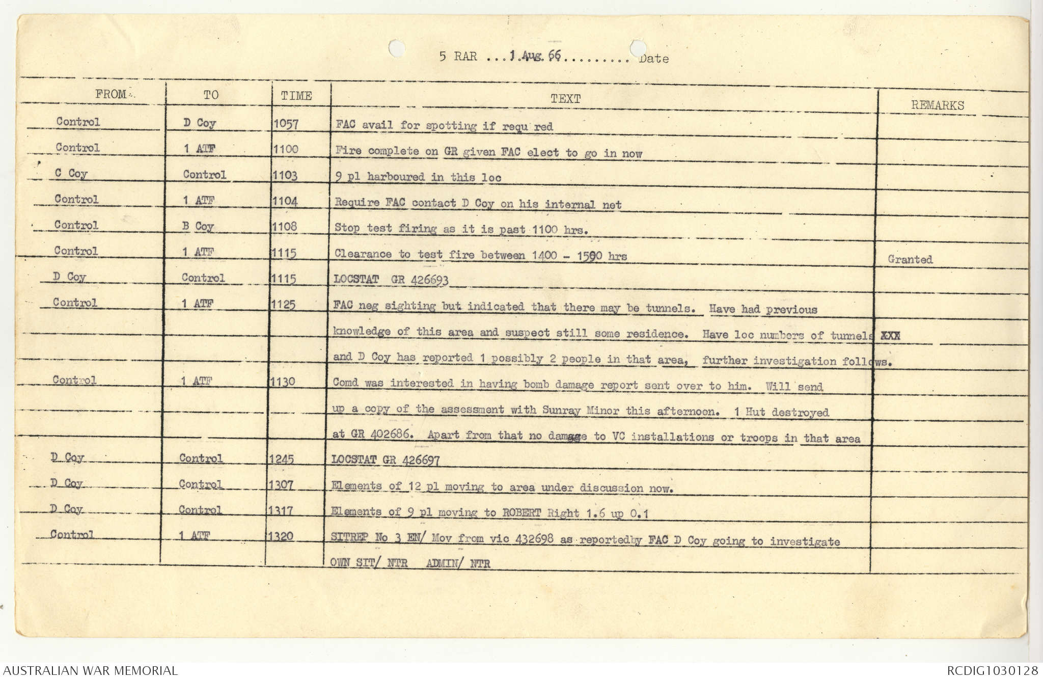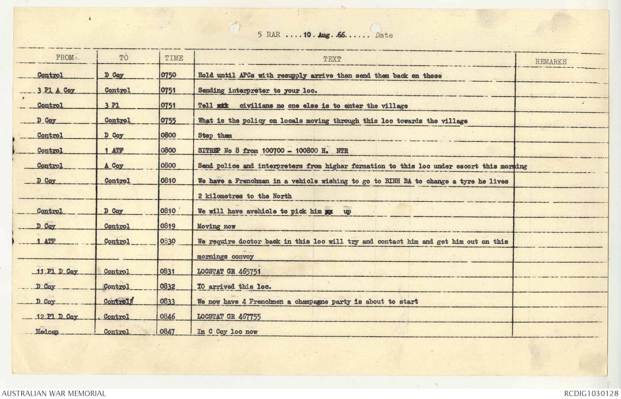AWM95 7/5/7 PART 1 - 1-31 August 1966, Narrative, Operations log, Annexes