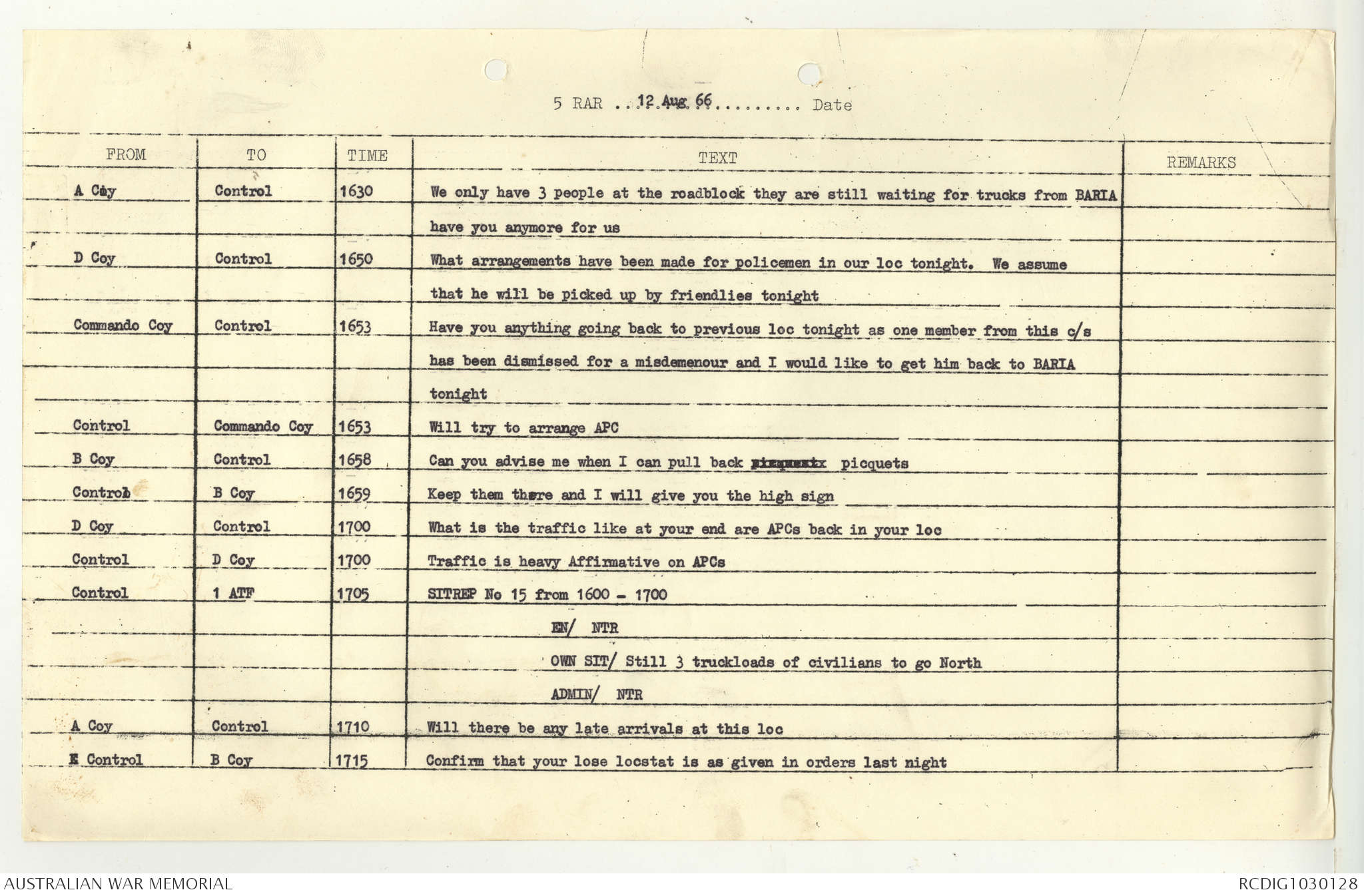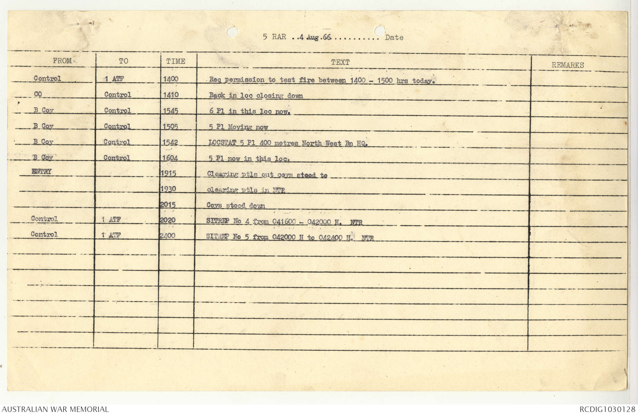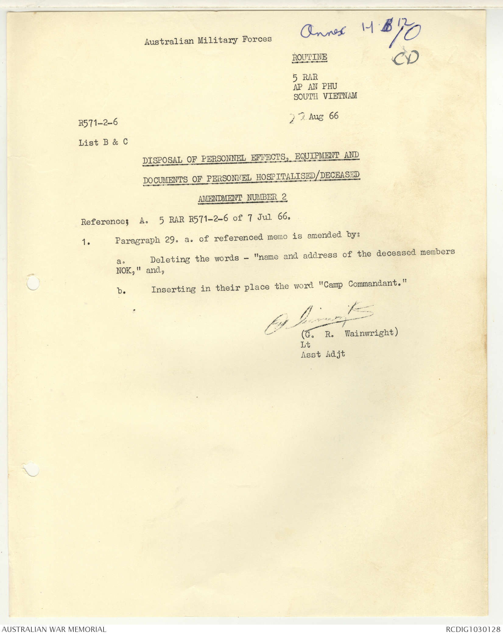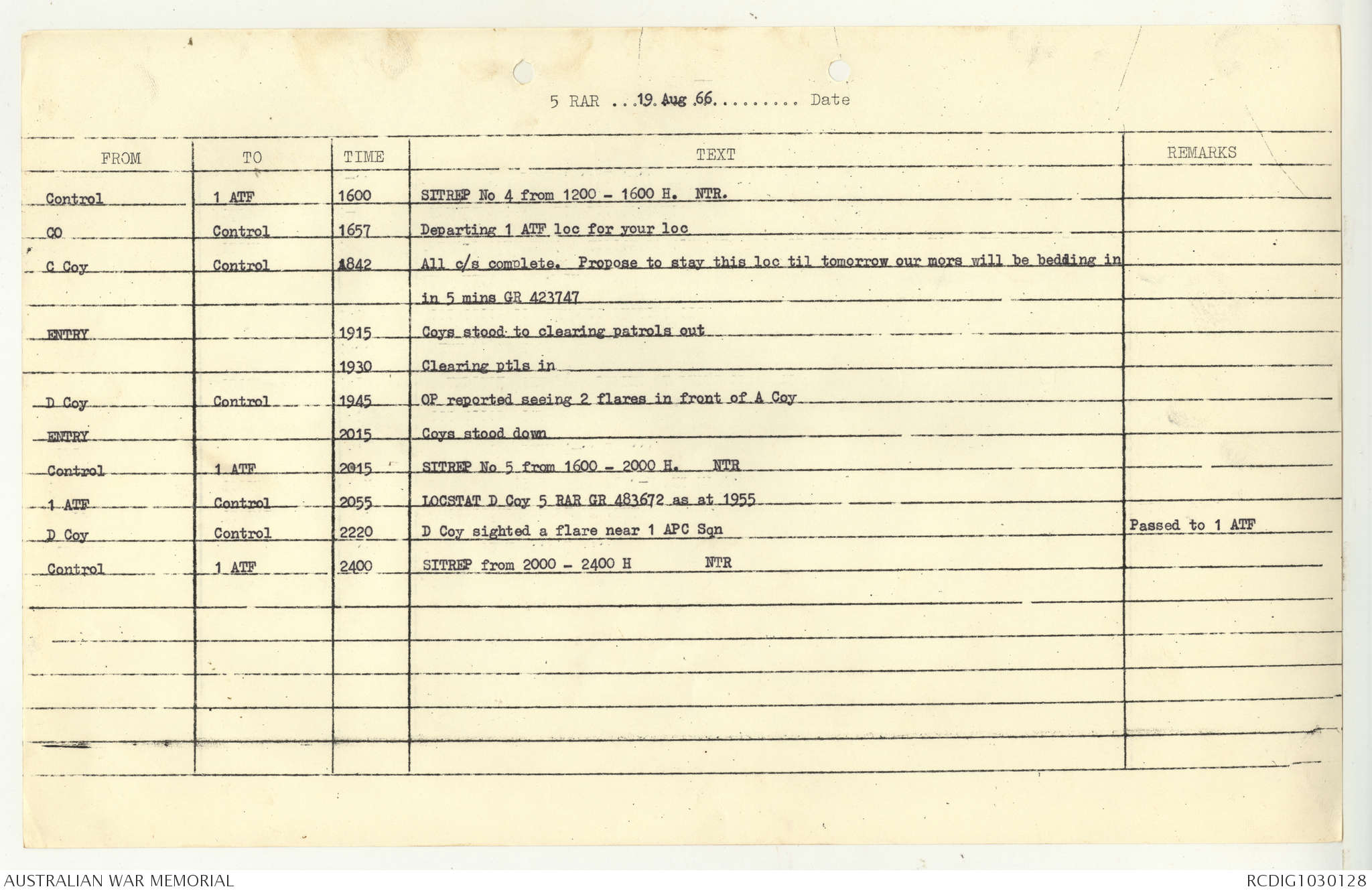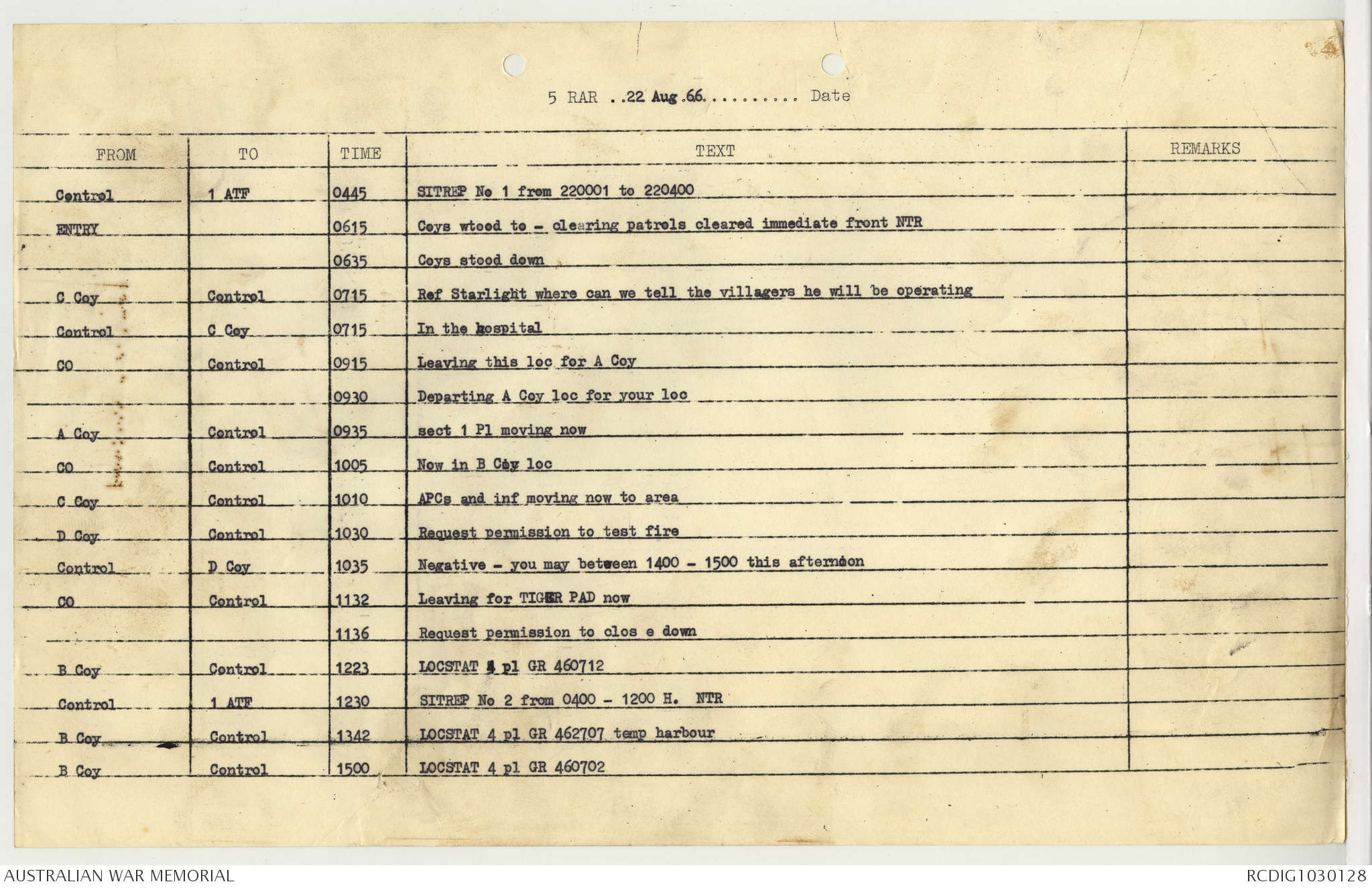 AWM95 7/5/7 PART 1 - 1-31 August 1966, Narrative, Operations log, Annexes