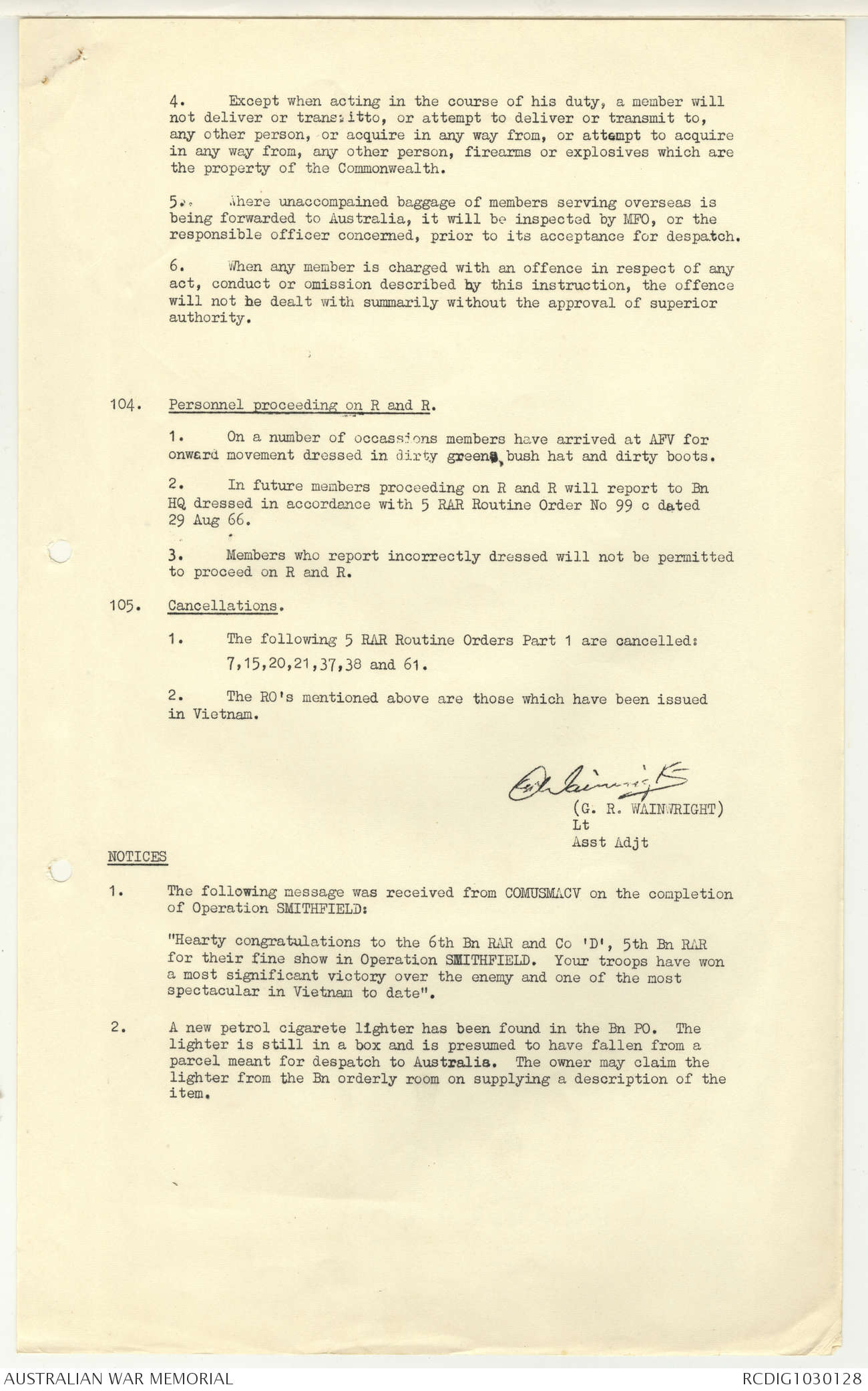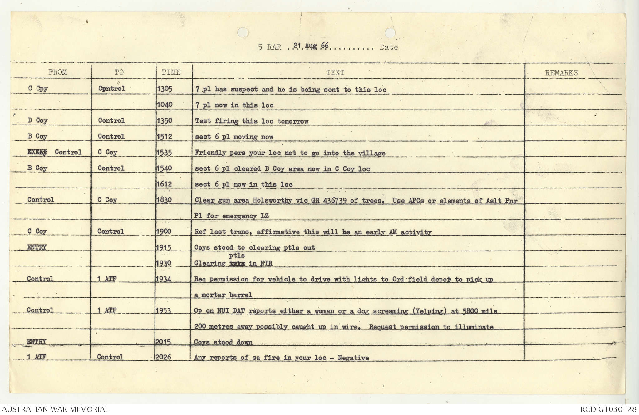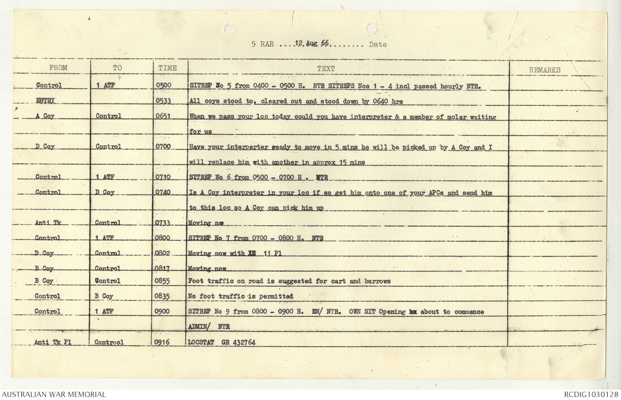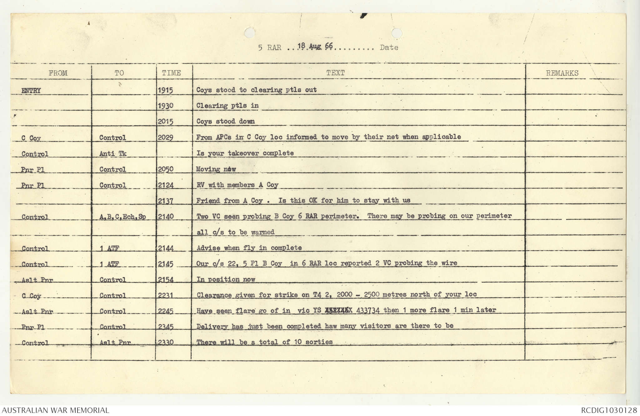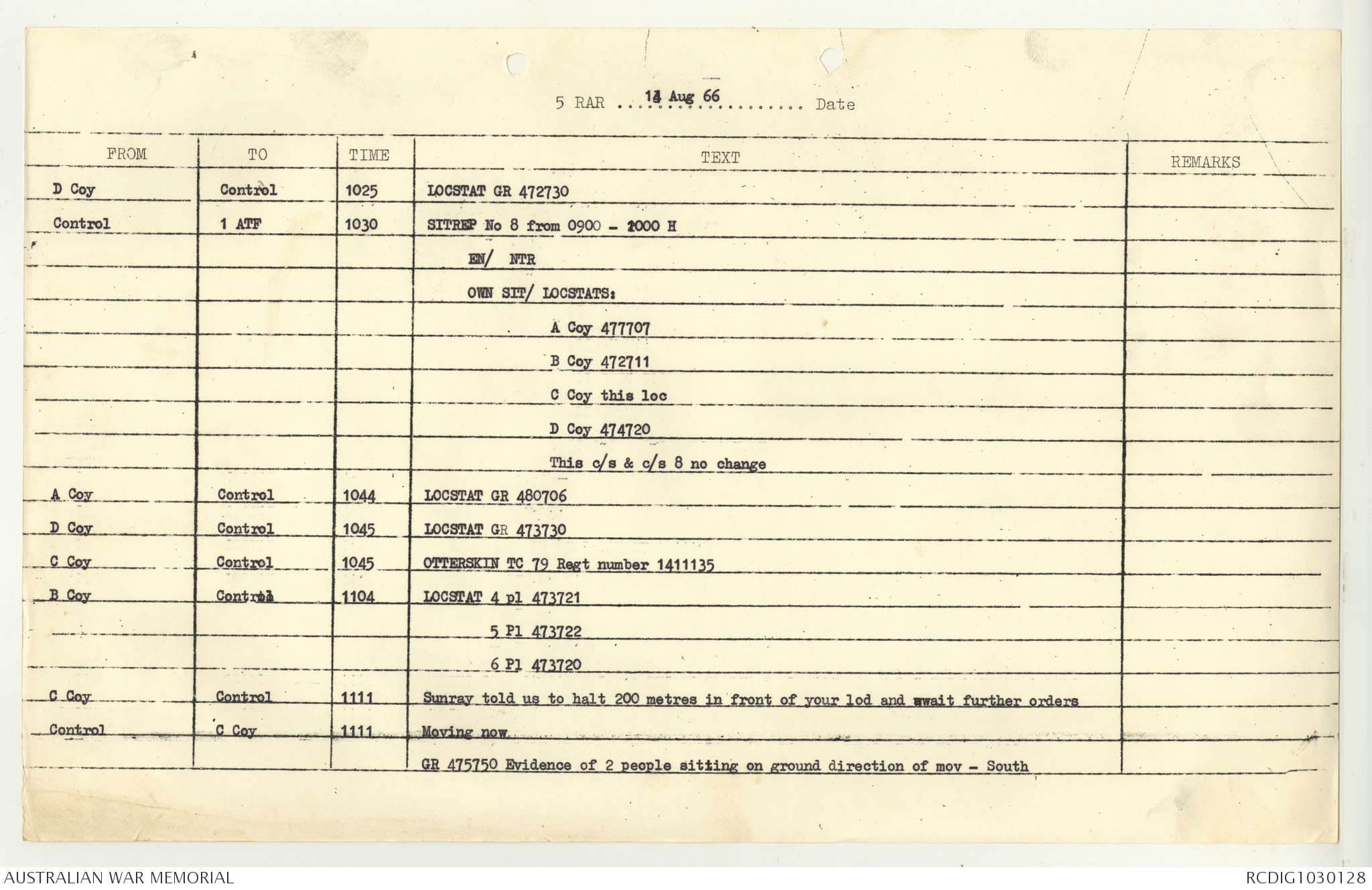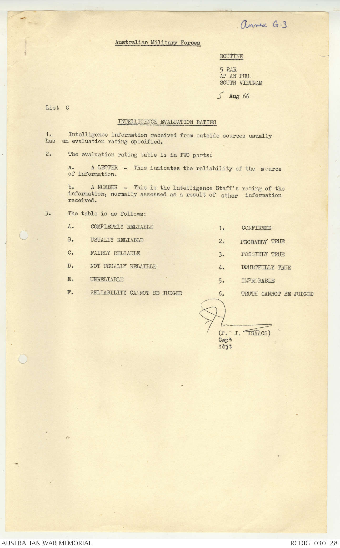 AWM95 7/5/7 PART 1 - 1-31 August 1966, Narrative, Operations log, Annexes