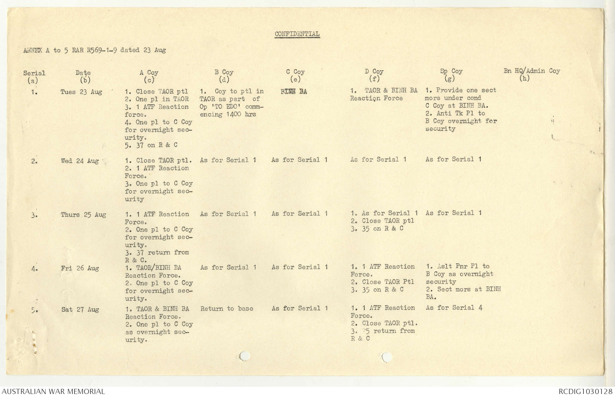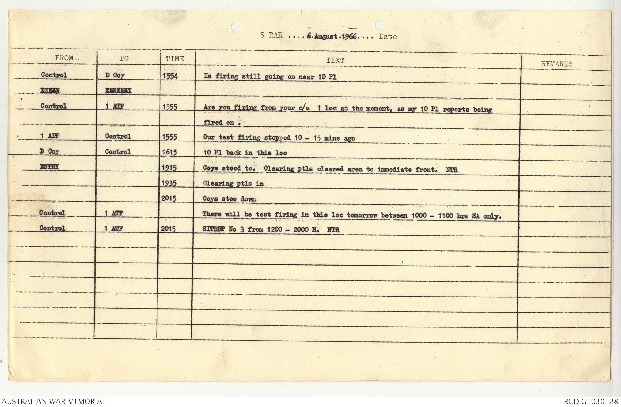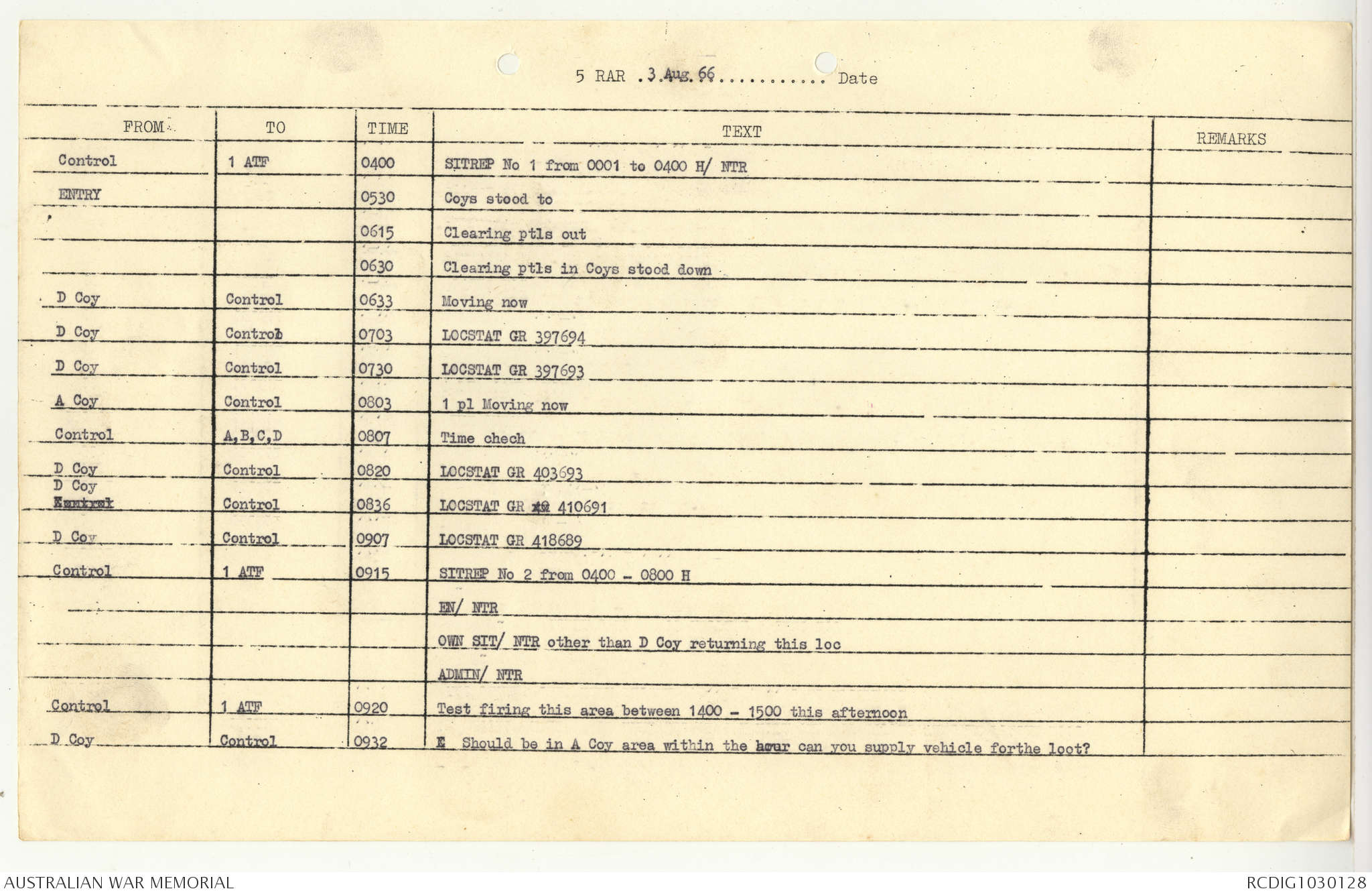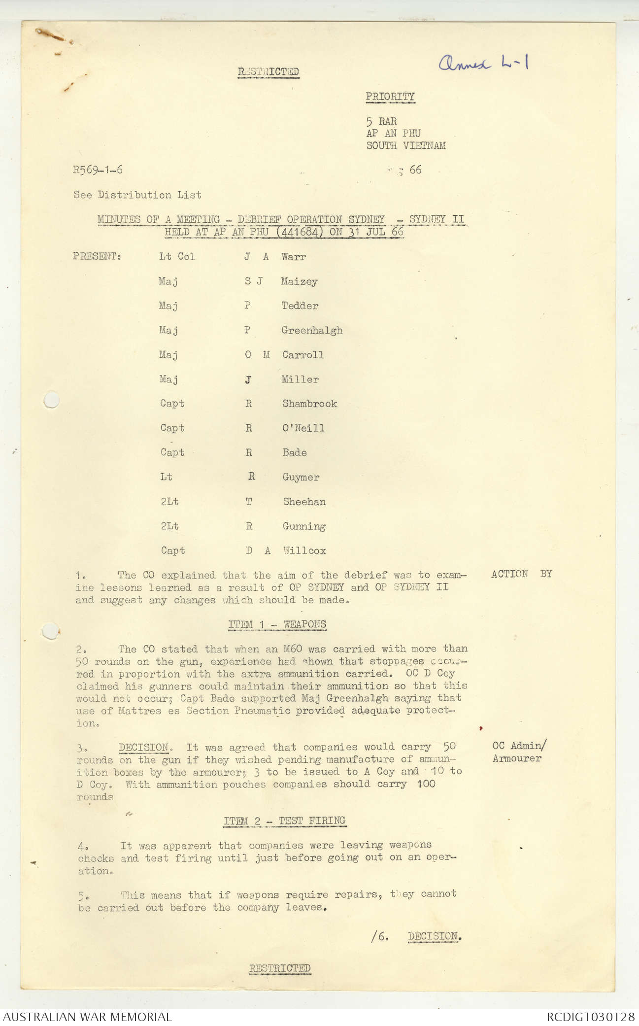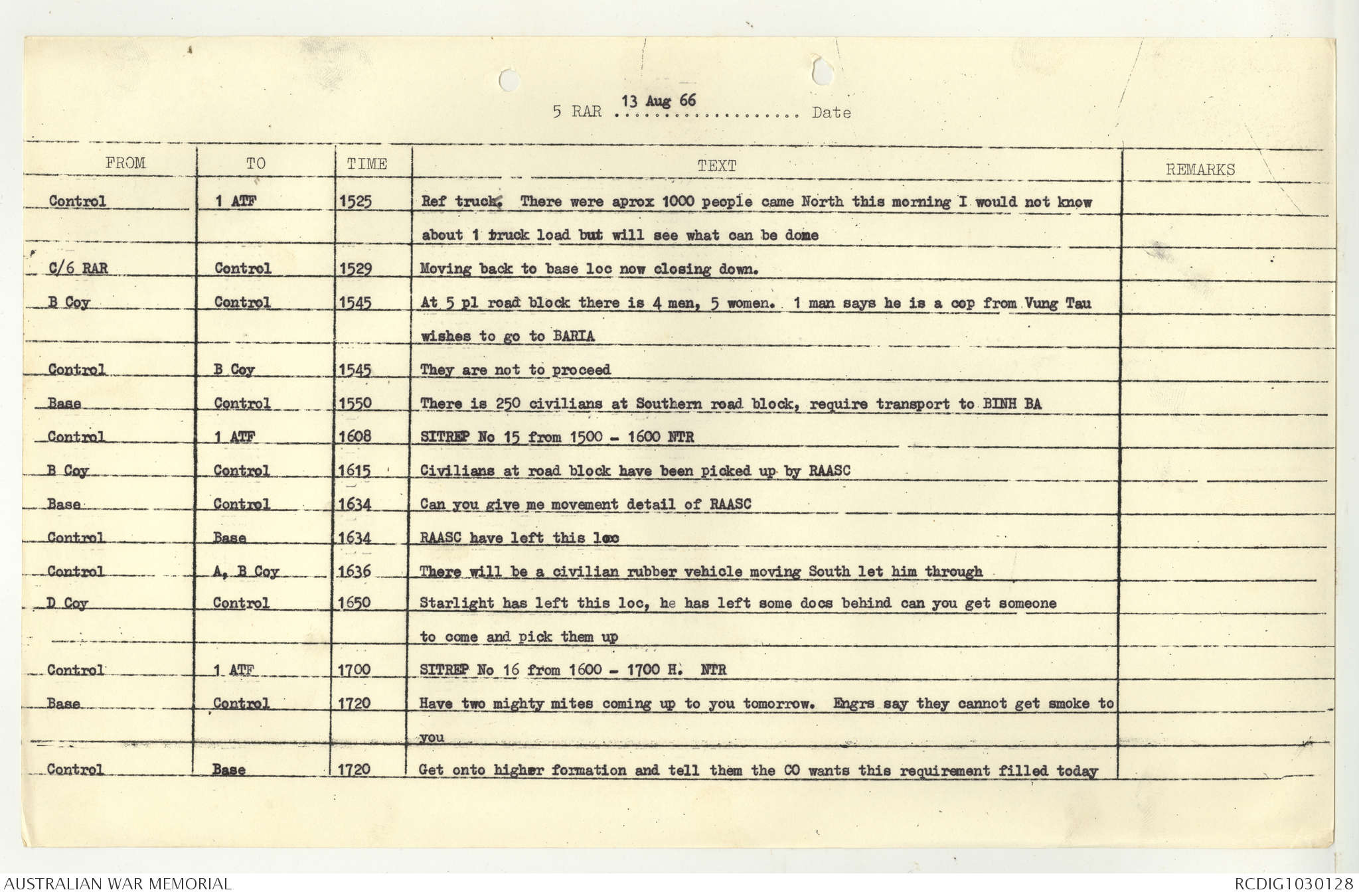 AWM95 7/5/7 PART 1 - 1-31 August 1966, Narrative, Operations log, Annexes