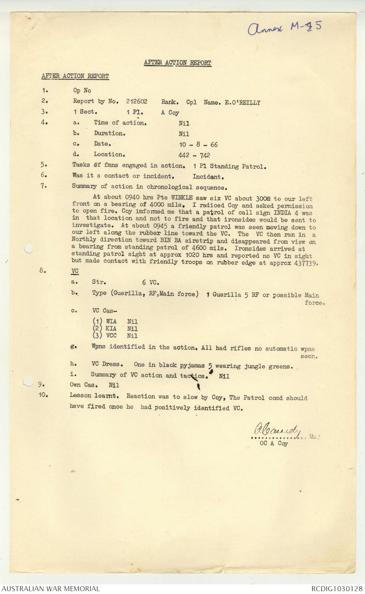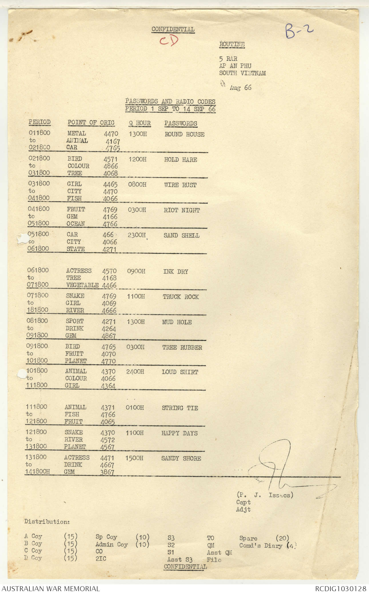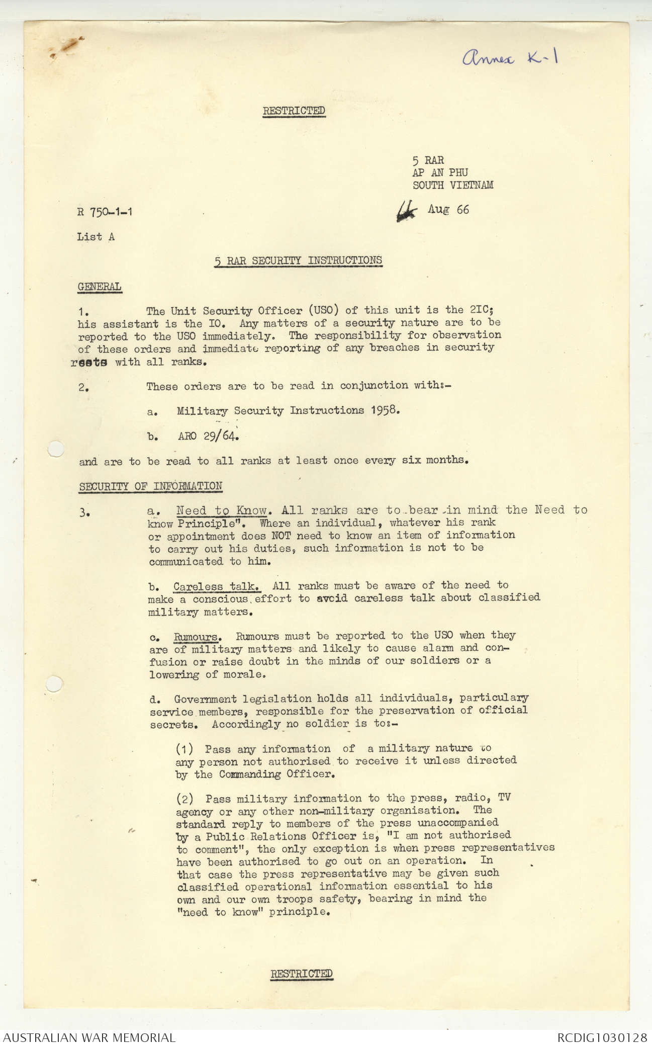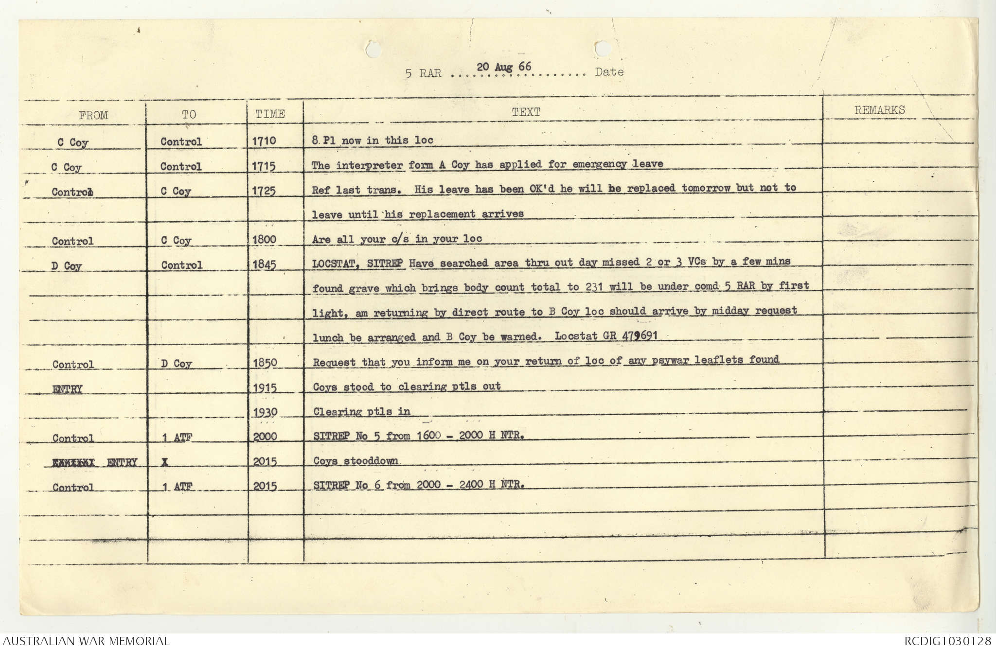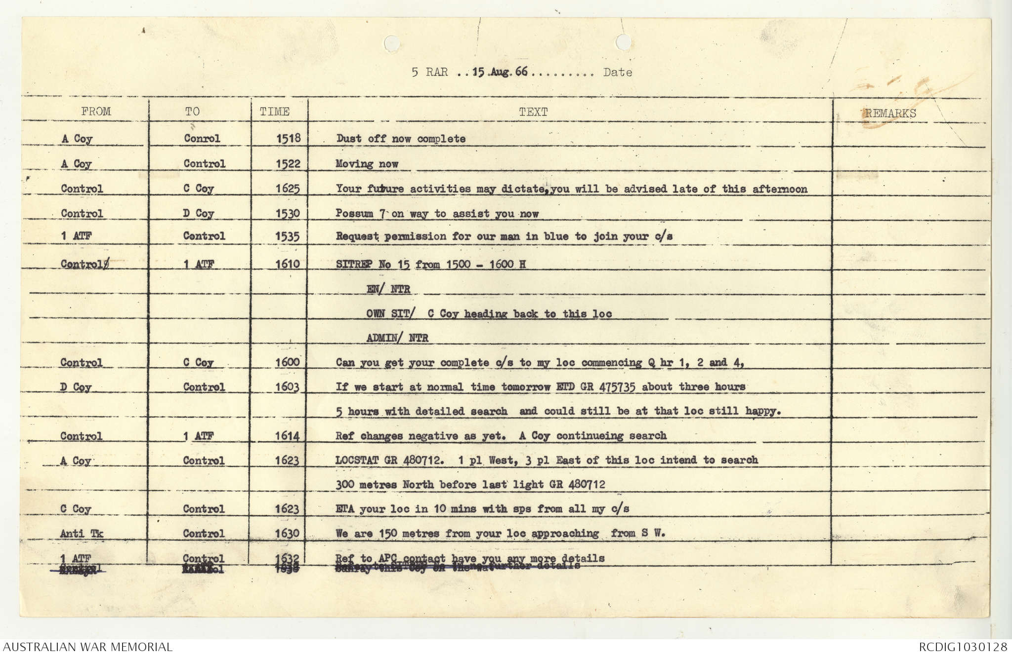 AWM95 7/5/7 PART 1 - 1-31 August 1966, Narrative, Operations log, Annexes