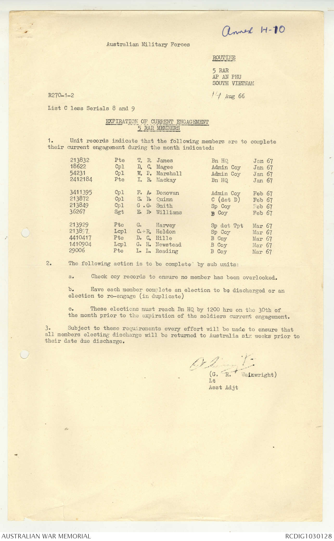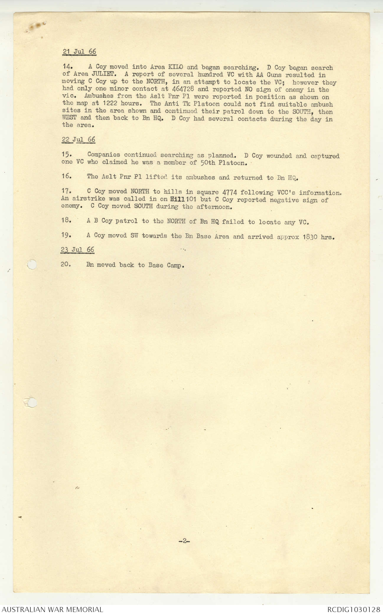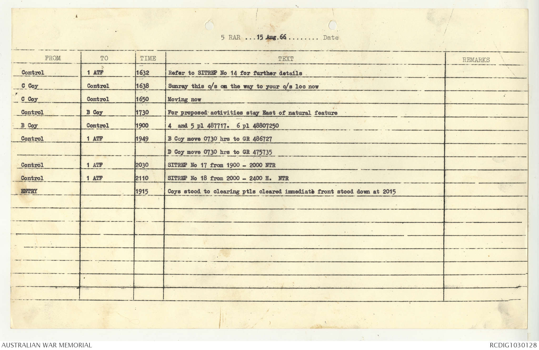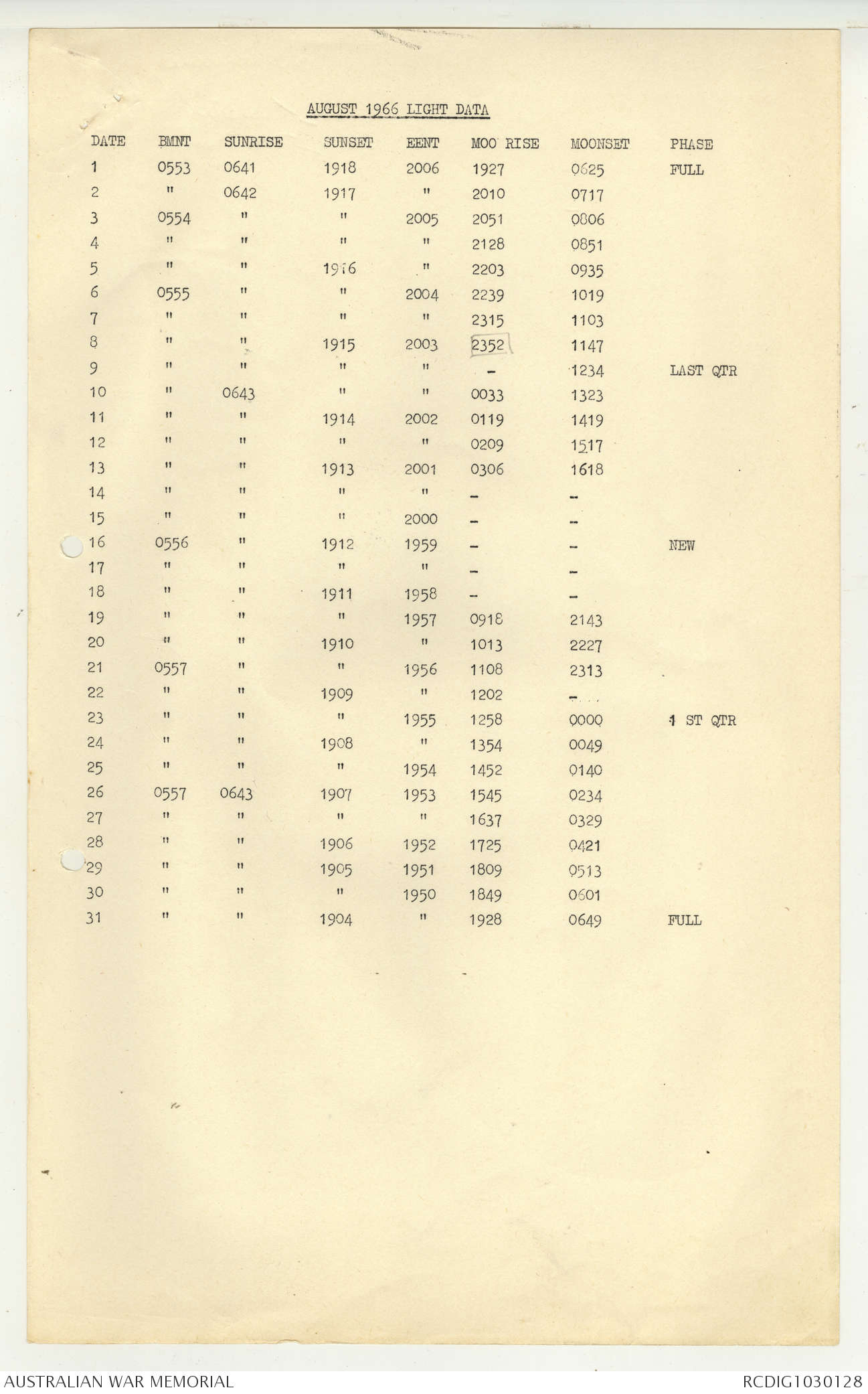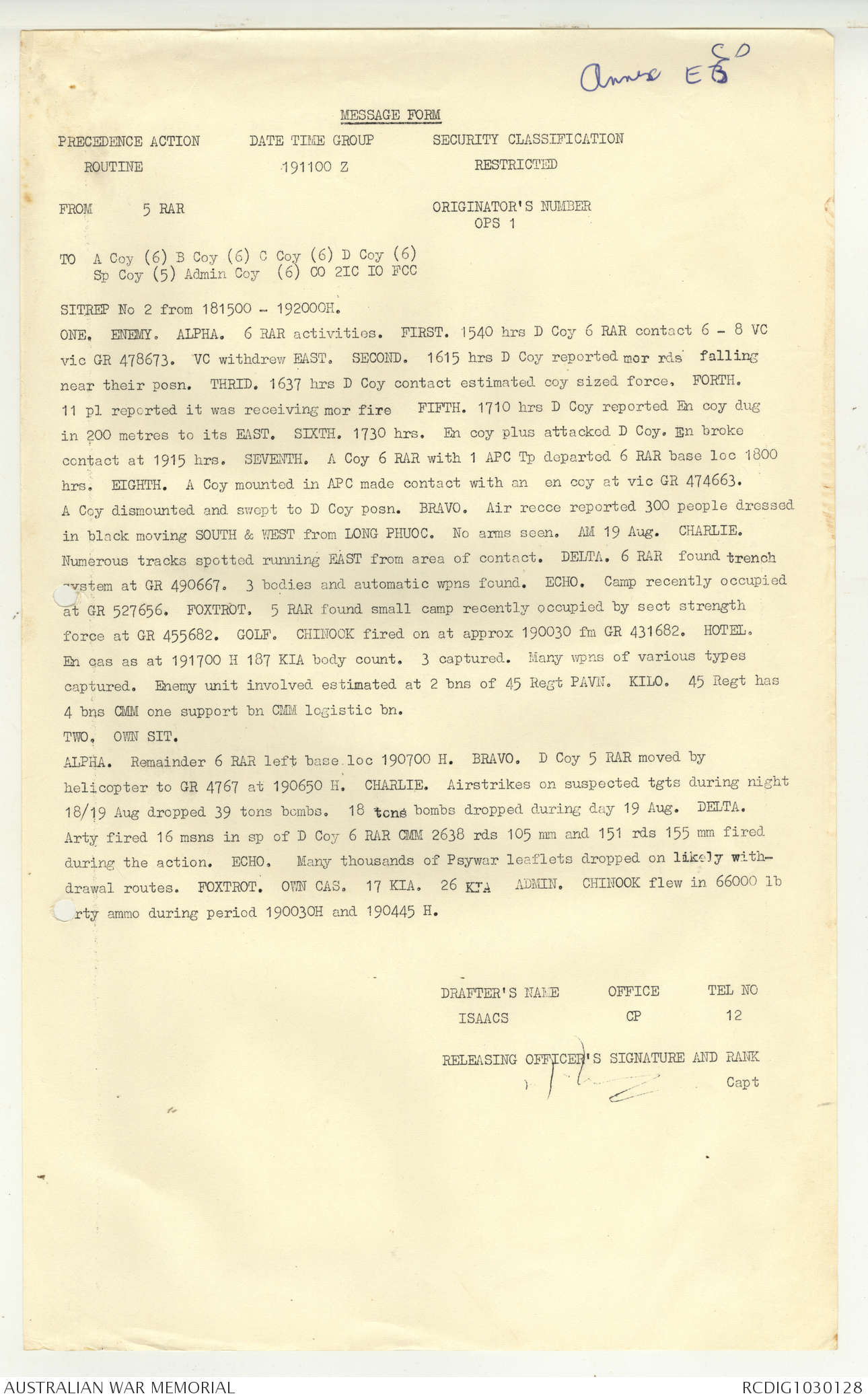 AWM95 7/5/7 PART 1 - 1-31 August 1966, Narrative, Operations log, Annexes