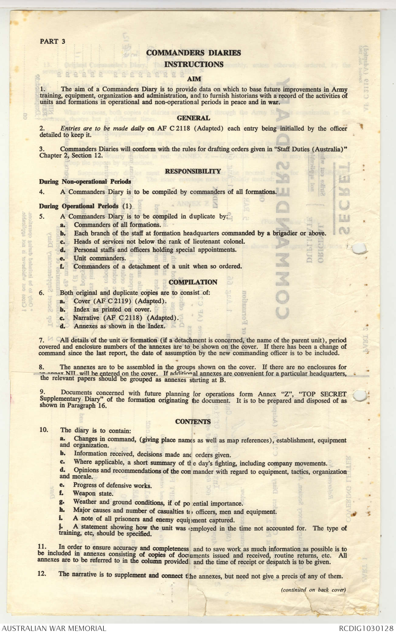 Australian Army commanders' diaries