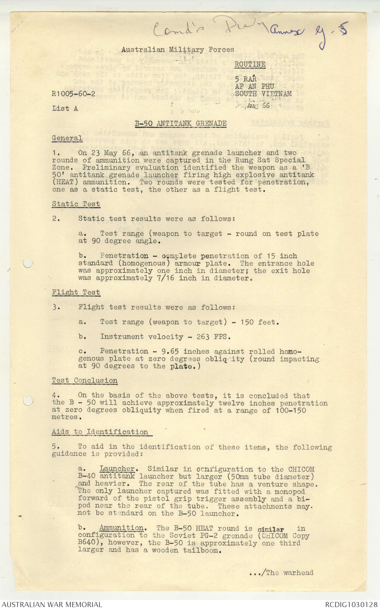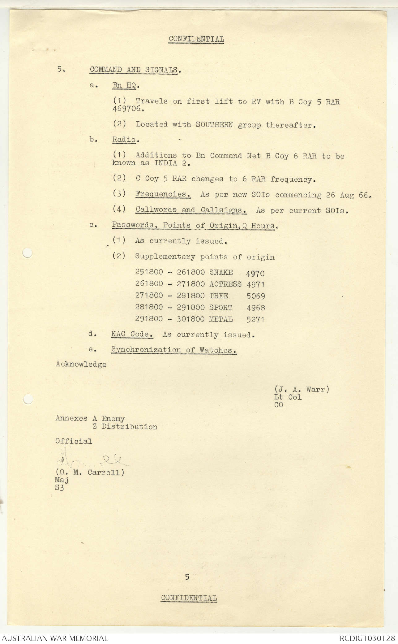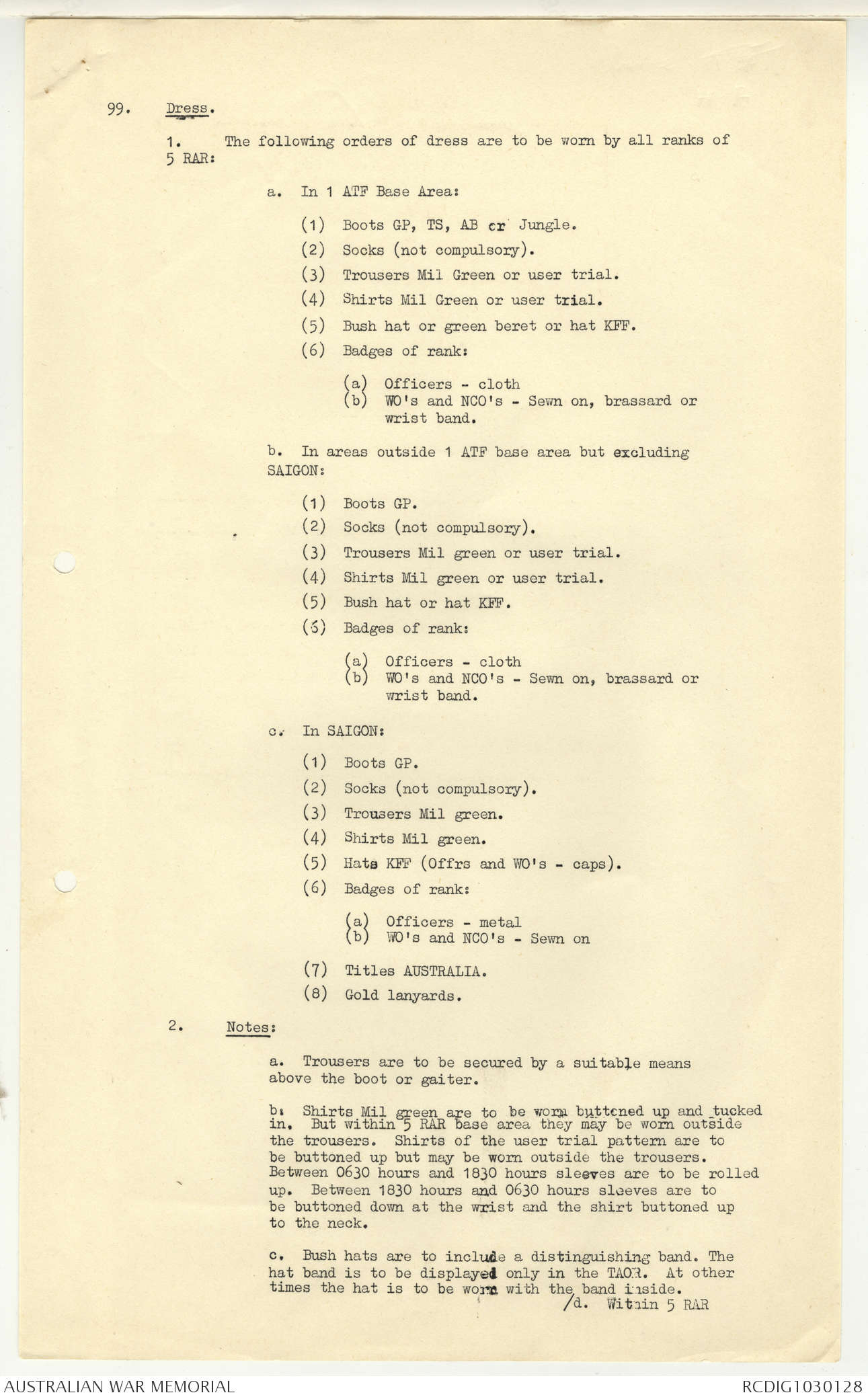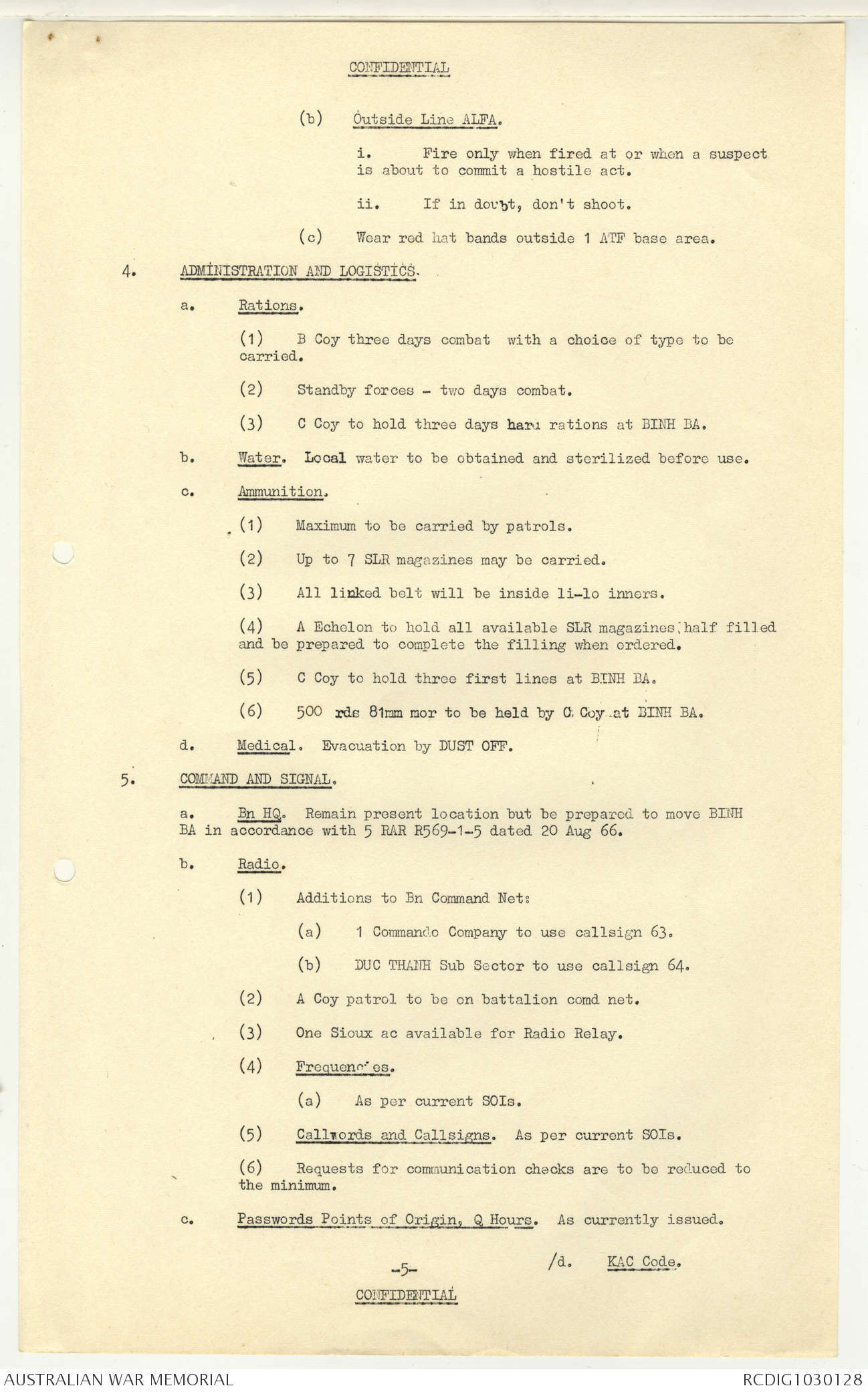 - AWM95 Subclass 7/5 - 5 Battalion Royal Australian Regiment
